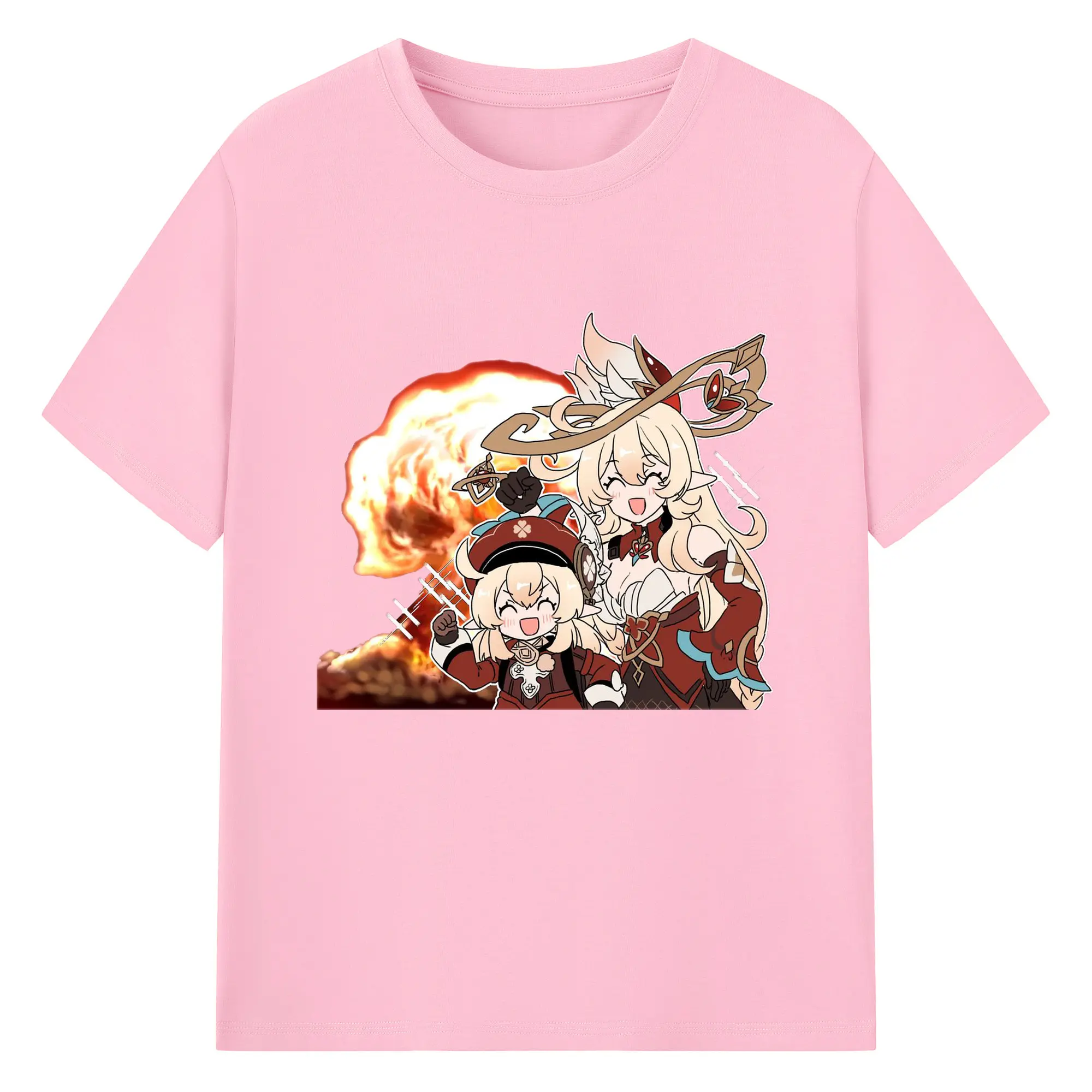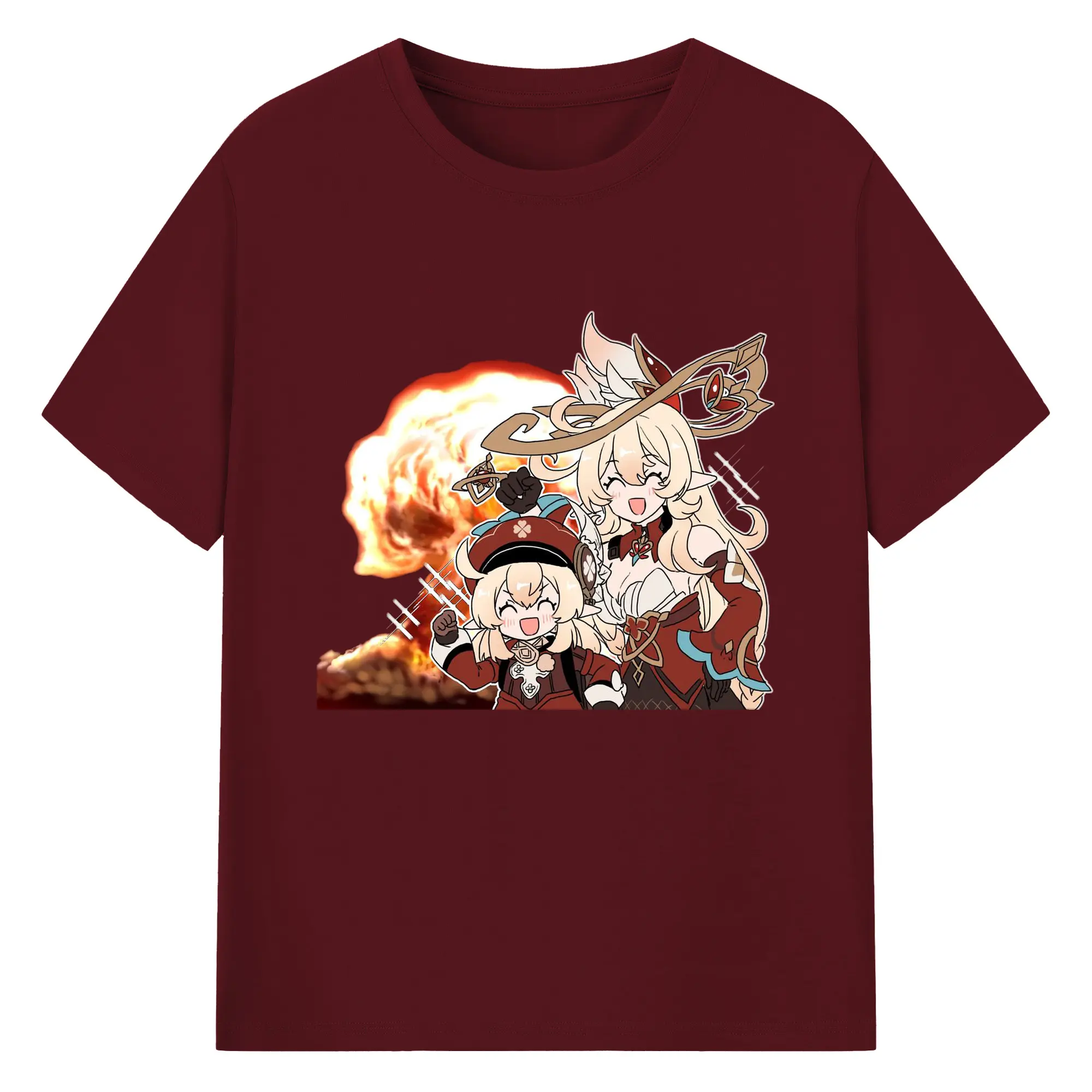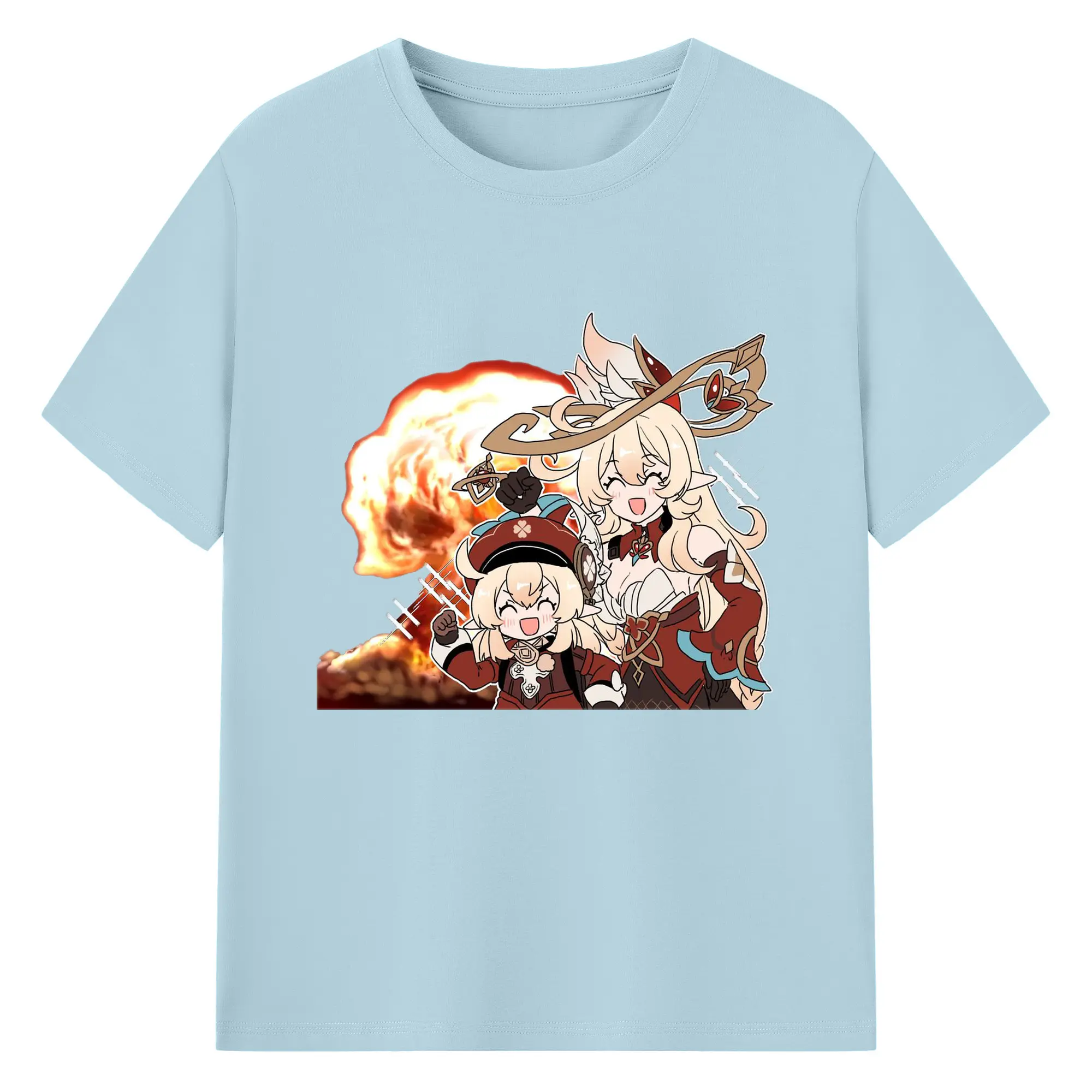 Genshin ナド・クライ クレーちゃん - 綿100% 半袖Tシャツ ・ フロントプリント ・ 快適 通気性 ・ 日常使い 散歩 スポーツ用