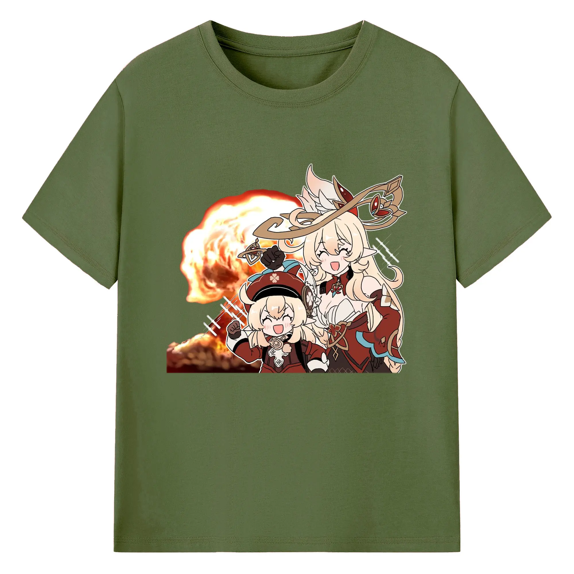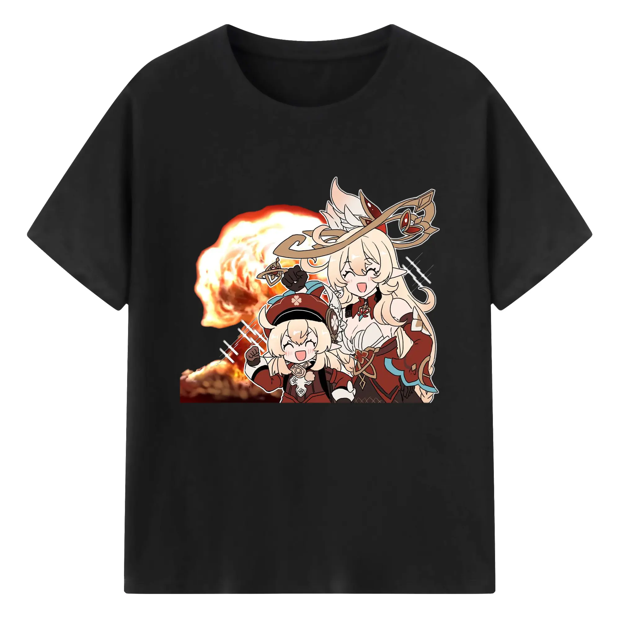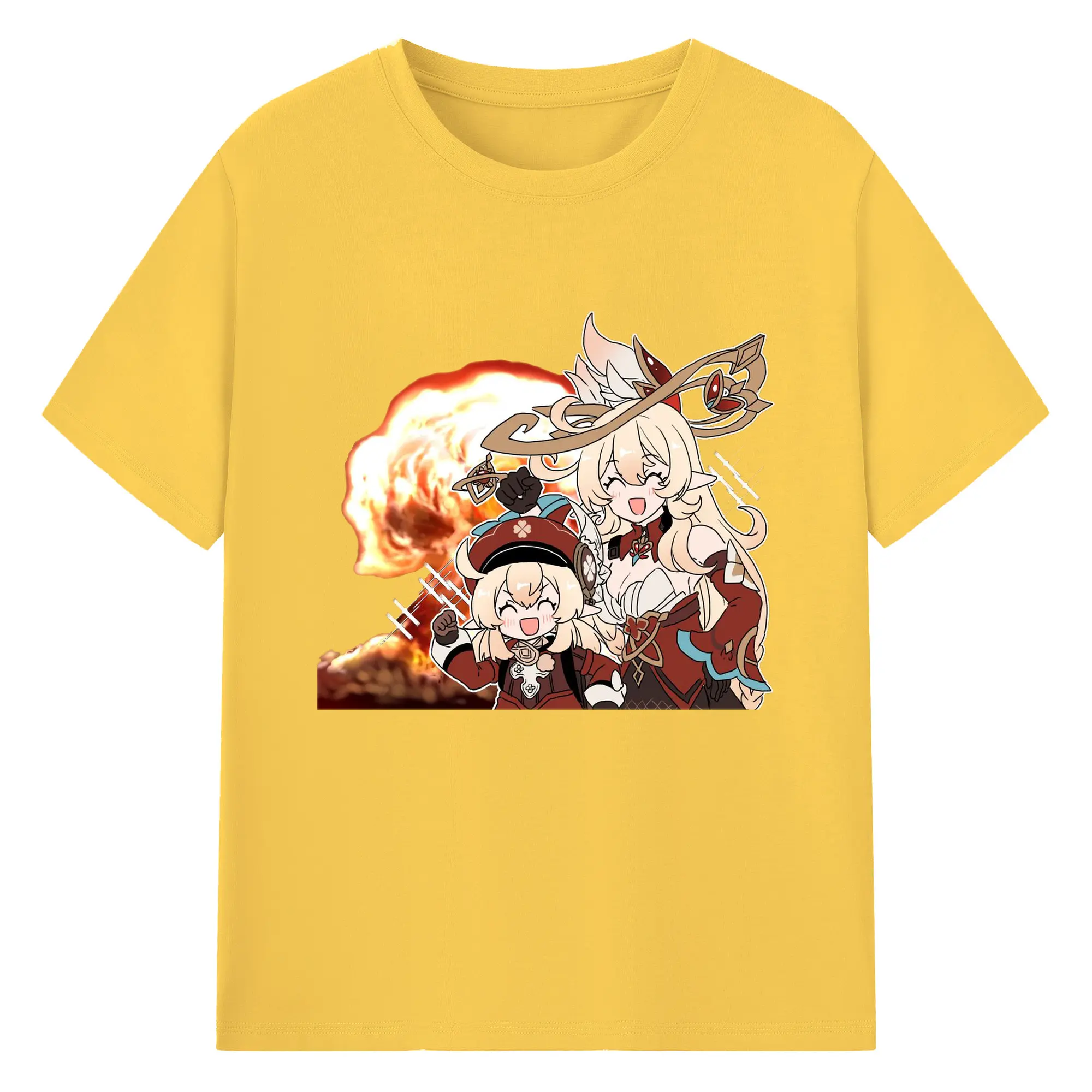 Genshin ナド・クライ クレーちゃん - 綿100% 半袖Tシャツ ・ フロントプリント ・ 快適 通気性 ・ 日常使い 散歩 スポーツ用
