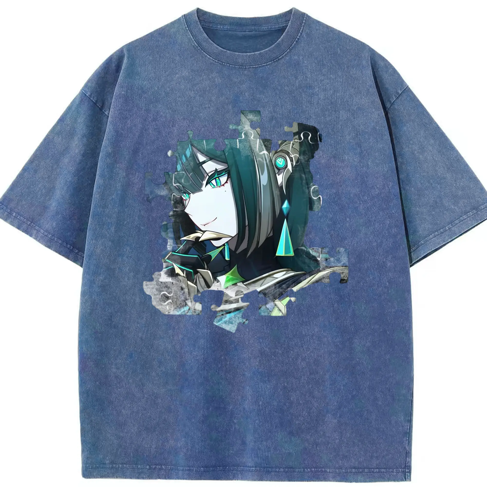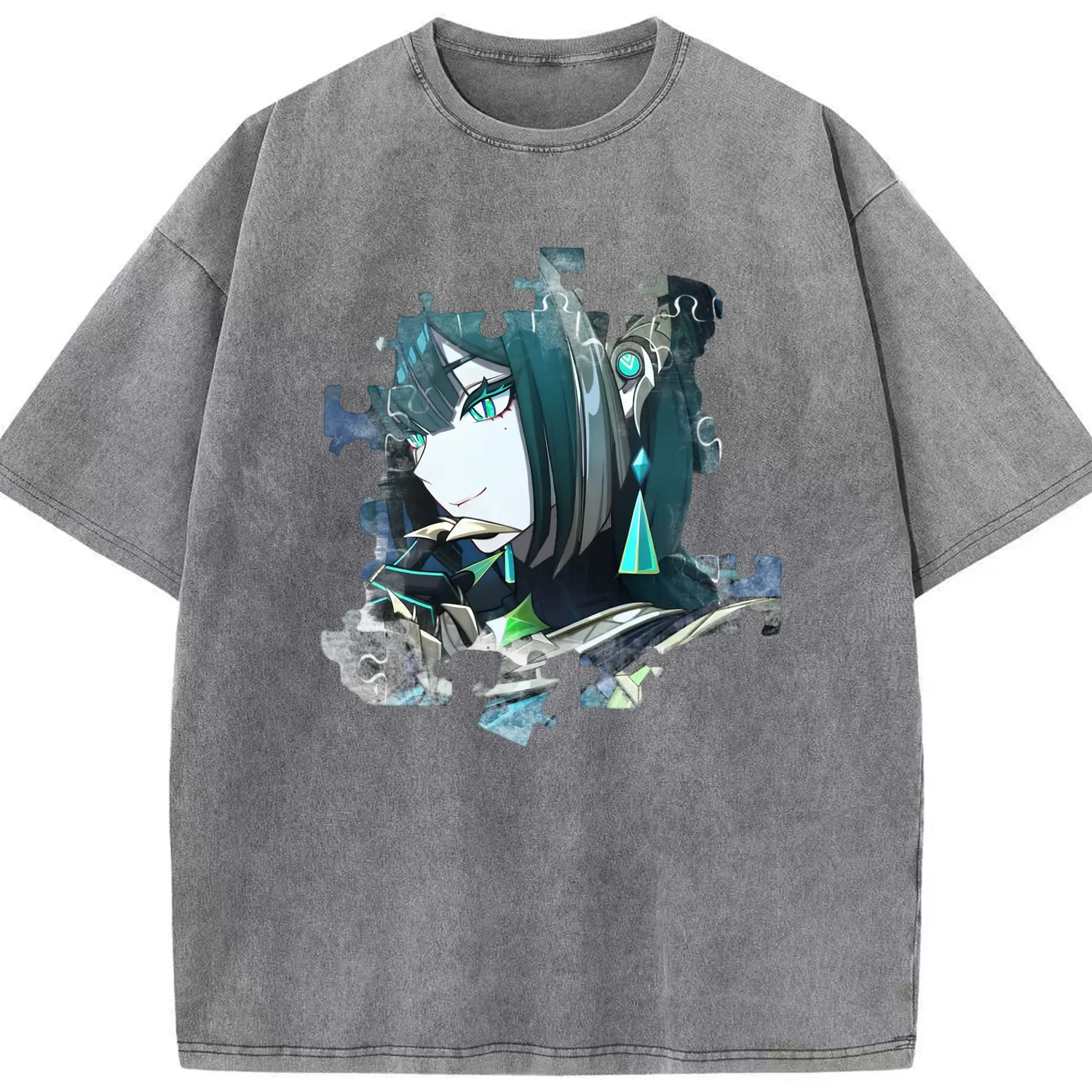 Genshin ナド・クライ ネフェル - 綿100% ヴィンテージ風 半袖Tシャツ ・ フロントプリント ・ 柔らか肌触り ・ 通気性 快適 ・ スポーツ カジュアル 外出用