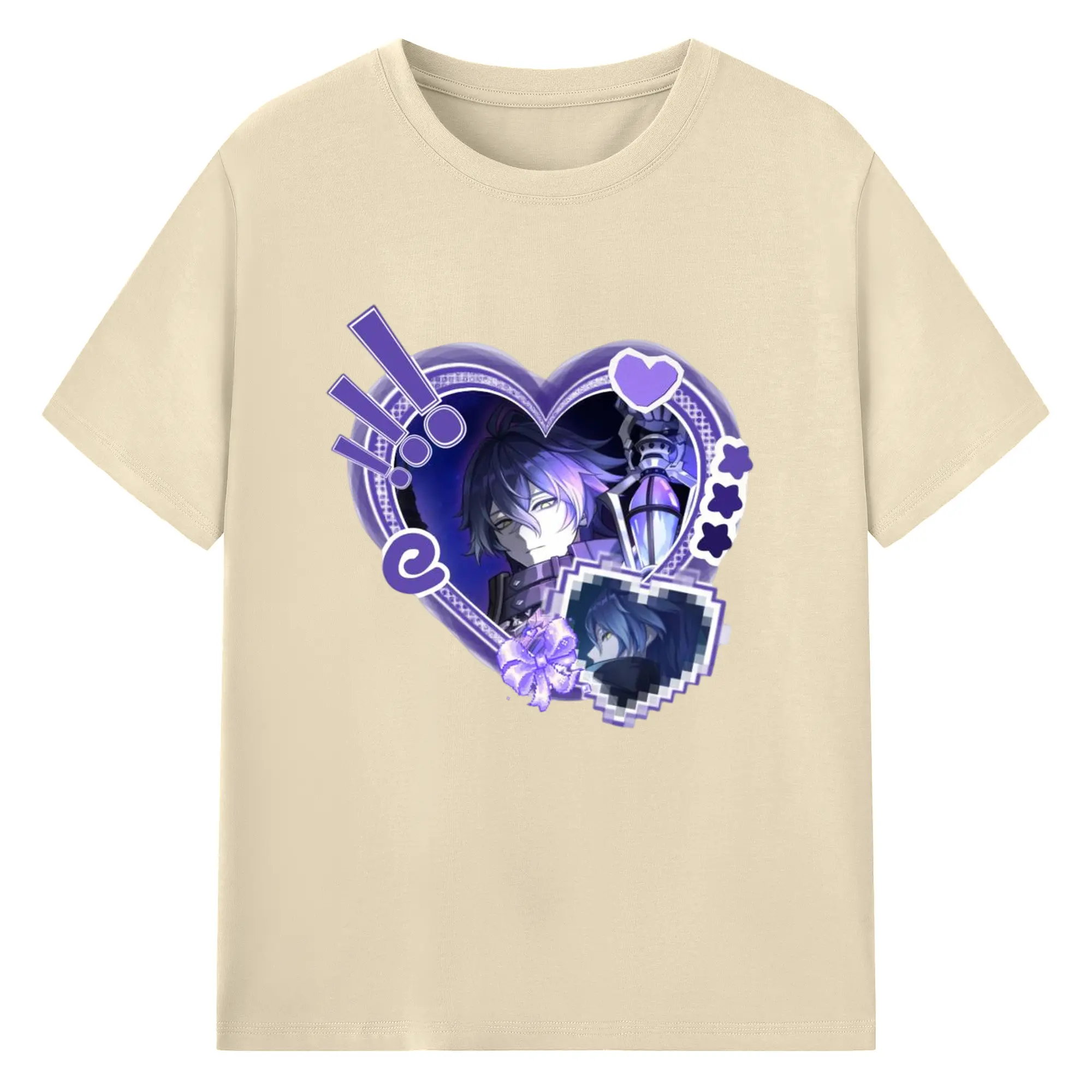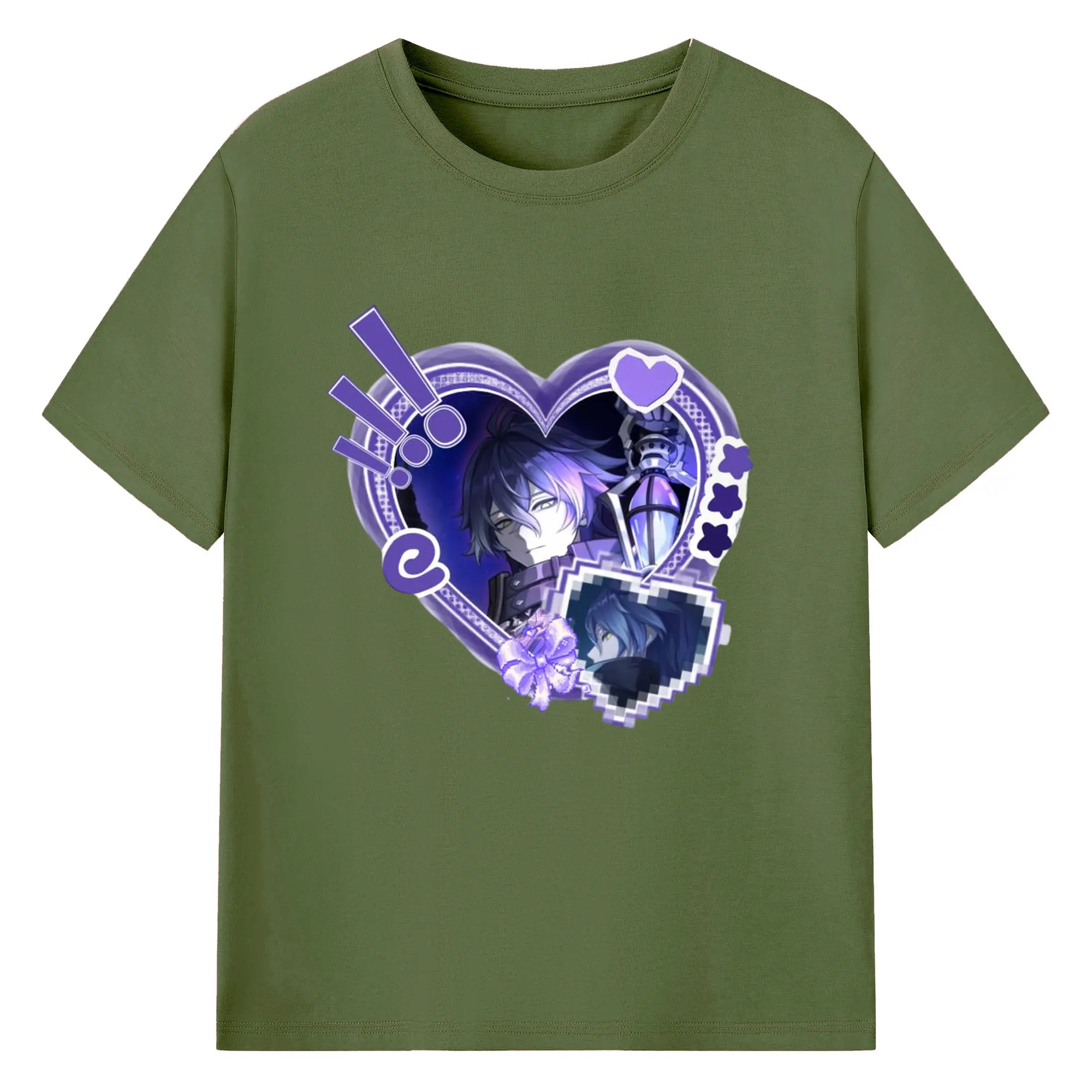Genshin 炎神えんしん マーヴィカ - 綿100% 半袖Tシャツ ・ フロントプリント ・ 快適 通気性 ・ 日常使い 散歩 スポーツ用