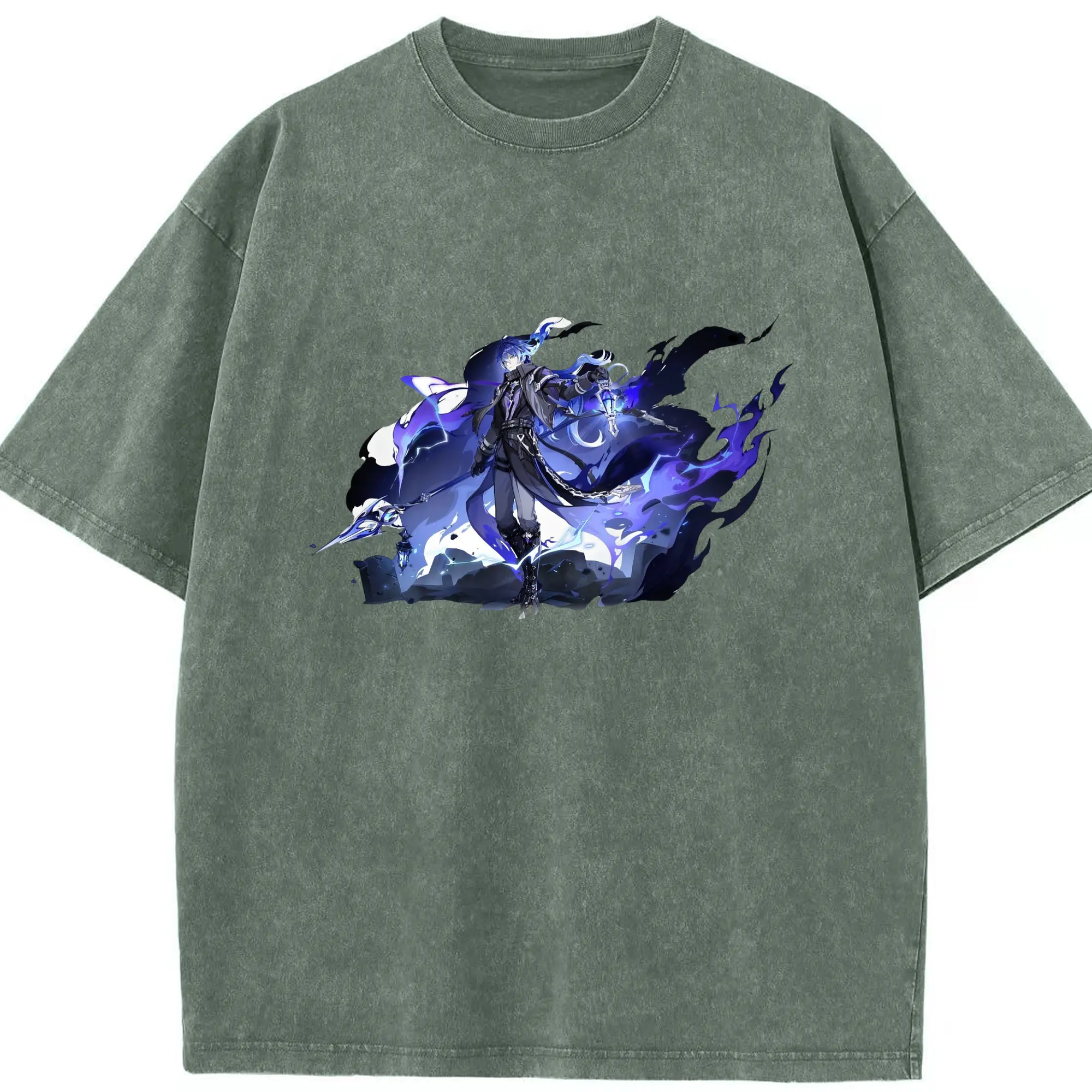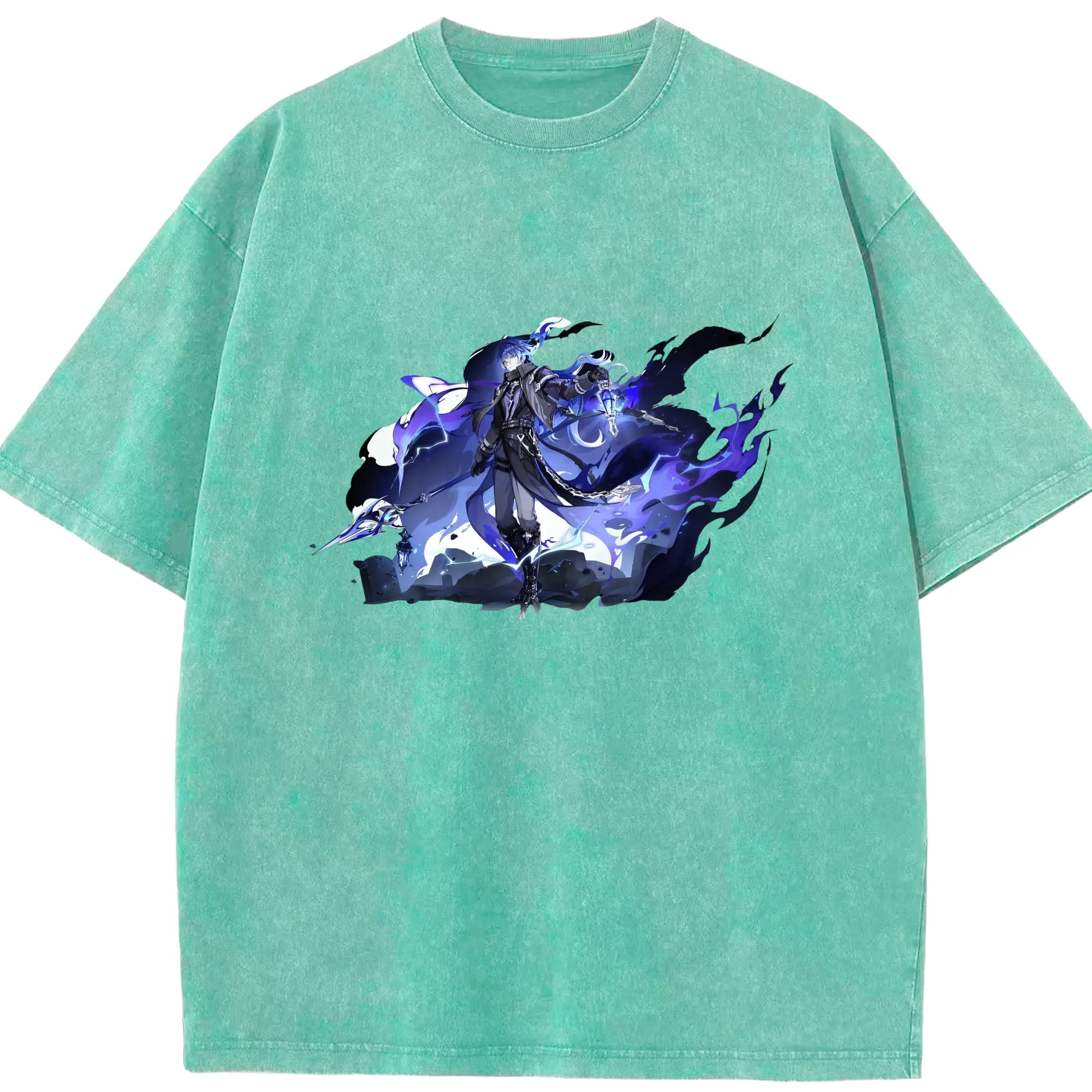 ゼンレスゾーンゼロ 工リン・ジヨー - 綿100% ヴィンテージ風 半袖Tシャツ ・ フロントプリント ・ 柔らか肌触り ・ 通気性 快適 ・ スポーツ カジュアル 外出用