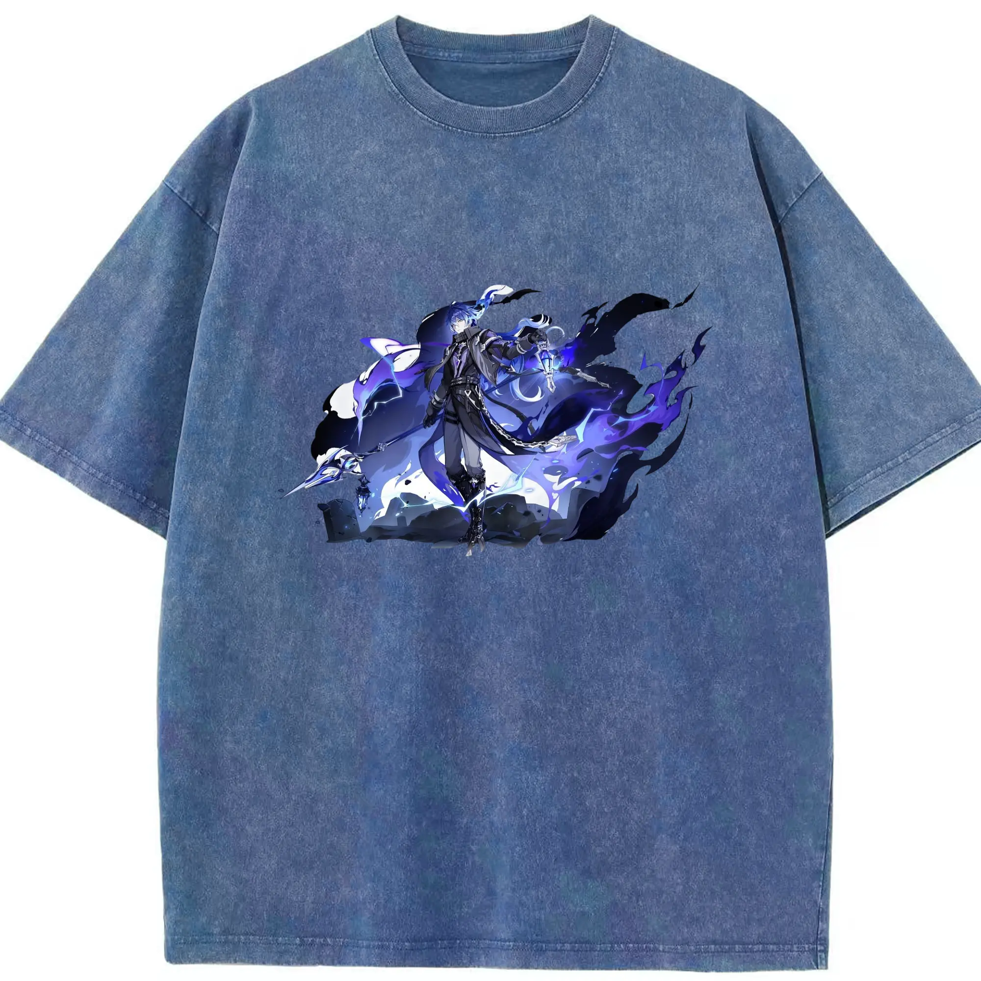 Genshin ナド・クライ フリンズ - 綿100% ヴィンテージ風 半袖Tシャツ ・ フロントプリント ・ 柔らか肌触り ・ 通気性 快適 ・ スポーツ カジュアル 外出用