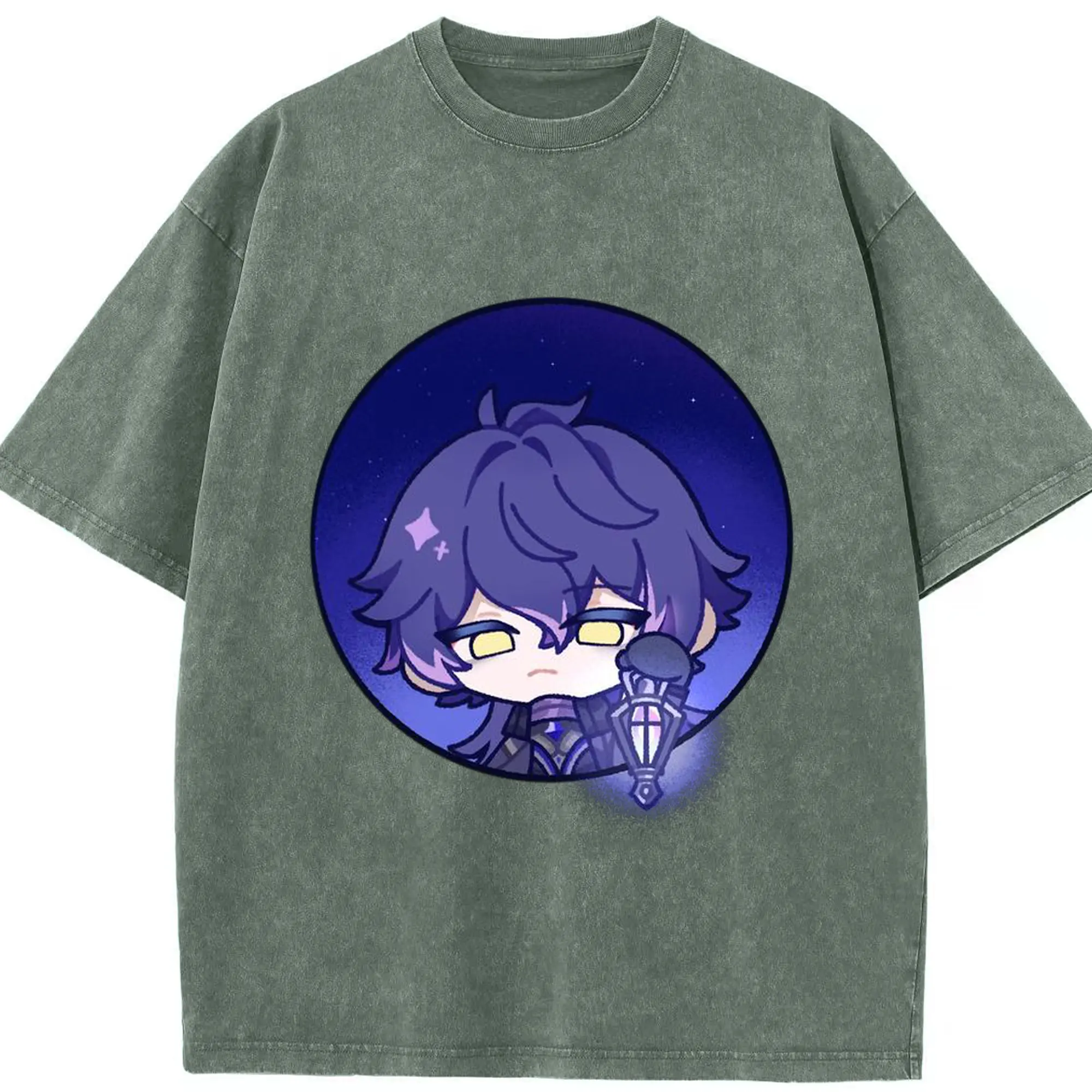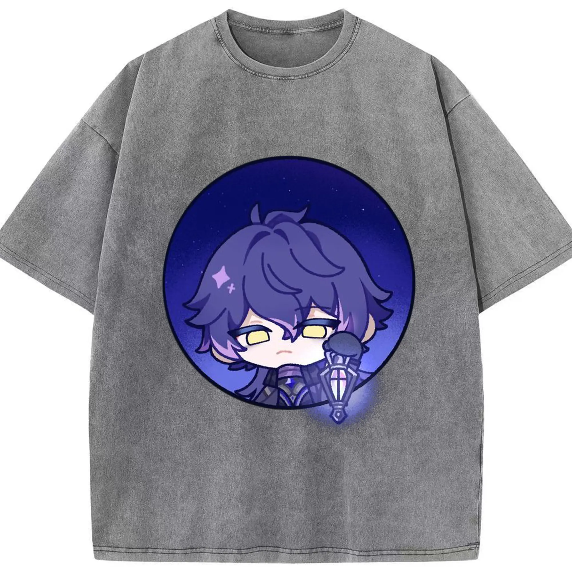 Genshin ナド・クライ フリンズ - 綿100% ヴィンテージ風 半袖Tシャツ ・ フロントプリント ・ 柔らか肌触り ・ 通気性 快適 ・ スポーツ カジュアル 外出用