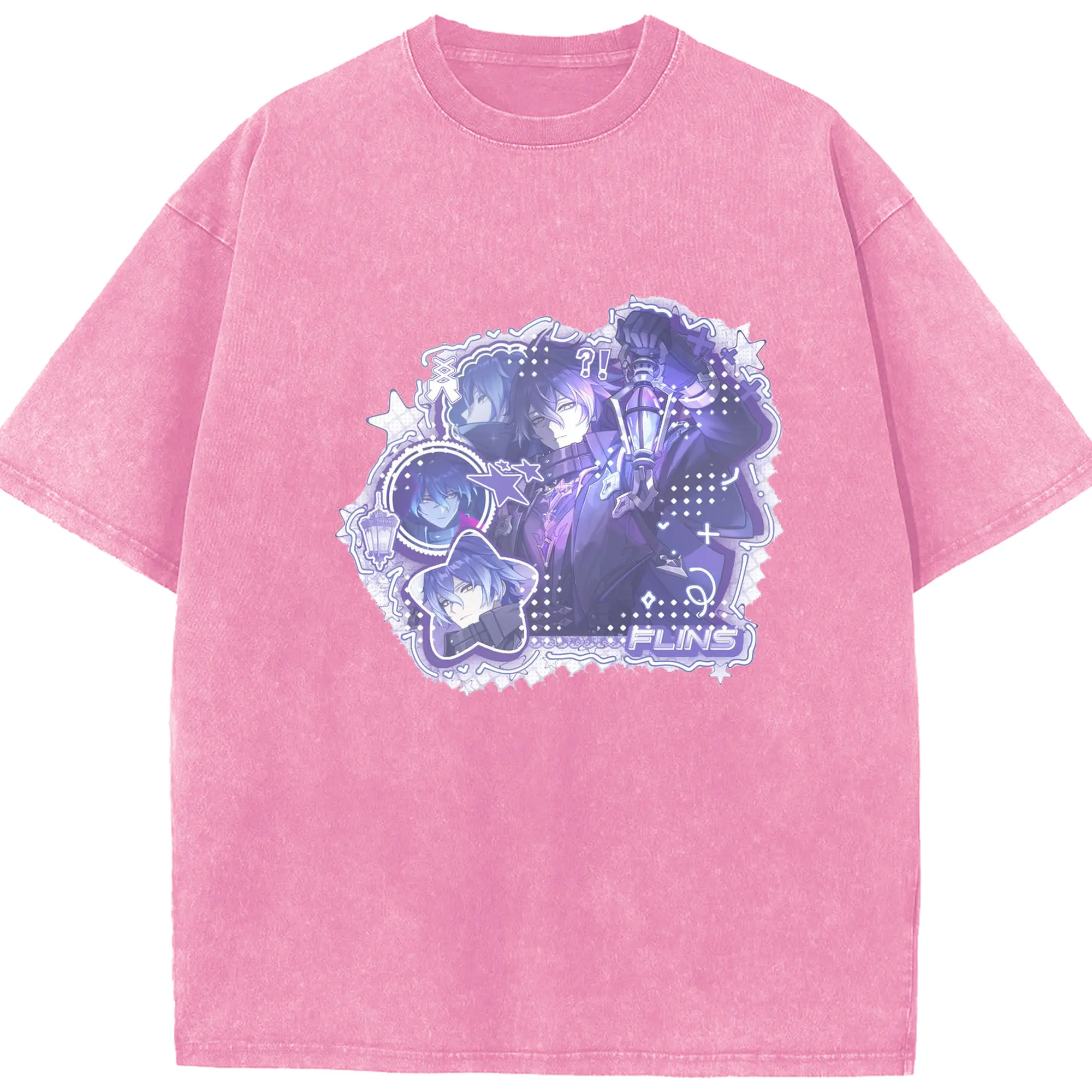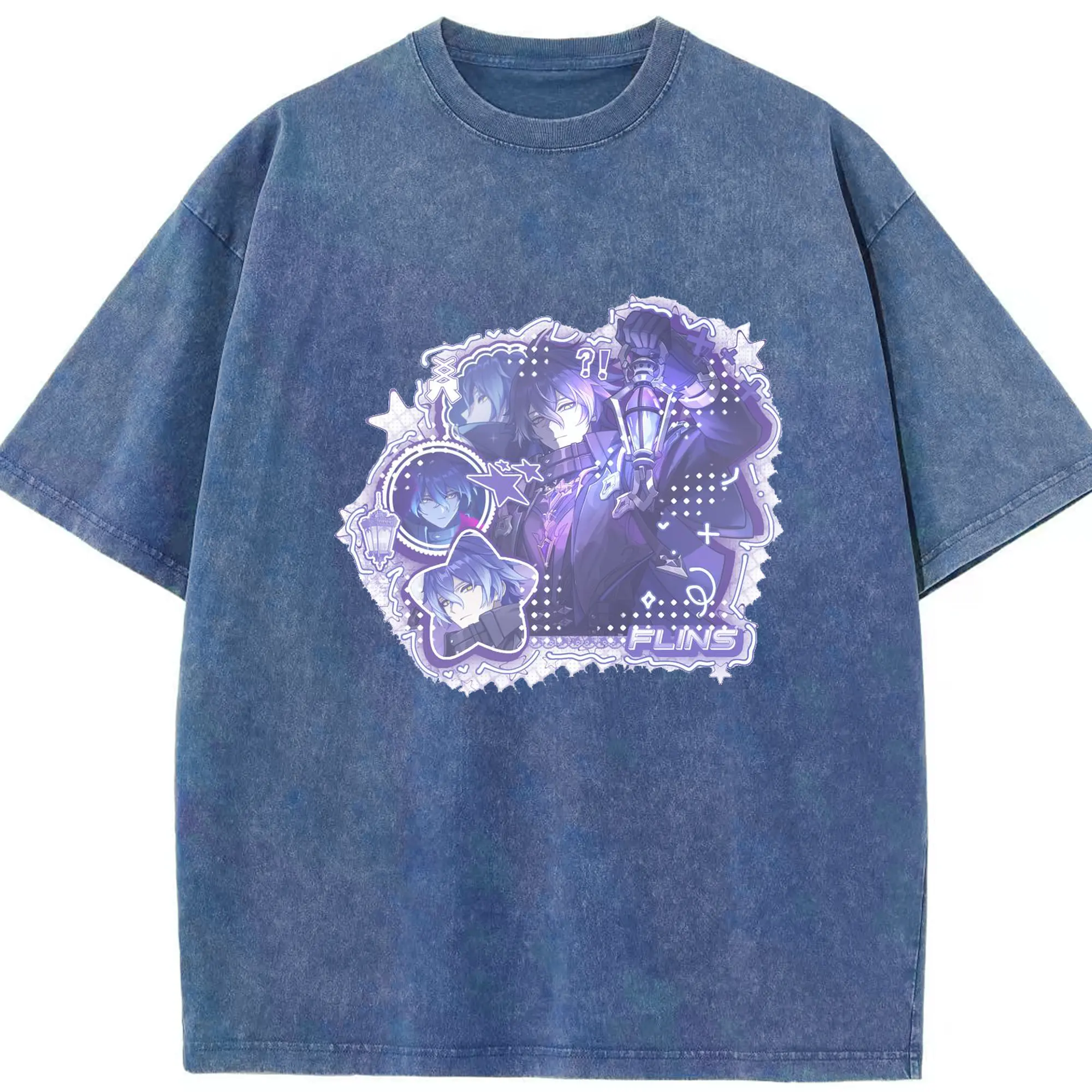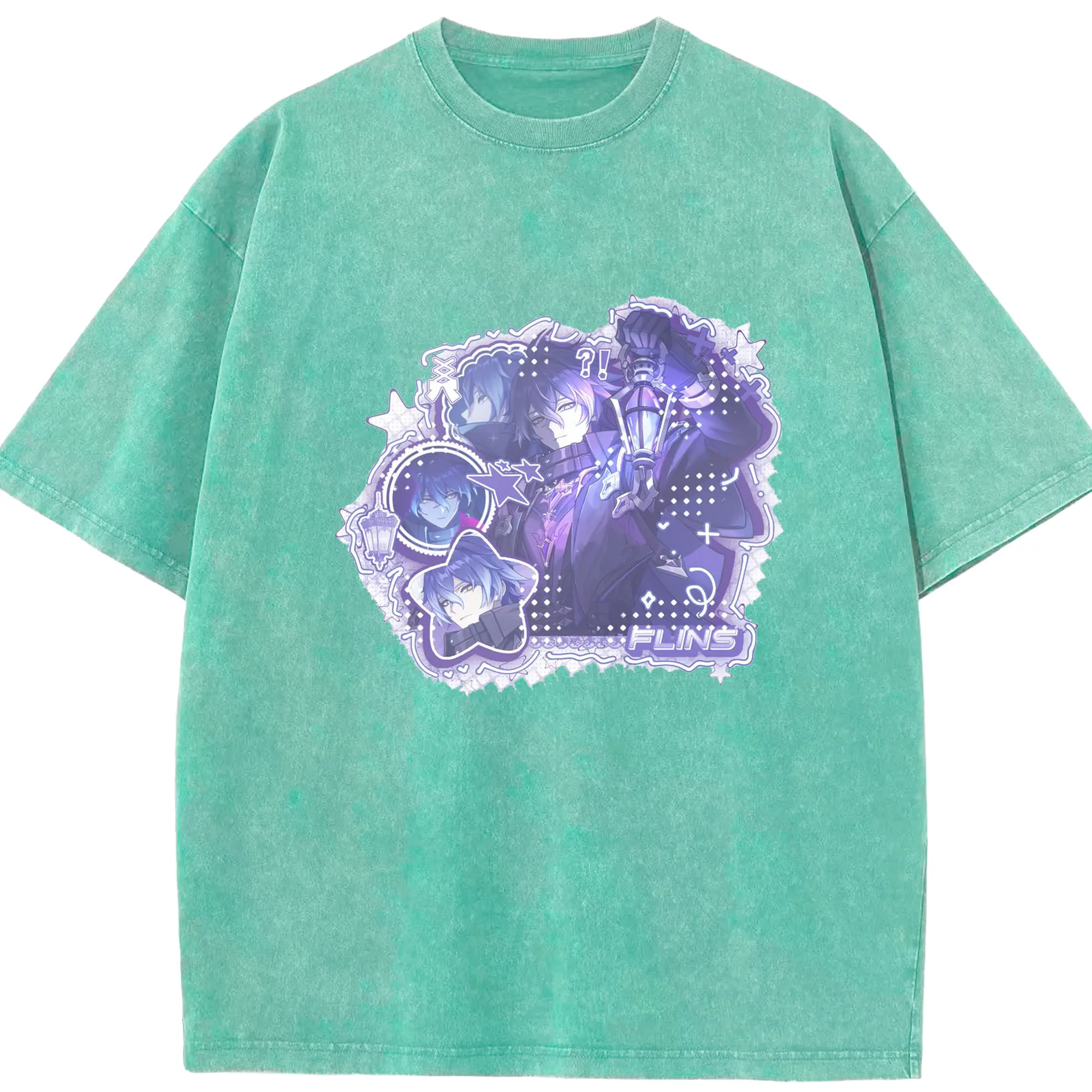 Genshin ナド・クライ フリンズ - 綿100% ヴィンテージ風 半袖Tシャツ ・ フロントプリント ・ 柔らか肌触り ・ 通気性 快適 ・ スポーツ カジュアル 外出用