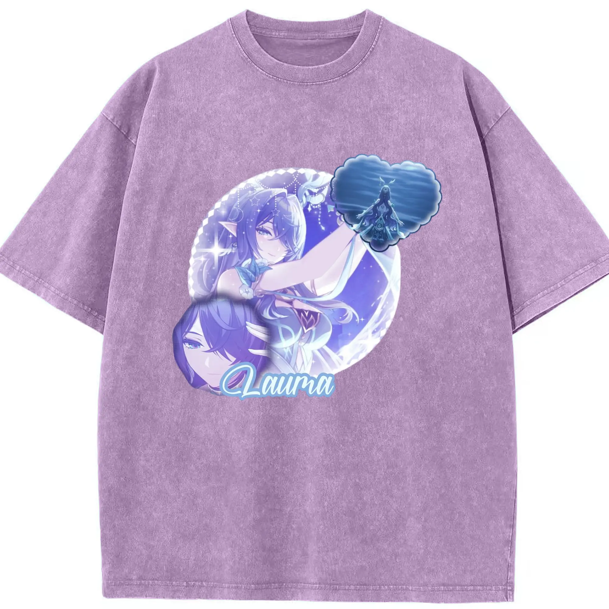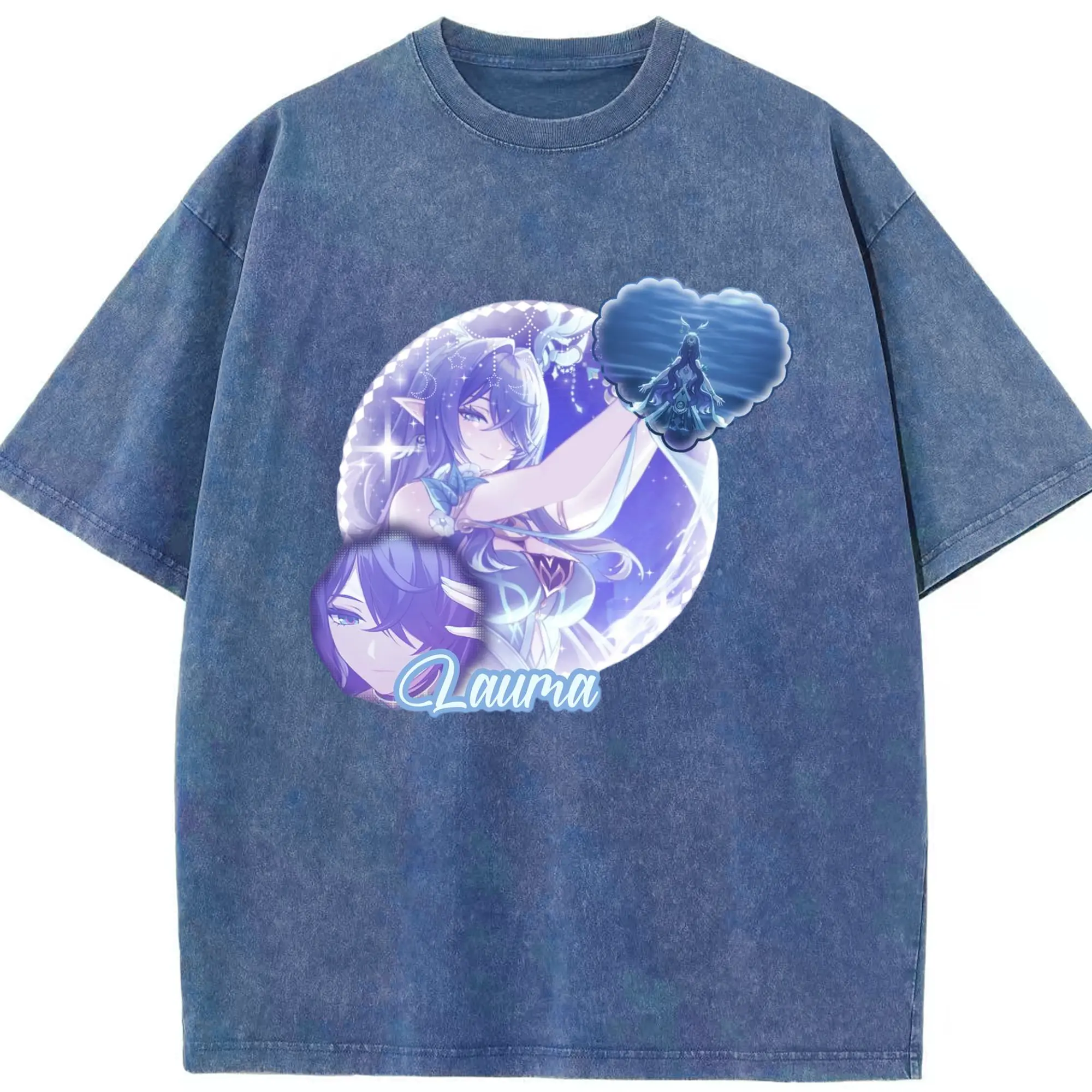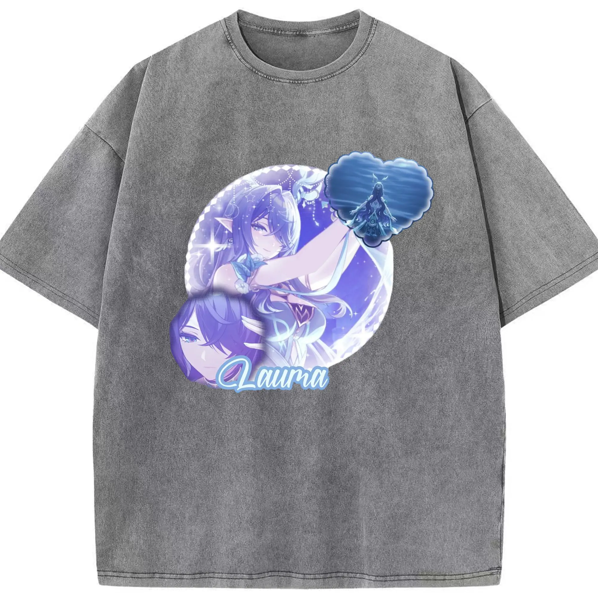 Genshin ナド・クライ ラウマ - 綿100% ヴィンテージ風 半袖Tシャツ ・ フロントプリント ・ 柔らか肌触り ・ 通気性 快適 ・ スポーツ カジュアル 外出用