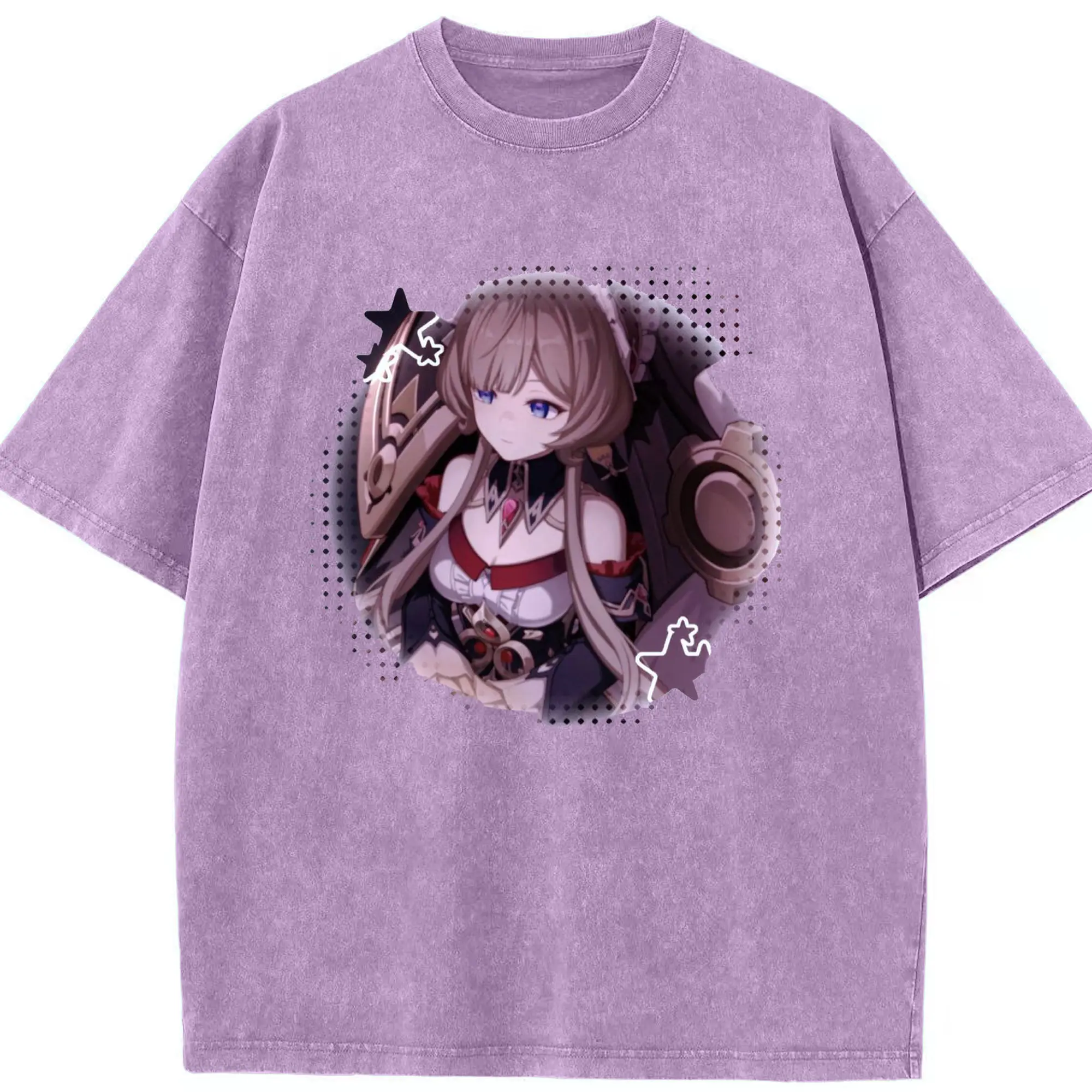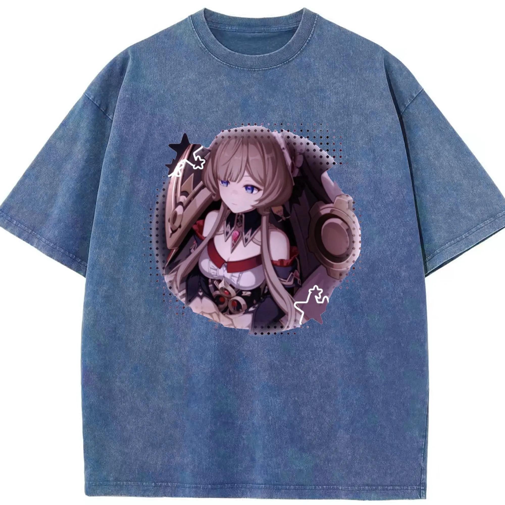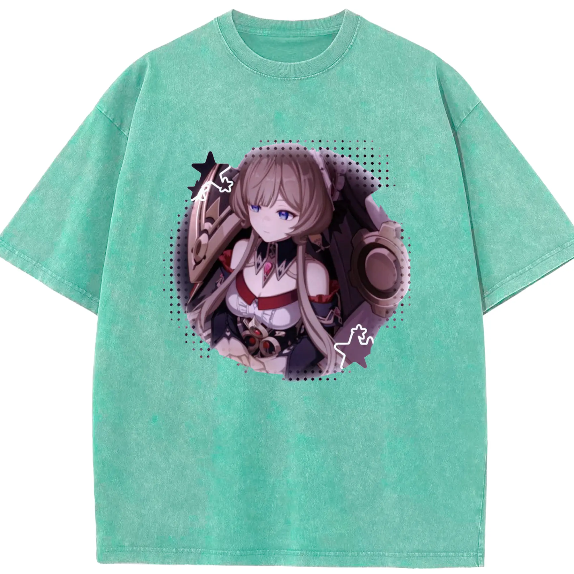 Genshin フォンテーヌ 水神すいじんフォカロルス フリーナ - 綿100% ヴィンテージ風 半袖Tシャツ ・ フロントプリント ・ 柔らか肌触り ・ 通気性 快適 ・ スポーツ カジュアル 外出用