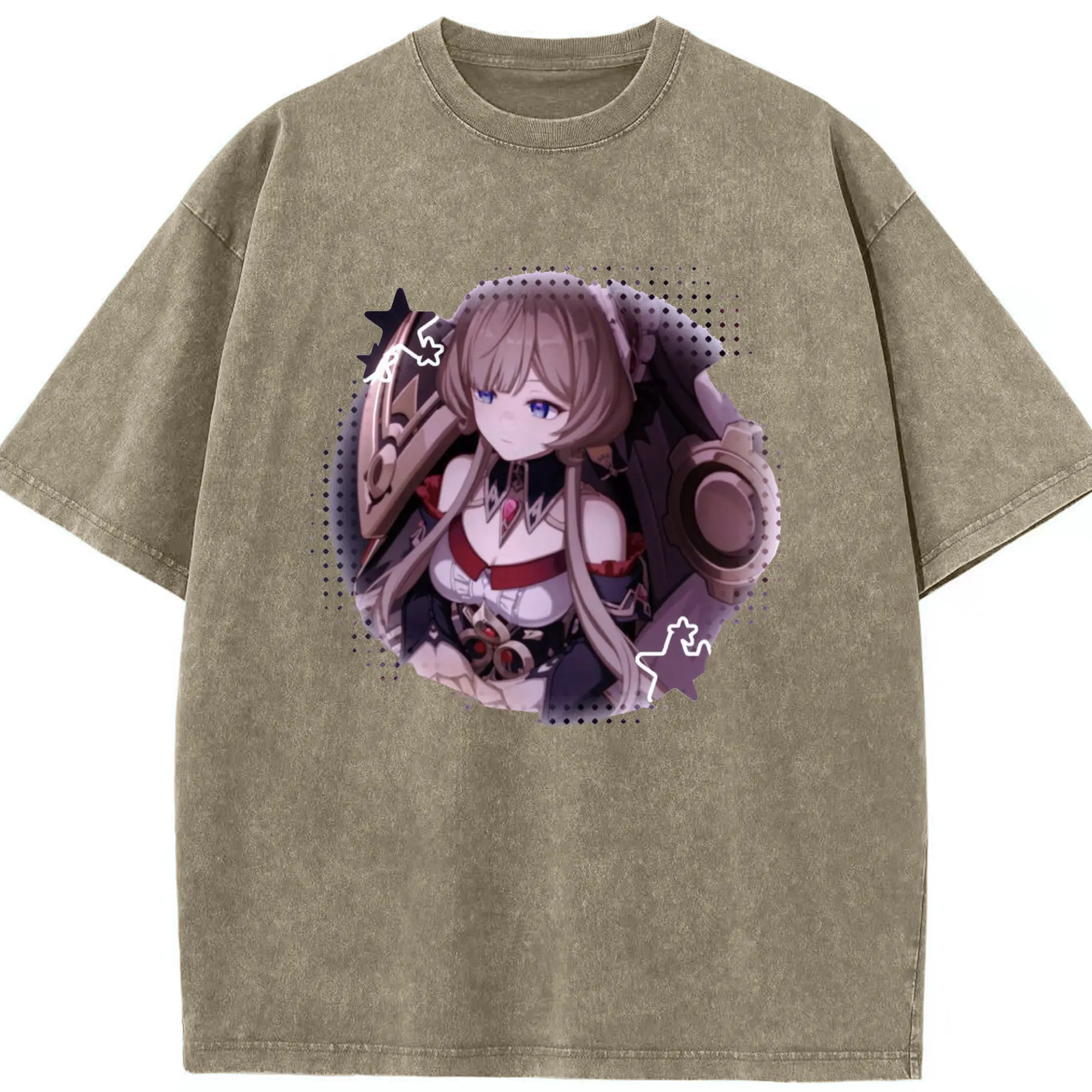 Genshin ナド・クライ 傀儡 サンドローネ - 綿100% ヴィンテージ風 半袖Tシャツ ・ フロントプリント ・ 柔らか肌触り ・ 通気性 快適 ・ スポーツ カジュアル 外出用