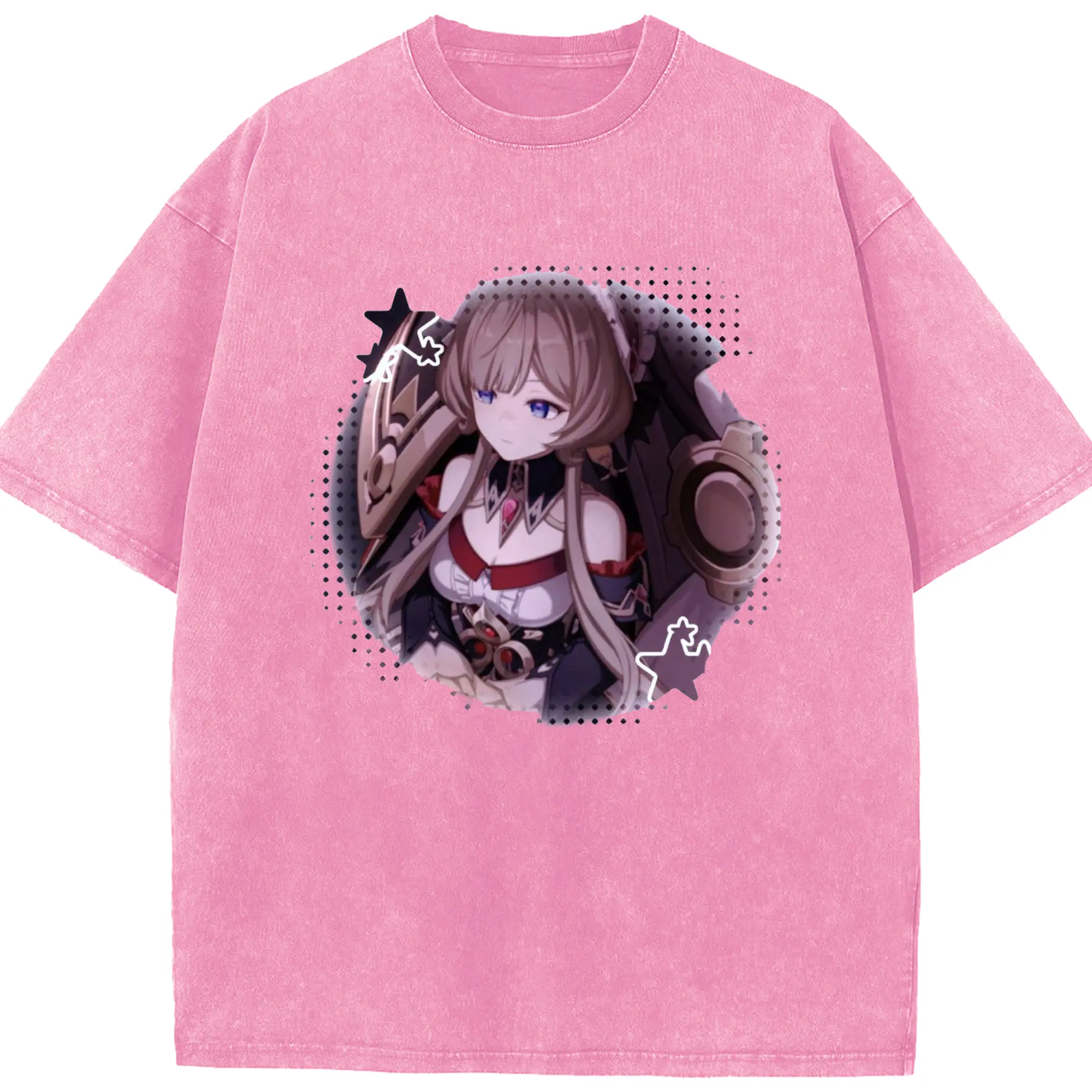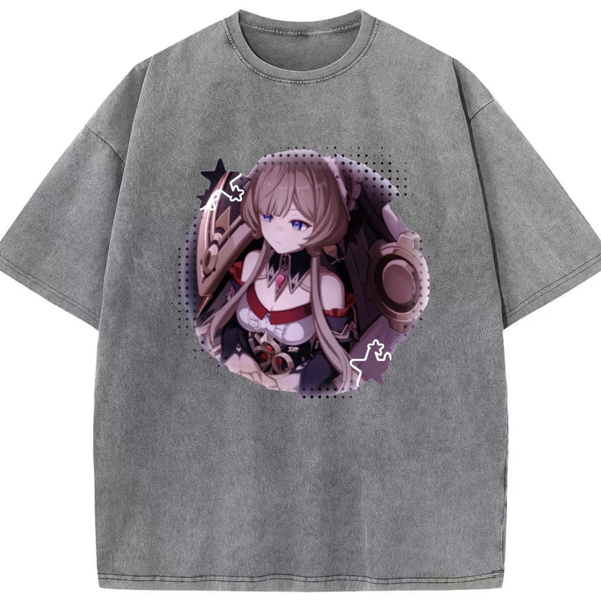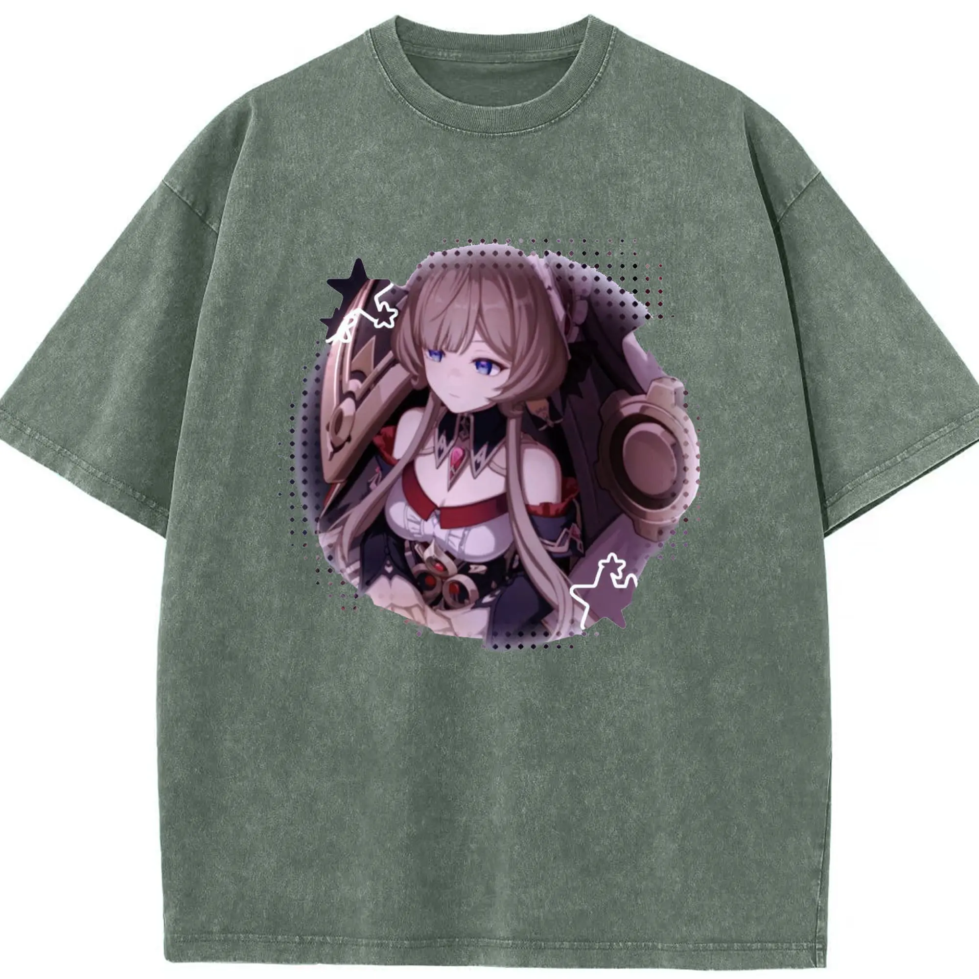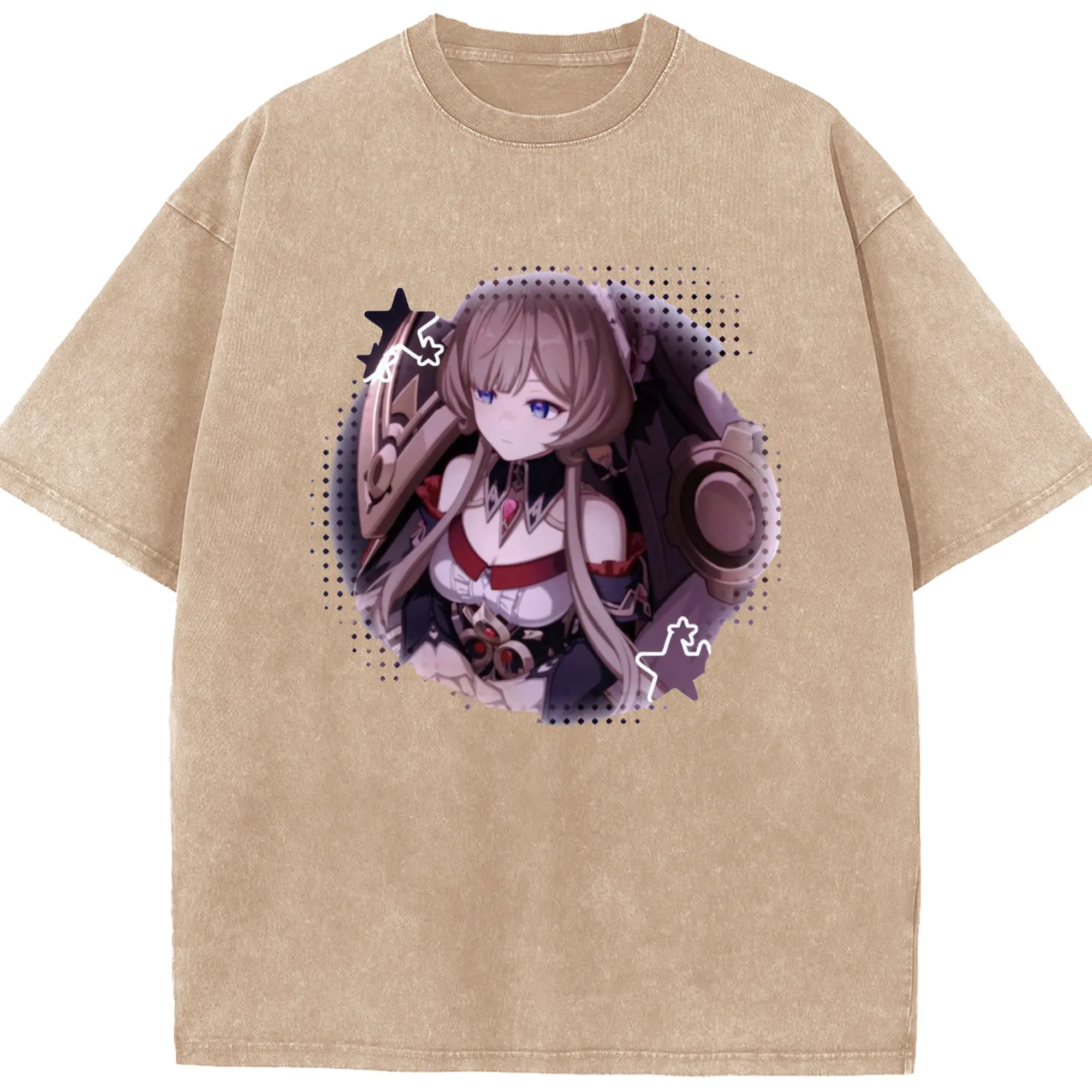 Genshin ナド・クライ 傀儡 サンドローネ - 綿100% ヴィンテージ風 半袖Tシャツ ・ フロントプリント ・ 柔らか肌触り ・ 通気性 快適 ・ スポーツ カジュアル 外出用