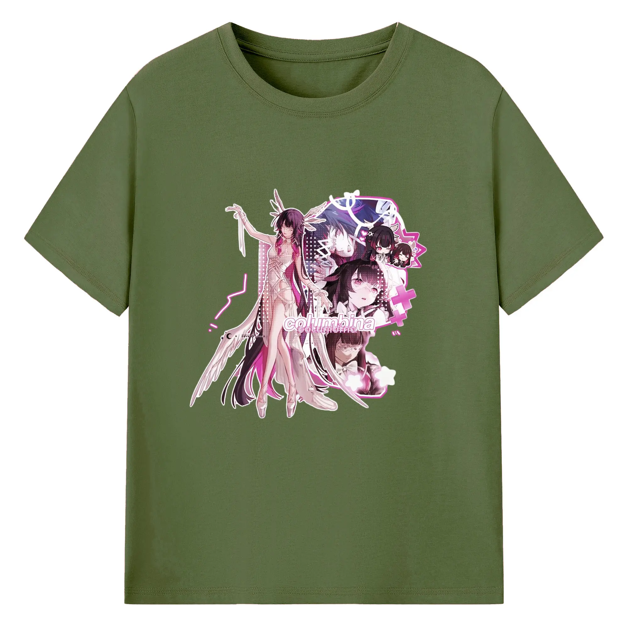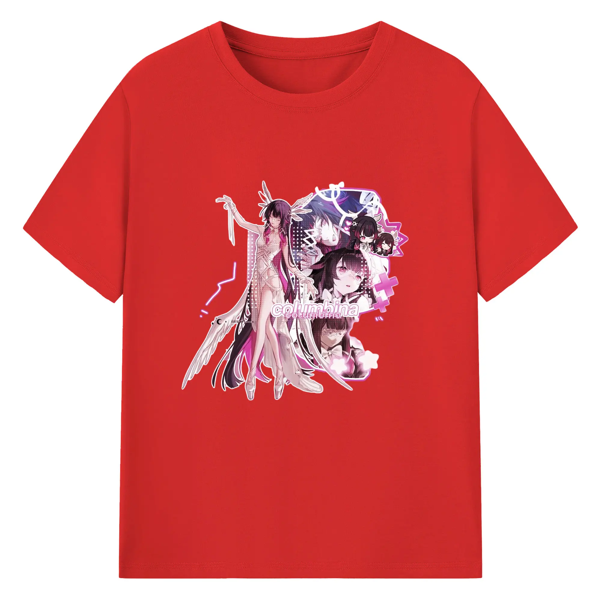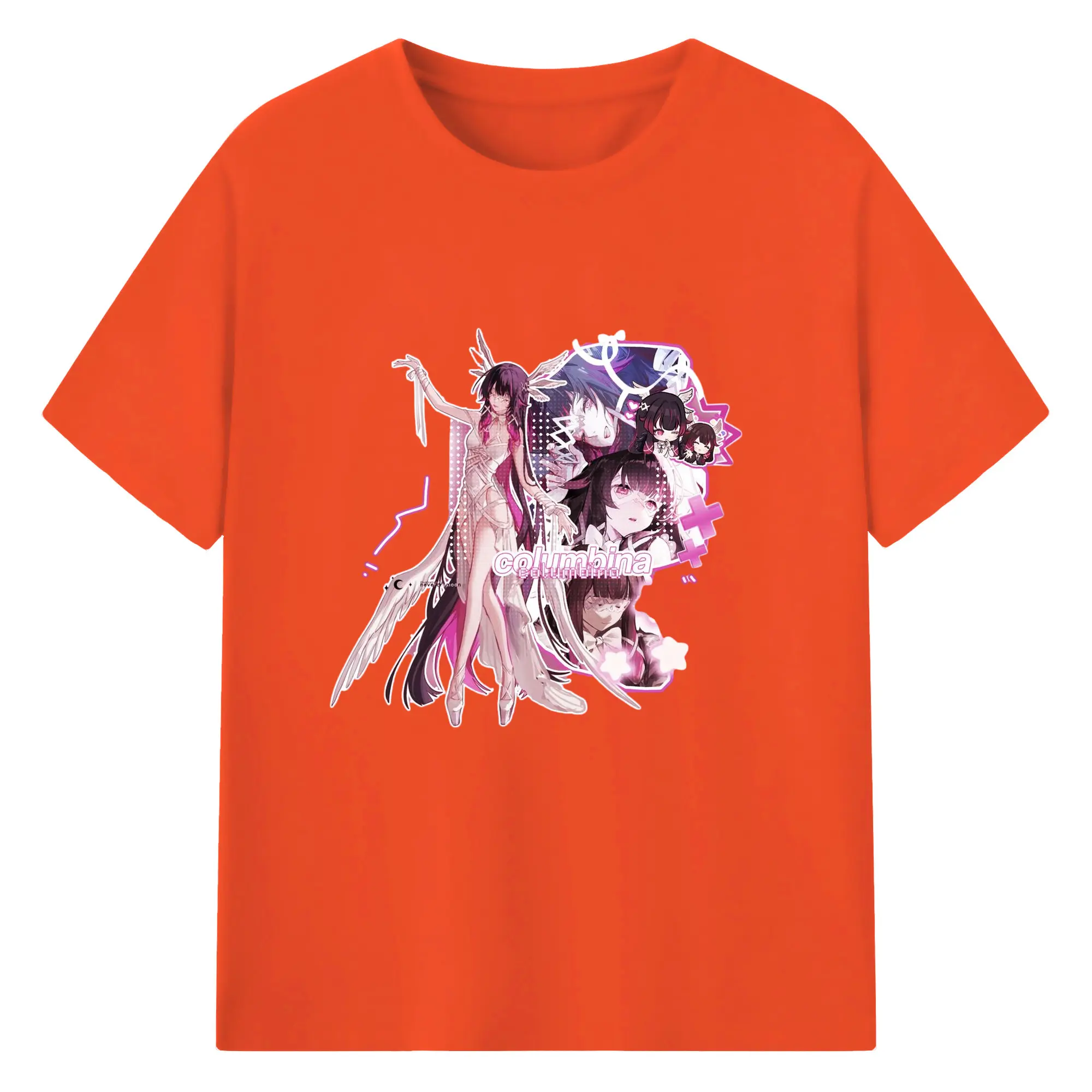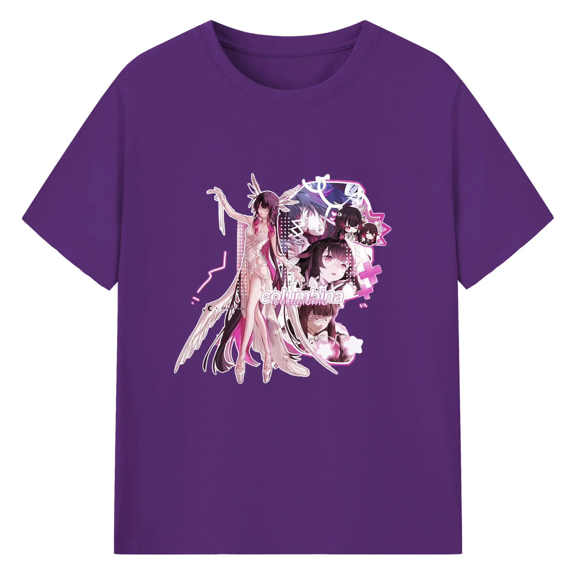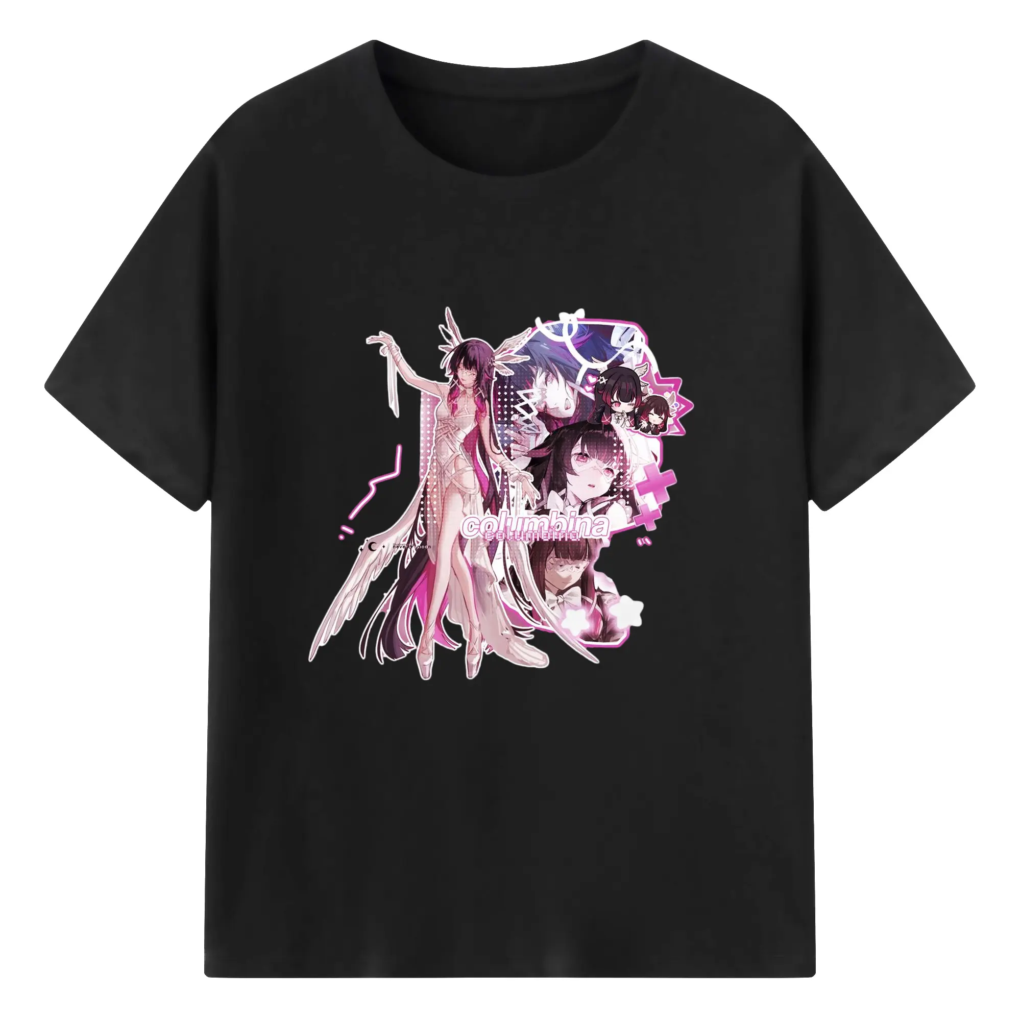 Genshin ナド・クライ 月神 げっしん コロンビーナ - 綿100% 半袖Tシャツ ・ フロントプリント ・ 快適 通気性 ・ 日常使い 散歩 スポーツ用