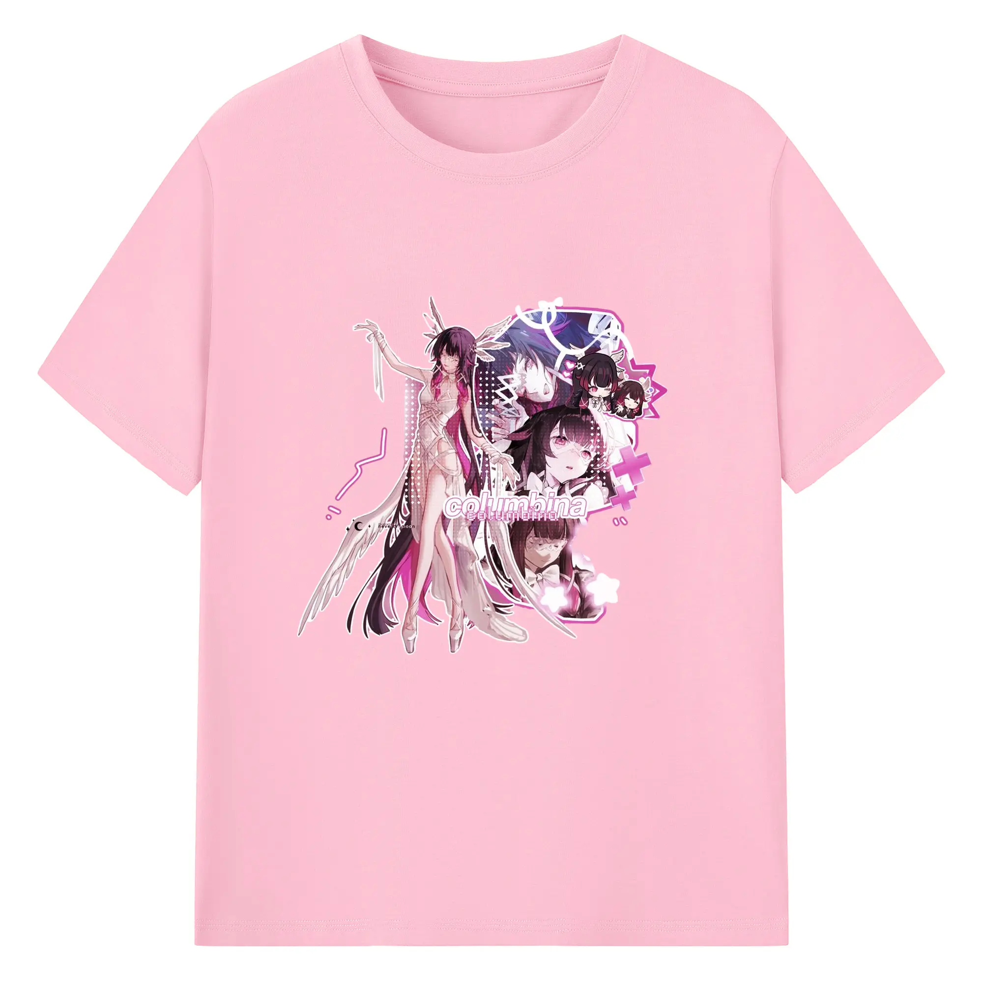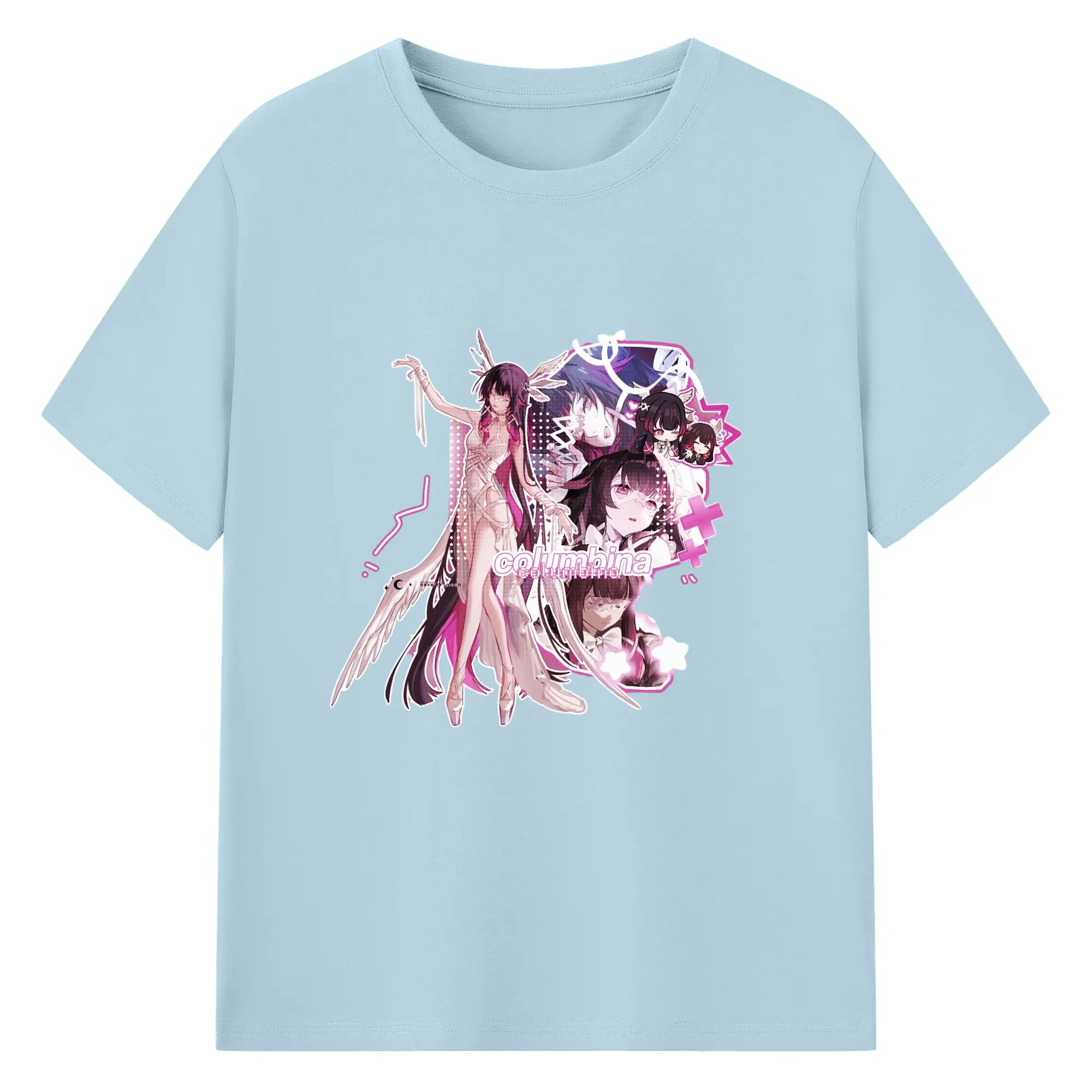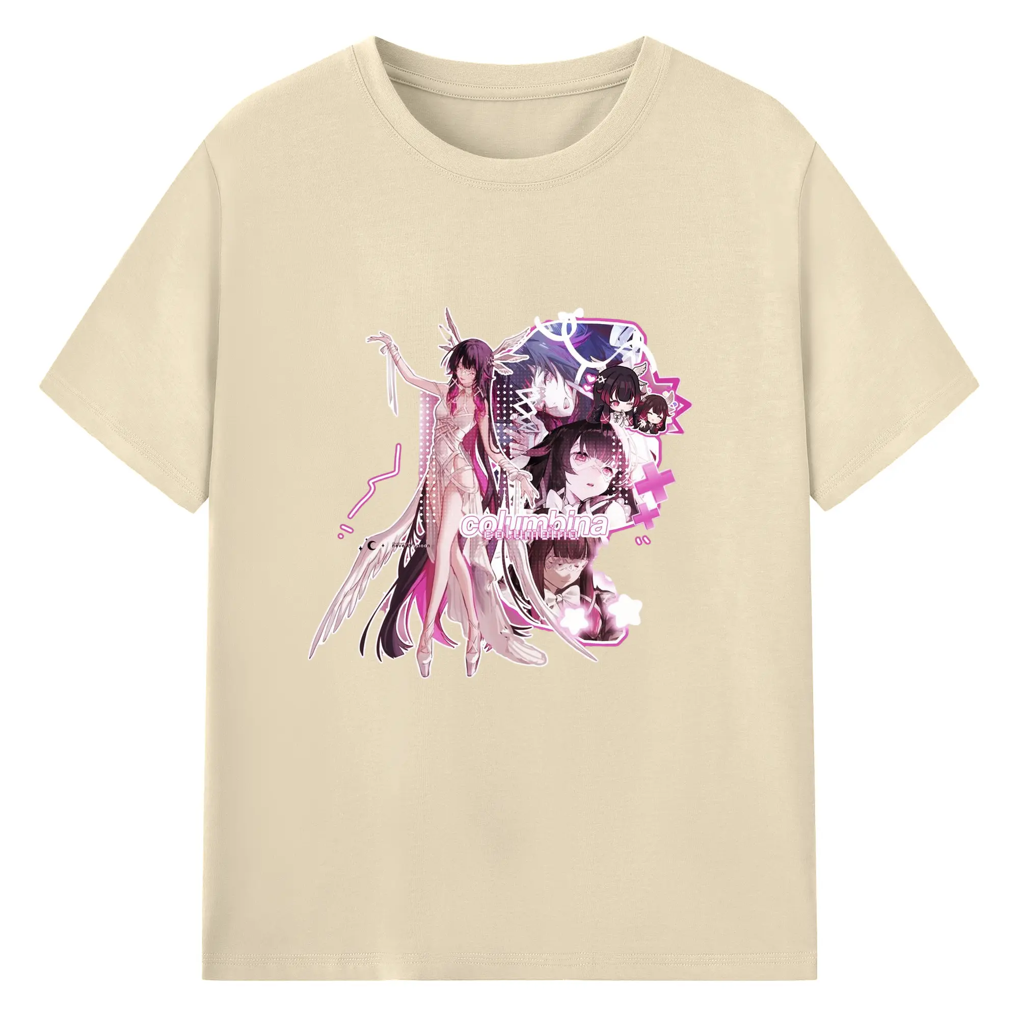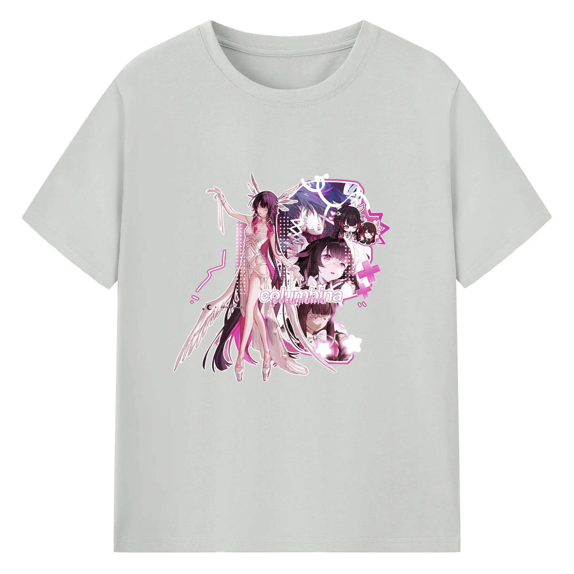 Genshin ナド・クライ 月神 げっしん コロンビーナ - 綿100% 半袖Tシャツ ・ フロントプリント ・ 快適 通気性 ・ 日常使い 散歩 スポーツ用