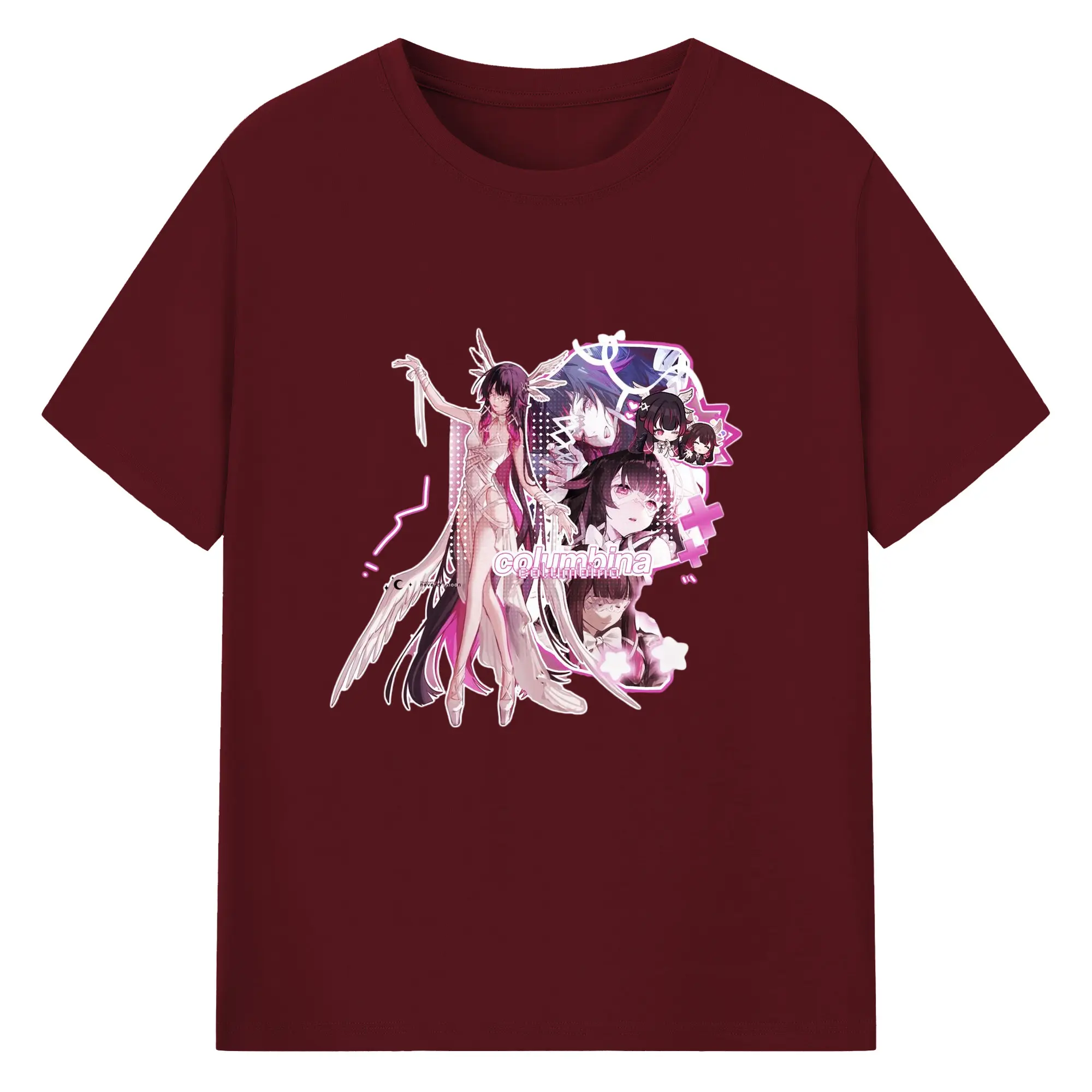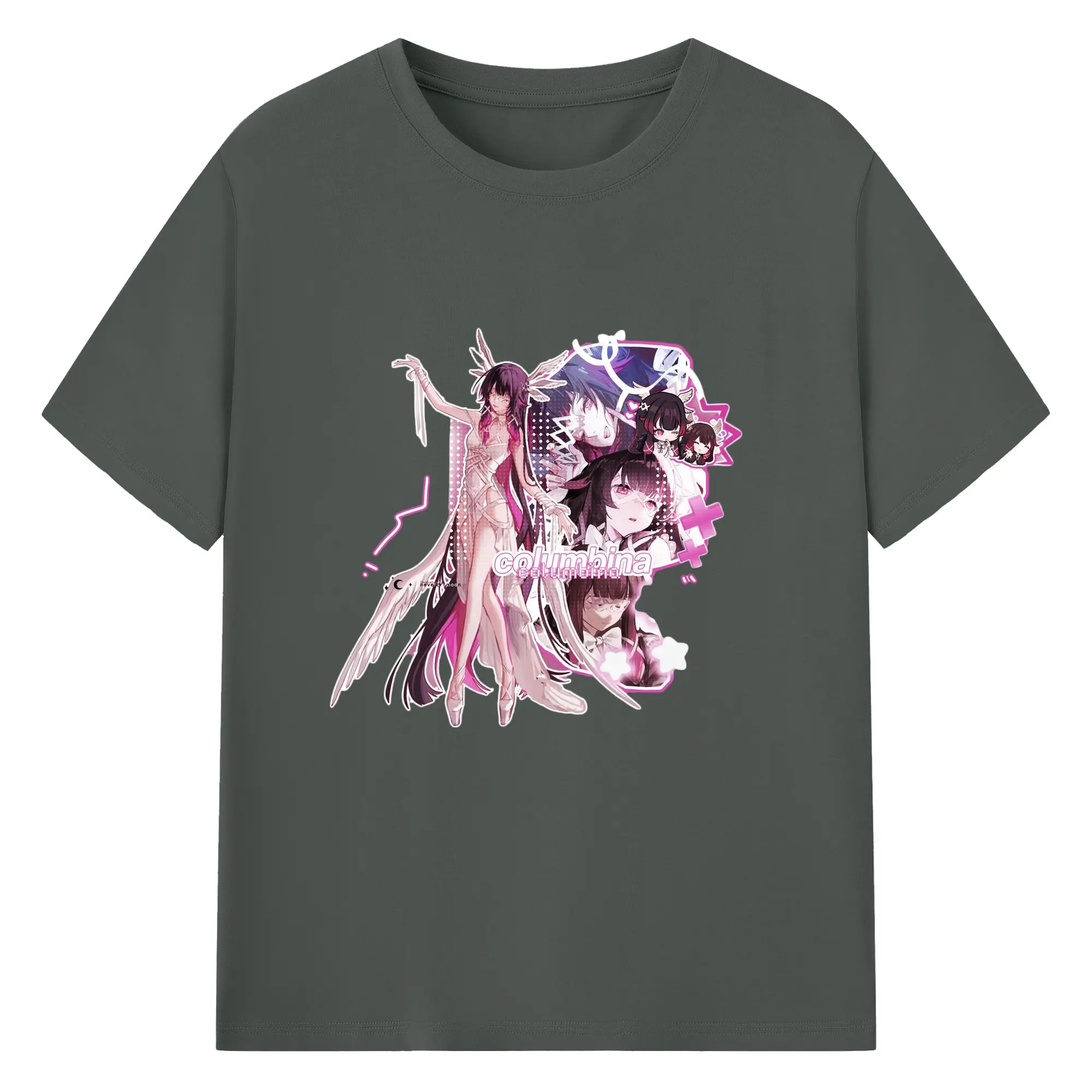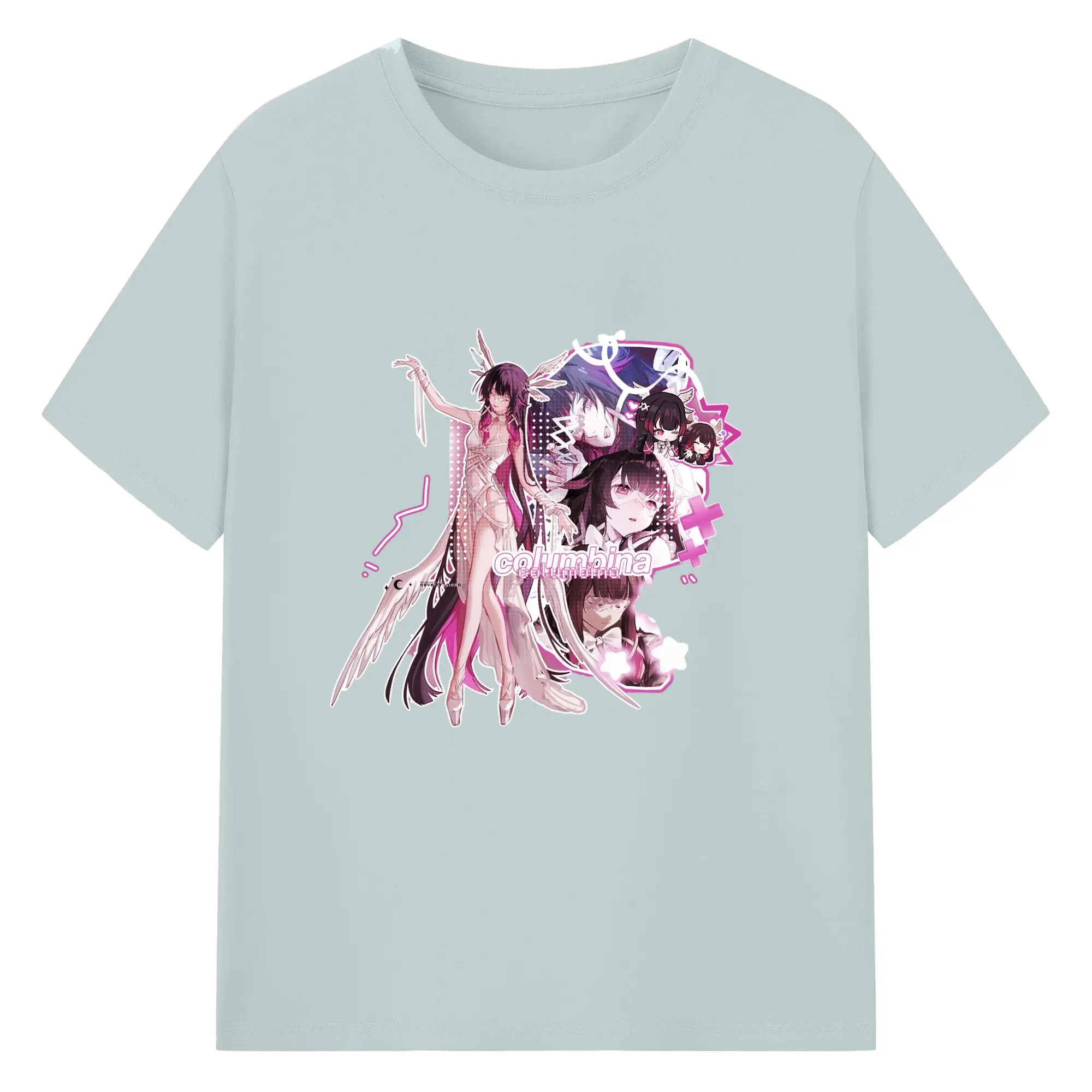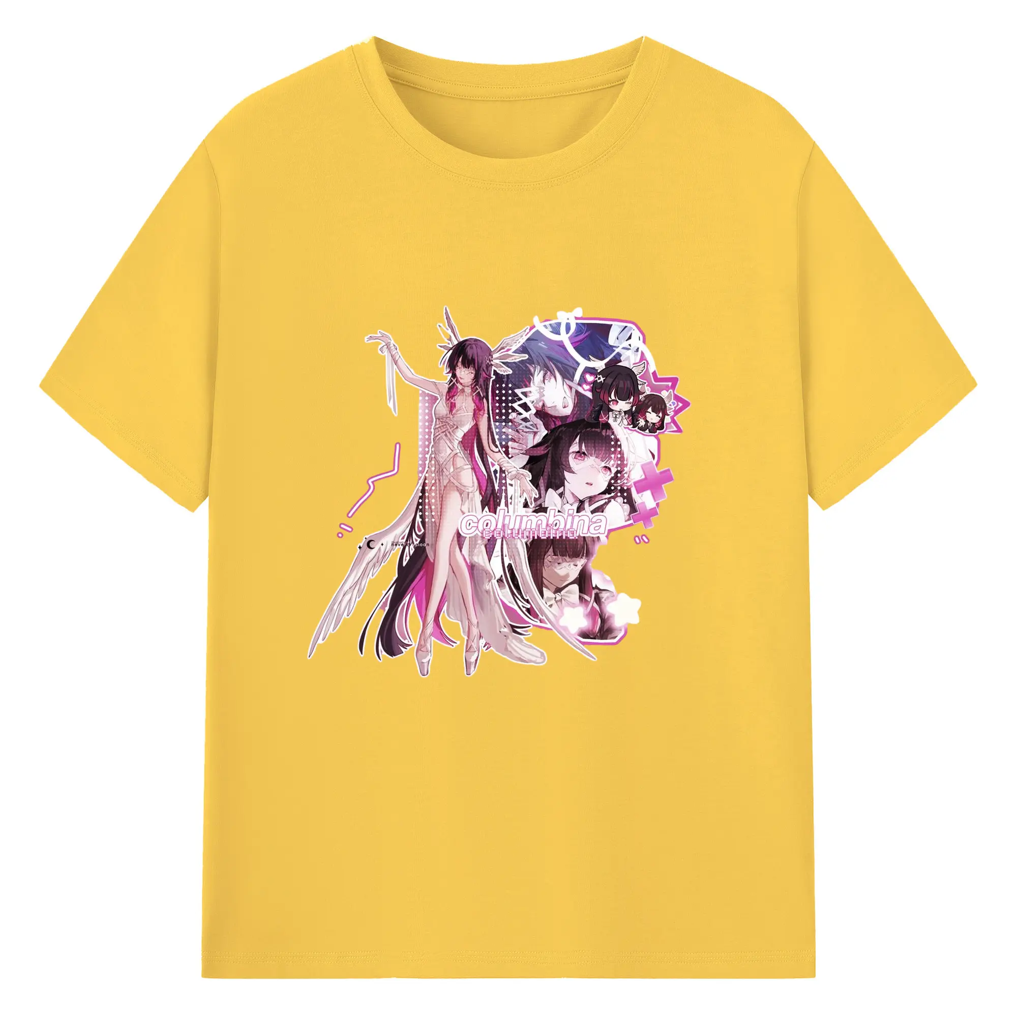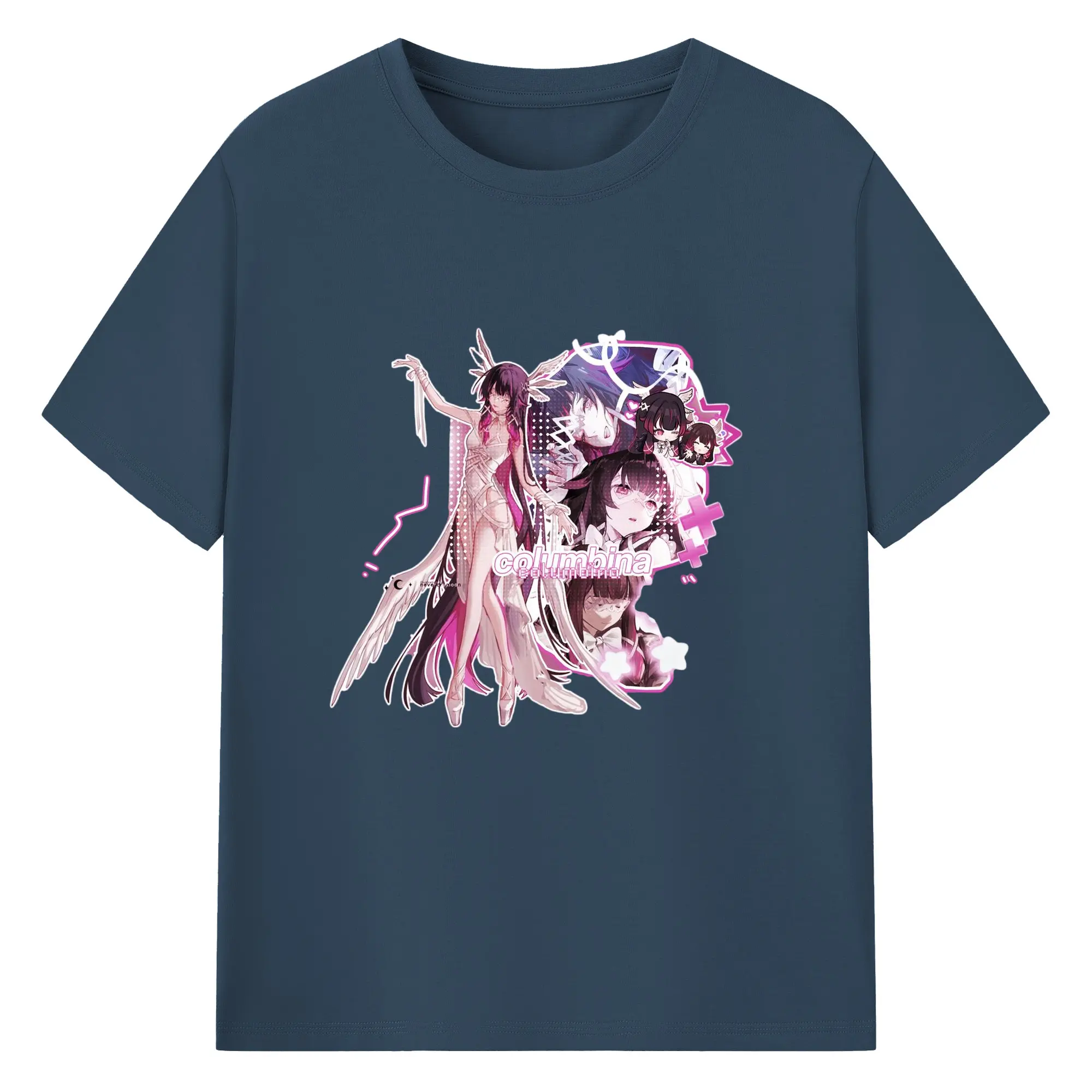 Genshin ナド・クライ 月神 げっしん コロンビーナ - 綿100% 半袖Tシャツ ・ フロントプリント ・ 快適 通気性 ・ 日常使い 散歩 スポーツ用