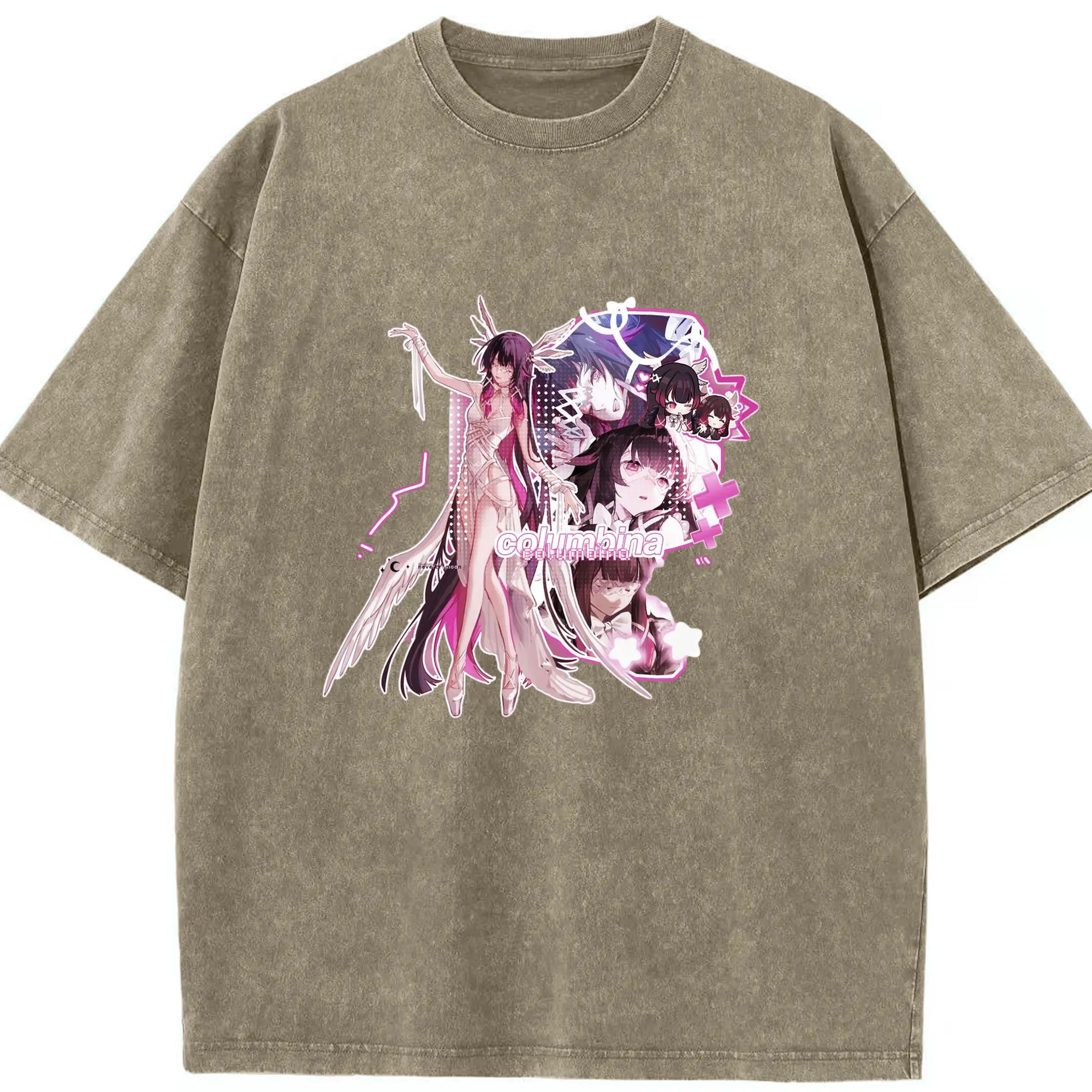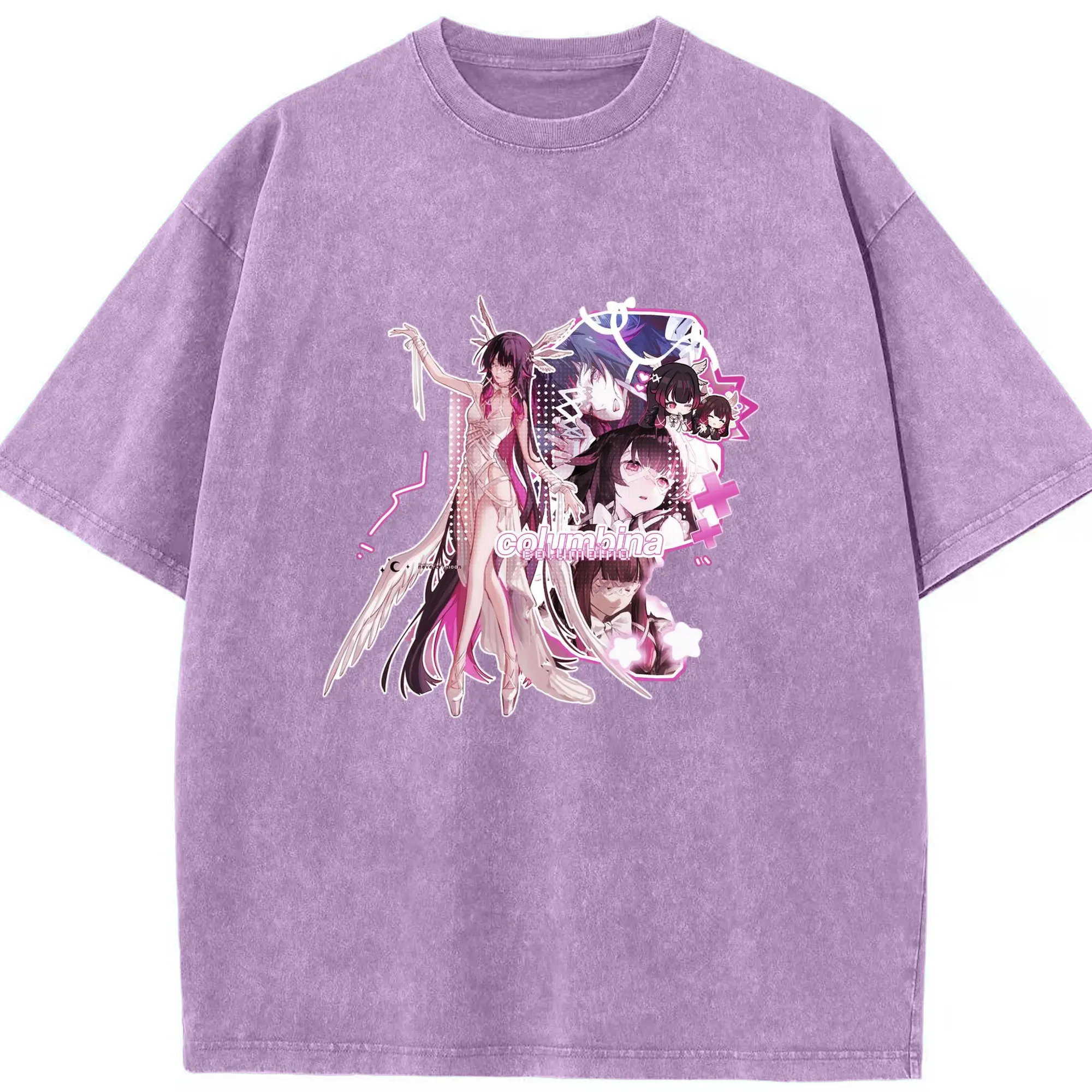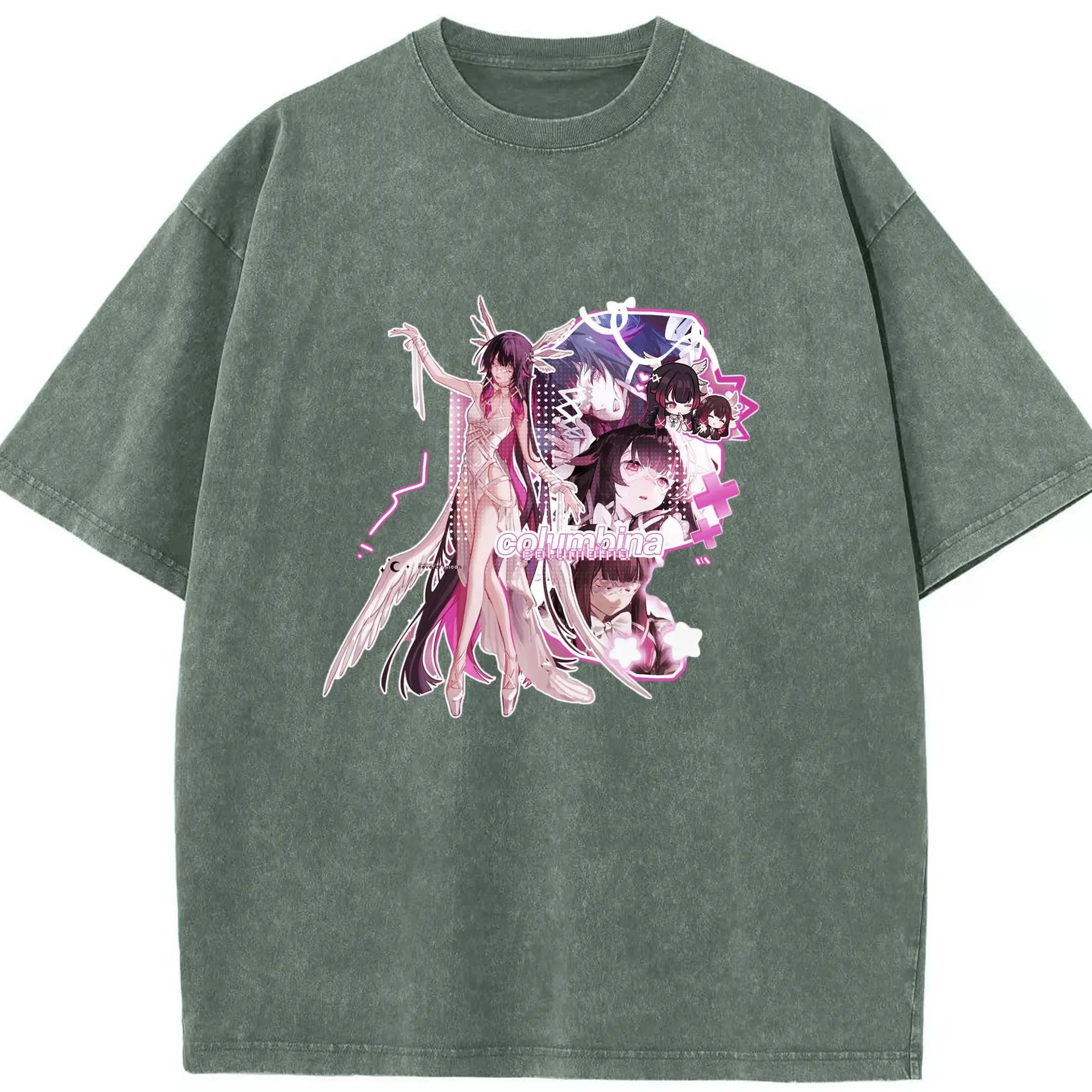 Genshin ナド・クライ 月神 げっしん コロンビーナ - 綿100% ヴィンテージ風 半袖Tシャツ ・ フロントプリント ・ 柔らか肌触り ・ 通気性 快適 ・ スポーツ カジュアル 外出用