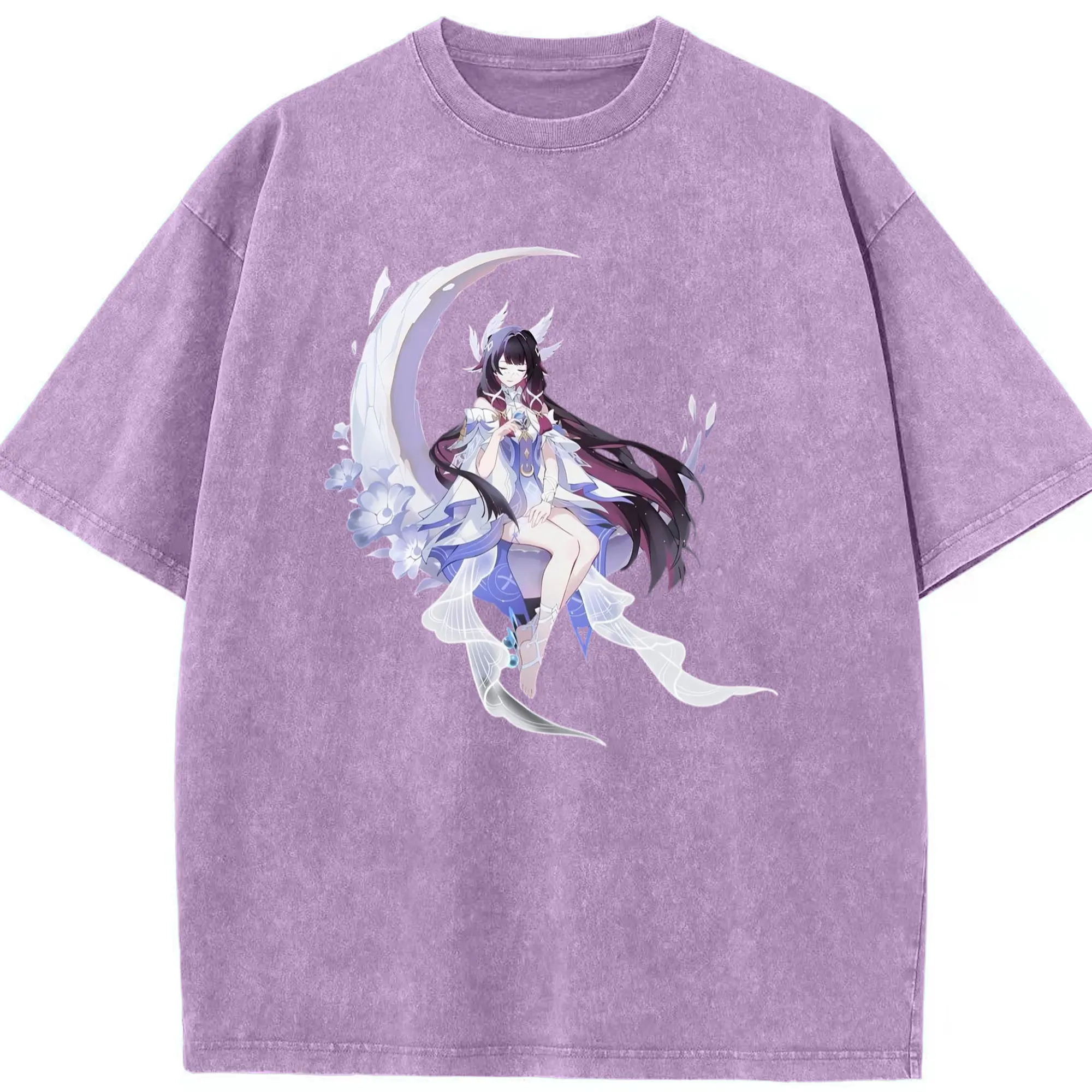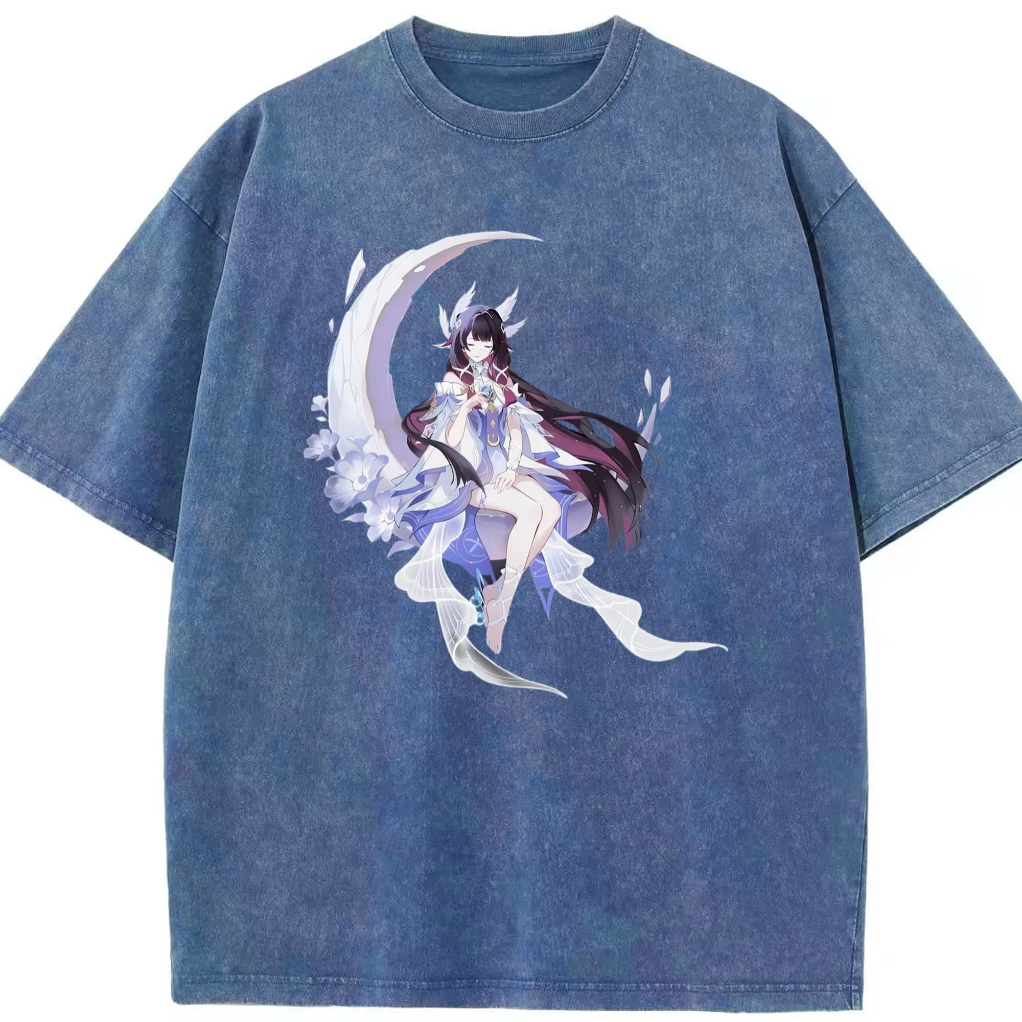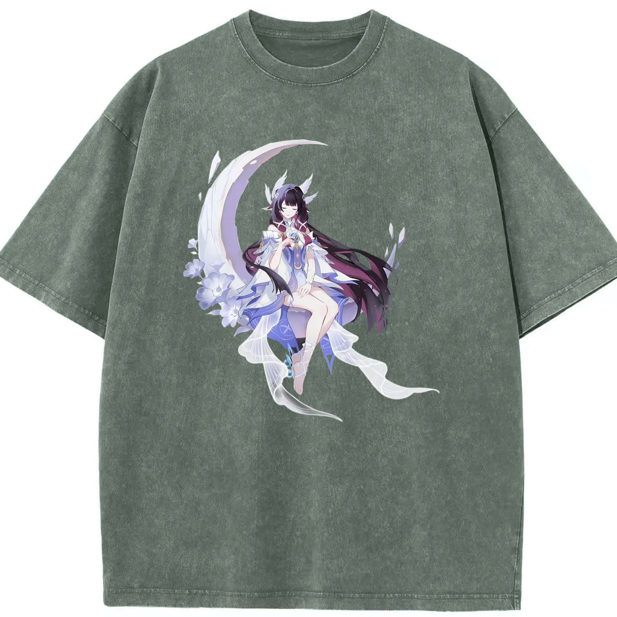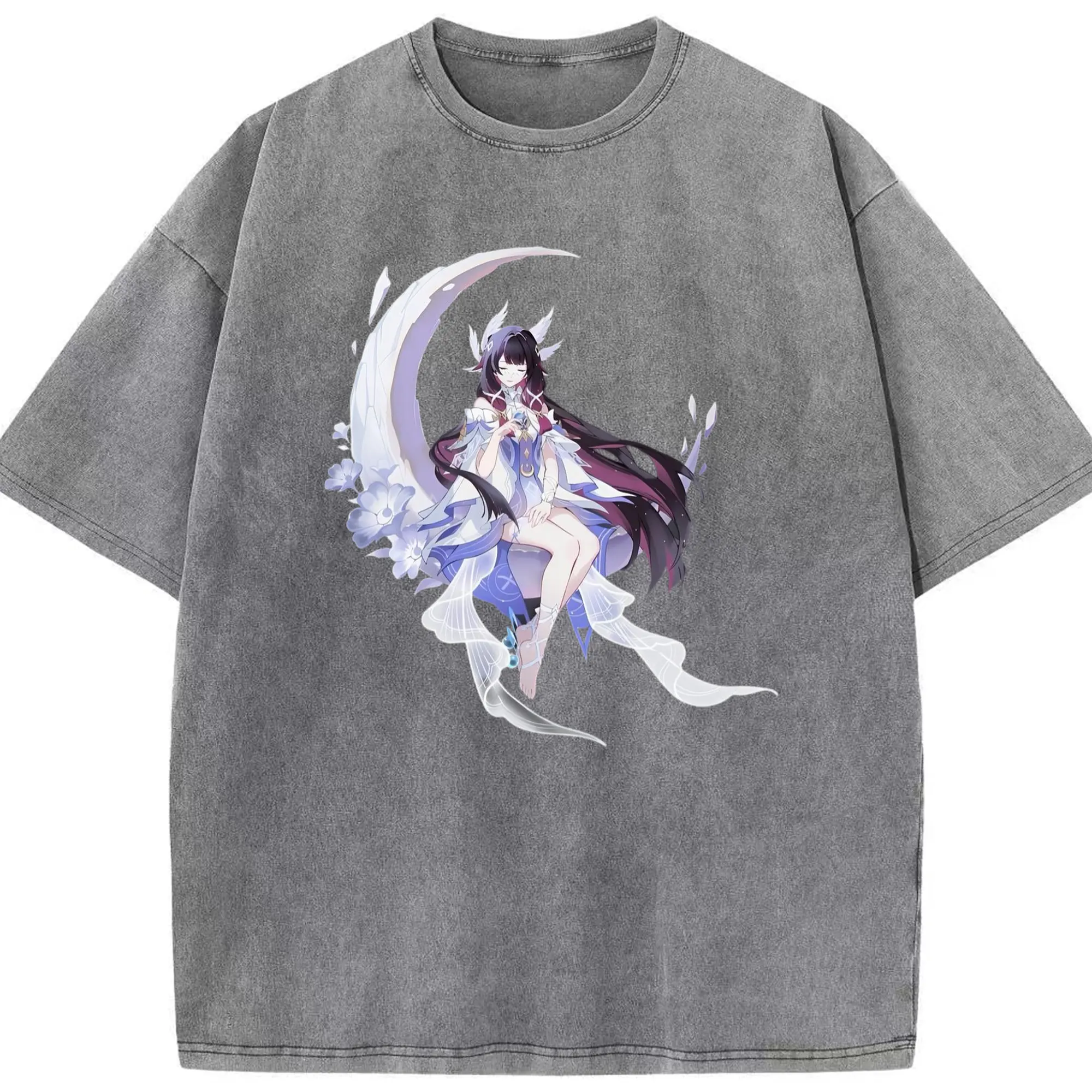 Genshin ナド・クライ 月神 げっしん コロンビーナ - 綿100% ヴィンテージ風 半袖Tシャツ ・ フロントプリント ・ 柔らか肌触り ・ 通気性 快適 ・ スポーツ カジュアル 外出用
