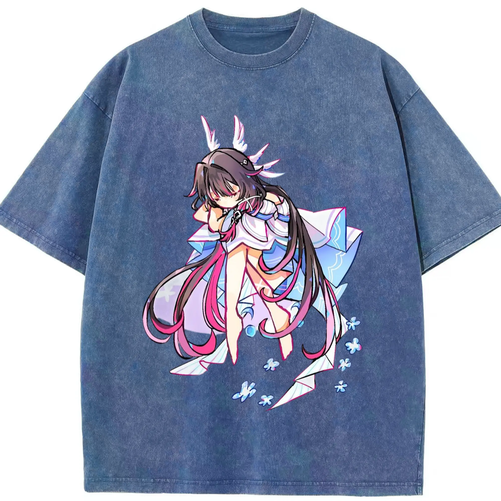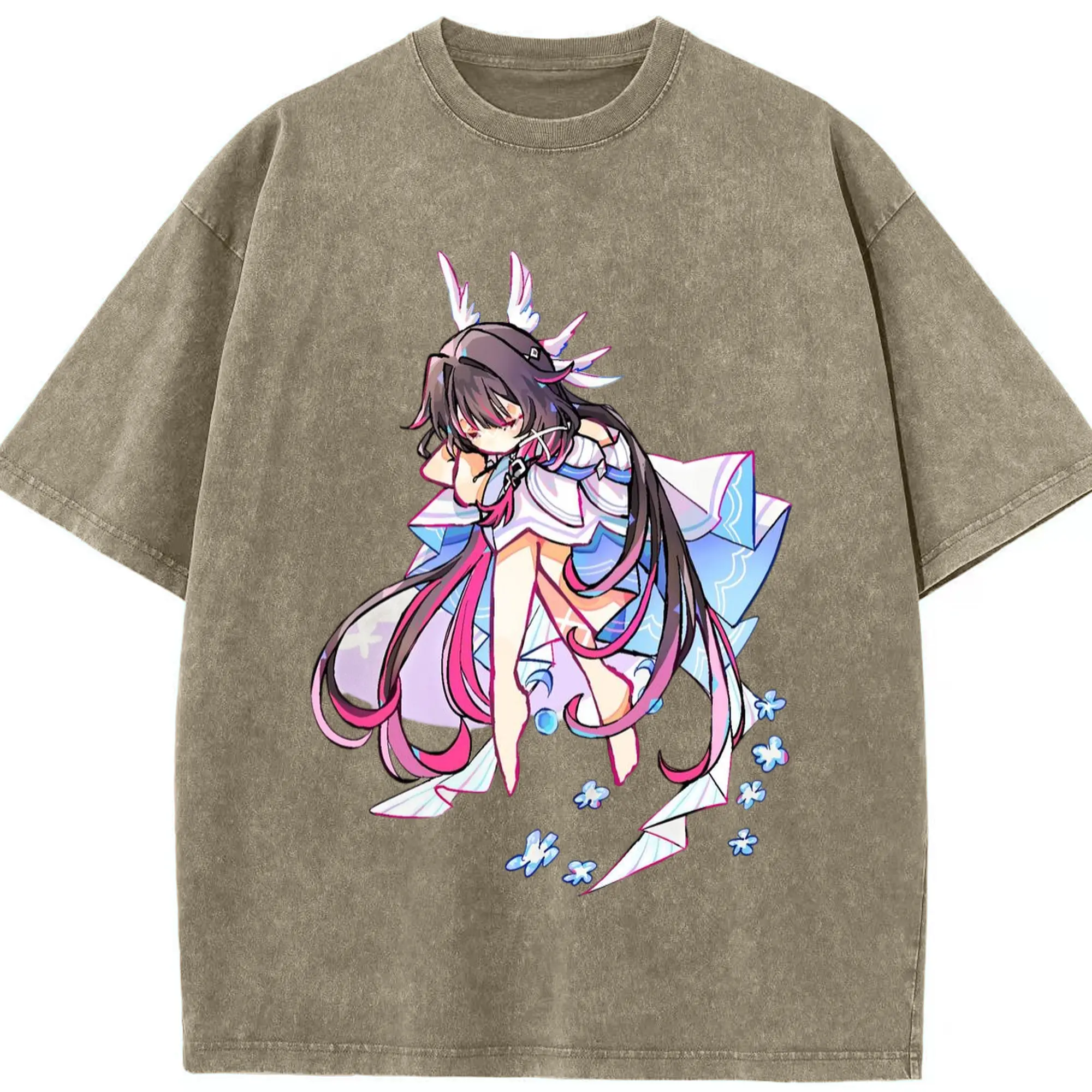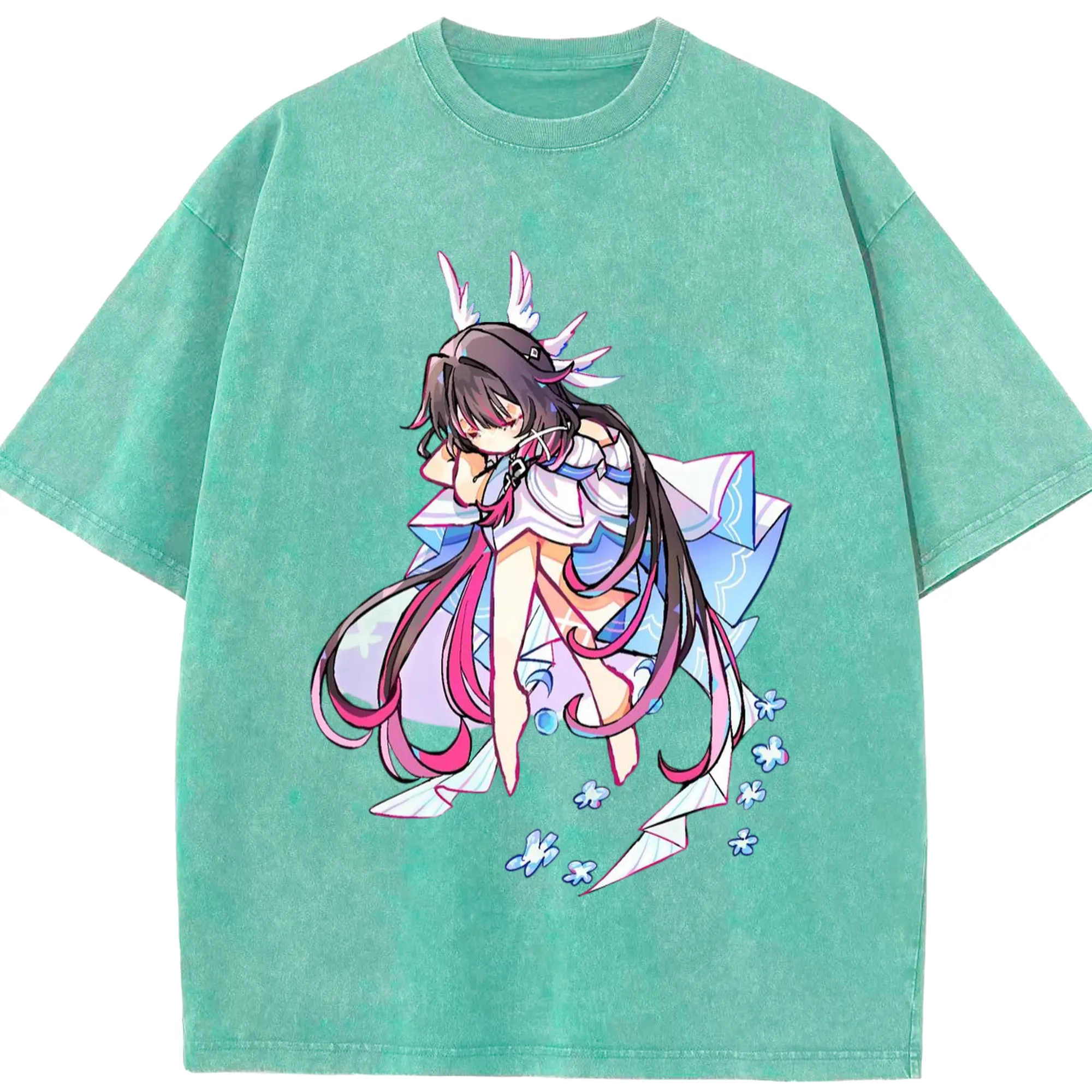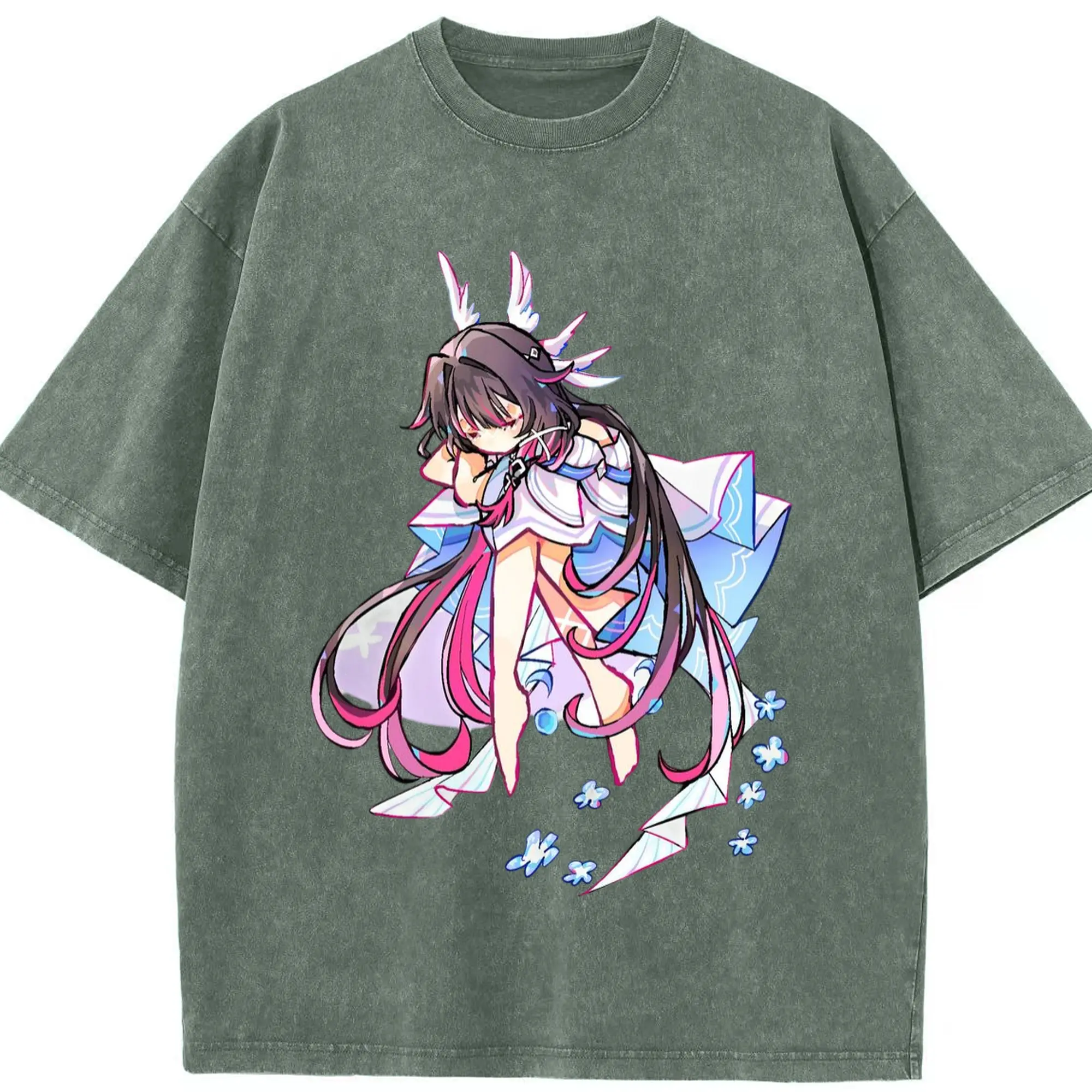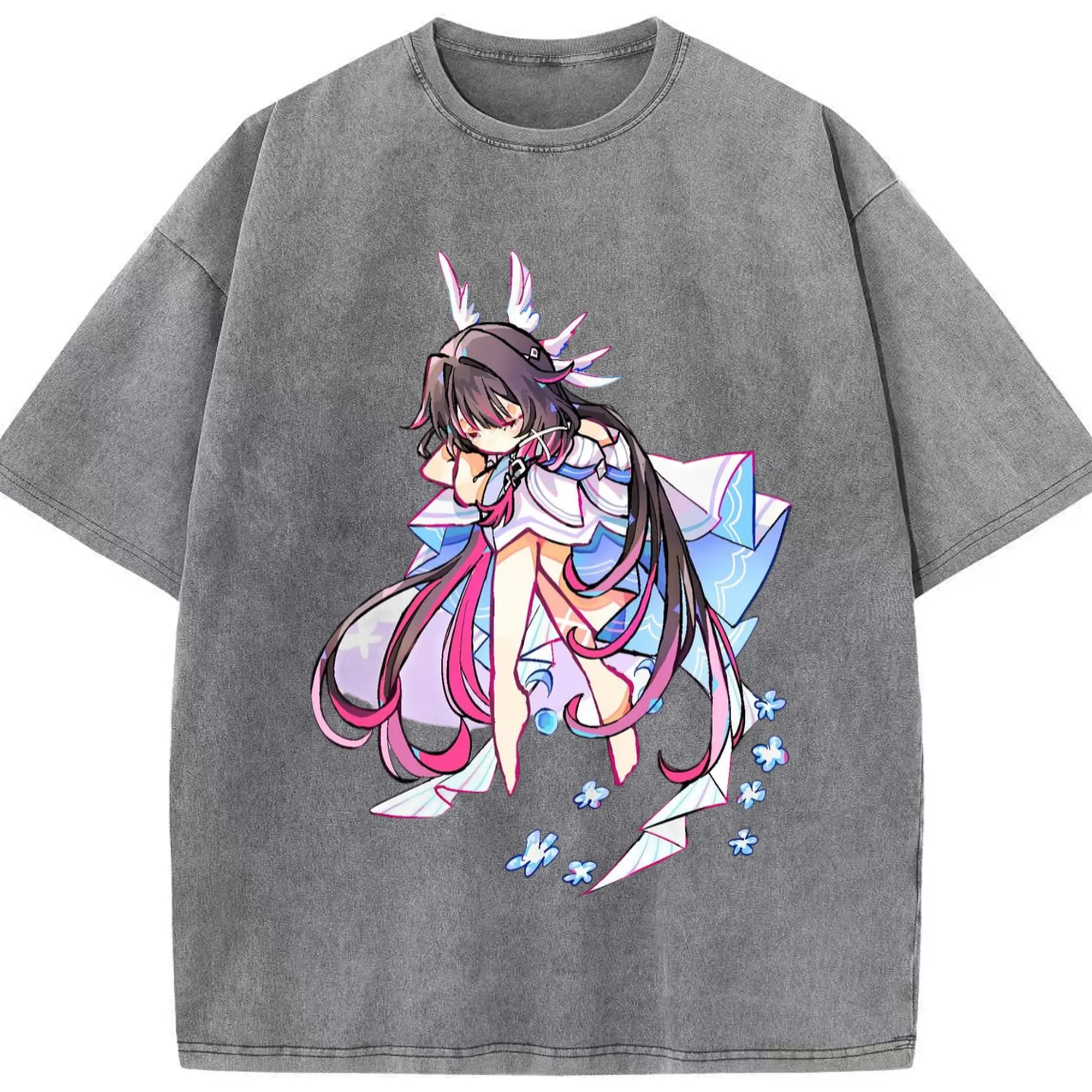 Genshin ナド・クライ 月神 げっしん コロンビーナ - 綿100% ヴィンテージ風 半袖Tシャツ ・ フロントプリント ・ 柔らか肌触り ・ 通気性 快適 ・ スポーツ カジュアル 外出用