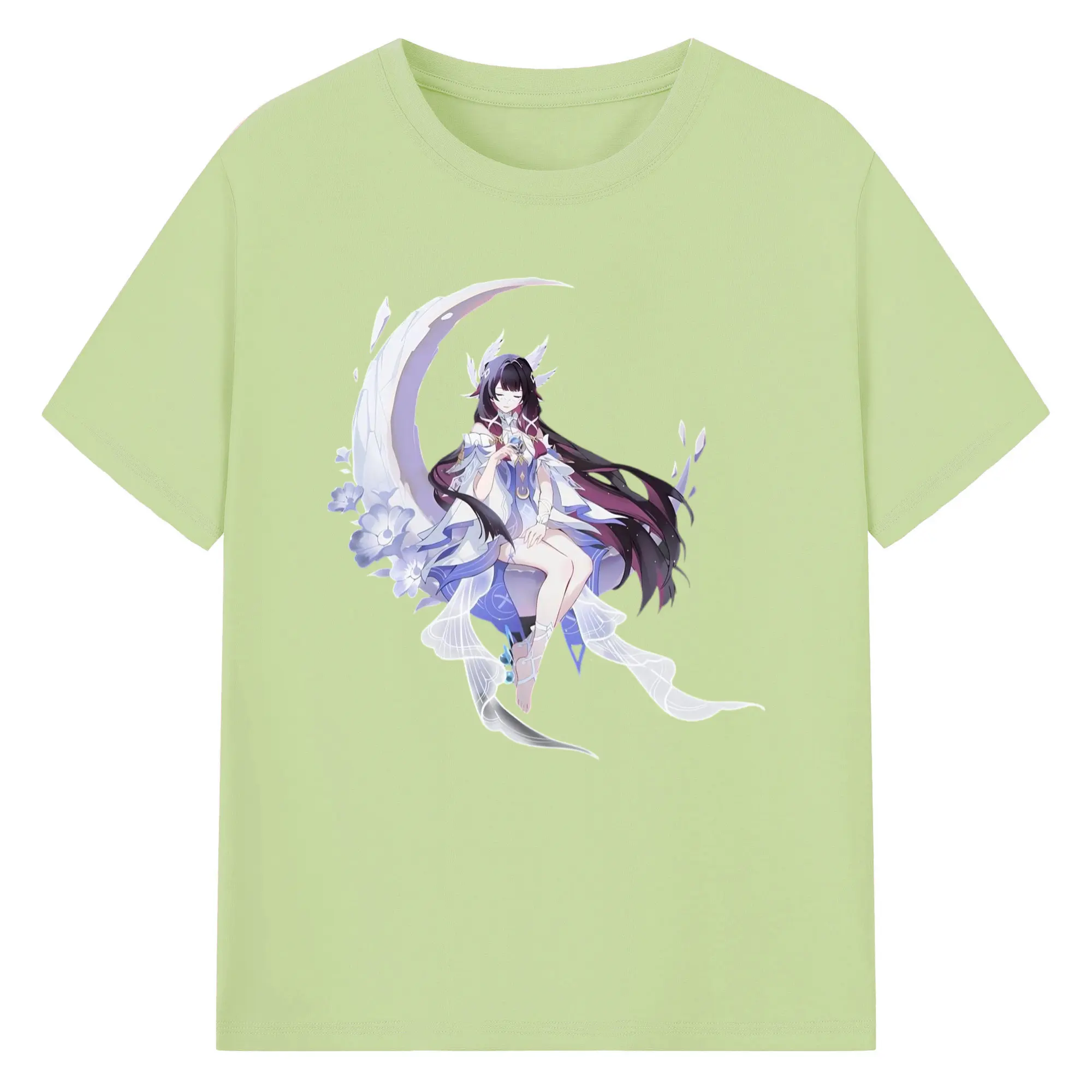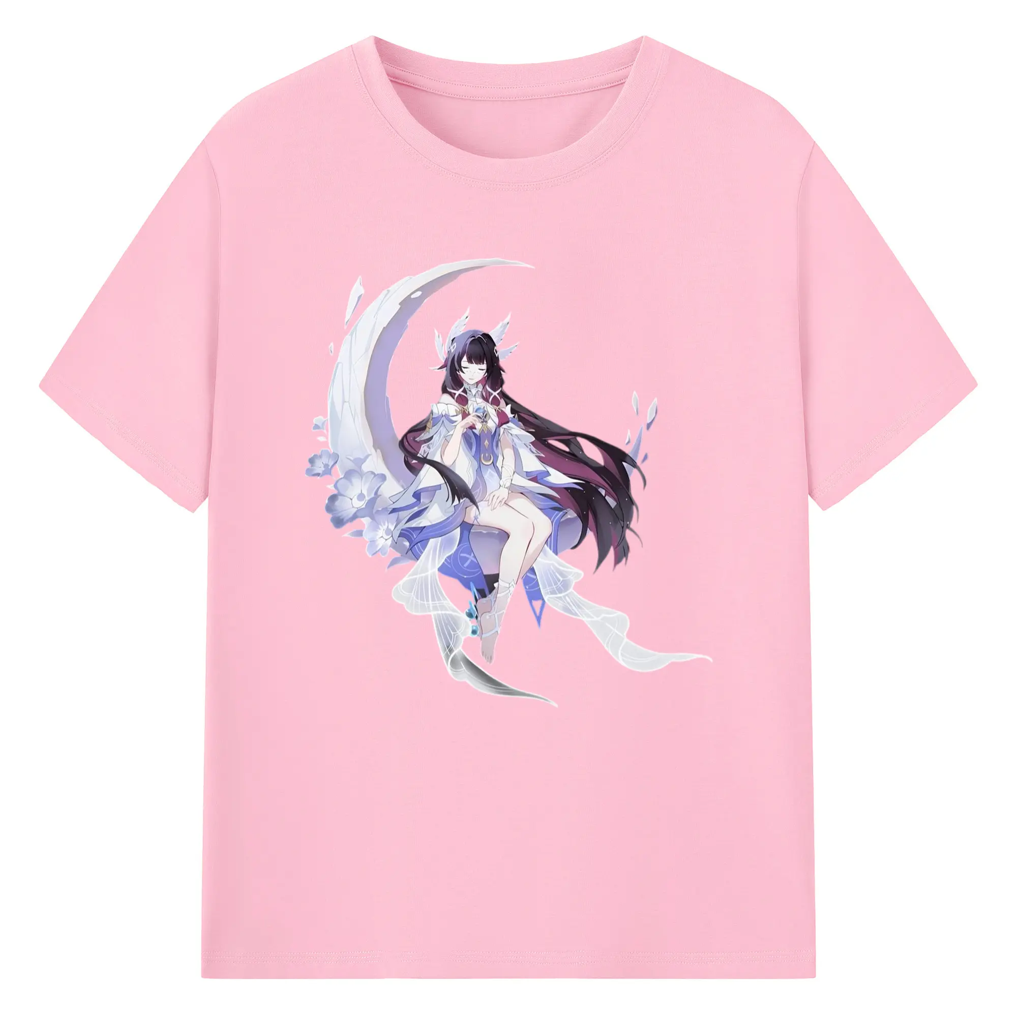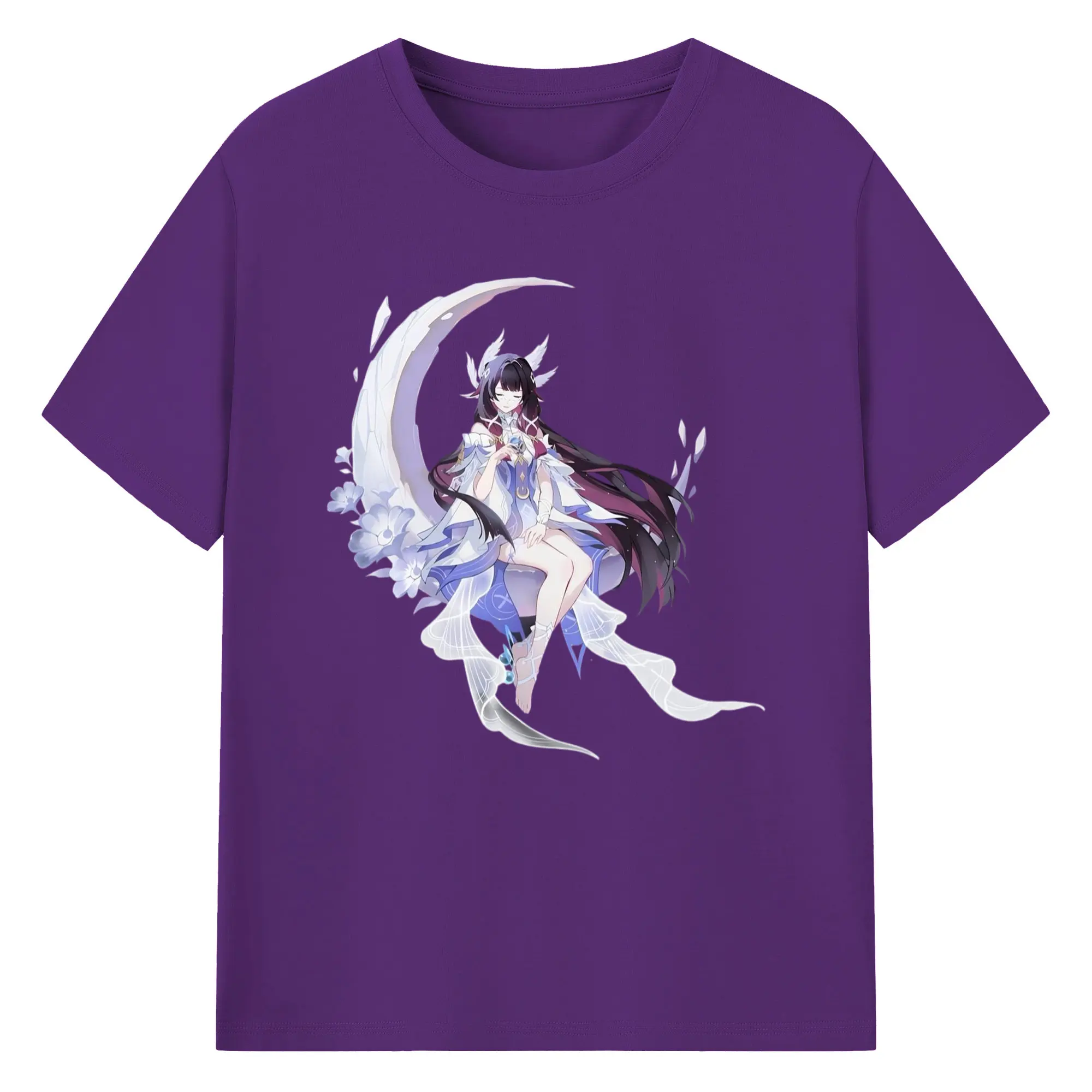 Genshin ナド・クライ 月神 げっしん コロンビーナ - 綿100% 半袖Tシャツ ・ フロントプリント ・ 快適 通気性 ・ 日常使い 散歩 スポーツ用