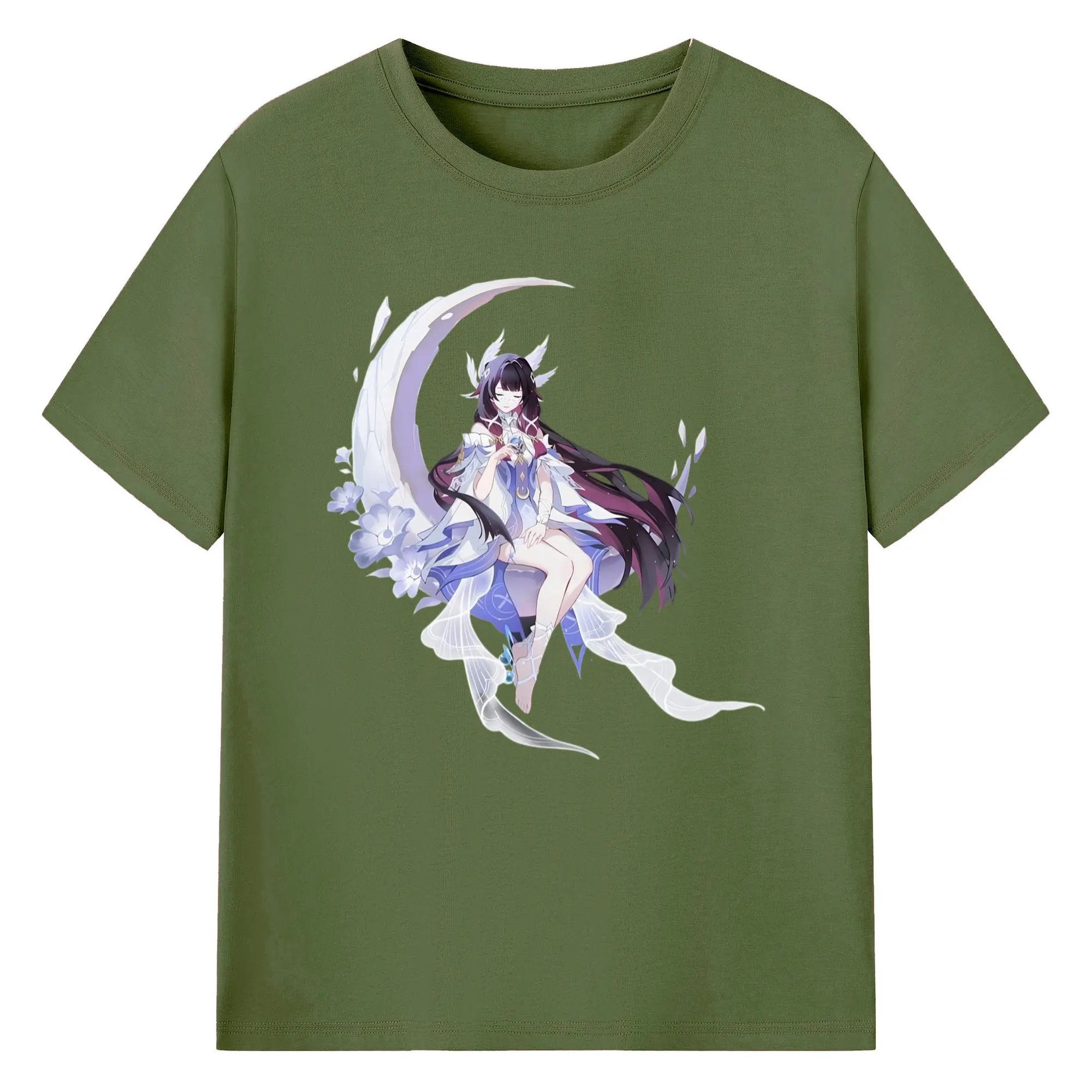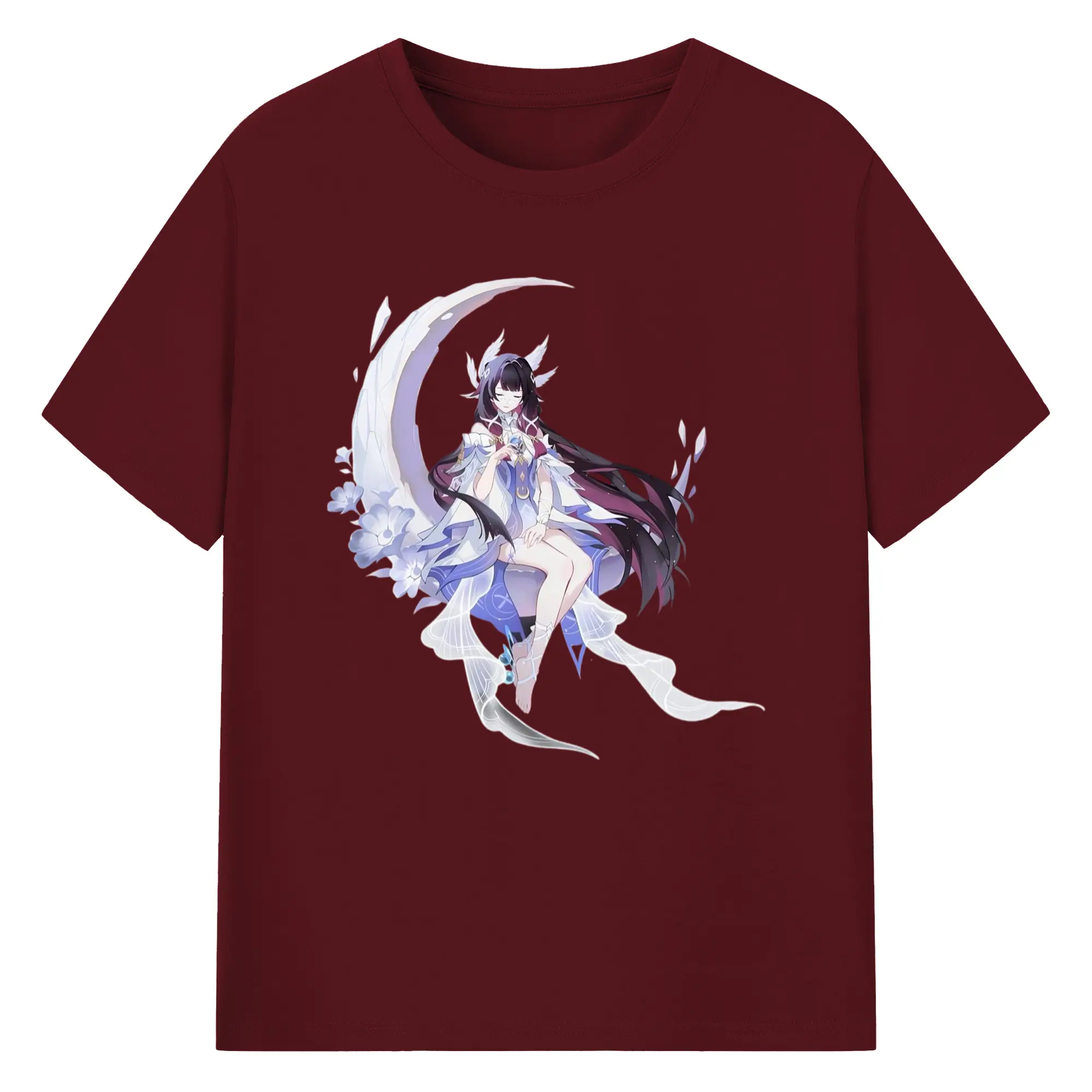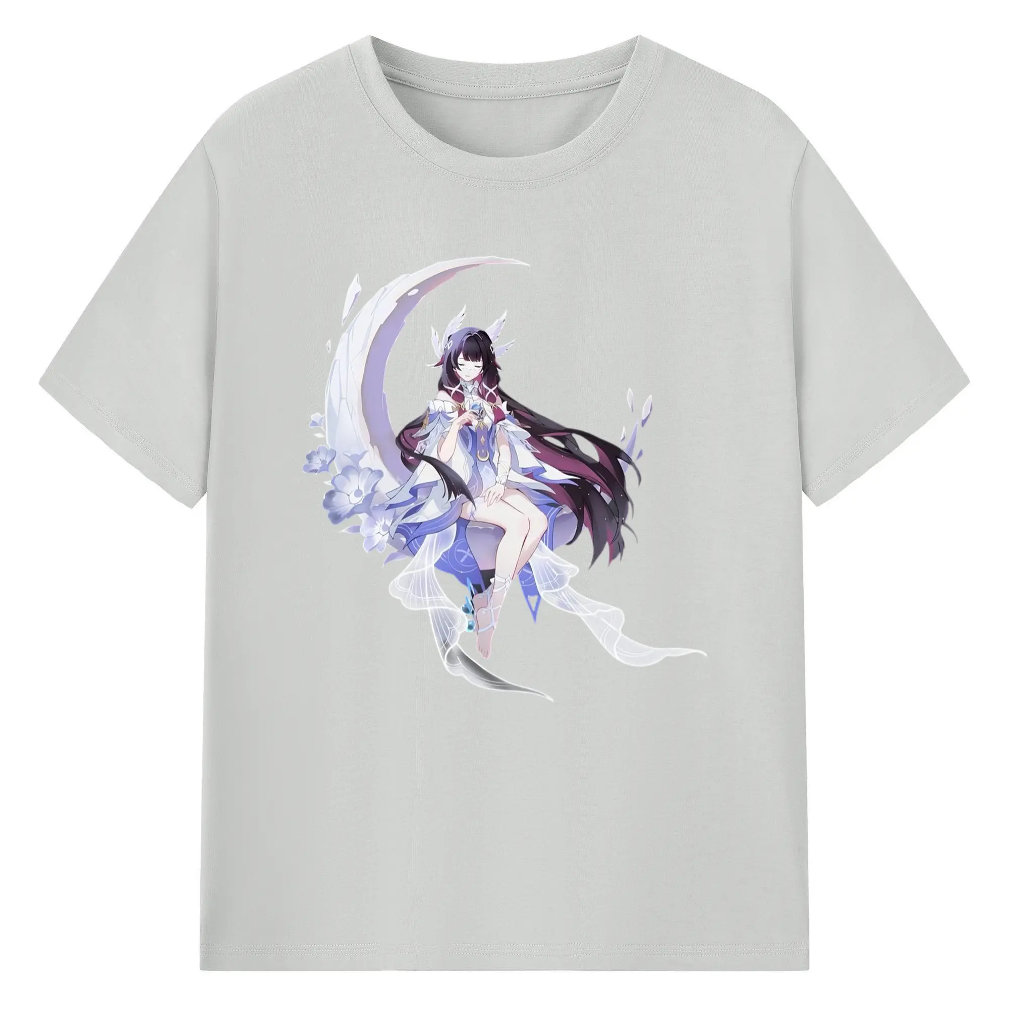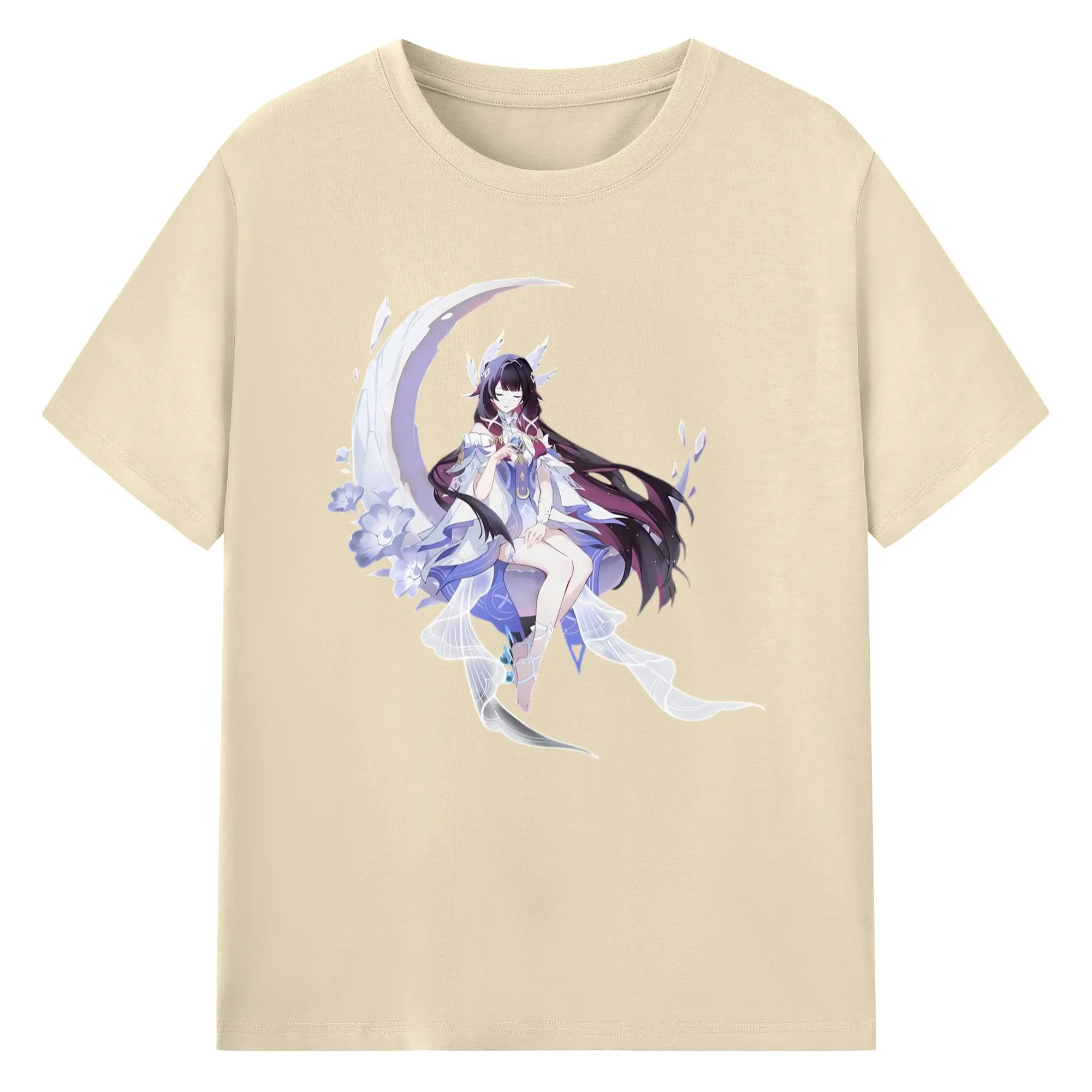 Genshin ナド・クライ 月神 げっしん コロンビーナ - 綿100% 半袖Tシャツ ・ フロントプリント ・ 快適 通気性 ・ 日常使い 散歩 スポーツ用