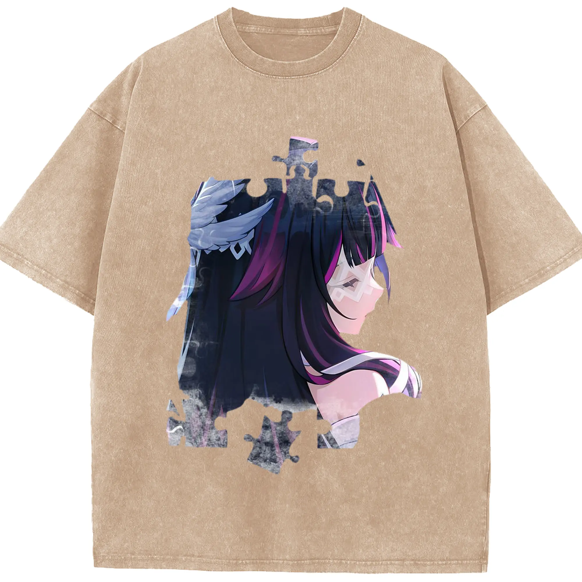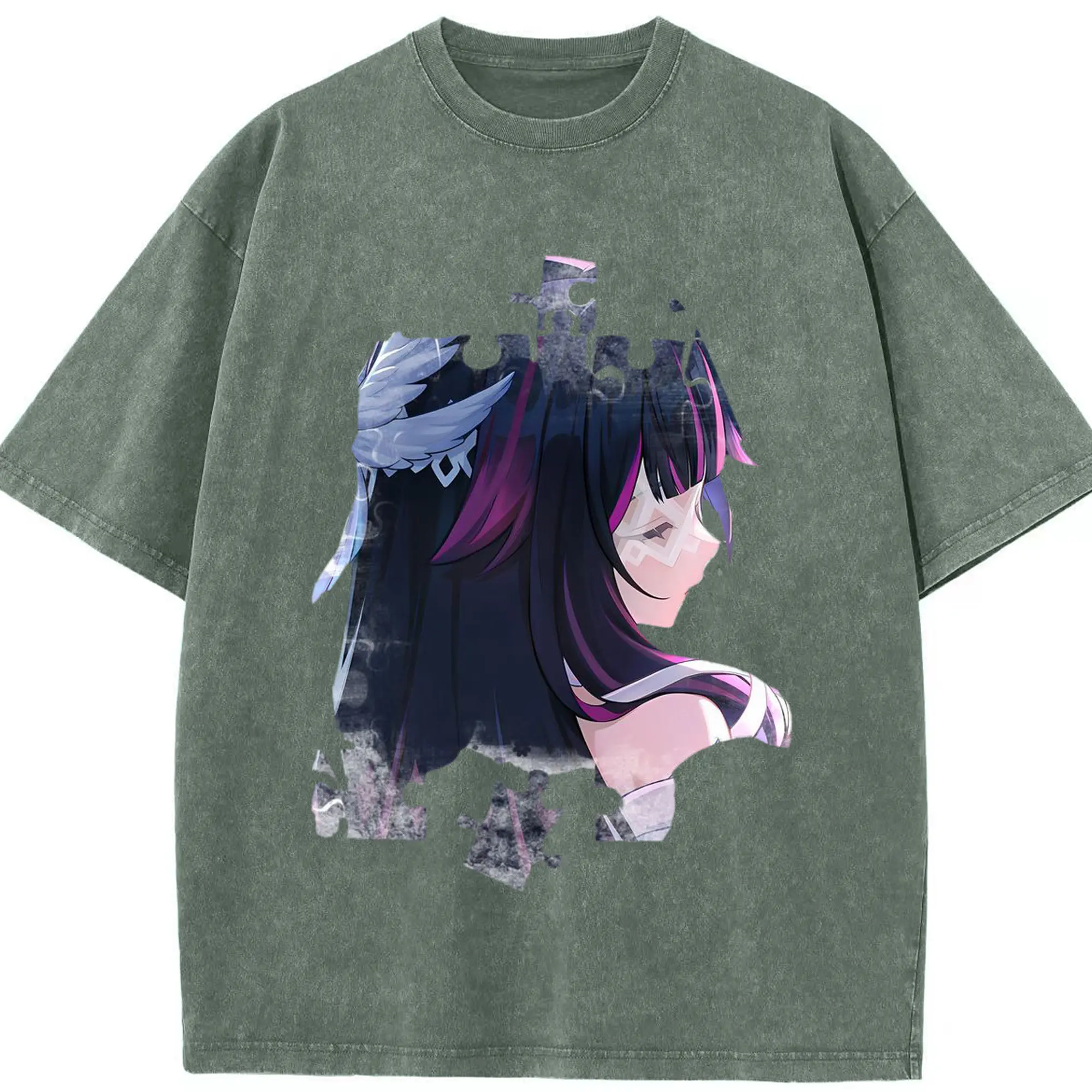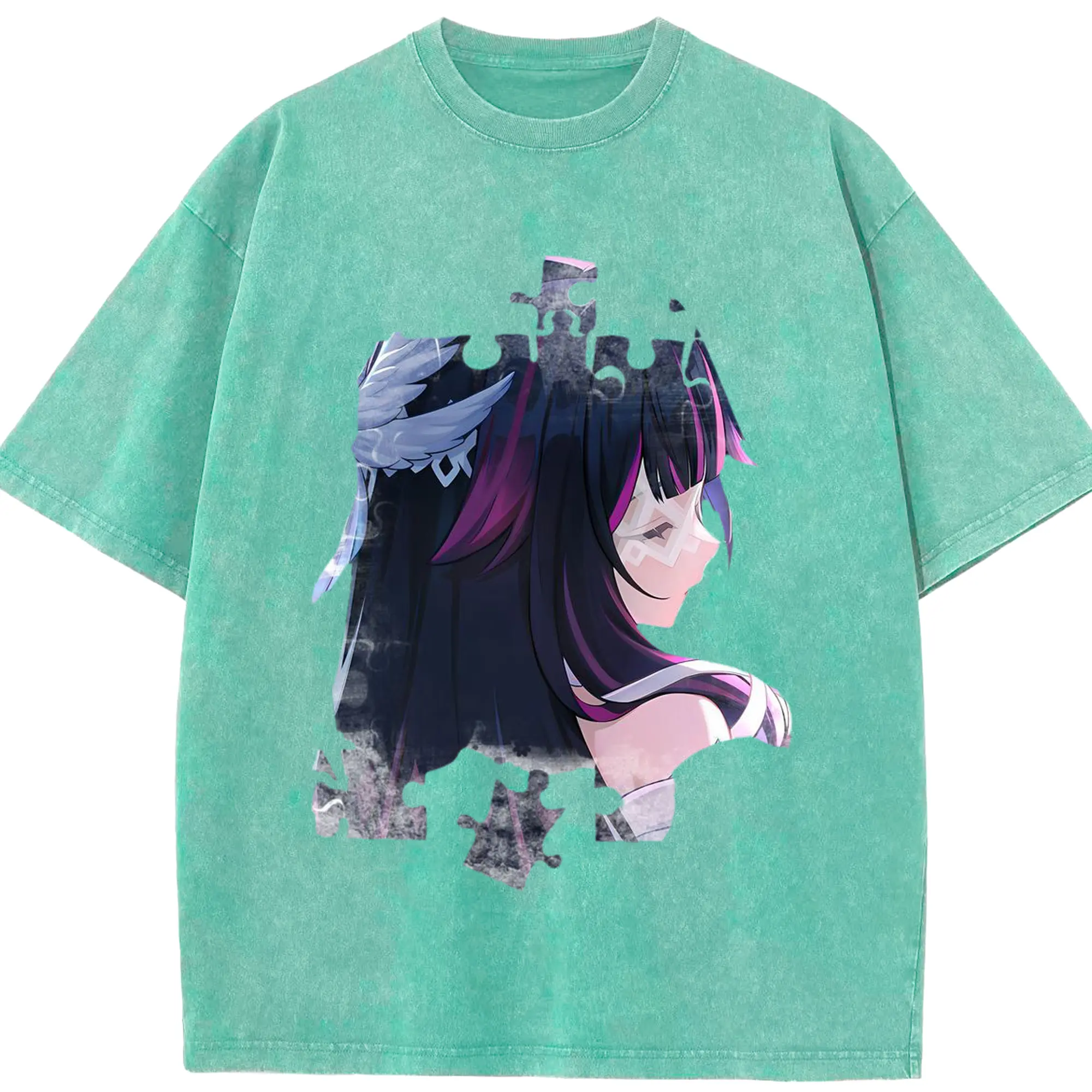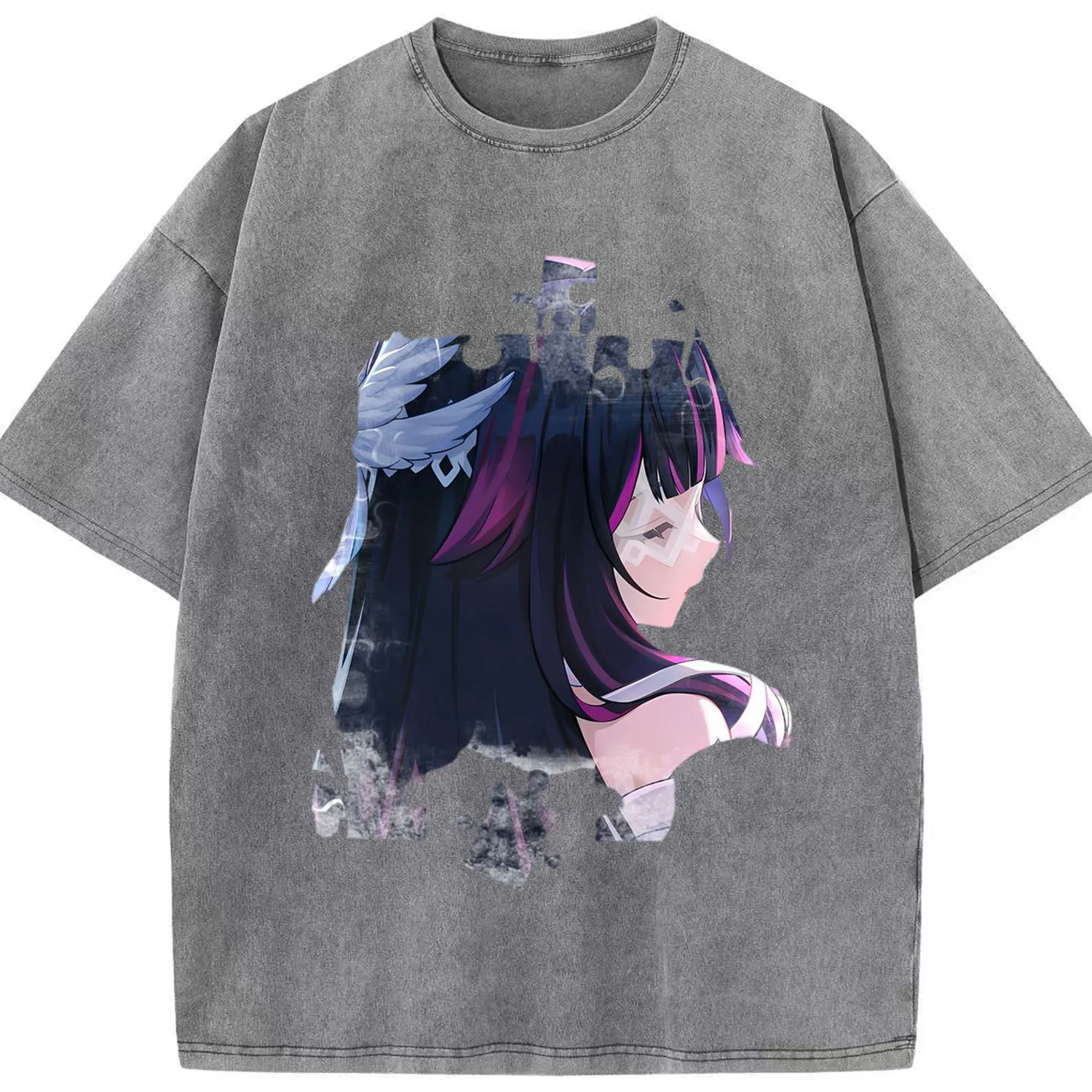 Genshin ナド・クライ 月神 げっしん コロンビーナ - 綿100% ヴィンテージ風 半袖Tシャツ ・ フロントプリント ・ 柔らか肌触り ・ 通気性 快適 ・ スポーツ カジュアル 外出用