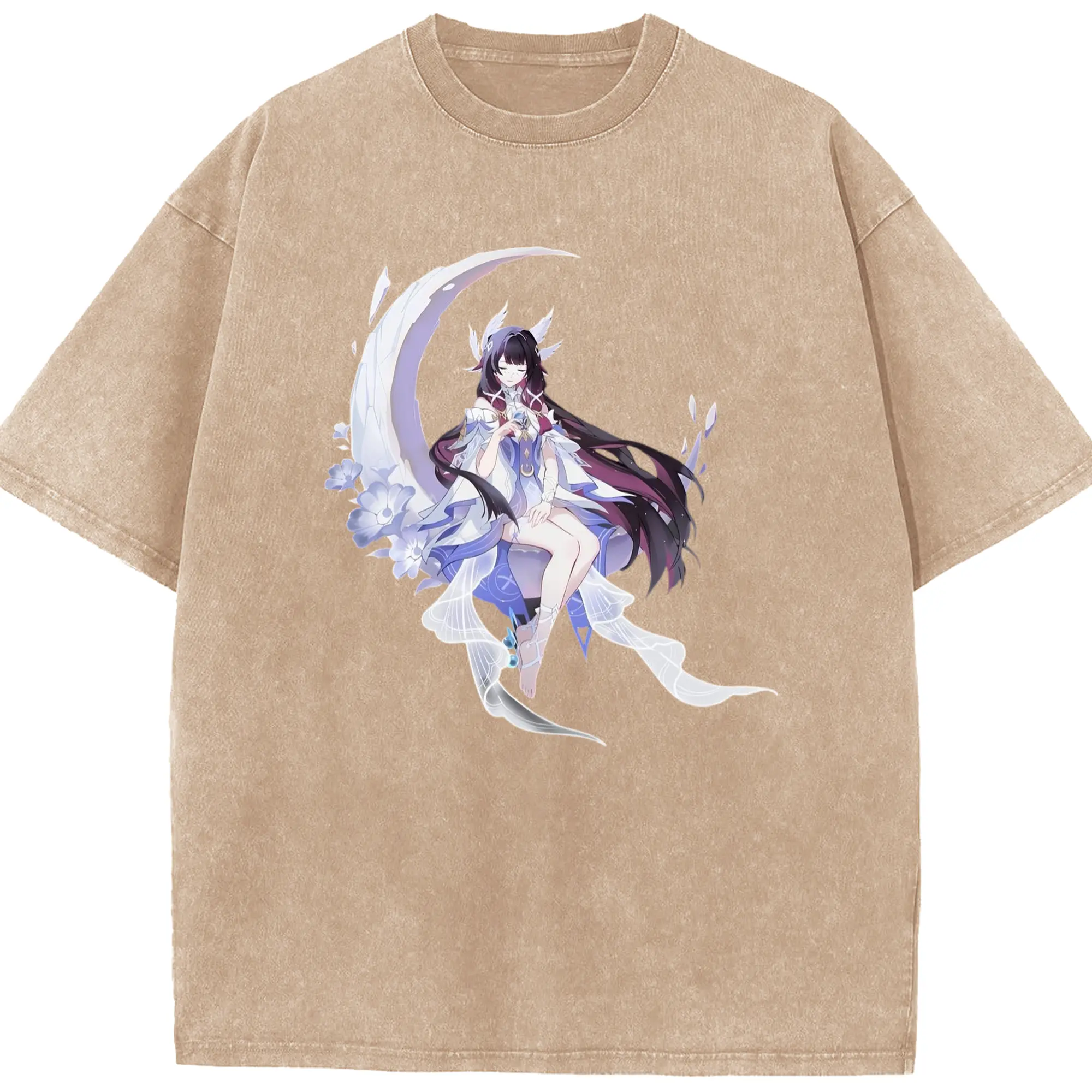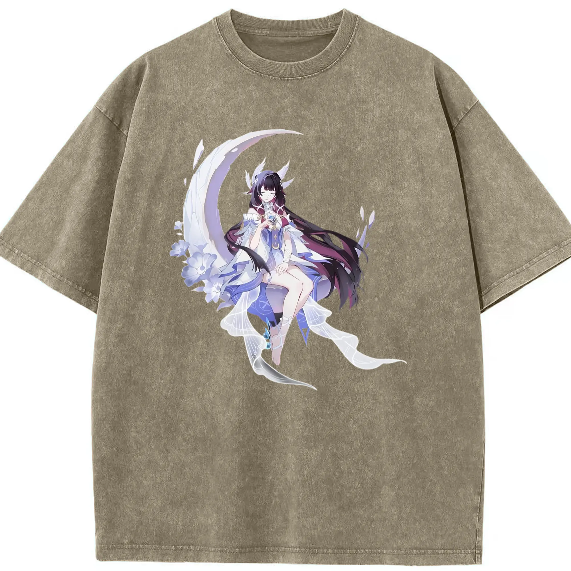 Genshin ナド・クライ 月神 げっしん コロンビーナ - 綿100% ヴィンテージ風 半袖Tシャツ ・ フロントプリント ・ 柔らか肌触り ・ 通気性 快適 ・ スポーツ カジュアル 外出用