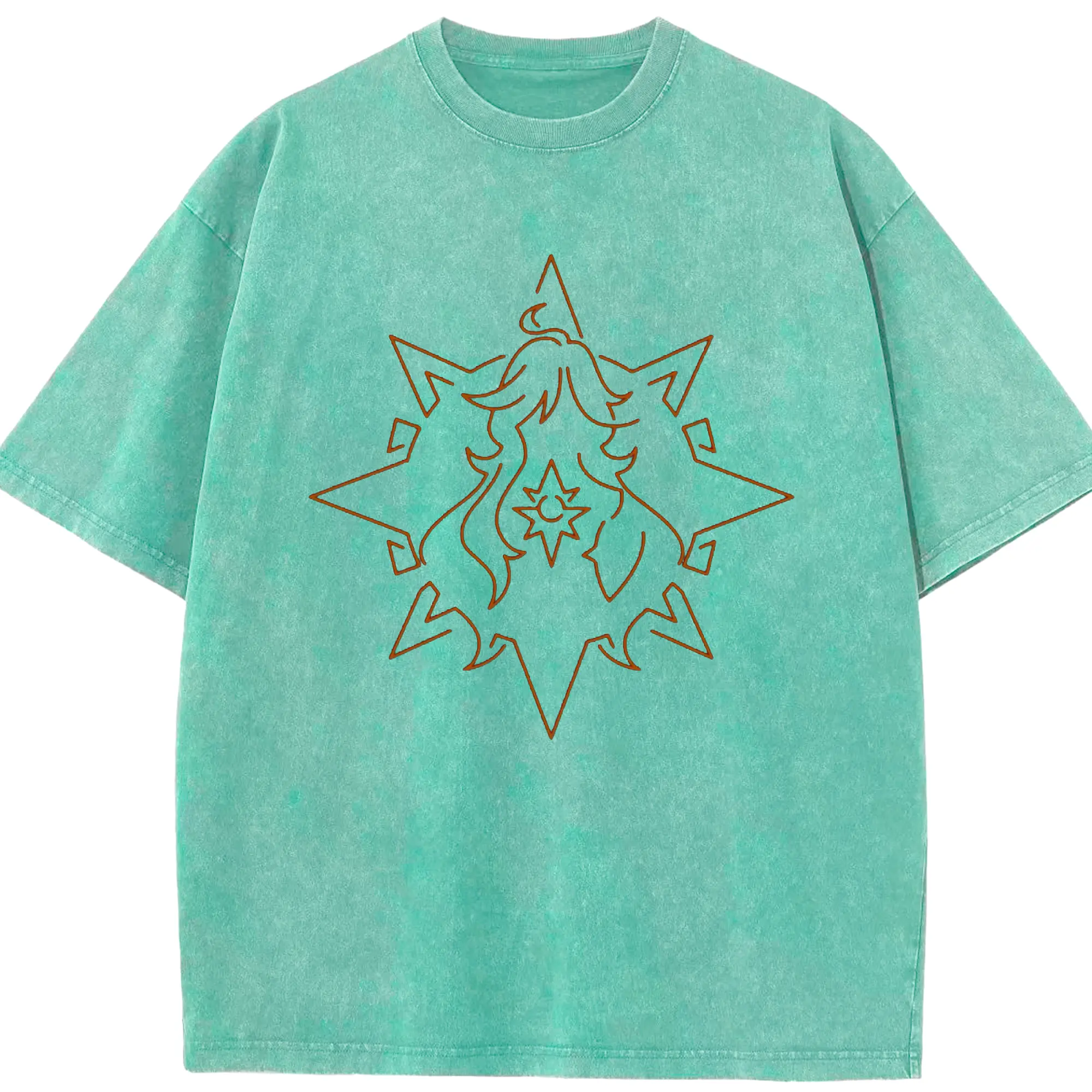 Genshin ナド・クライ - 綿100% ヴィンテージ風 半袖Tシャツ ・ フロントプリント ・ 柔らか肌触り ・ 通気性 快適 ・ スポーツ カジュアル 外出用