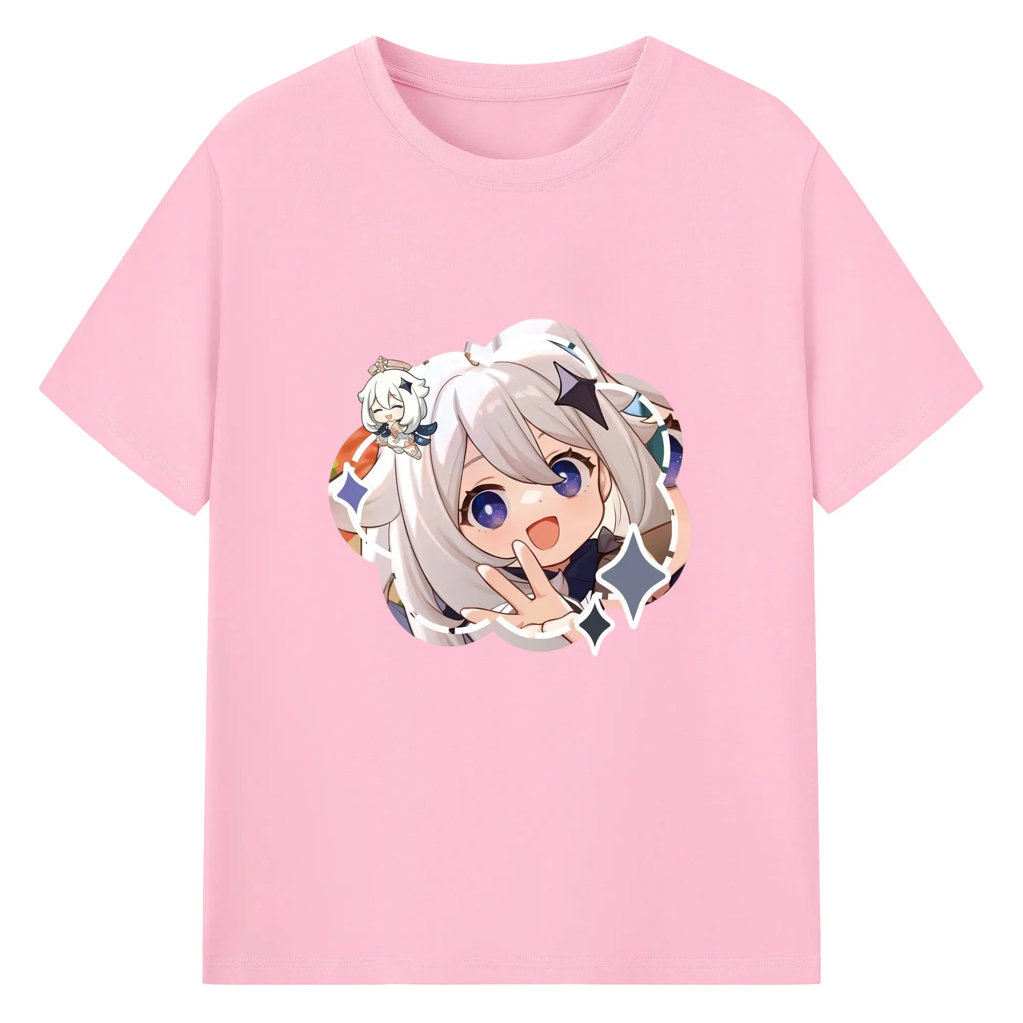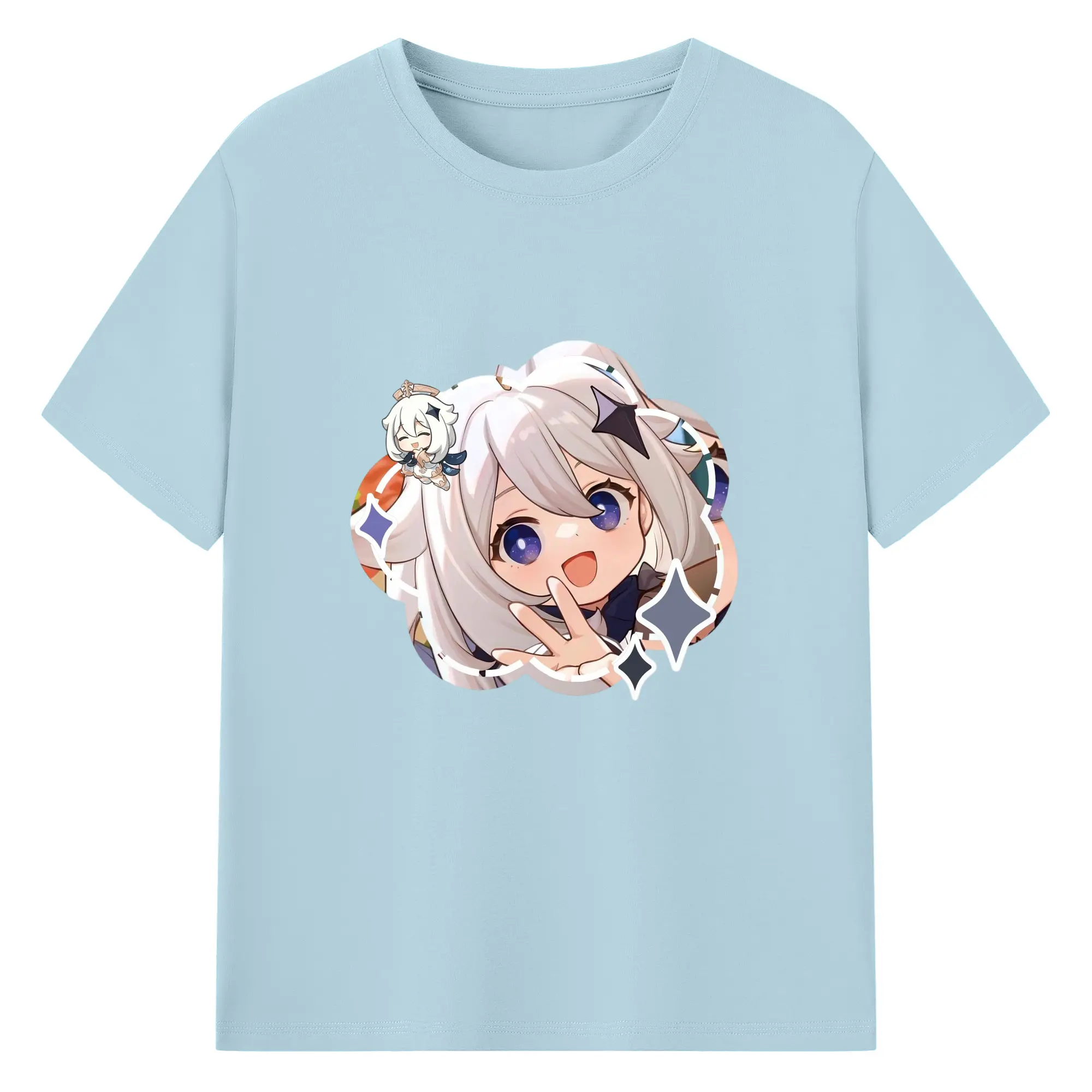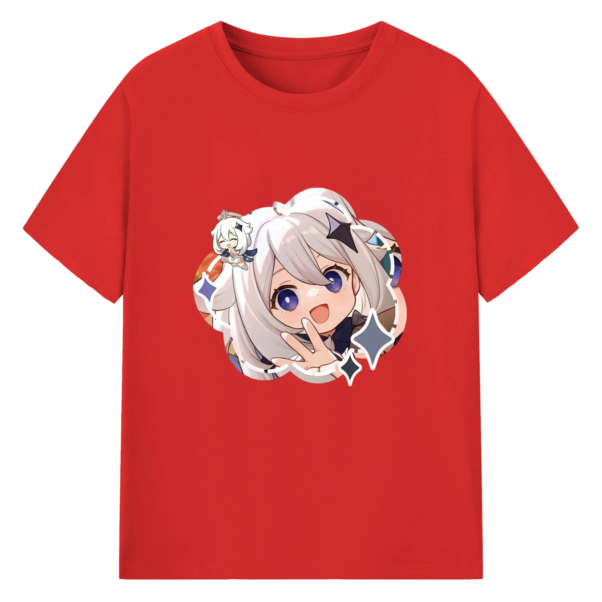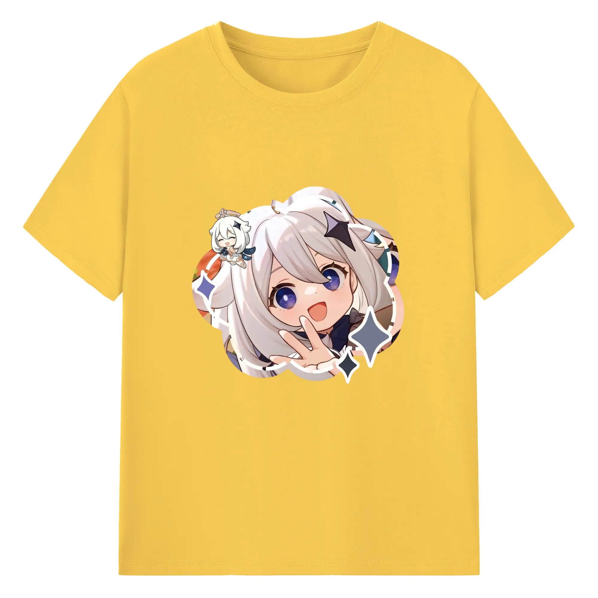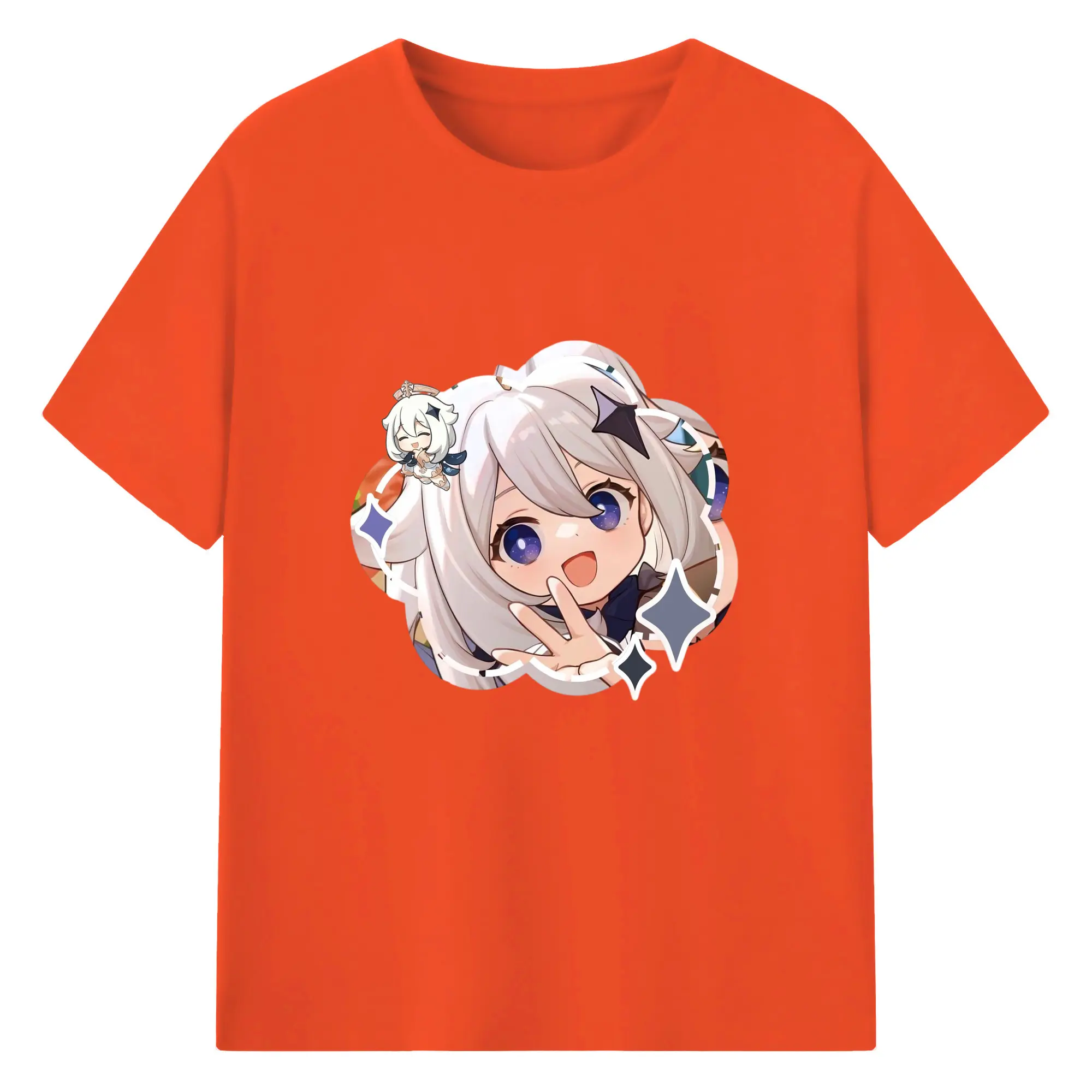Genshin パイモン - 綿100% 半袖Tシャツ ・ フロントプリント ・ 快適 通気性 ・ 日常使い 散歩 スポーツ用