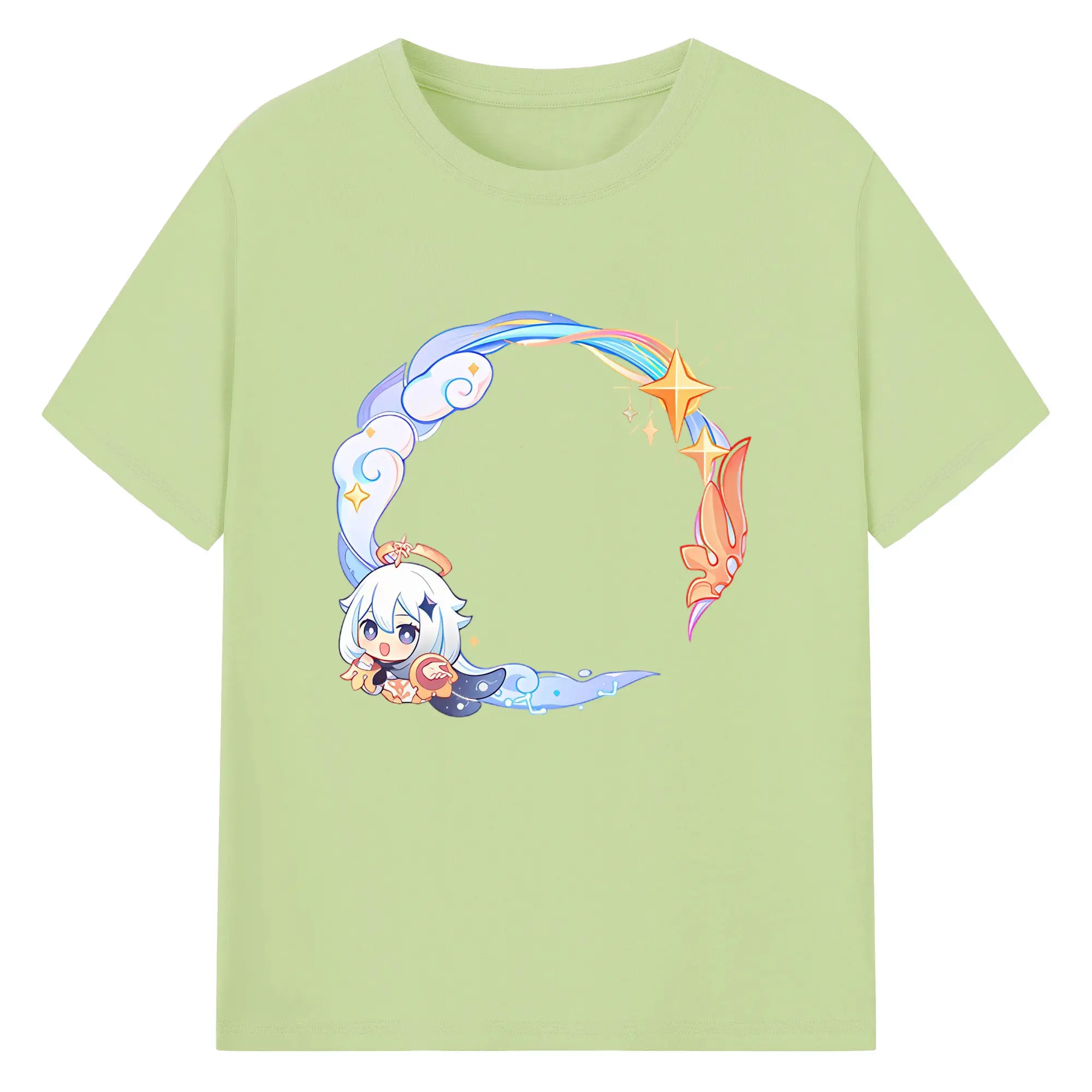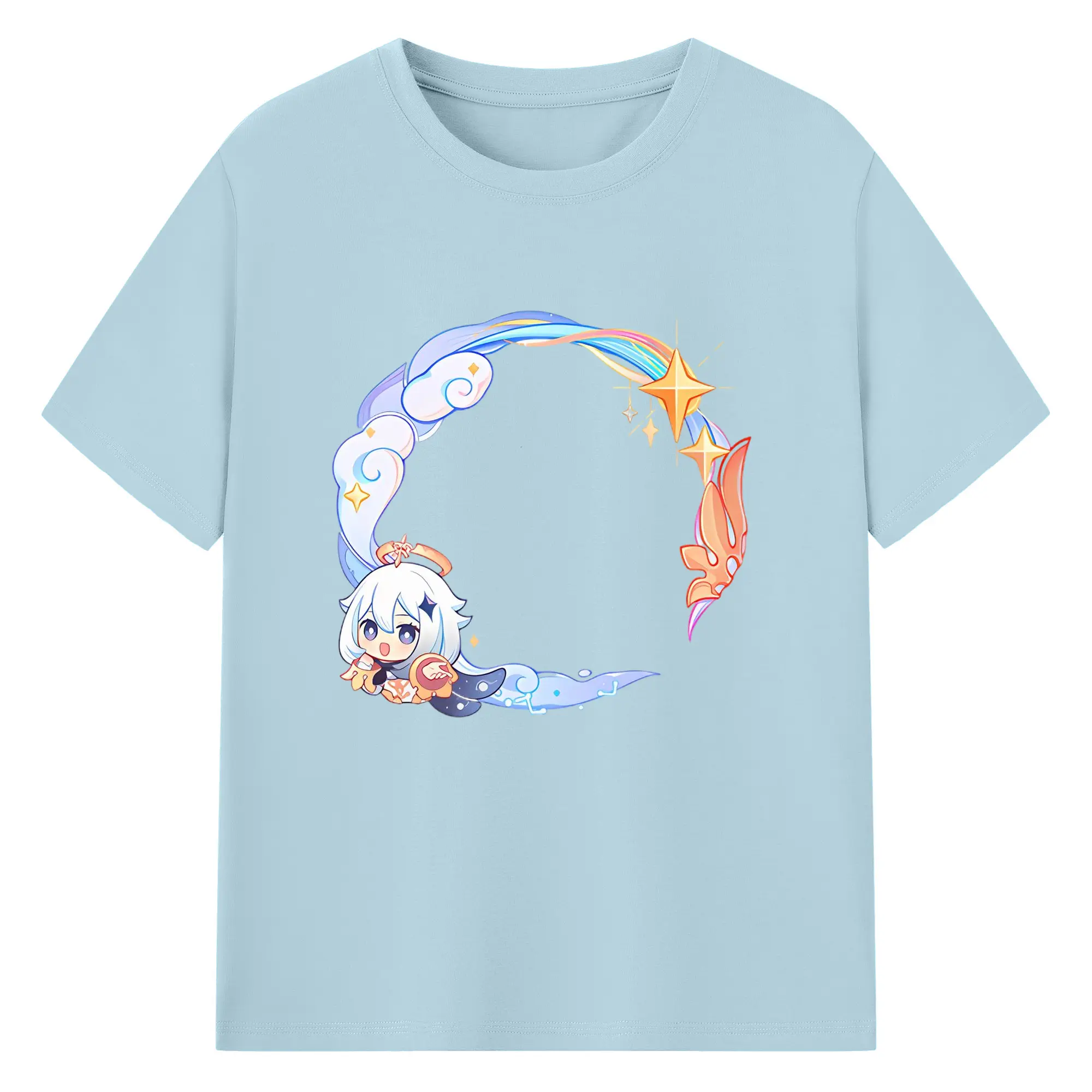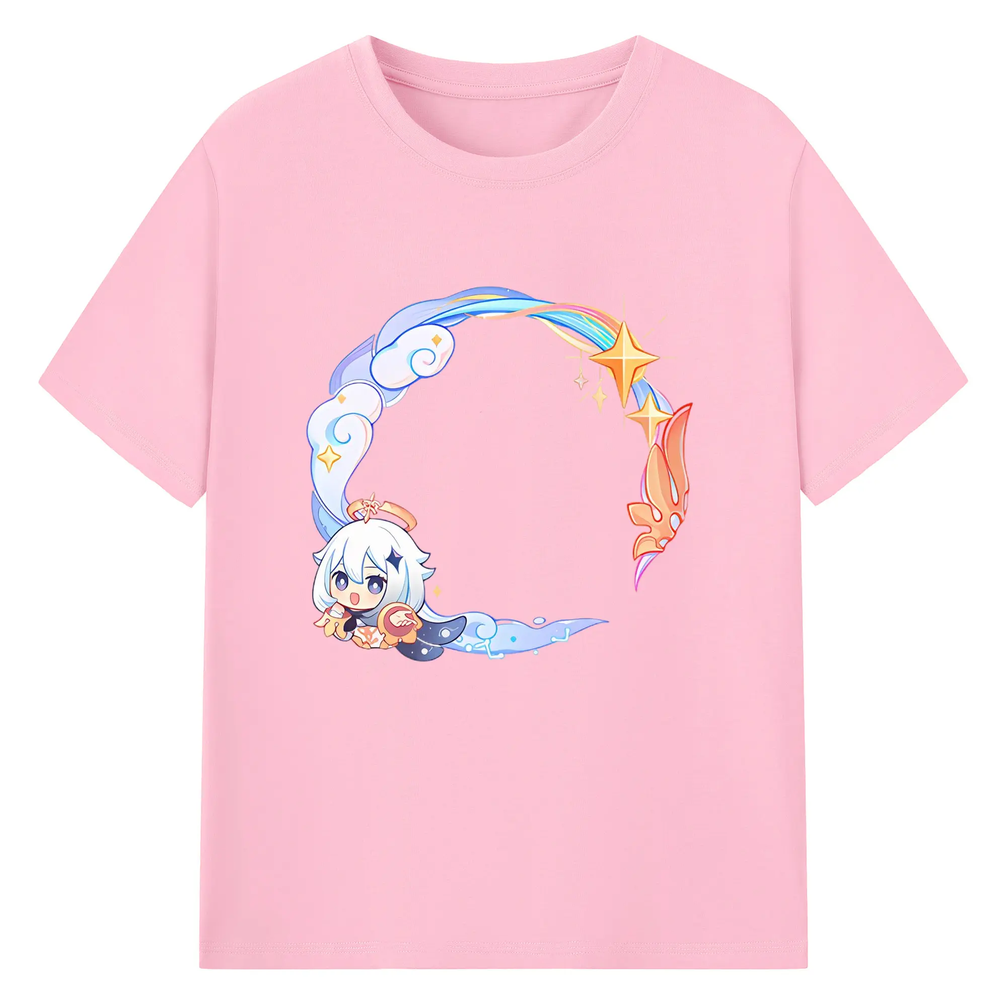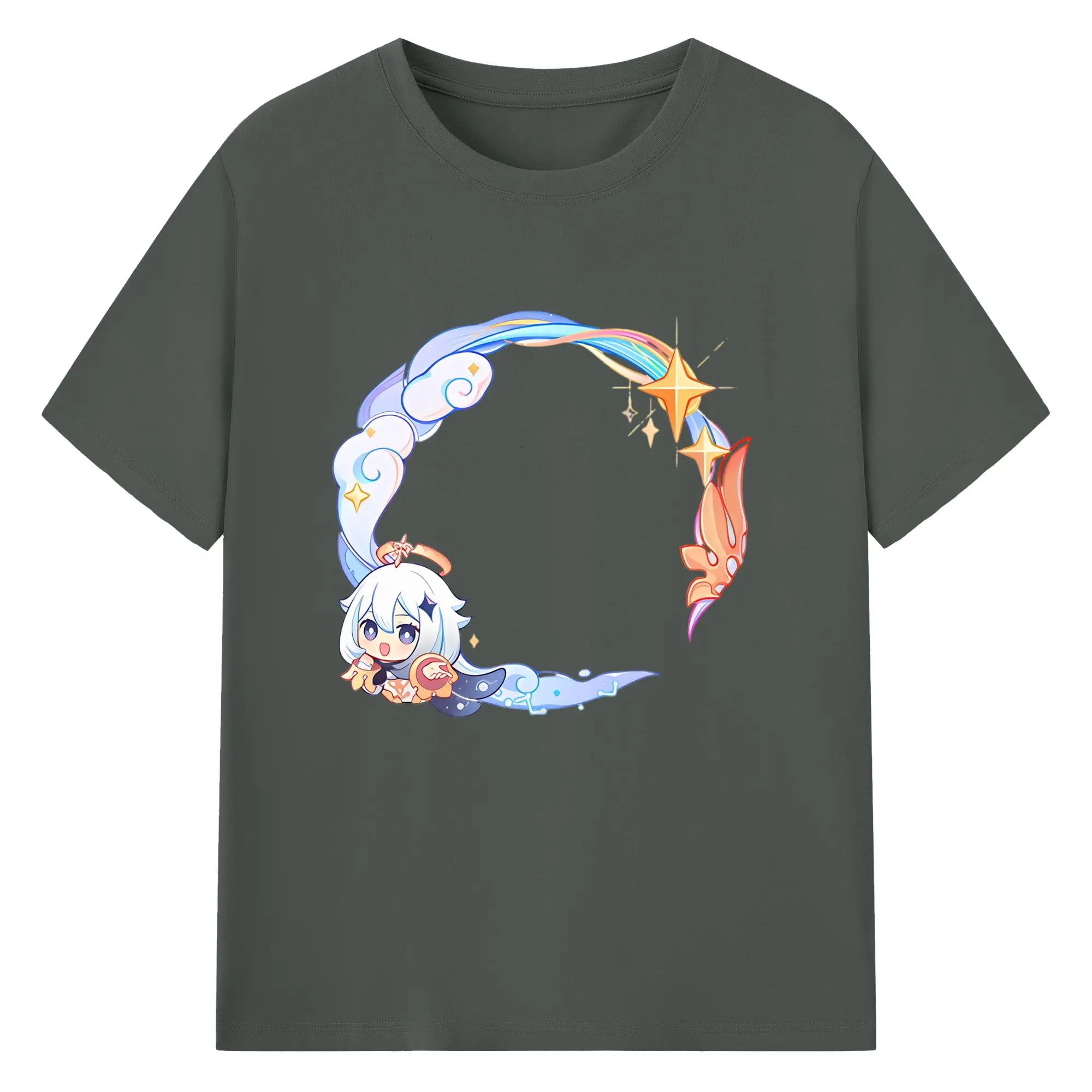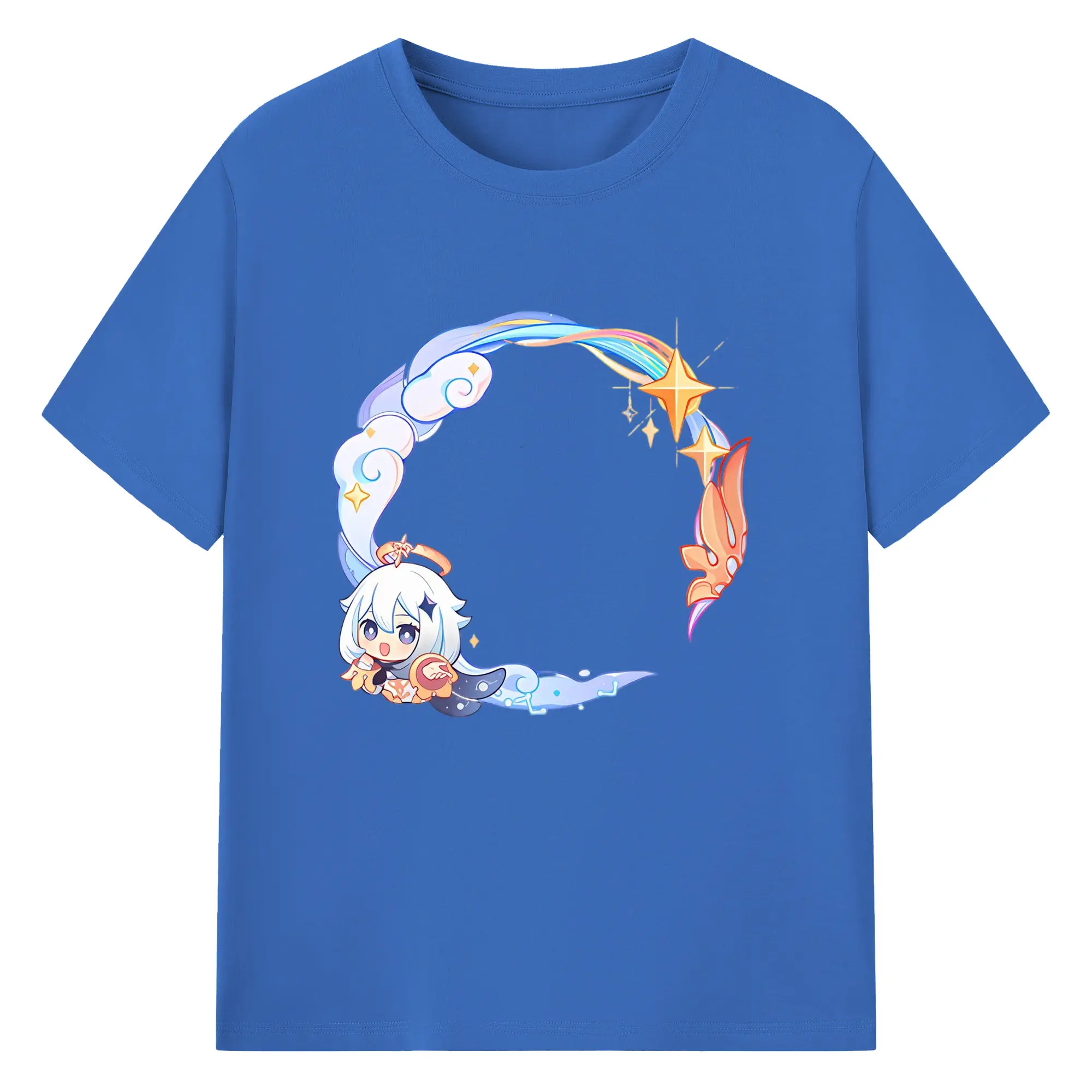 Genshin パイモン - 綿100% 半袖Tシャツ ・ フロントプリント ・ 快適 通気性 ・ 日常使い 散歩 スポーツ用