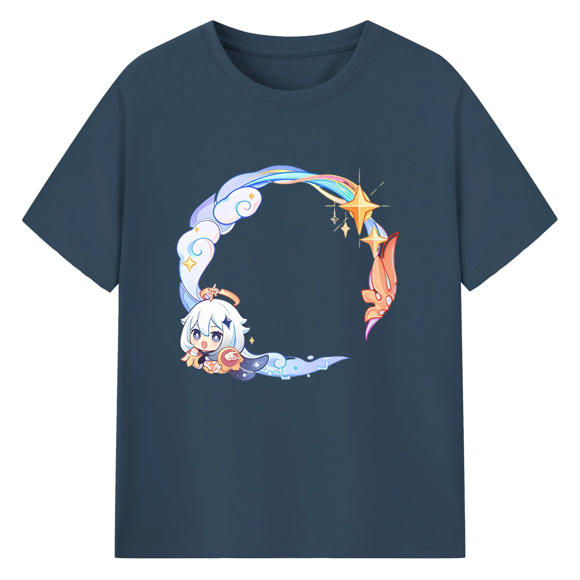 Genshin ナド・クライ フリンズ - 綿100% 半袖Tシャツ ・ フロントプリント ・ 快適 通気性 ・ 日常使い 散歩 スポーツ用