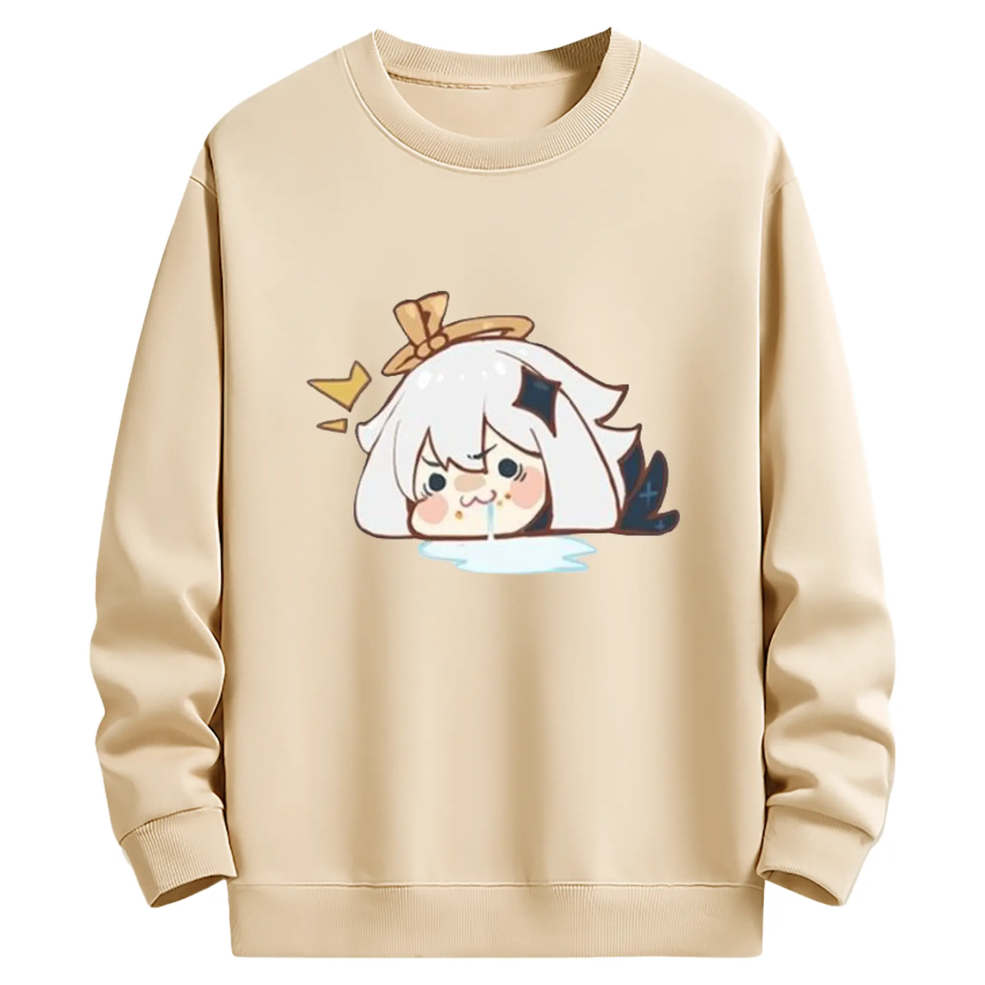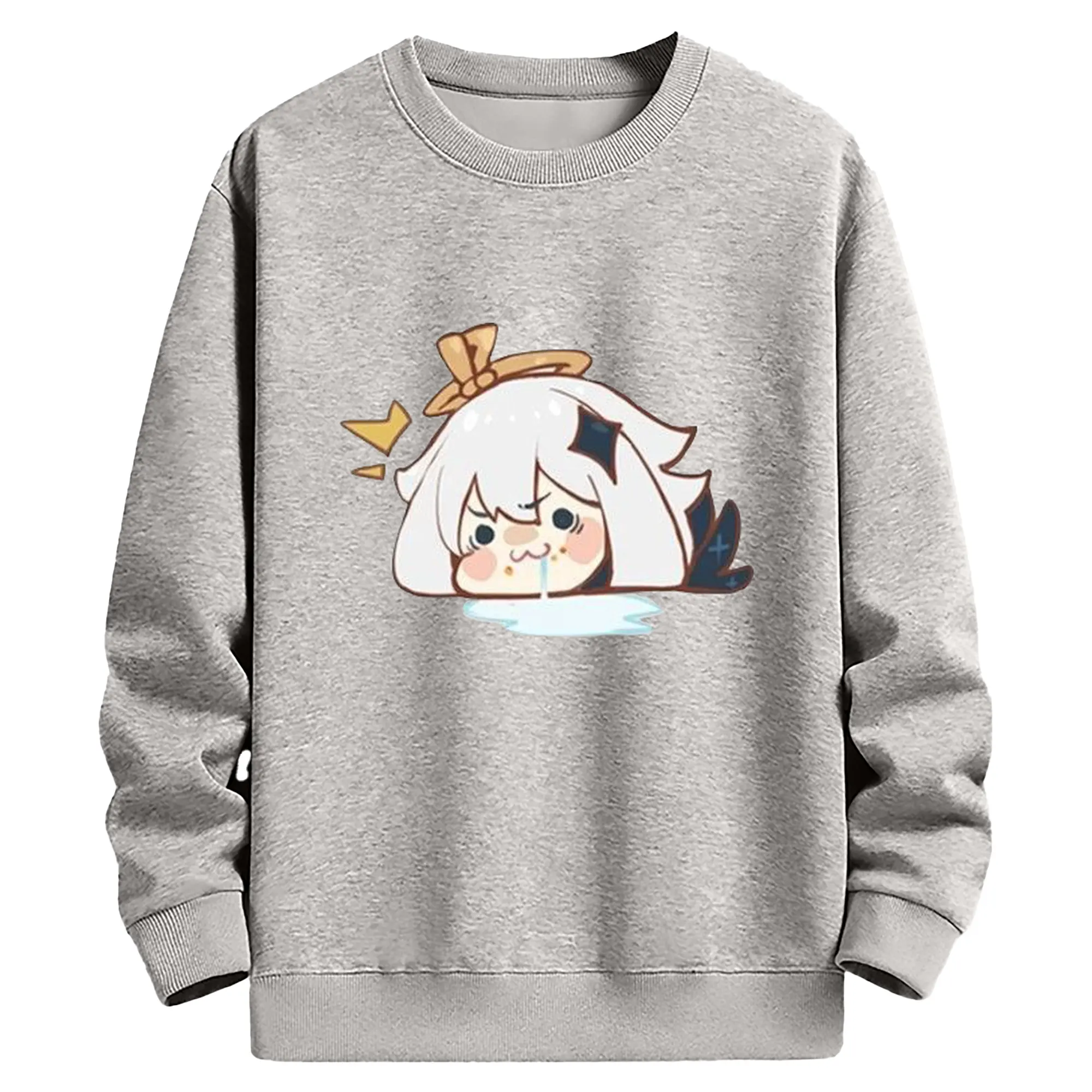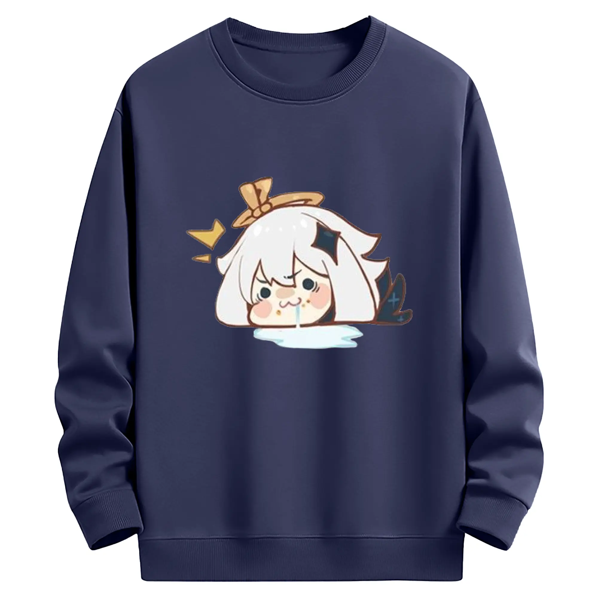 Genshin パイモン - 高品質 クルーネック スウェット ・ コットン59% ポリエステル41% ・ ユニセックス 長袖 トレーナー ・ カジュアル デイリー スポーツ 散歩用