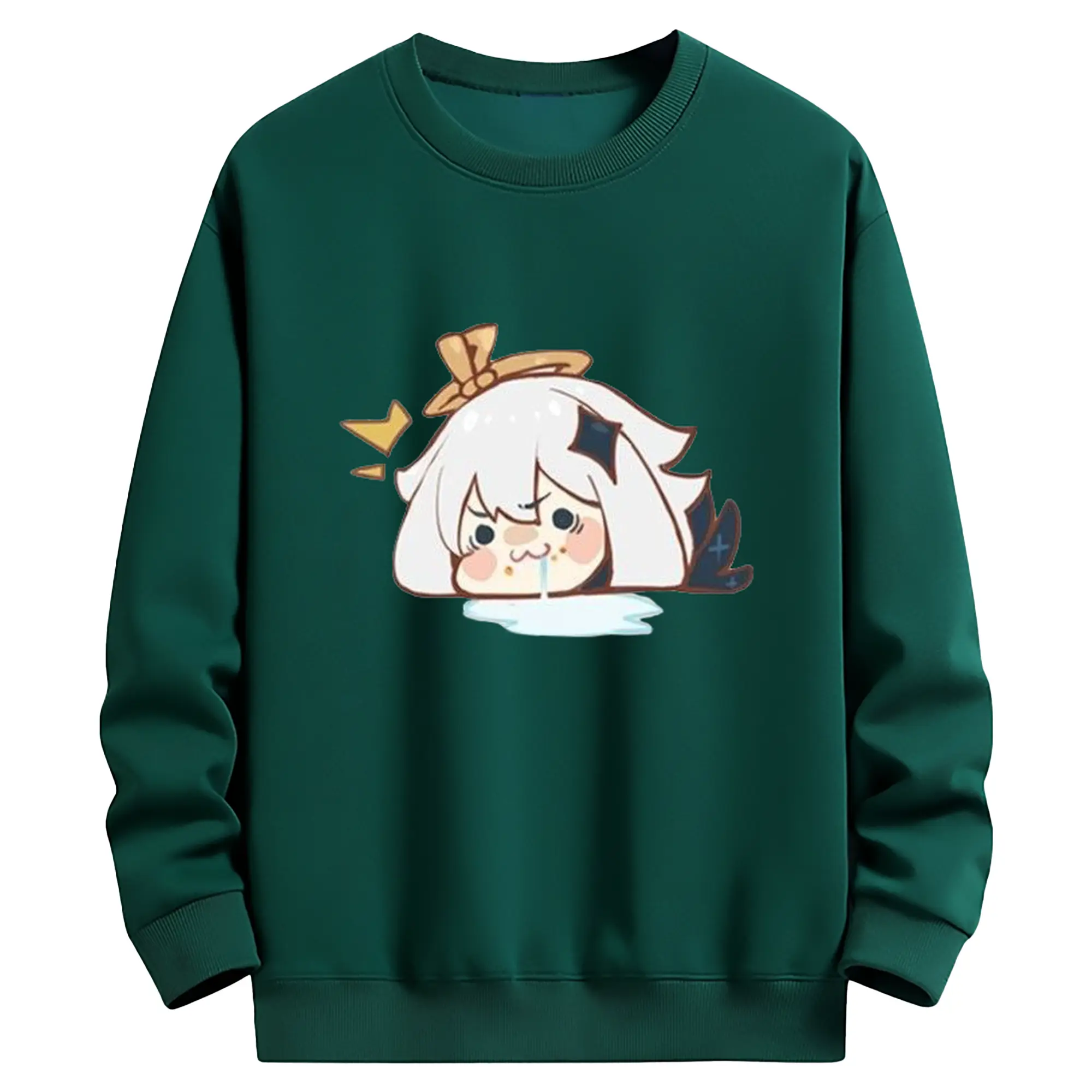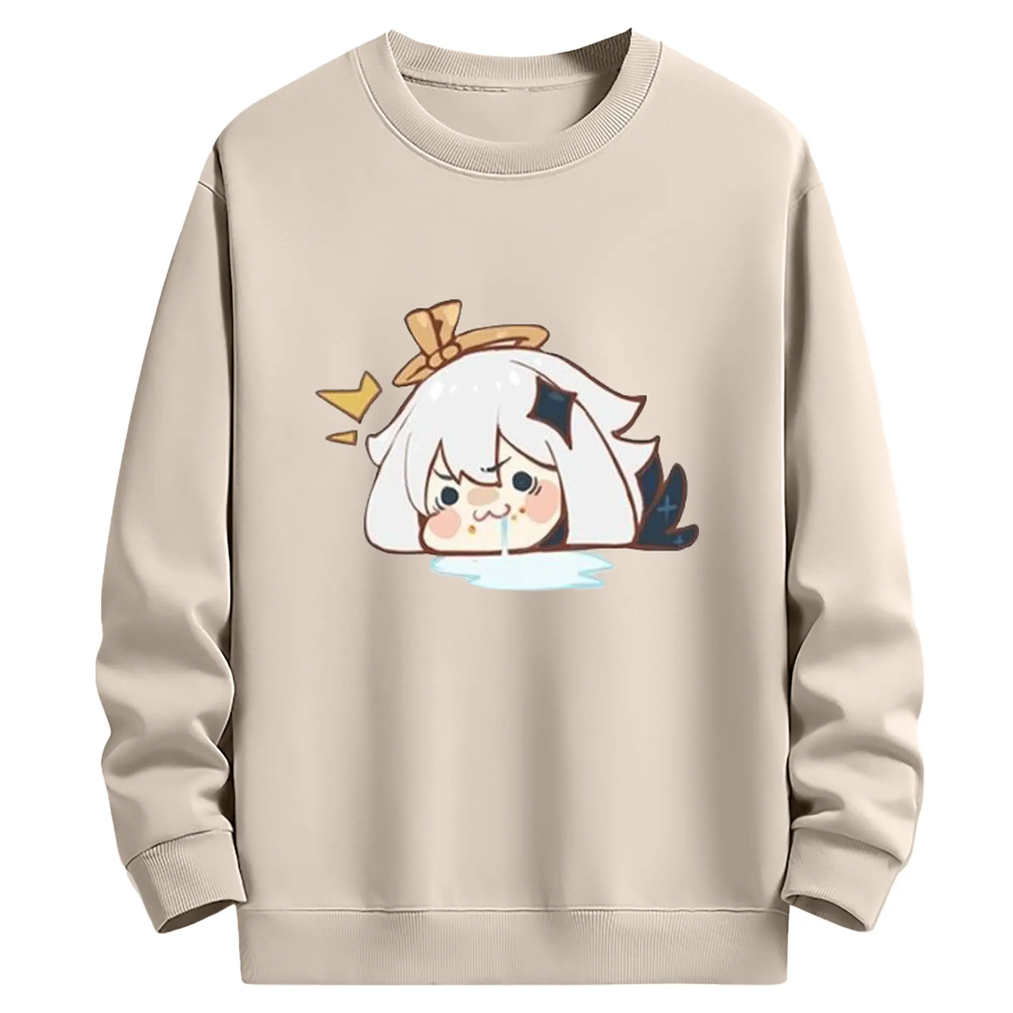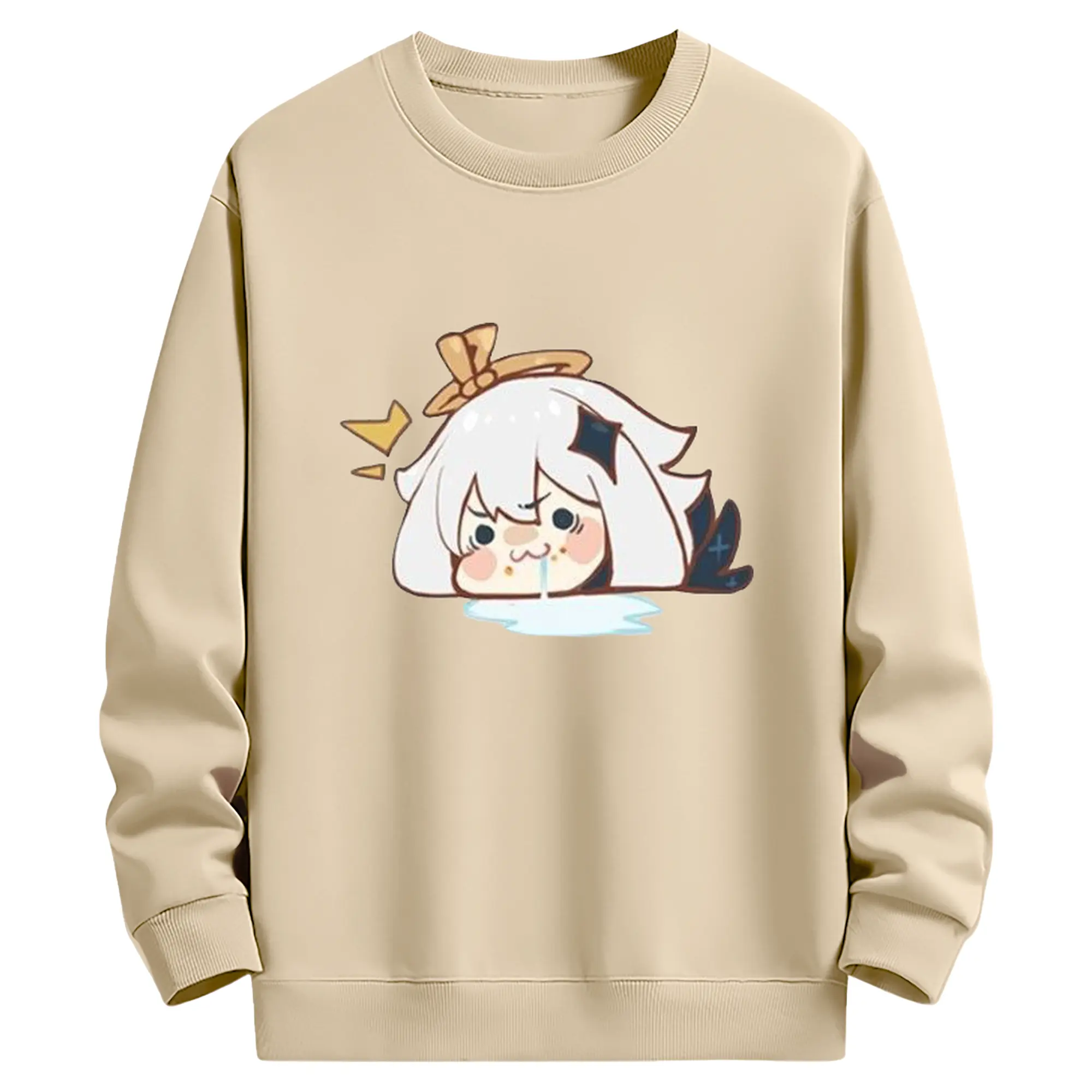 Genshin パイモン - 高品質 クルーネック スウェット ・ コットン59% ポリエステル41% ・ ユニセックス 長袖 トレーナー ・ カジュアル デイリー スポーツ 散歩用