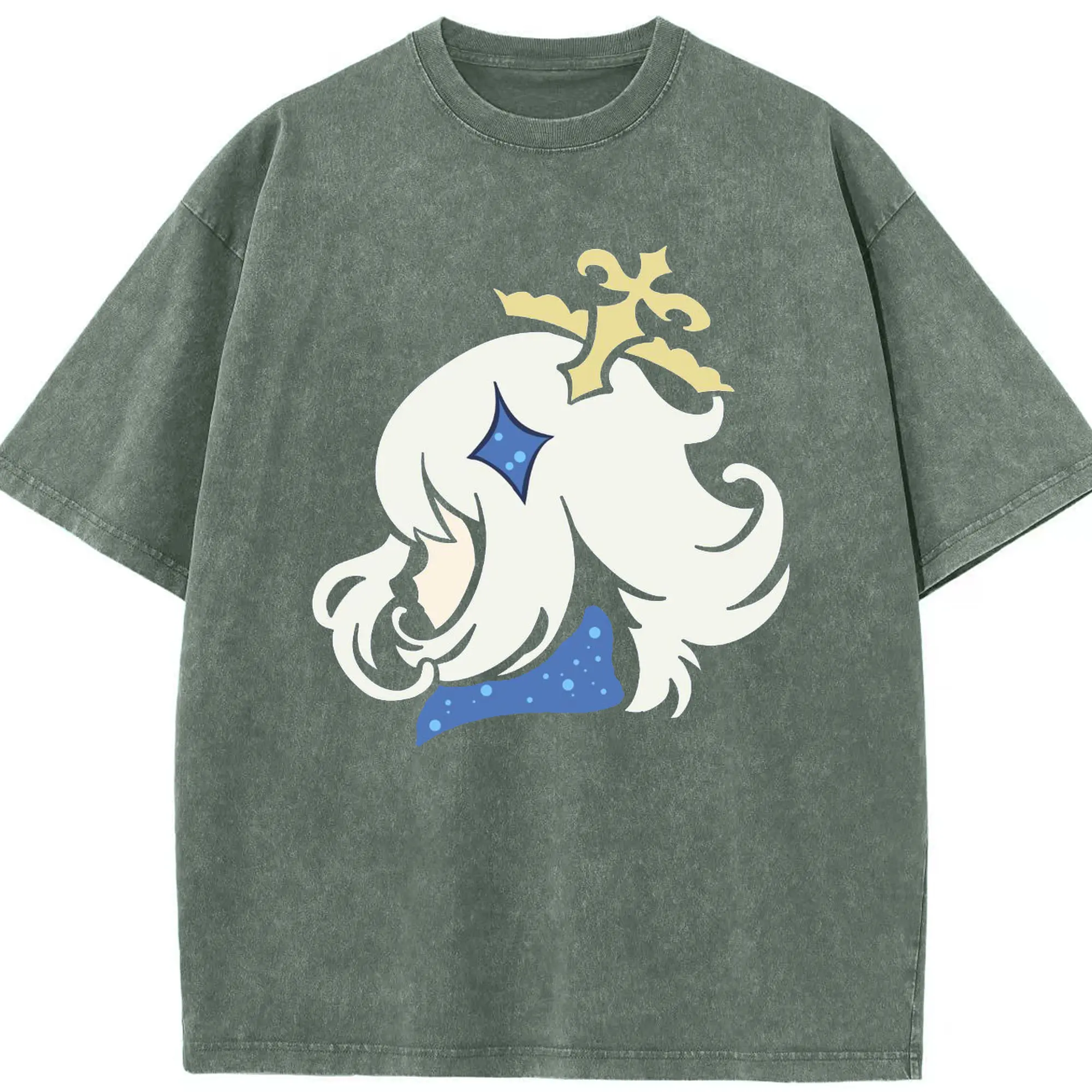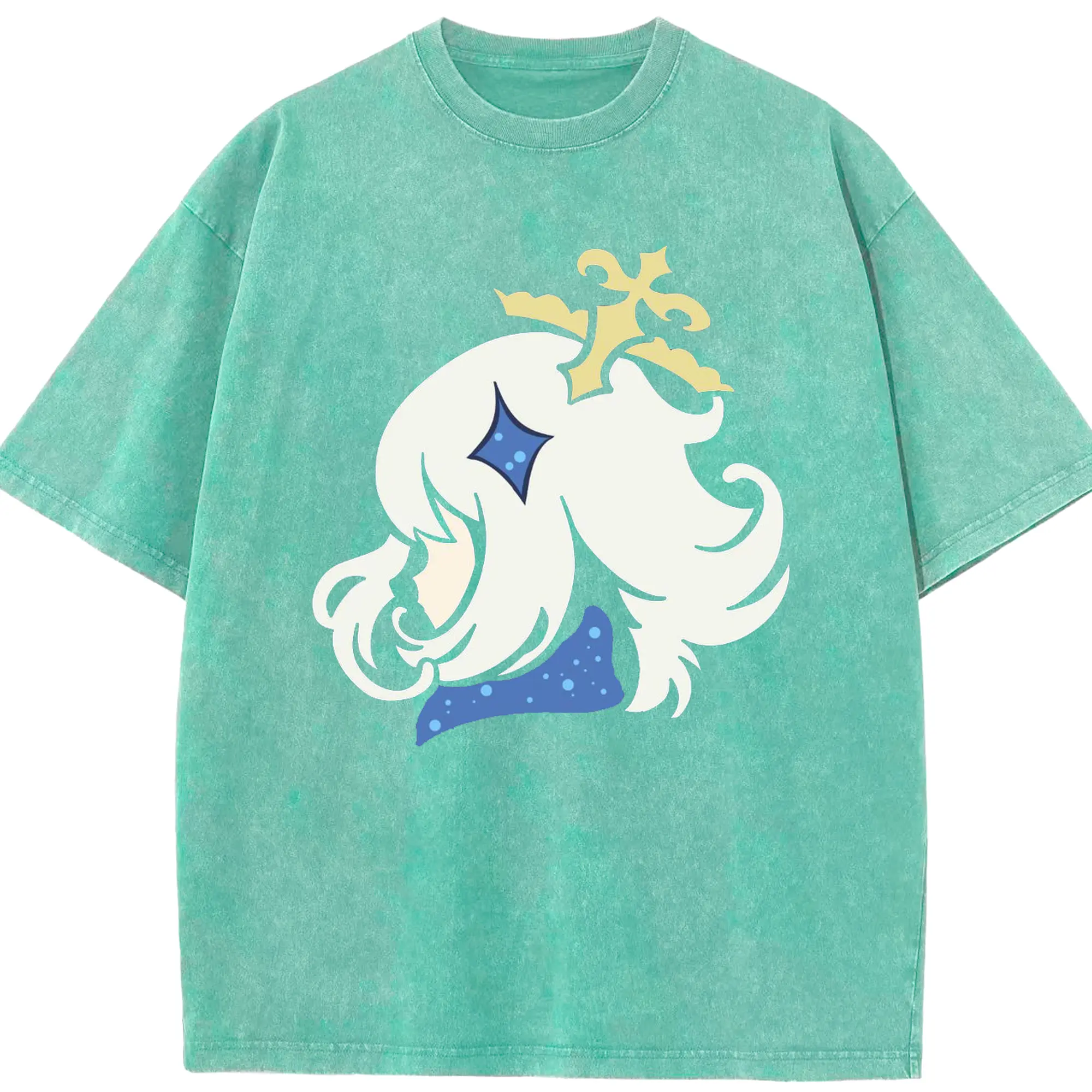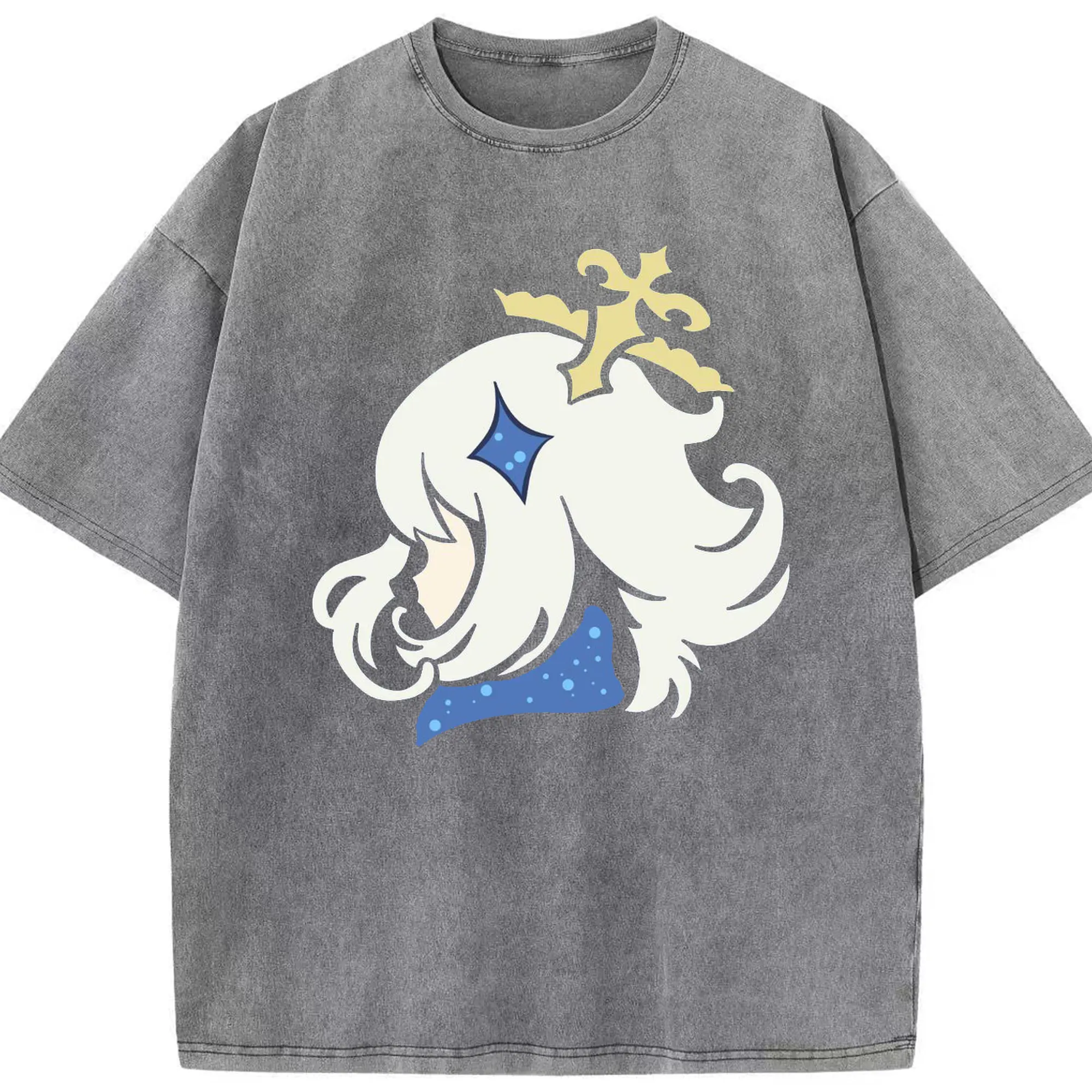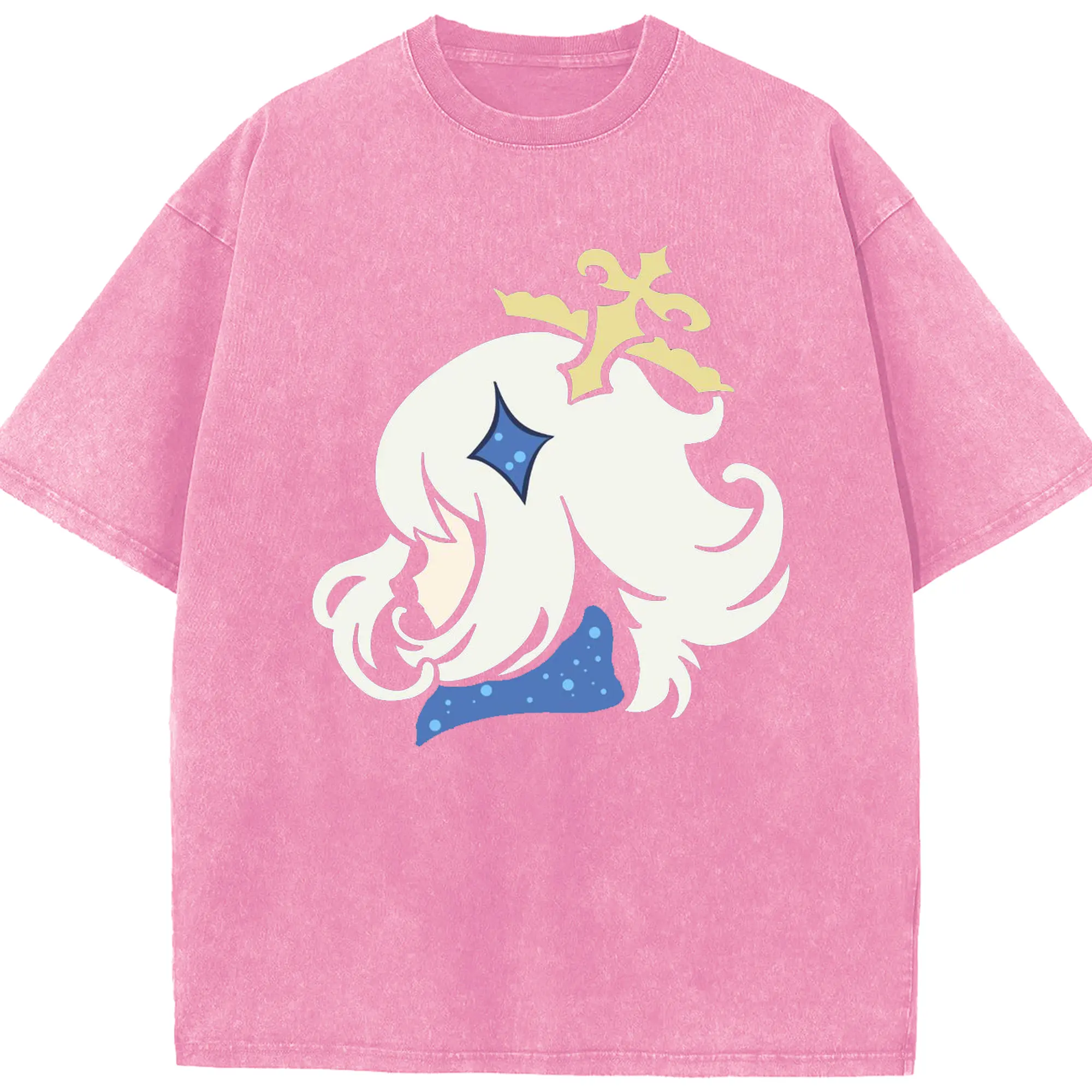 Genshin パイモン - 綿100% ヴィンテージ風 半袖Tシャツ ・ フロントプリント ・ 柔らか肌触り ・ 通気性 快適 ・ スポーツ カジュアル 外出用