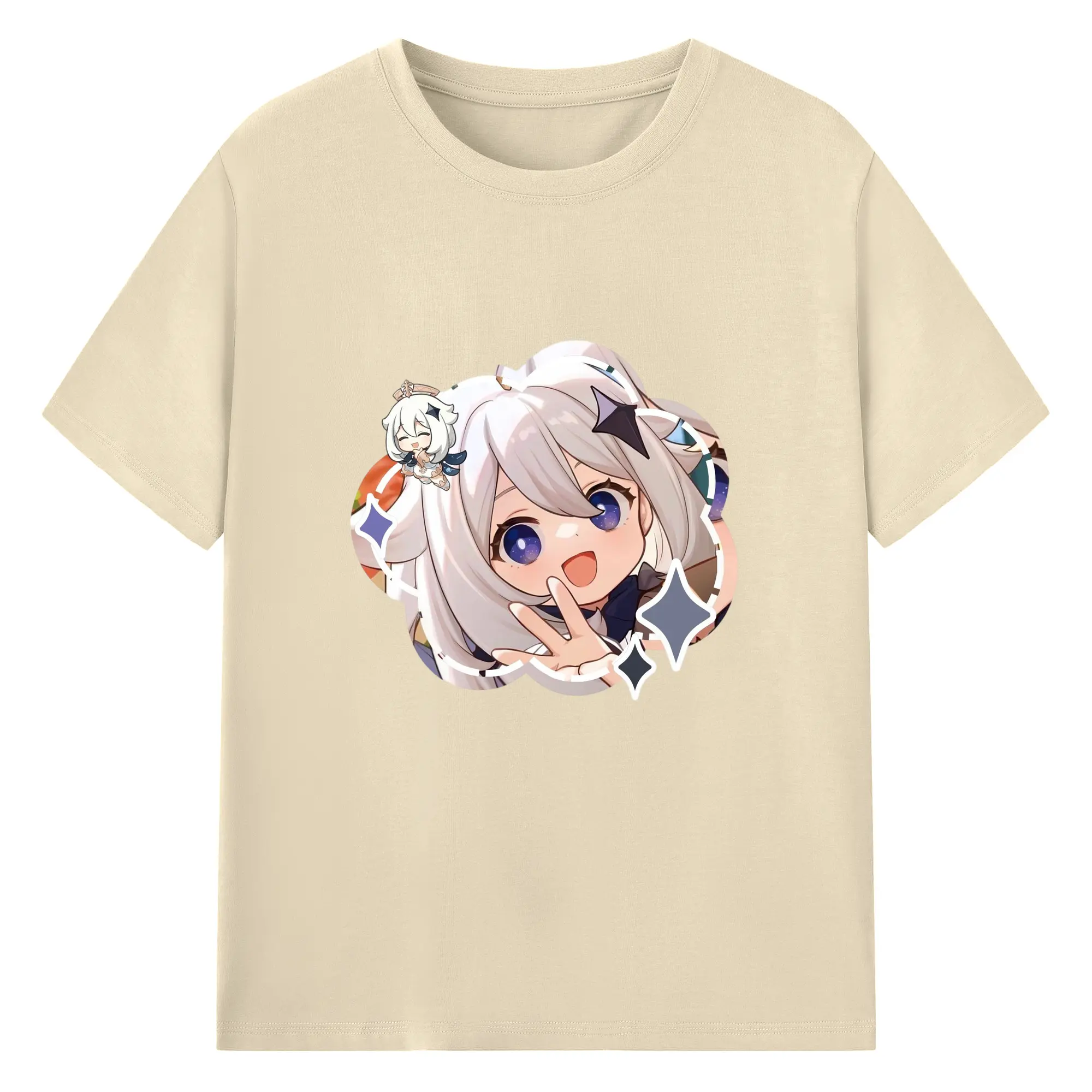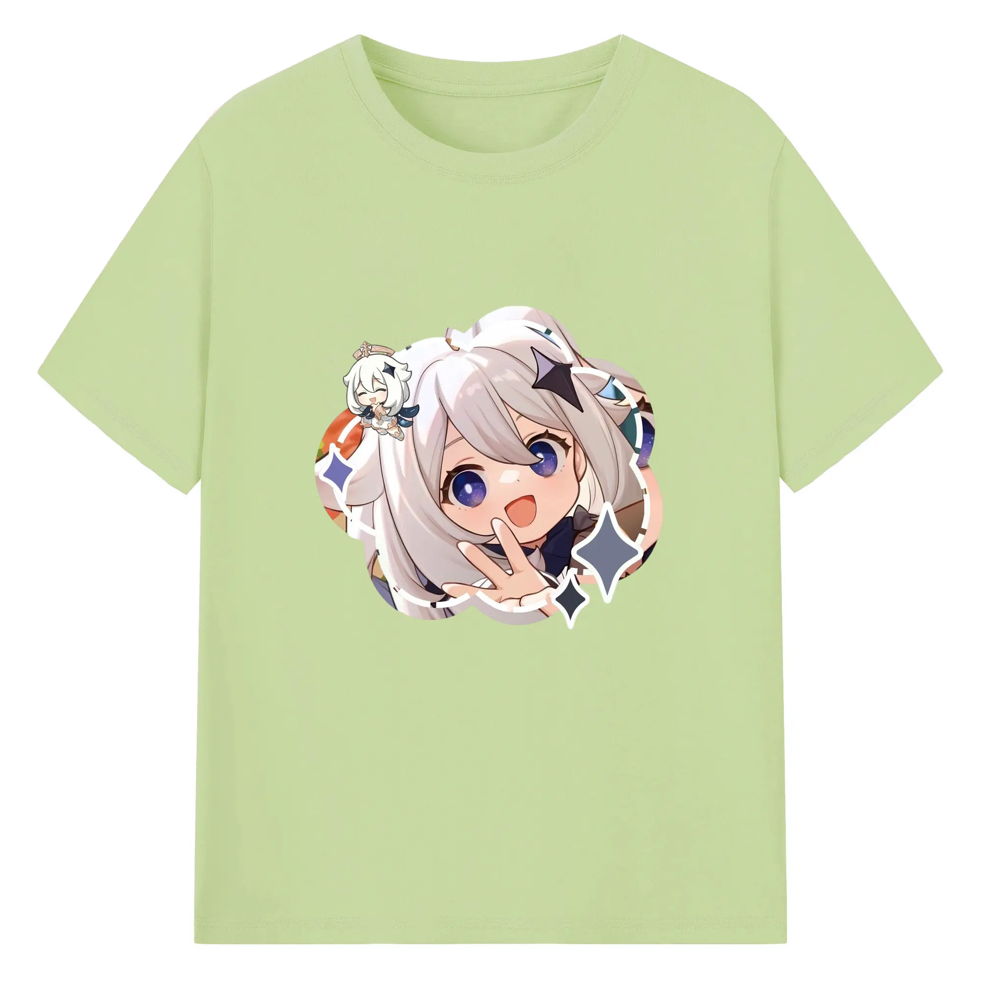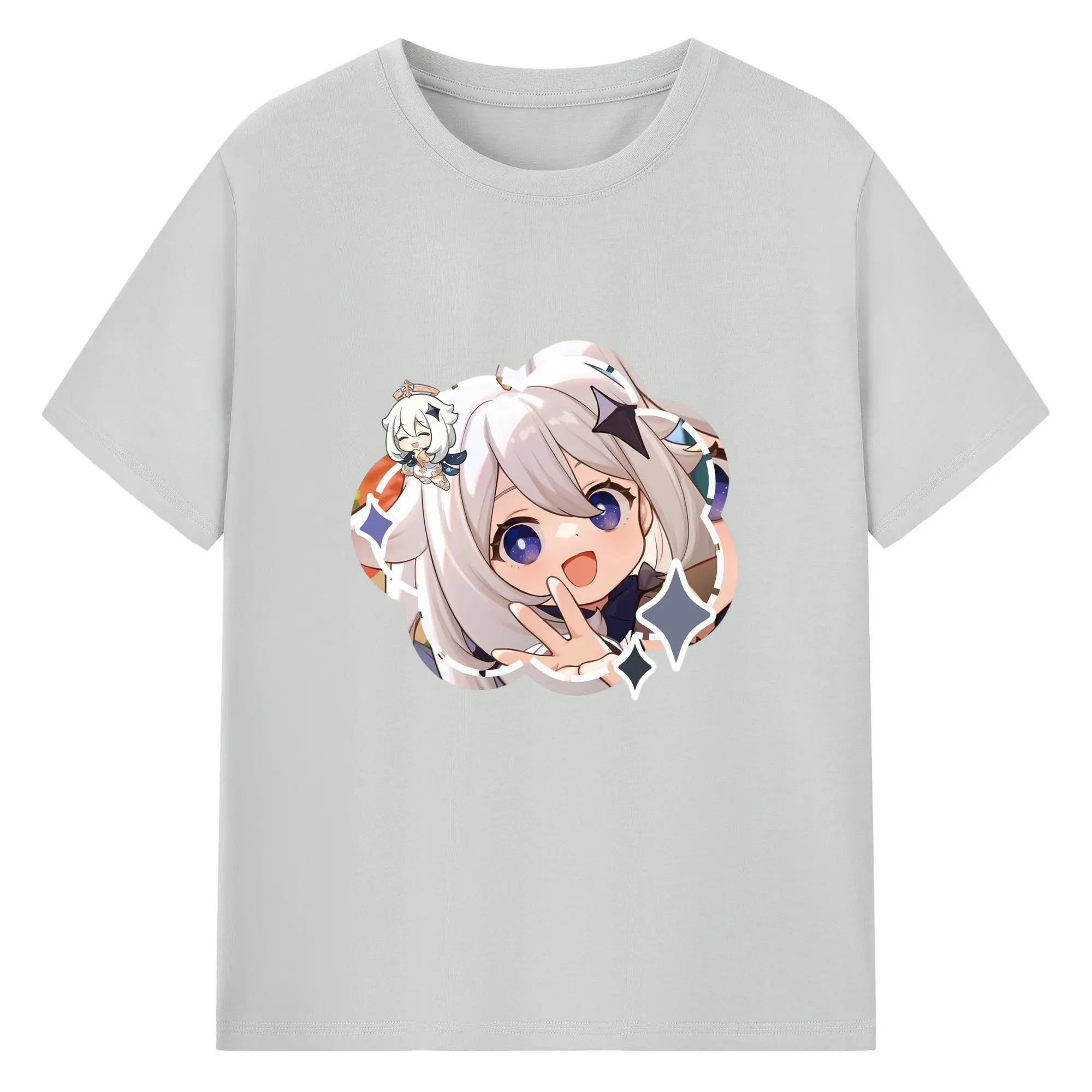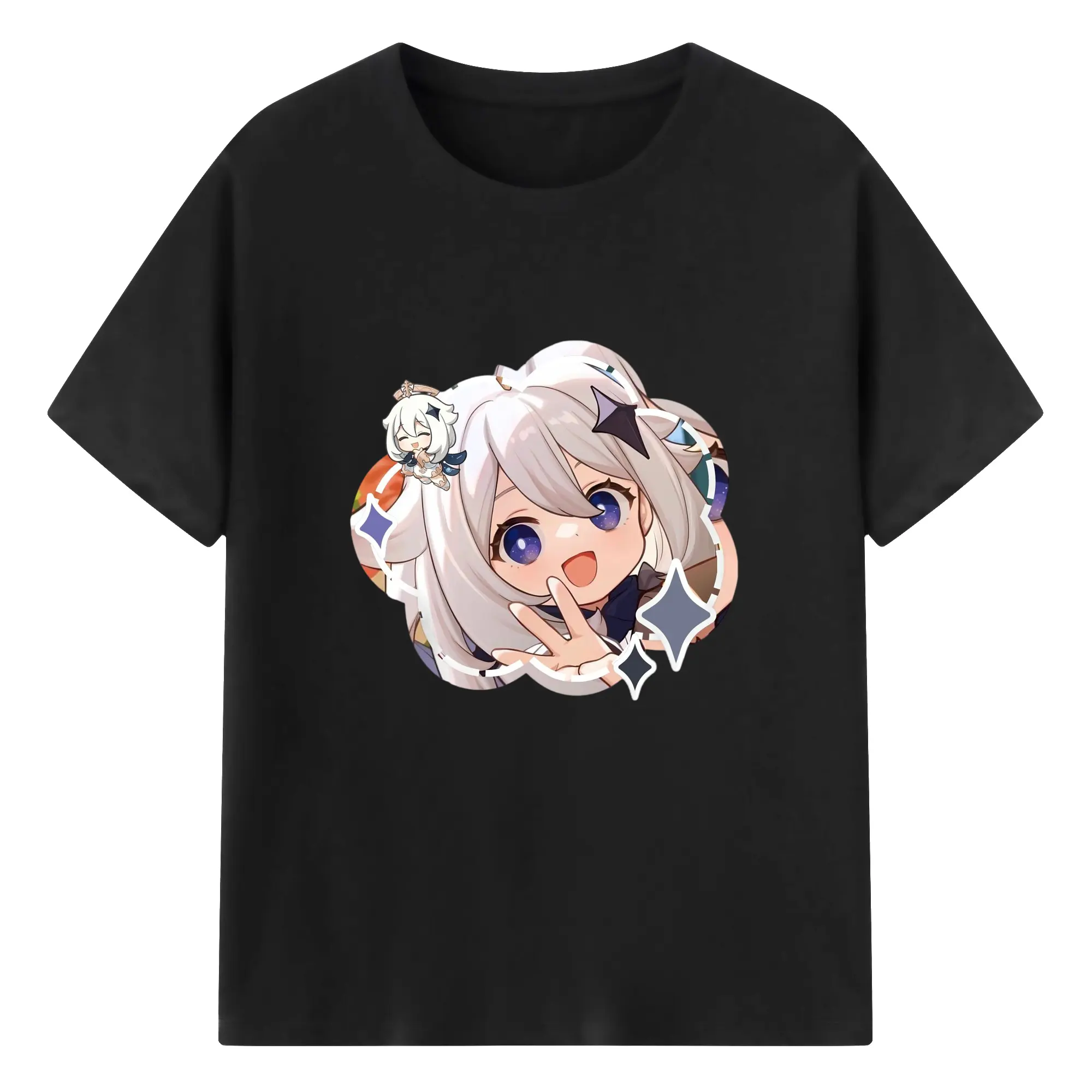 Genshin パイモン - 綿100% 半袖Tシャツ ・ フロントプリント ・ 快適 通気性 ・ 日常使い 散歩 スポーツ用