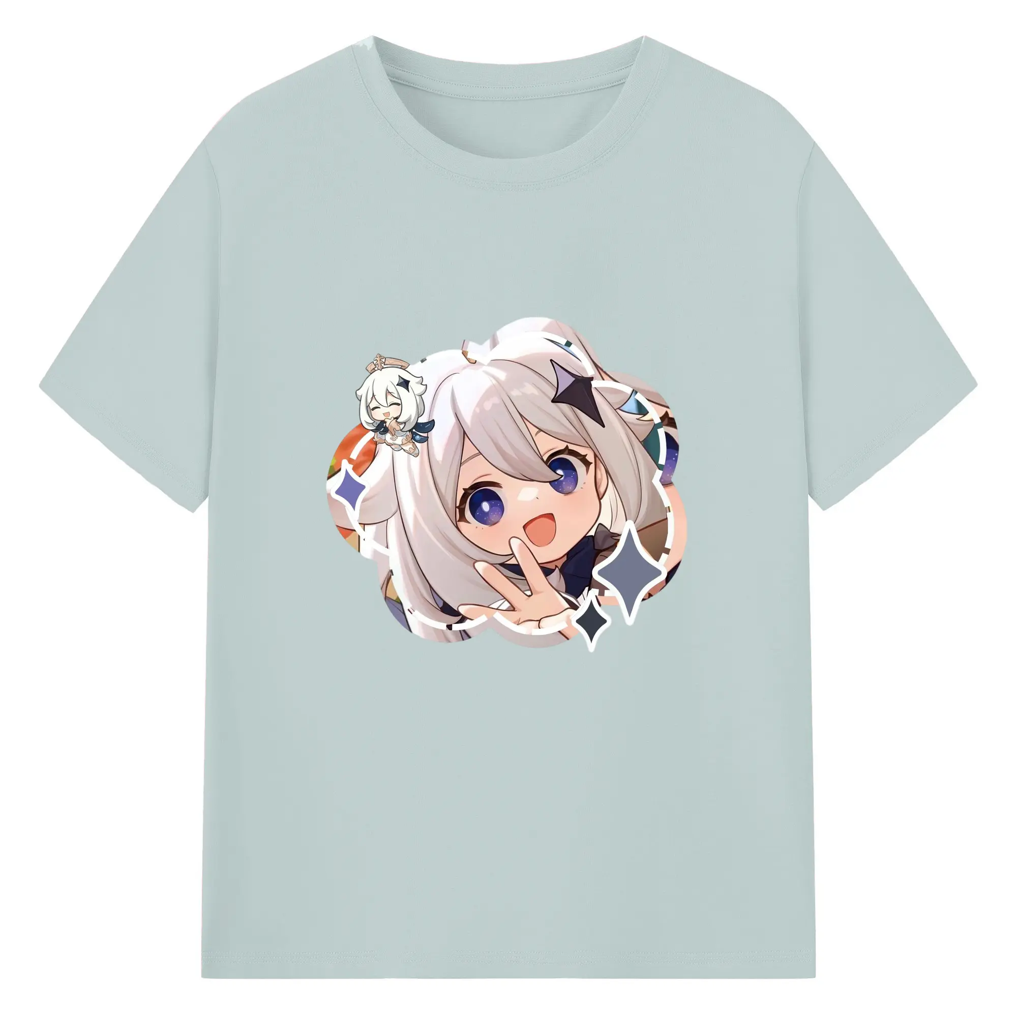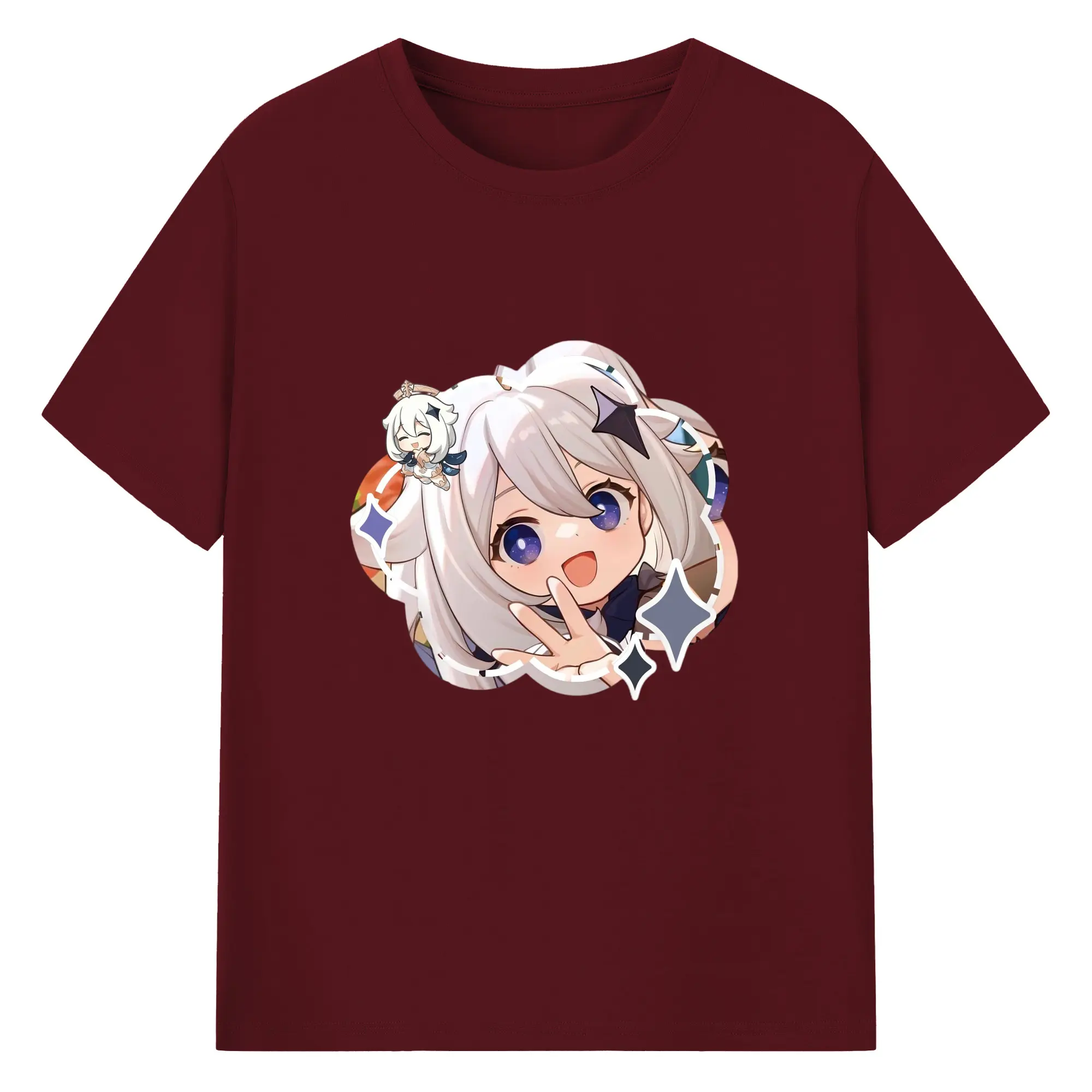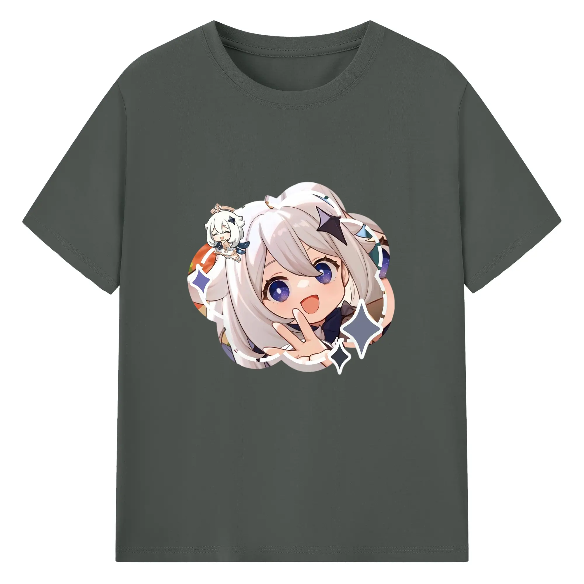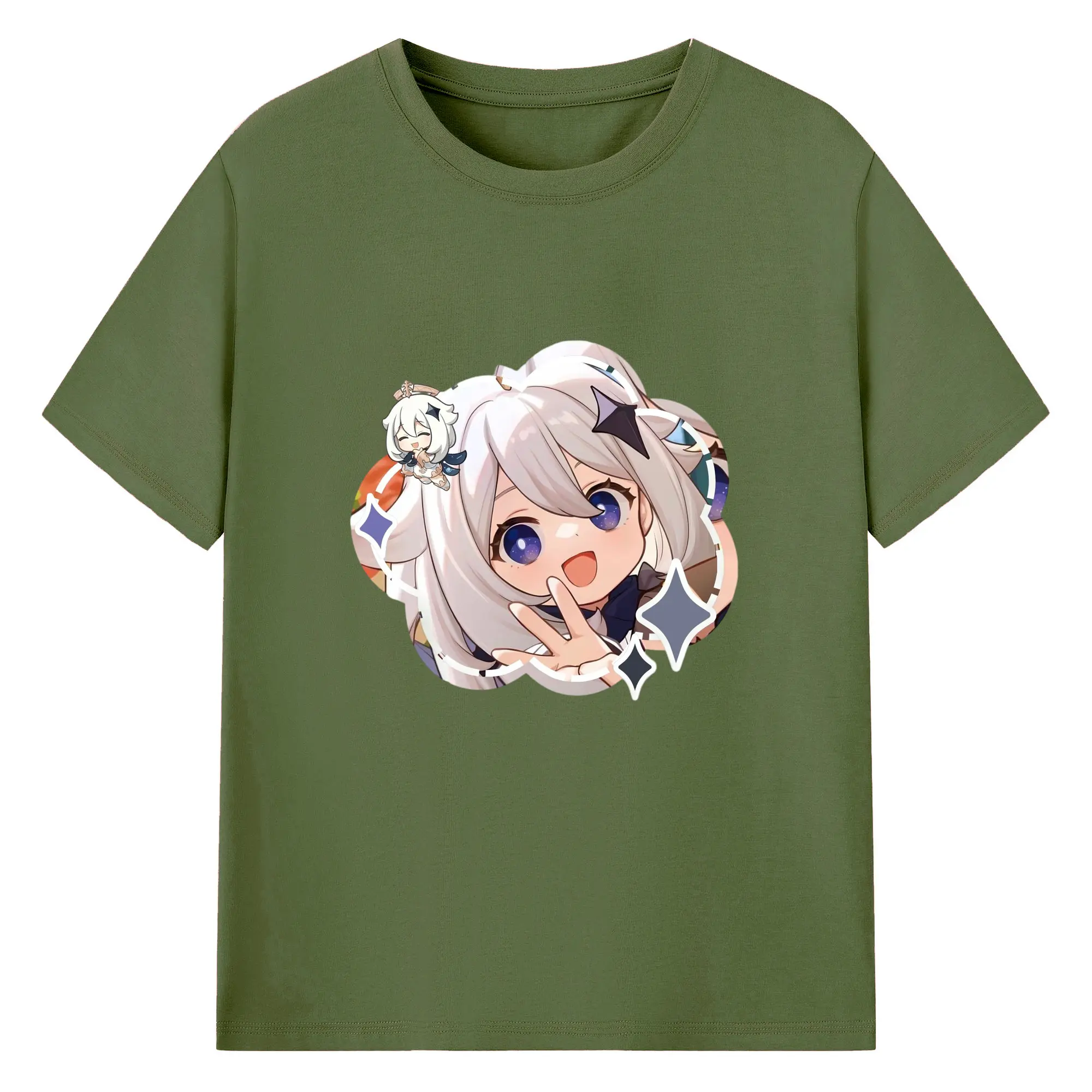 Genshin パイモン - 綿100% 半袖Tシャツ ・ フロントプリント ・ 快適 通気性 ・ 日常使い 散歩 スポーツ用