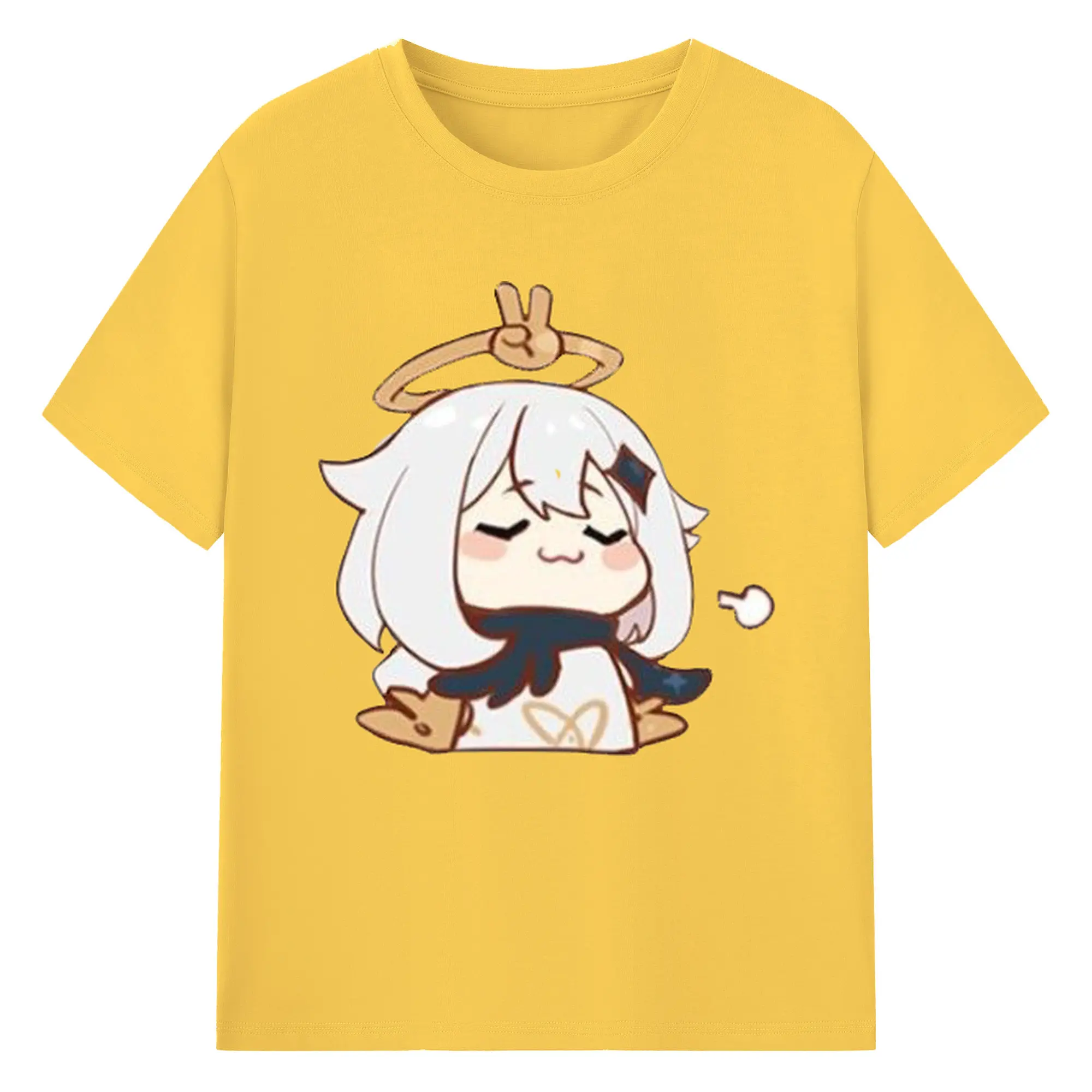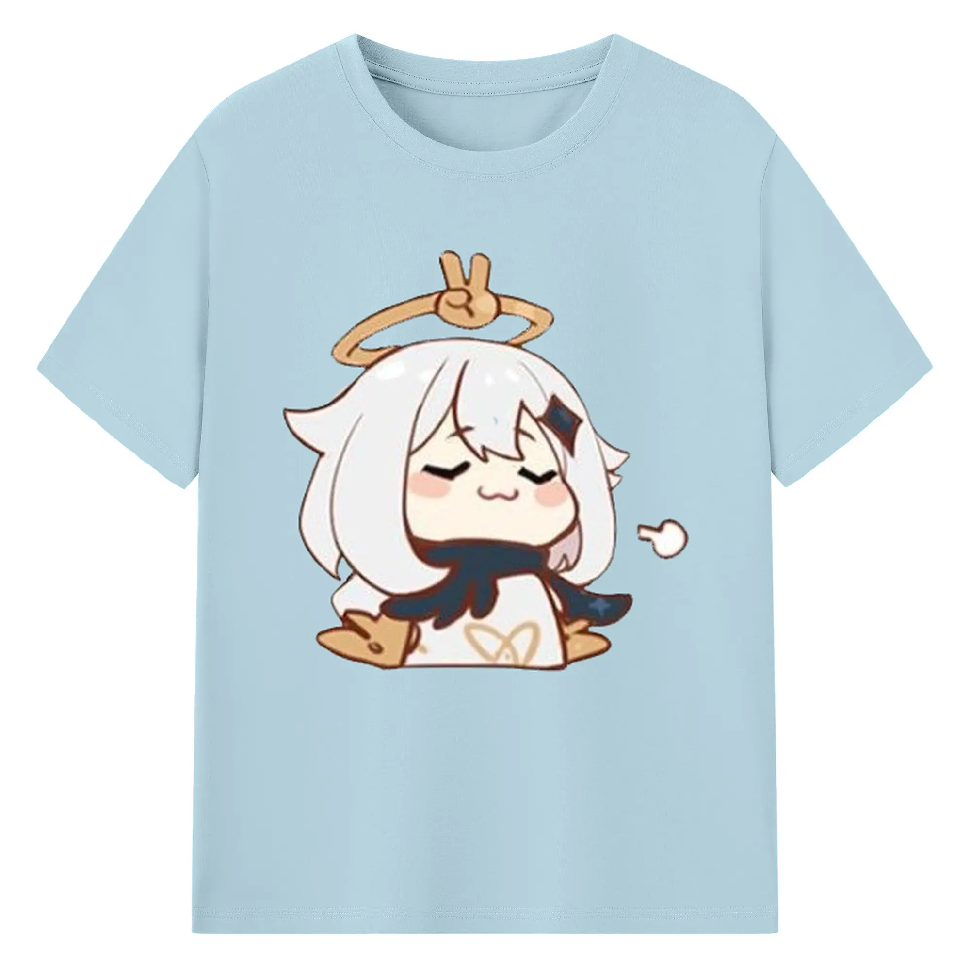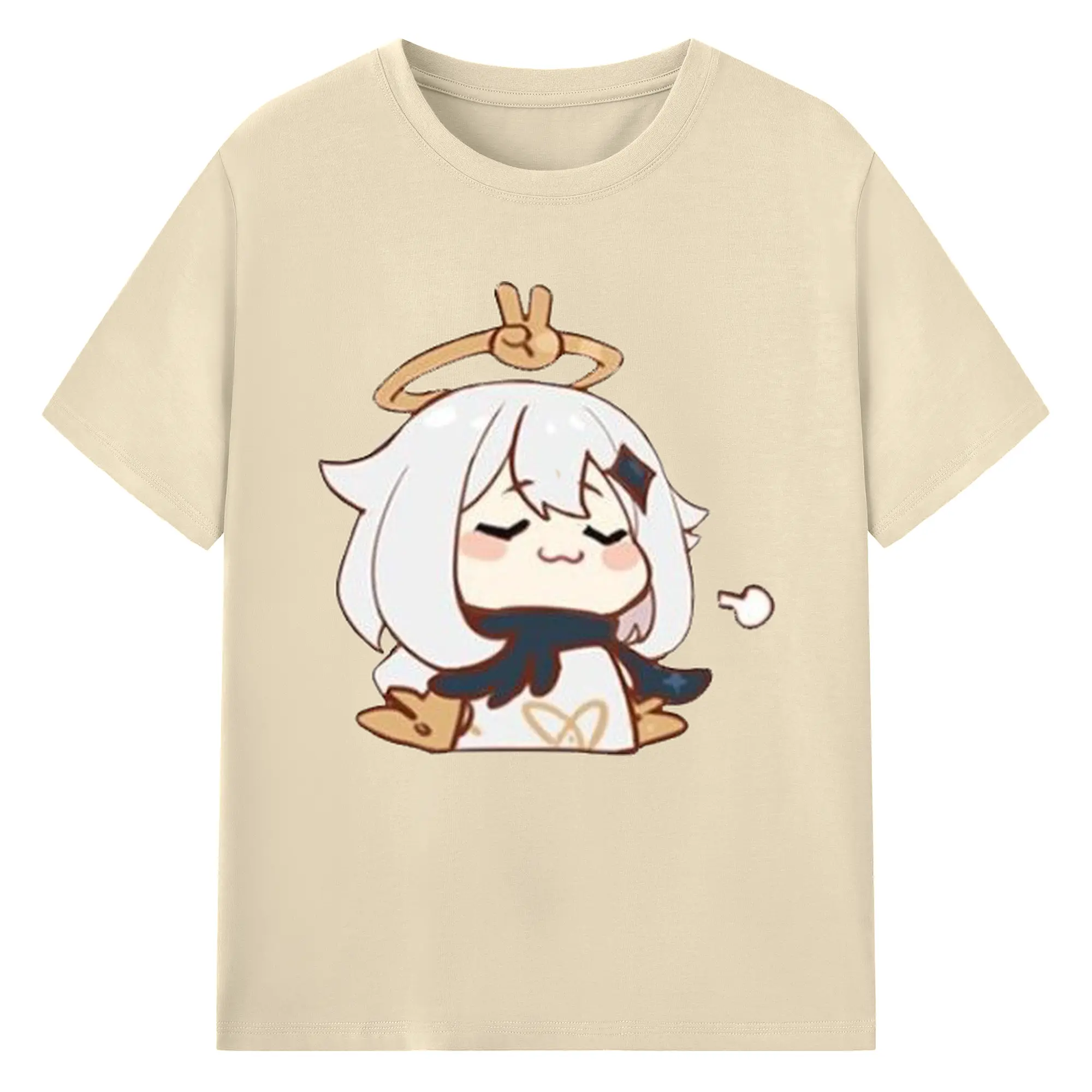 Genshin パイモン - 綿100% 半袖Tシャツ ・ フロントプリント ・ 快適 通気性 ・ 日常使い 散歩 スポーツ用