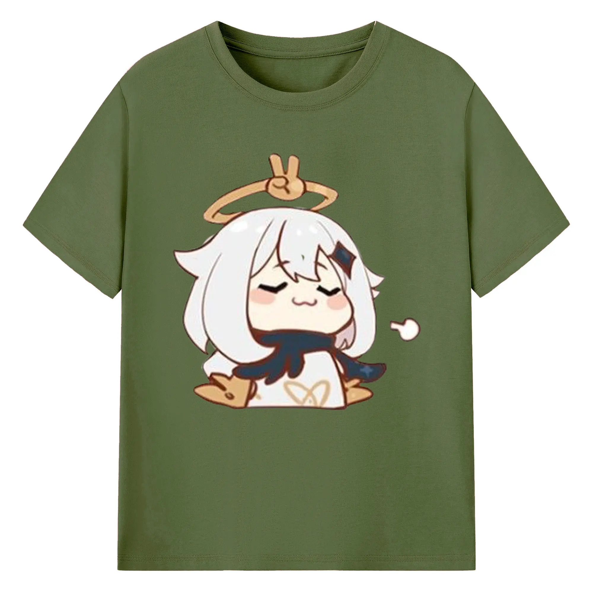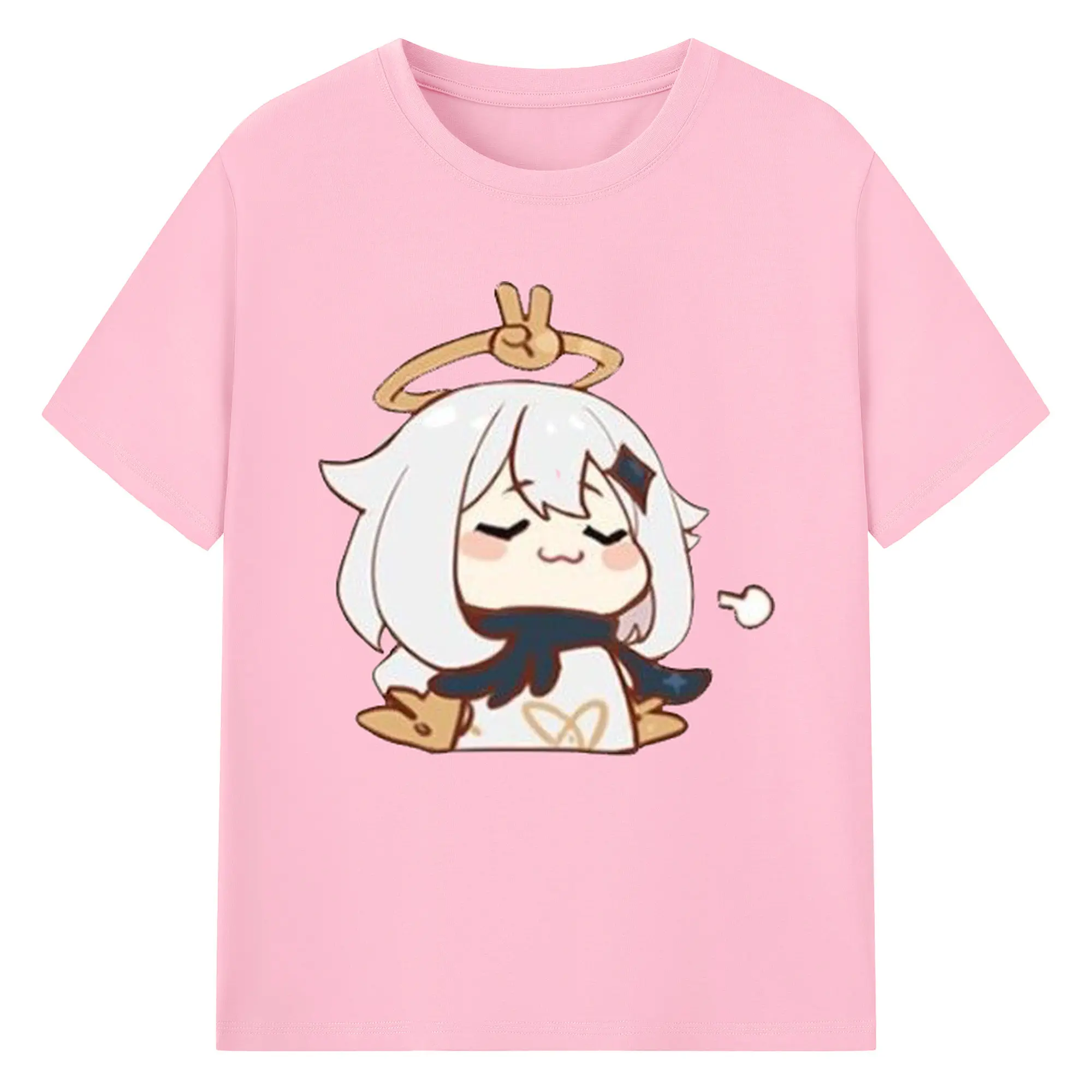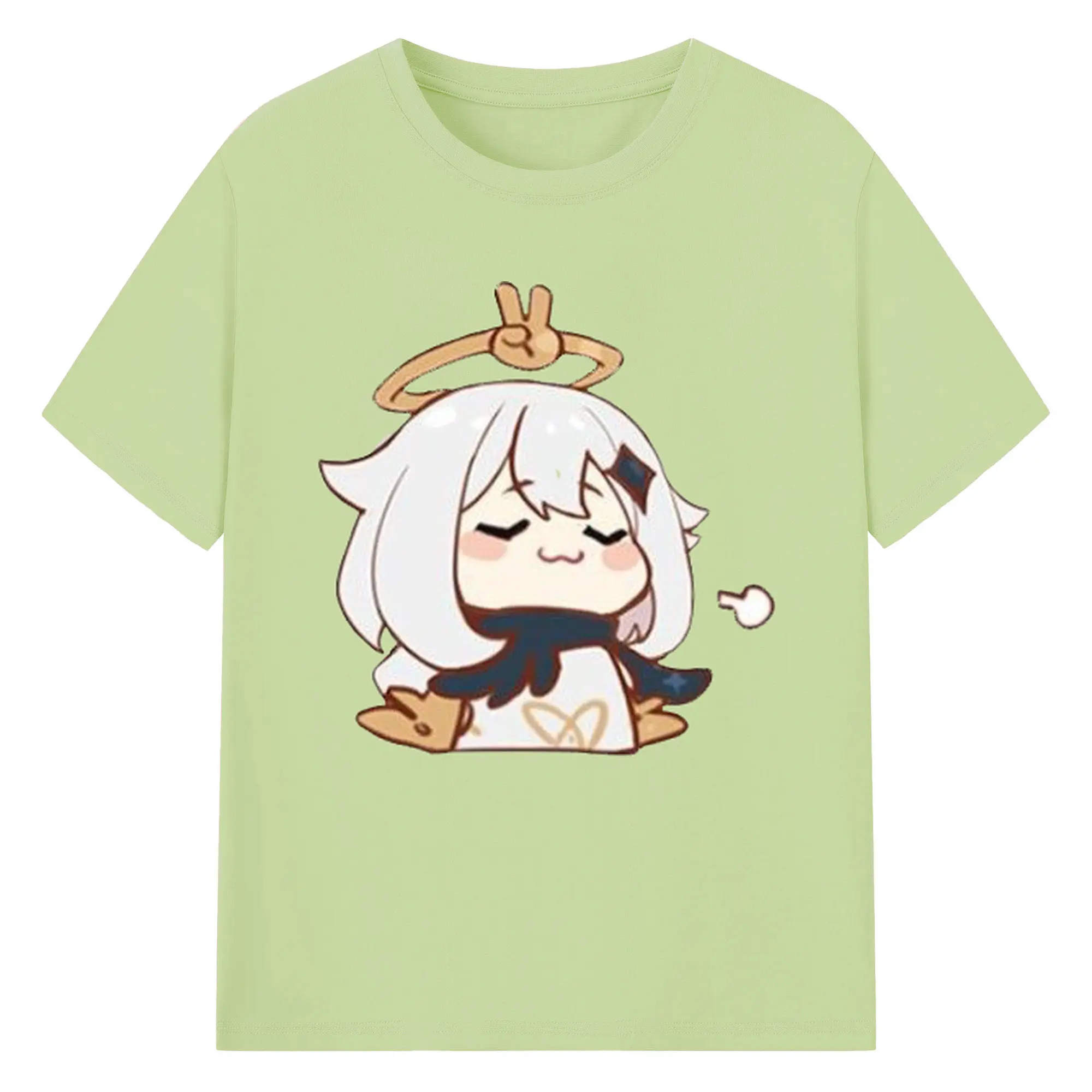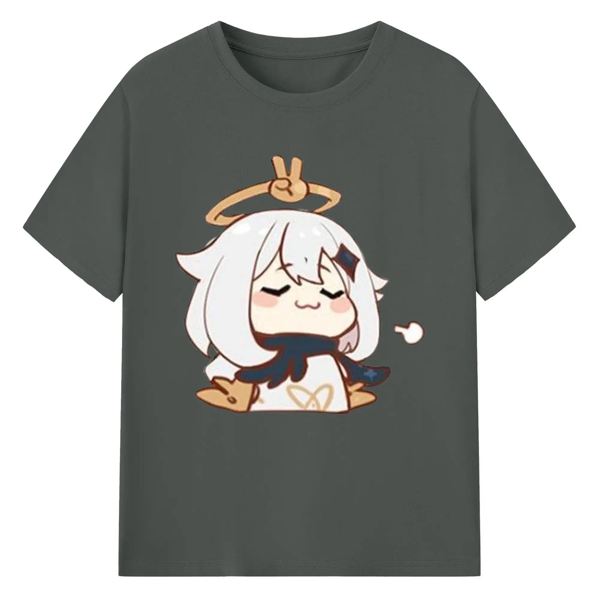 Genshin パイモン - 綿100% 半袖Tシャツ ・ フロントプリント ・ 快適 通気性 ・ 日常使い 散歩 スポーツ用