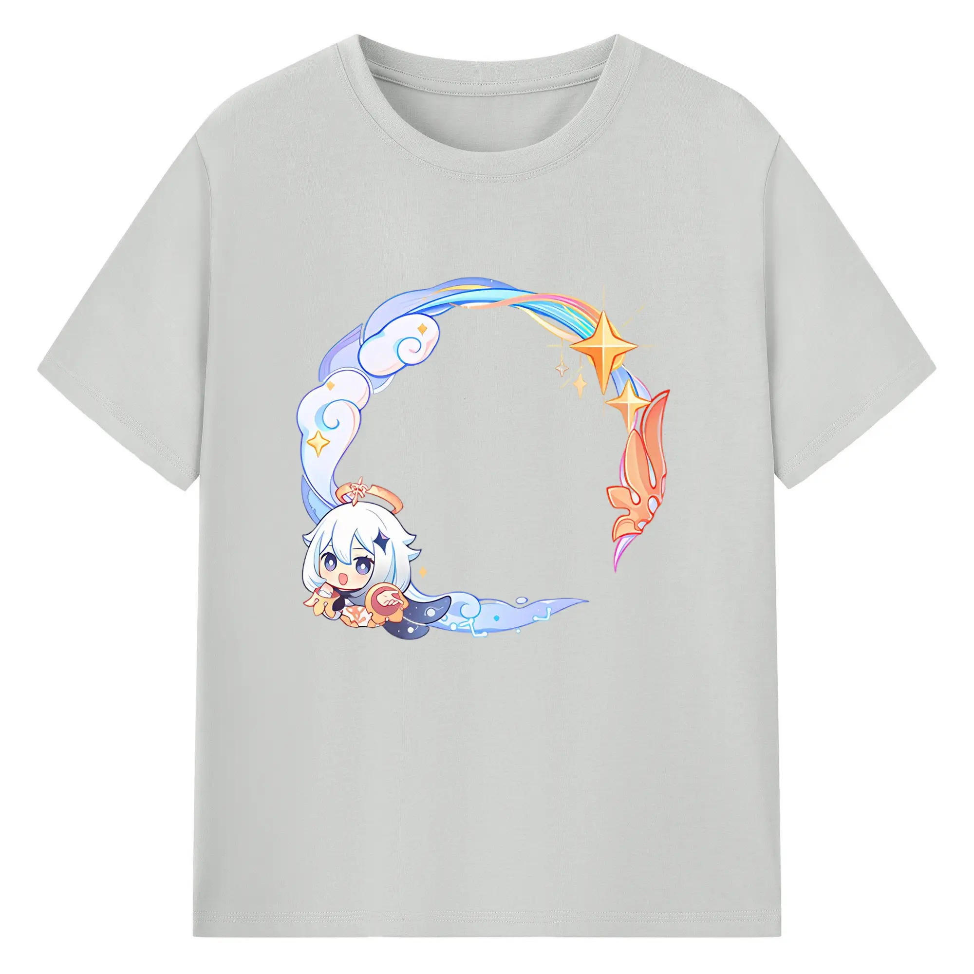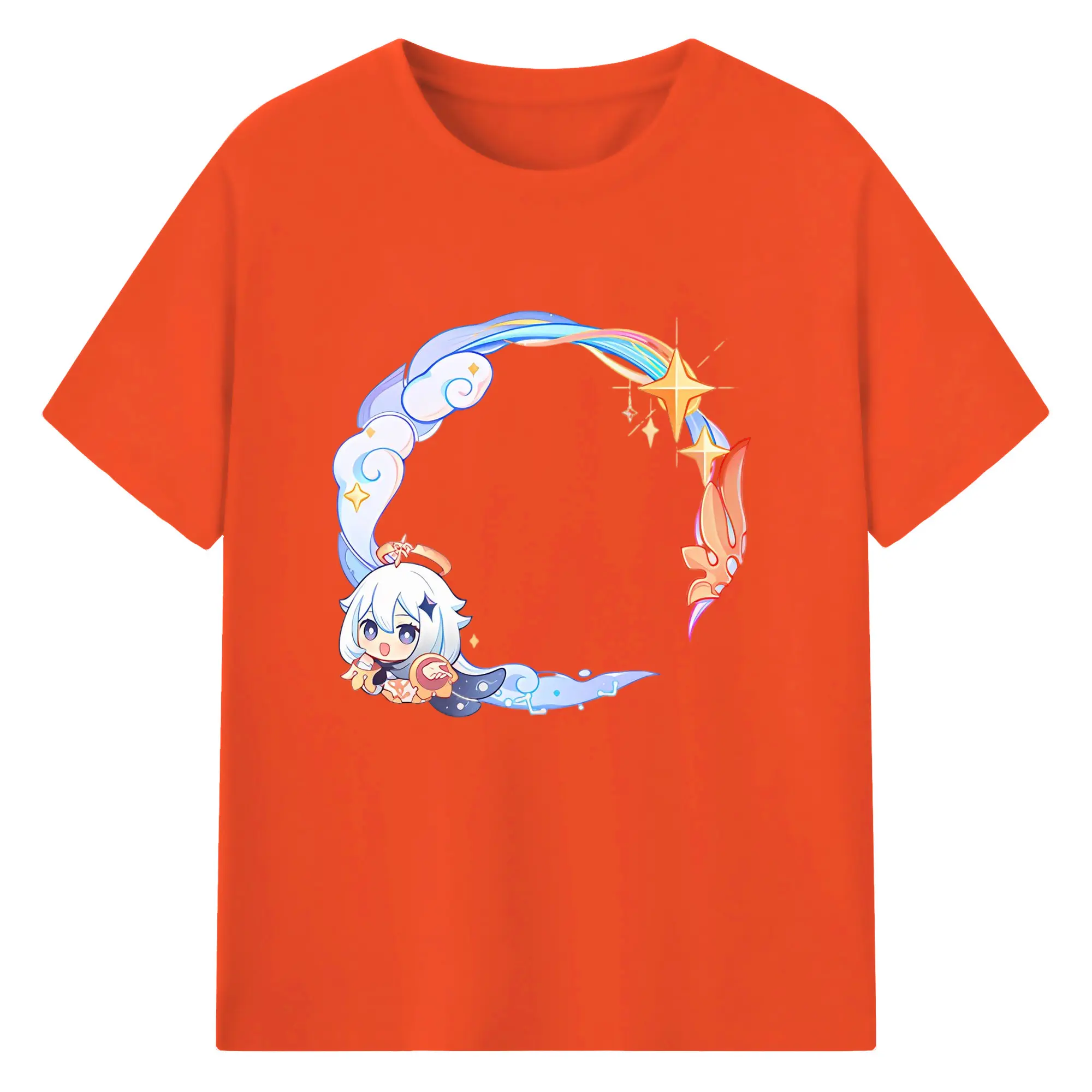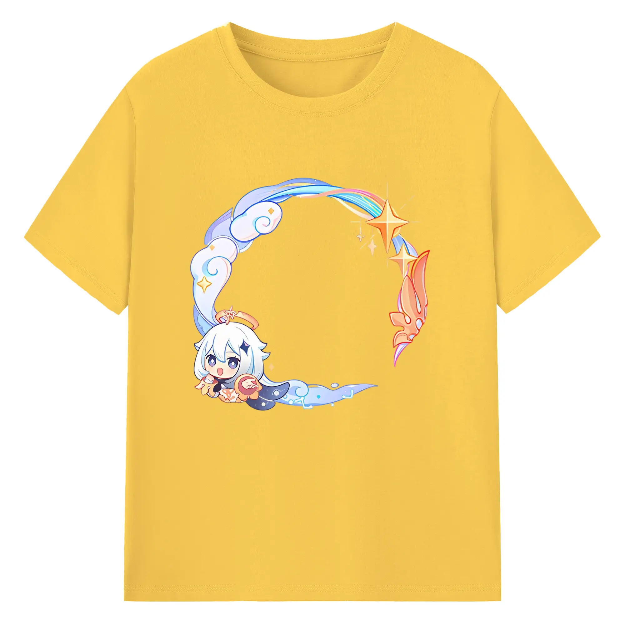 Genshin パイモン - 綿100% 半袖Tシャツ ・ フロントプリント ・ 快適 通気性 ・ 日常使い 散歩 スポーツ用