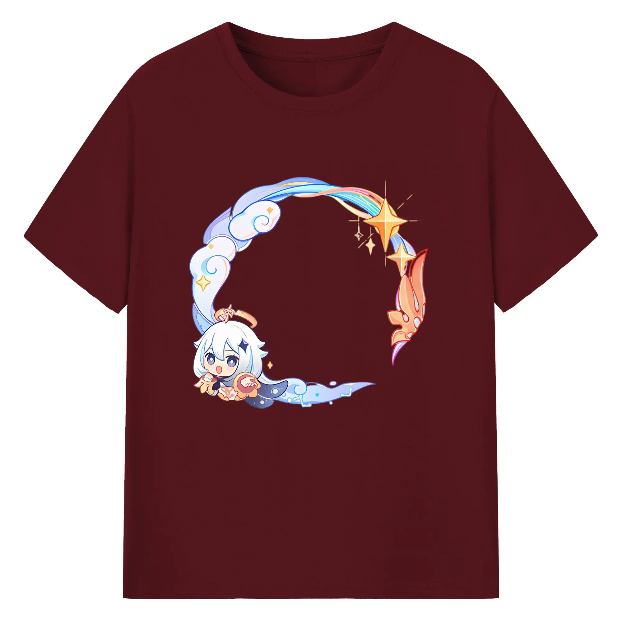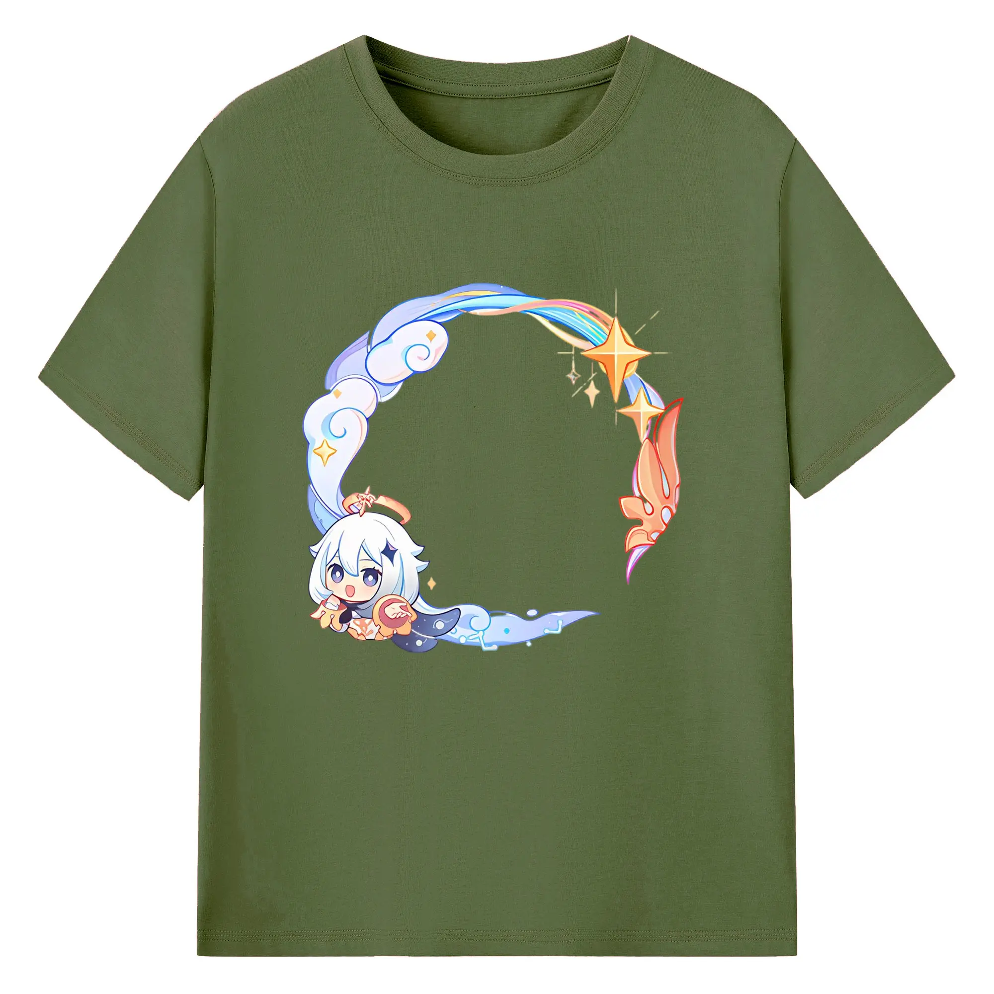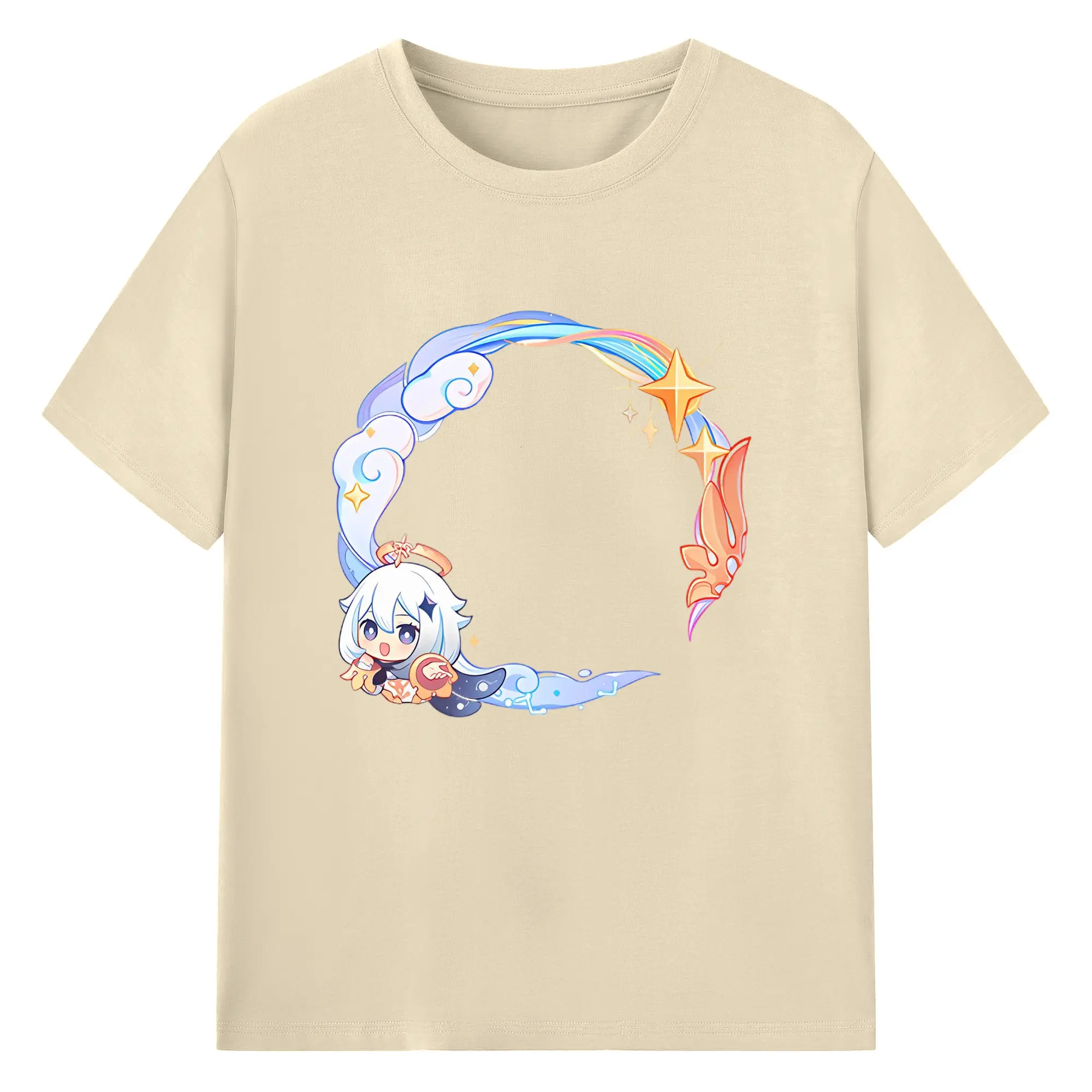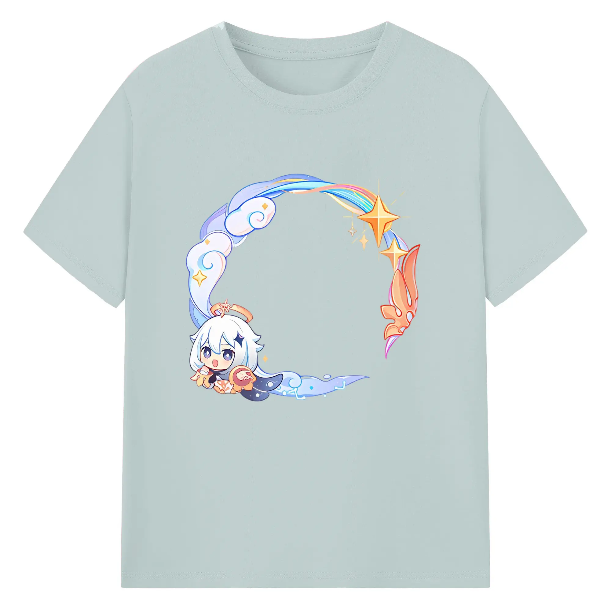 Genshin パイモン - 綿100% 半袖Tシャツ ・ フロントプリント ・ 快適 通気性 ・ 日常使い 散歩 スポーツ用