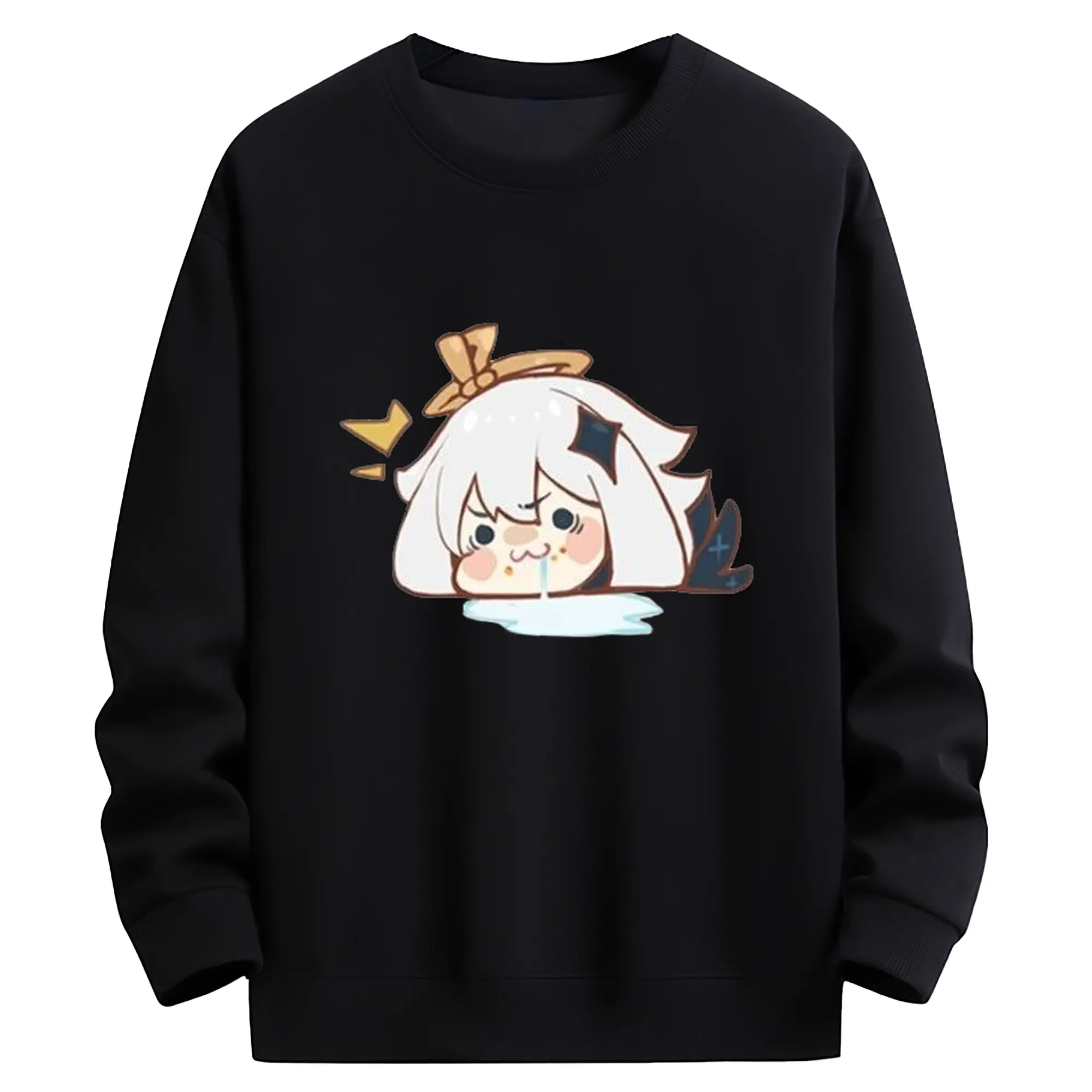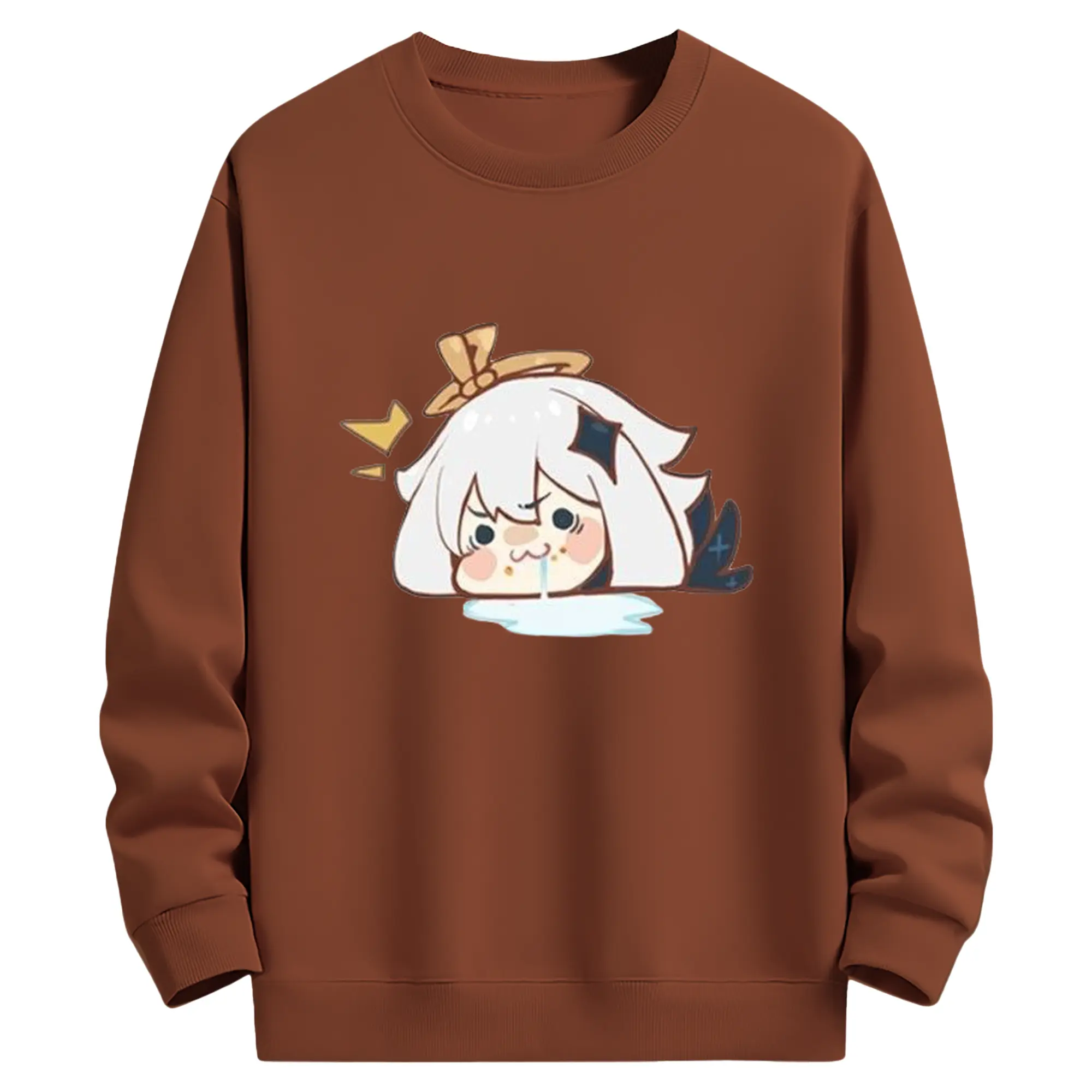 Genshin パイモン - 高品質 クルーネック スウェット ・ コットン59% ポリエステル41% ・ ユニセックス 長袖 トレーナー ・ カジュアル デイリー スポーツ 散歩用