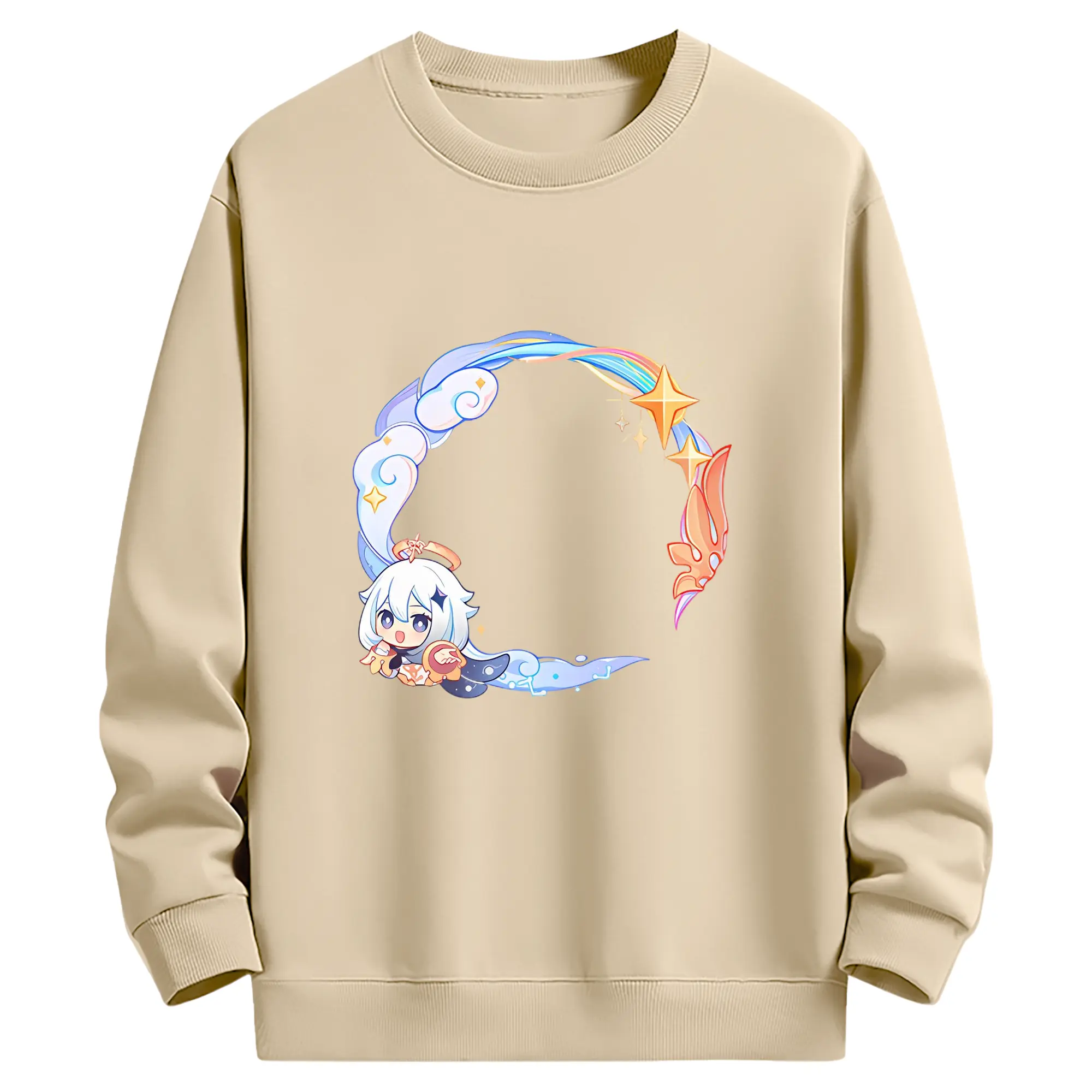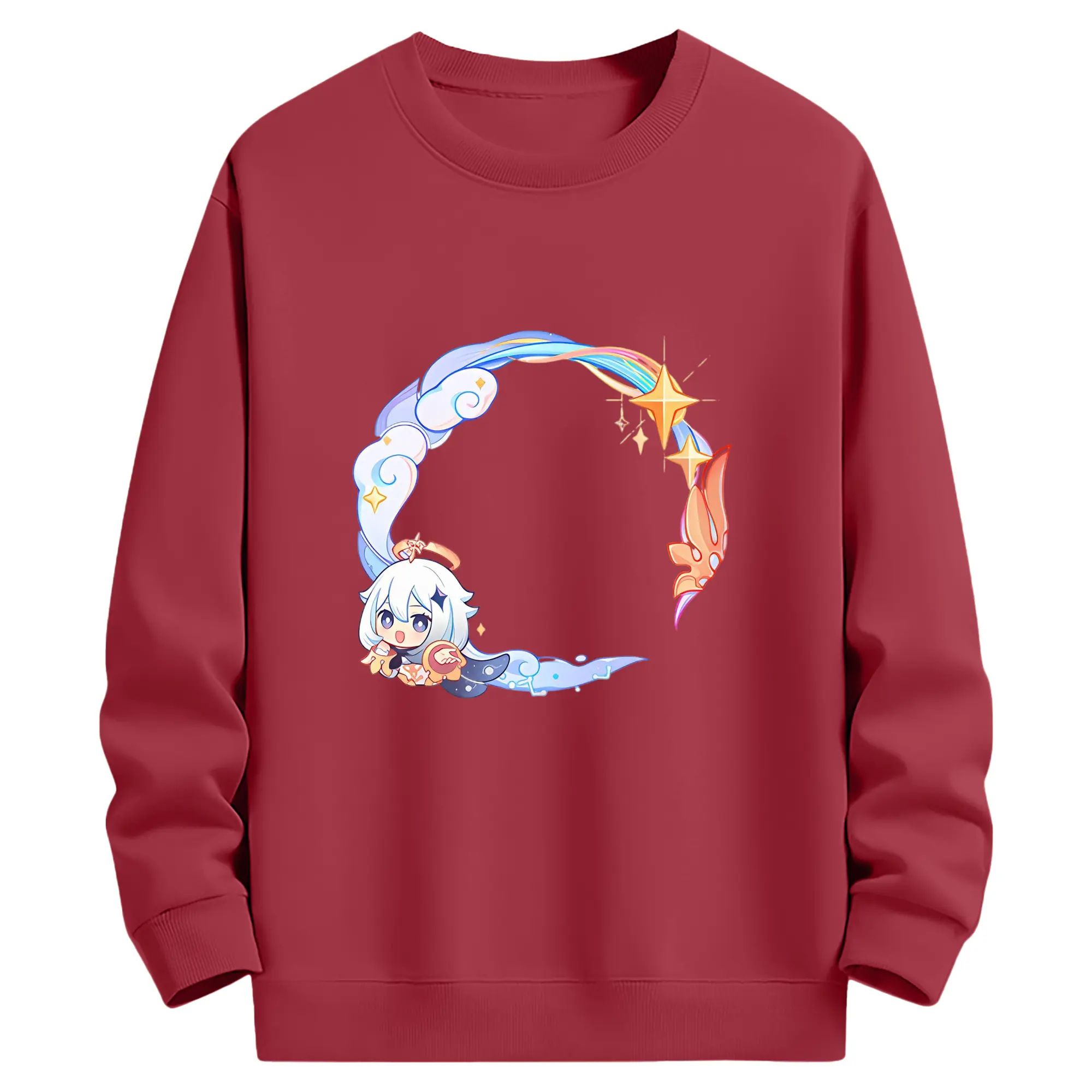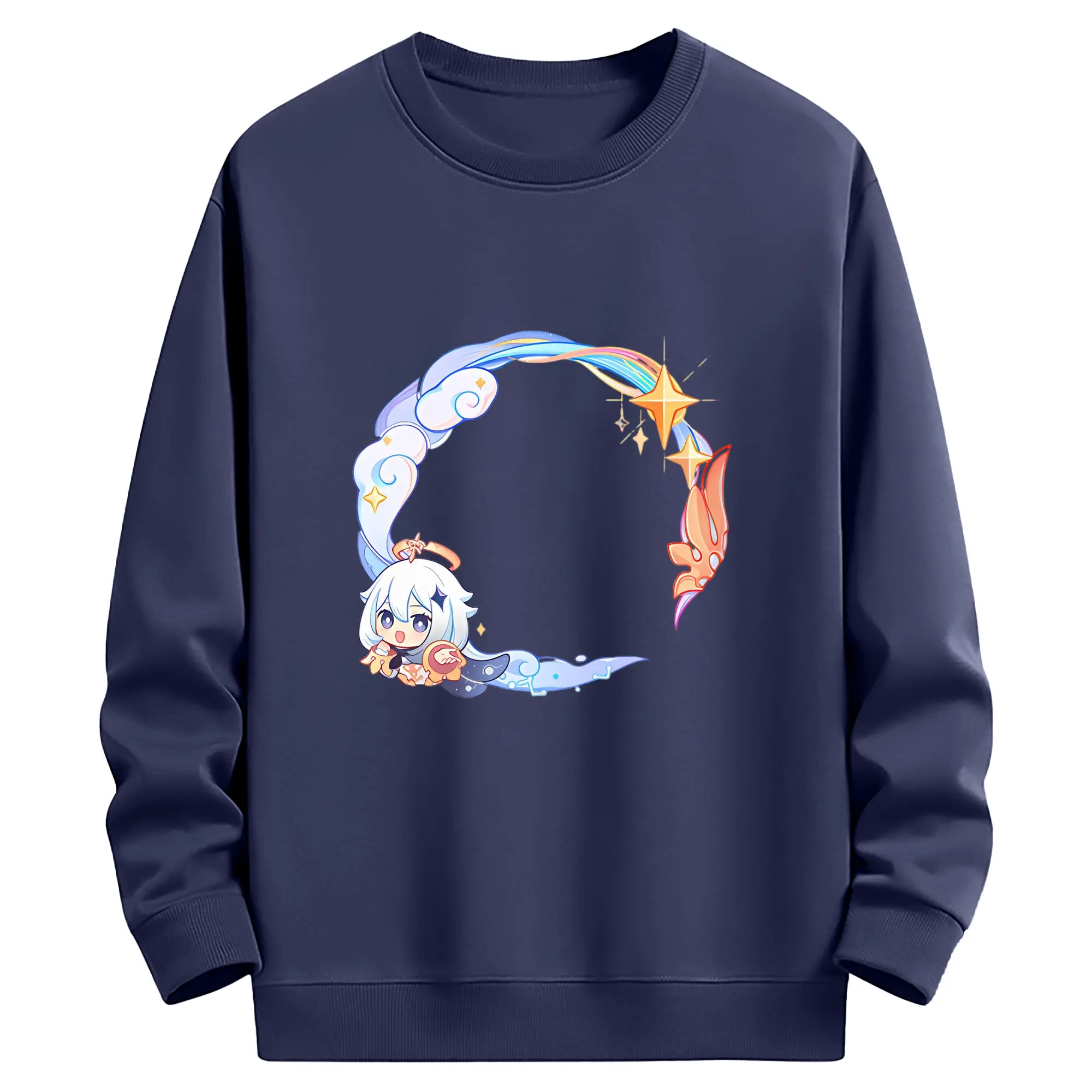Genshin パイモン - 高品質 クルーネック スウェット ・ コットン59% ポリエステル41% ・ ユニセックス 長袖 トレーナー ・ カジュアル デイリー スポーツ 散歩用
