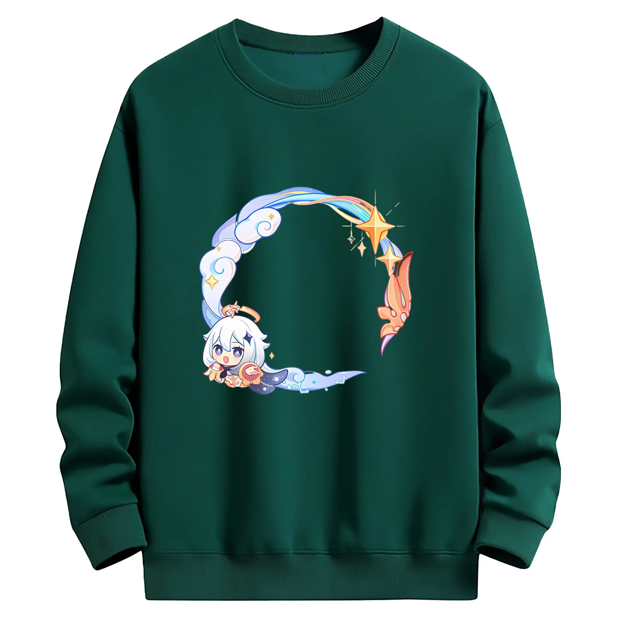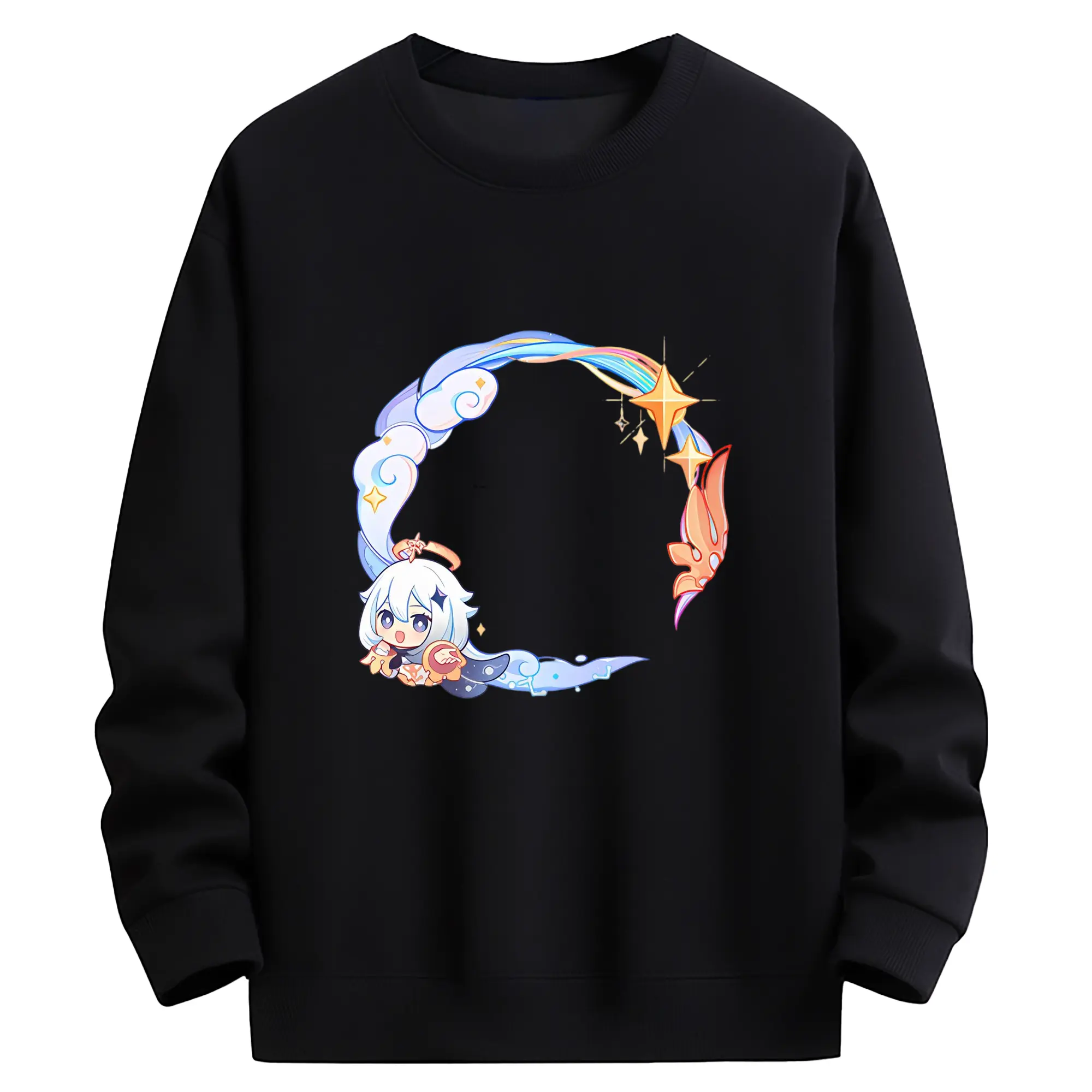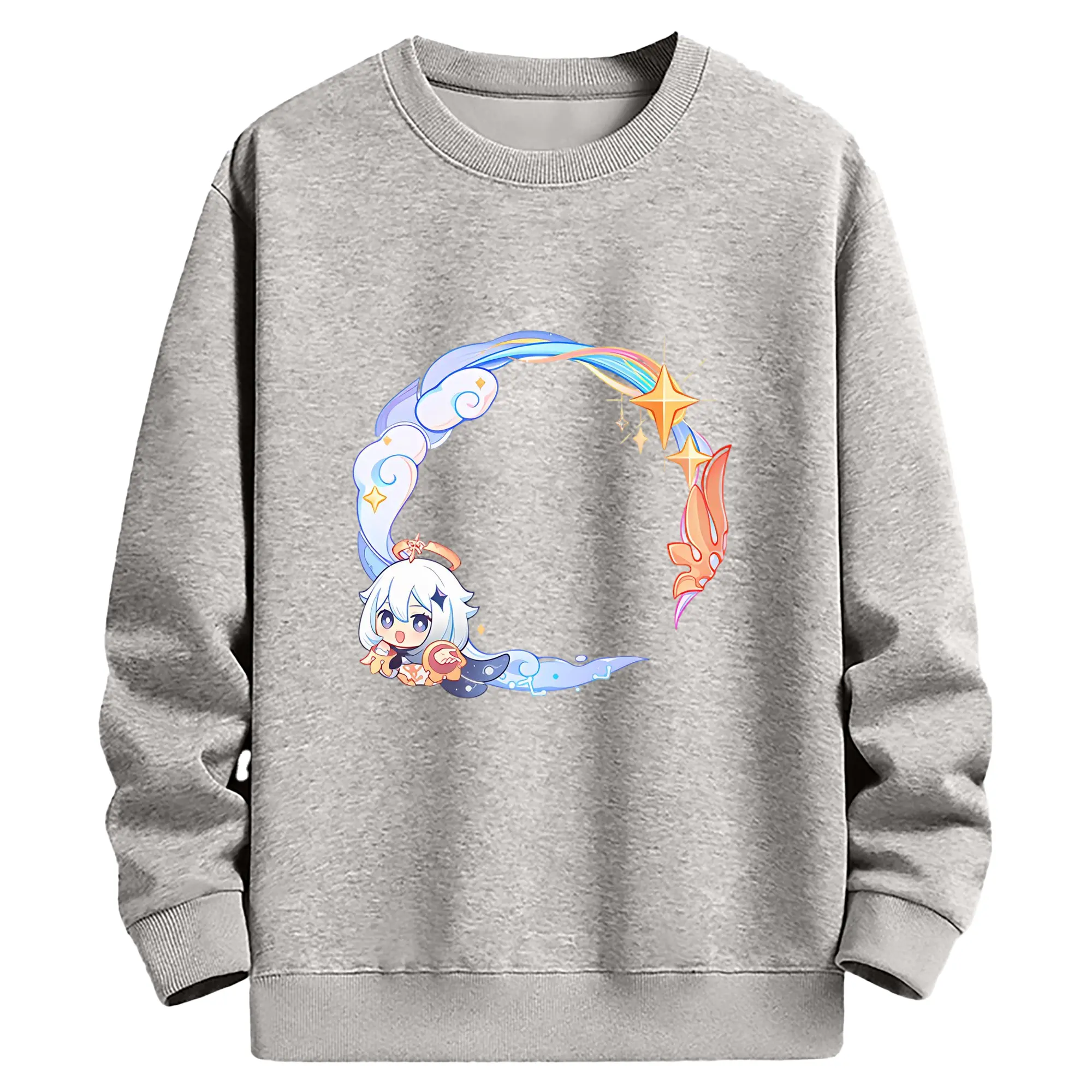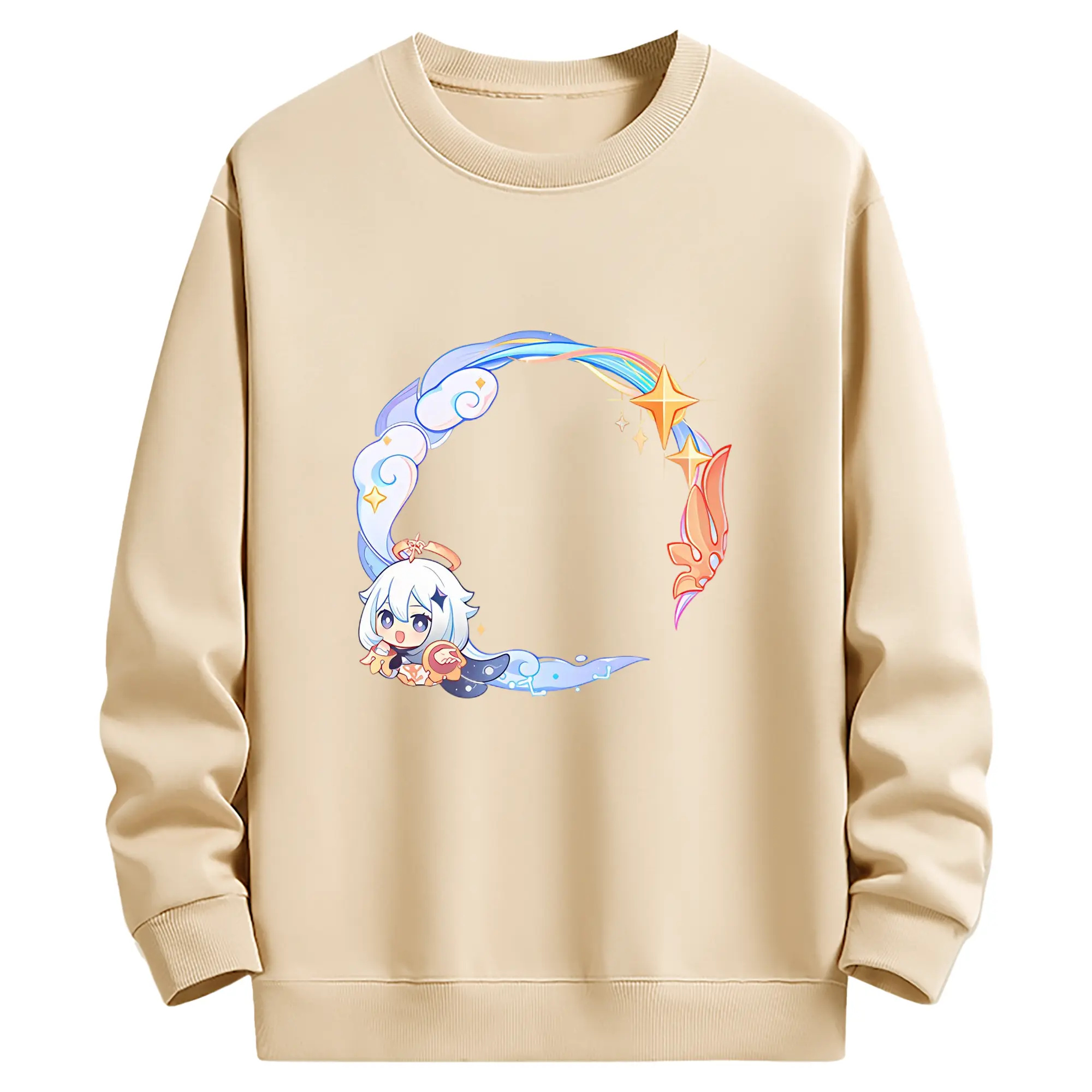 Genshin パイモン - 高品質 クルーネック スウェット ・ コットン59% ポリエステル41% ・ ユニセックス 長袖 トレーナー ・ カジュアル デイリー スポーツ 散歩用