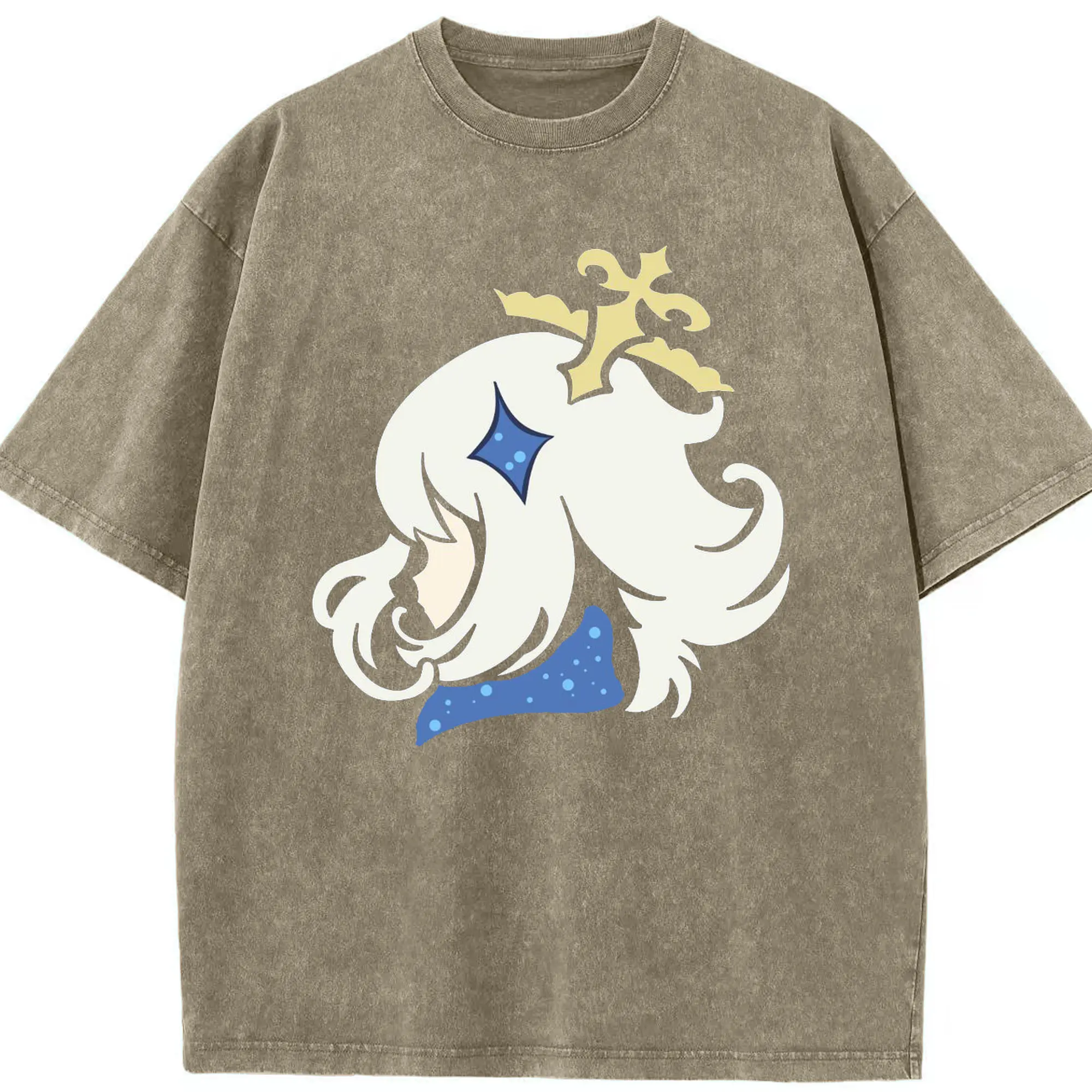 Genshin パイモン - 綿100% ヴィンテージ風 半袖Tシャツ ・ フロントプリント ・ 柔らか肌触り ・ 通気性 快適 ・ スポーツ カジュアル 外出用