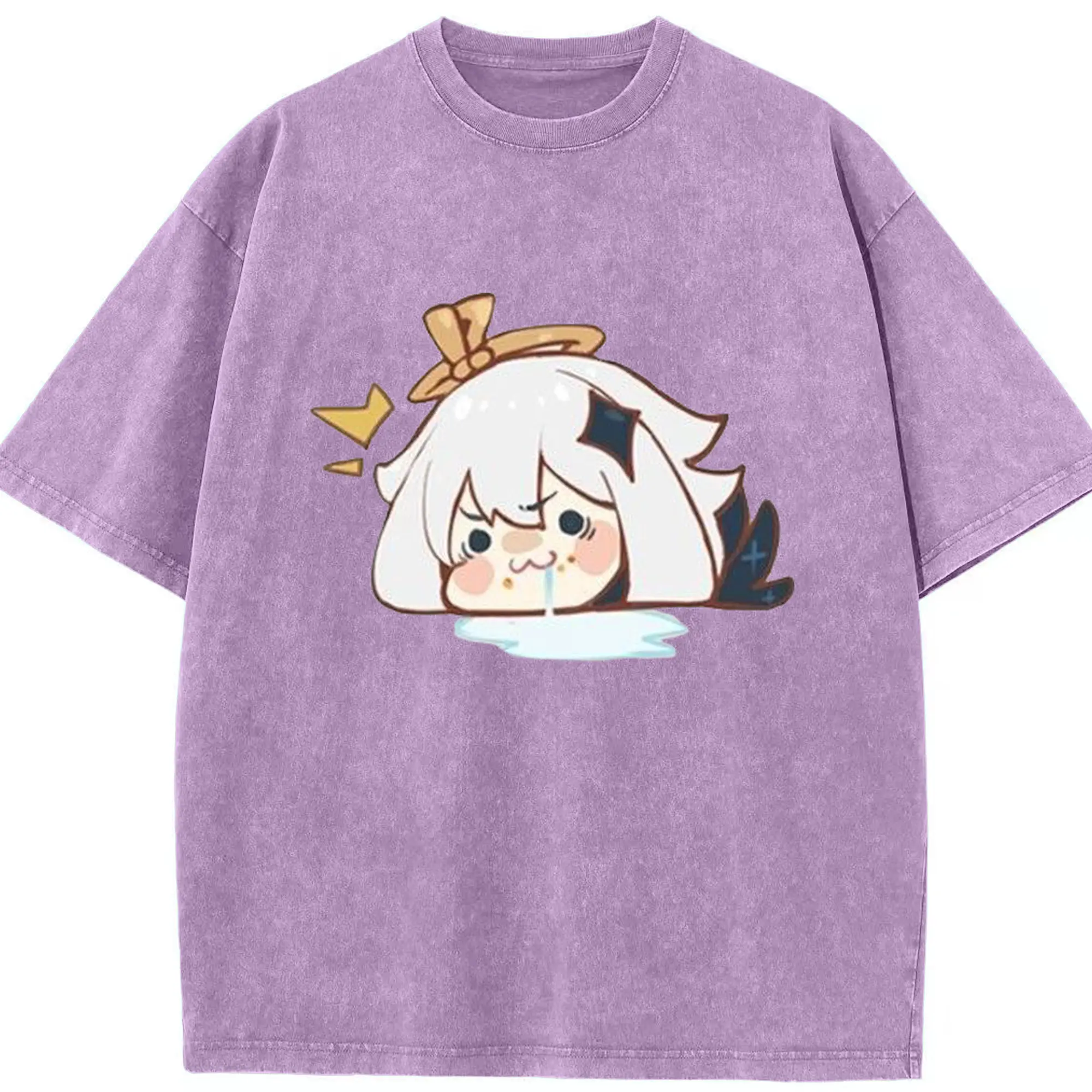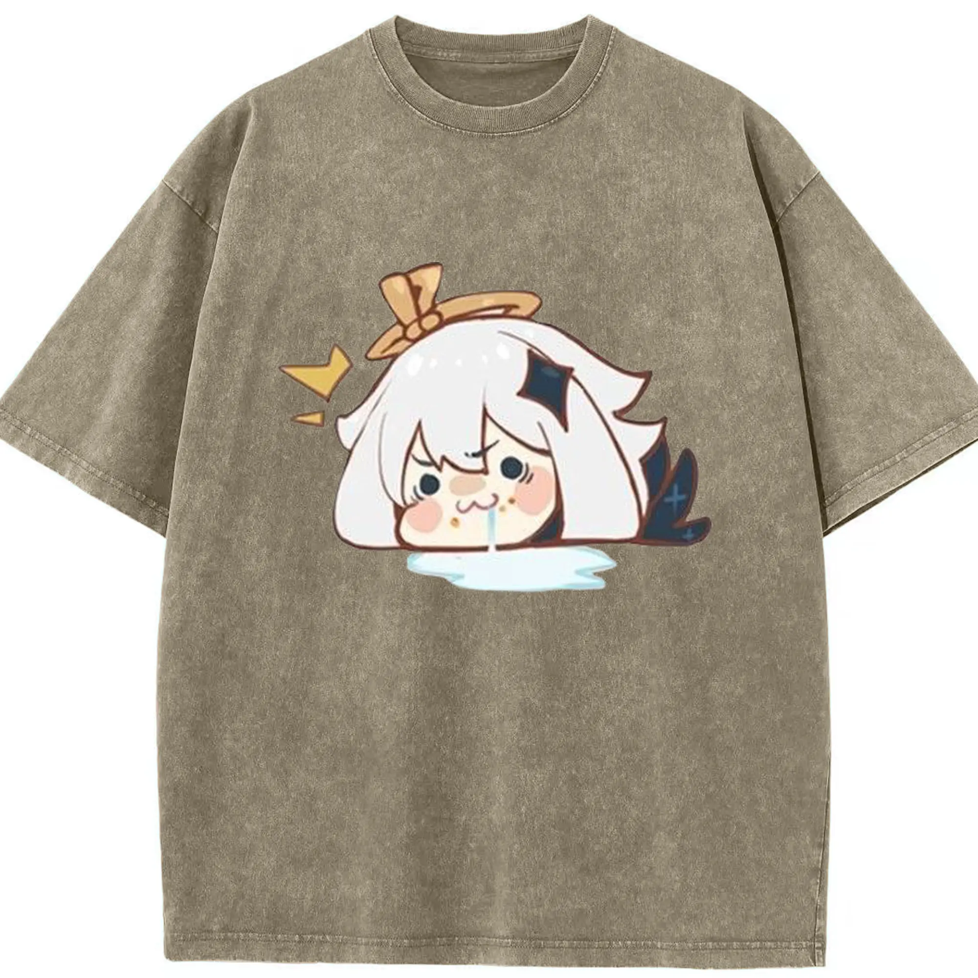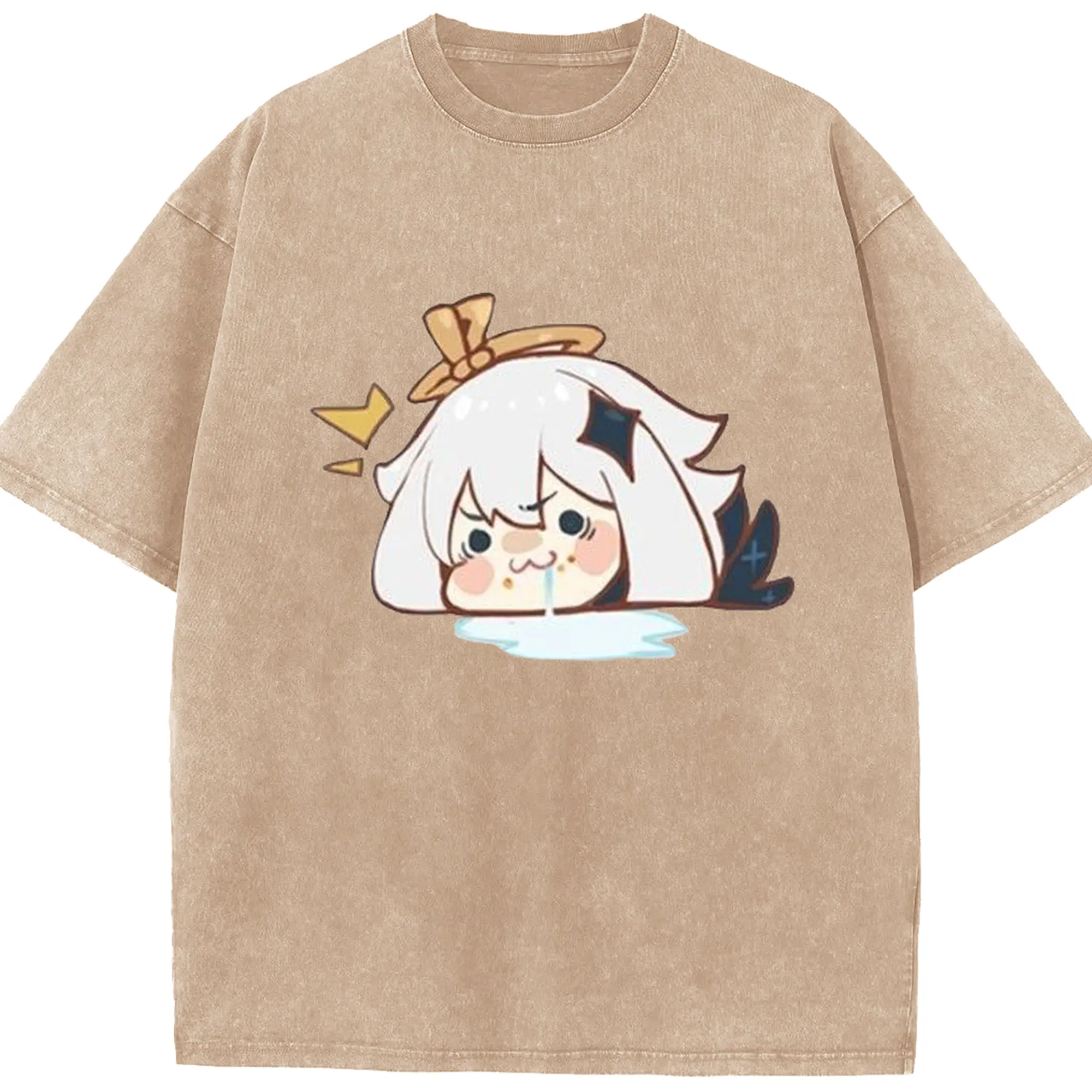Genshin パイモン - 綿100% ヴィンテージ風 半袖Tシャツ ・ フロントプリント ・ 柔らか肌触り ・ 通気性 快適 ・ スポーツ カジュアル 外出用