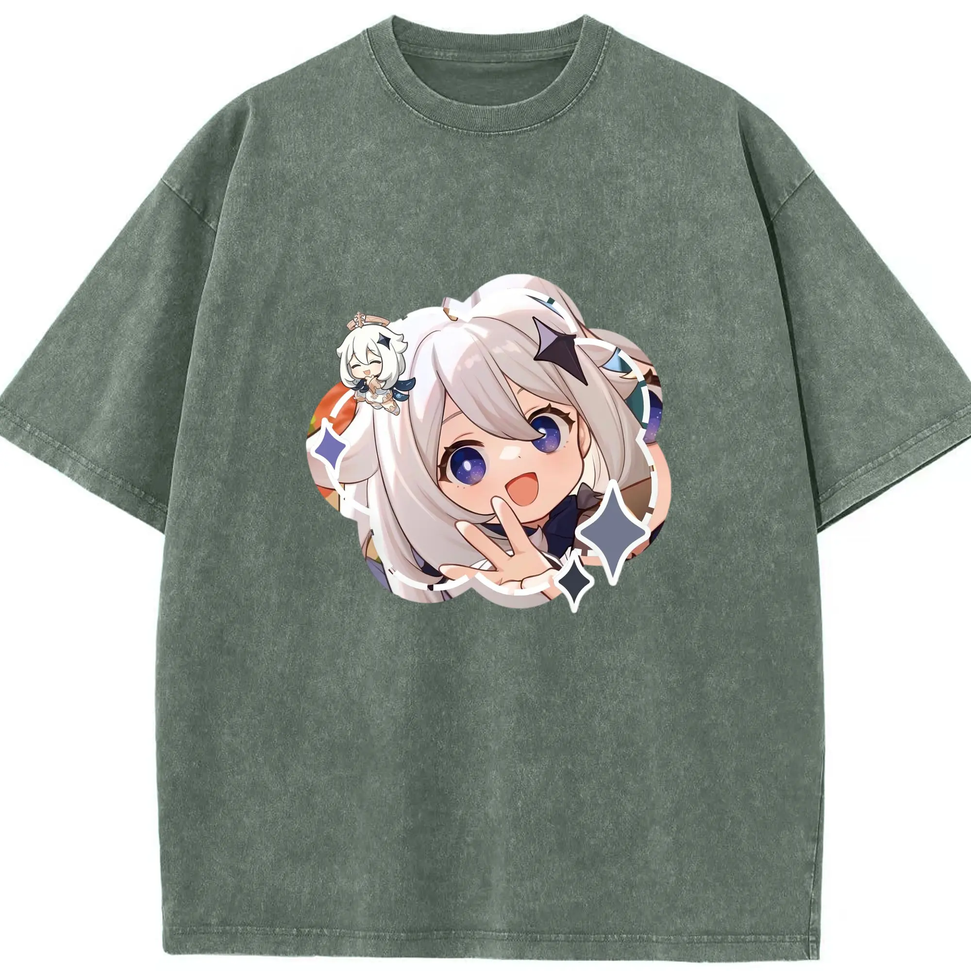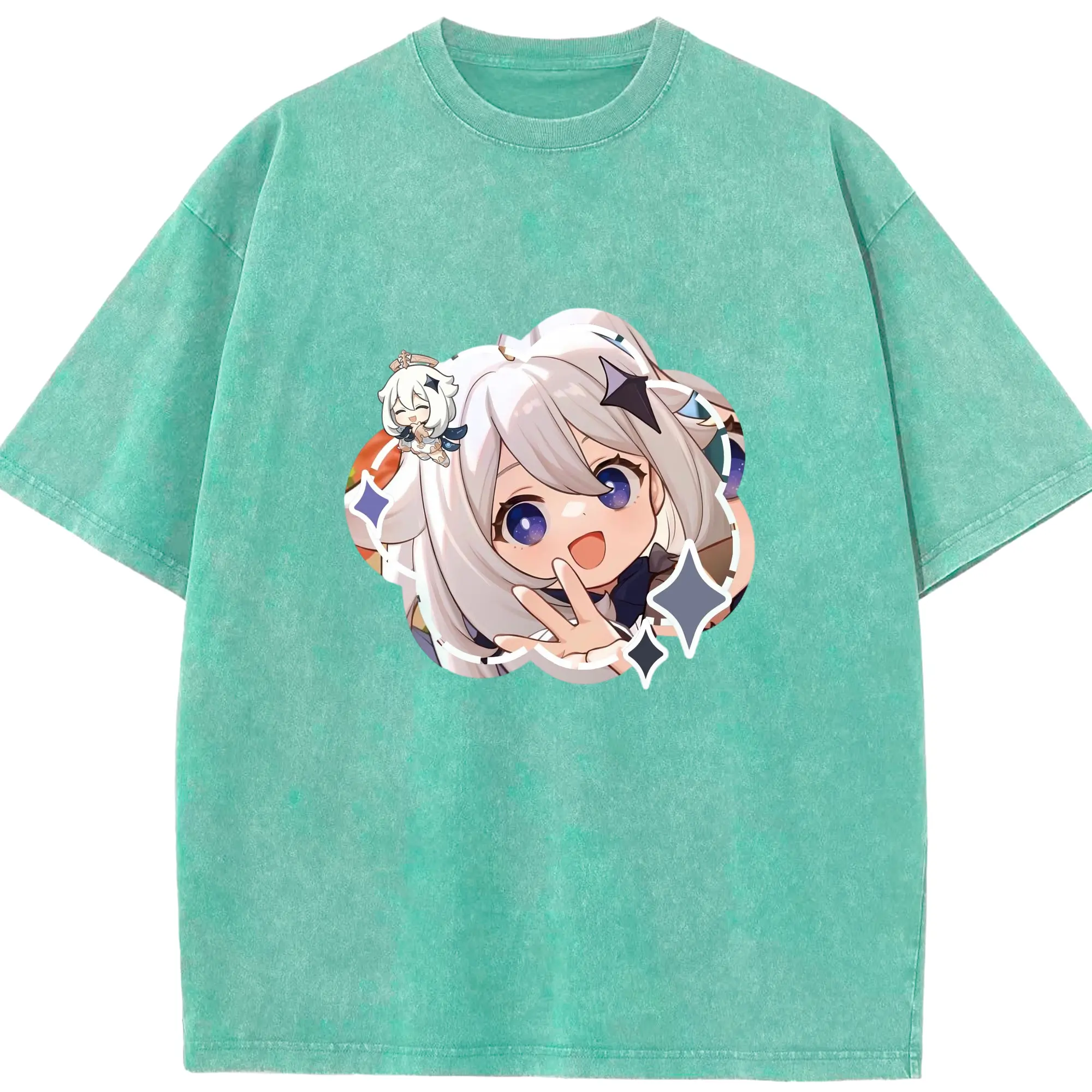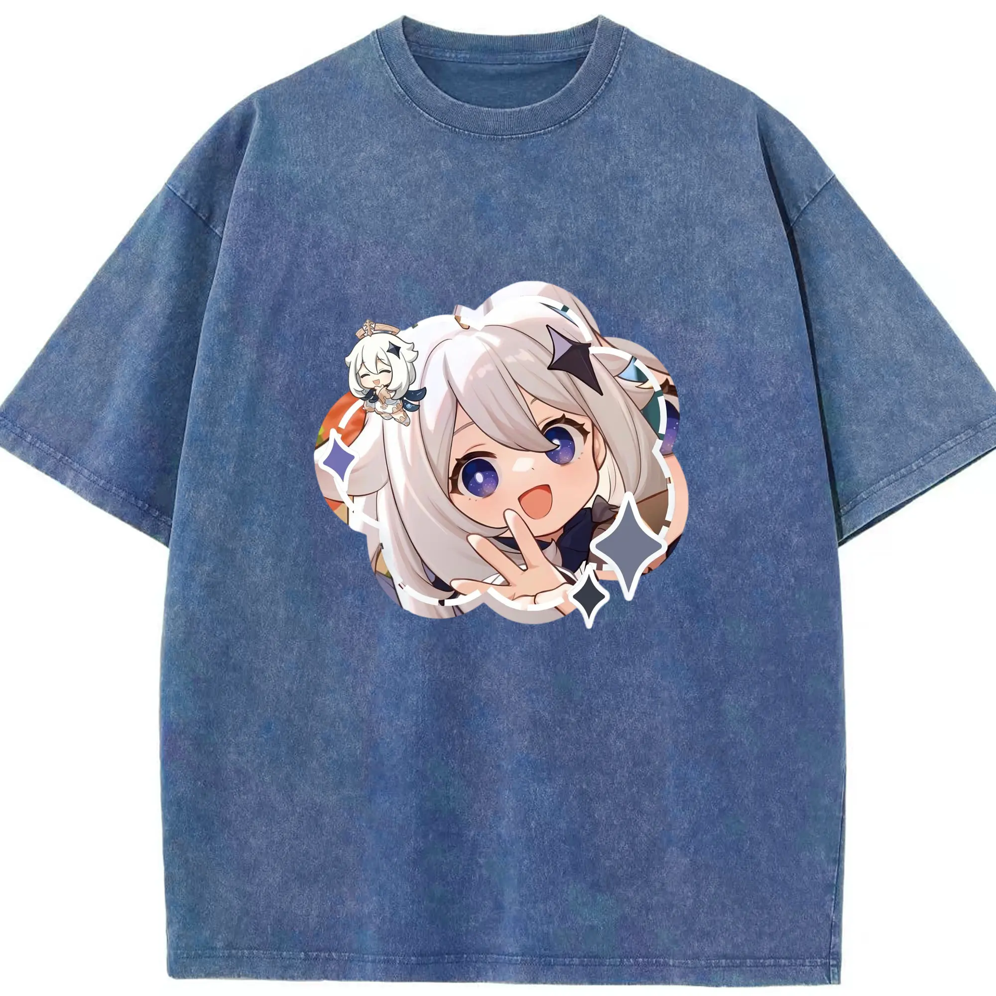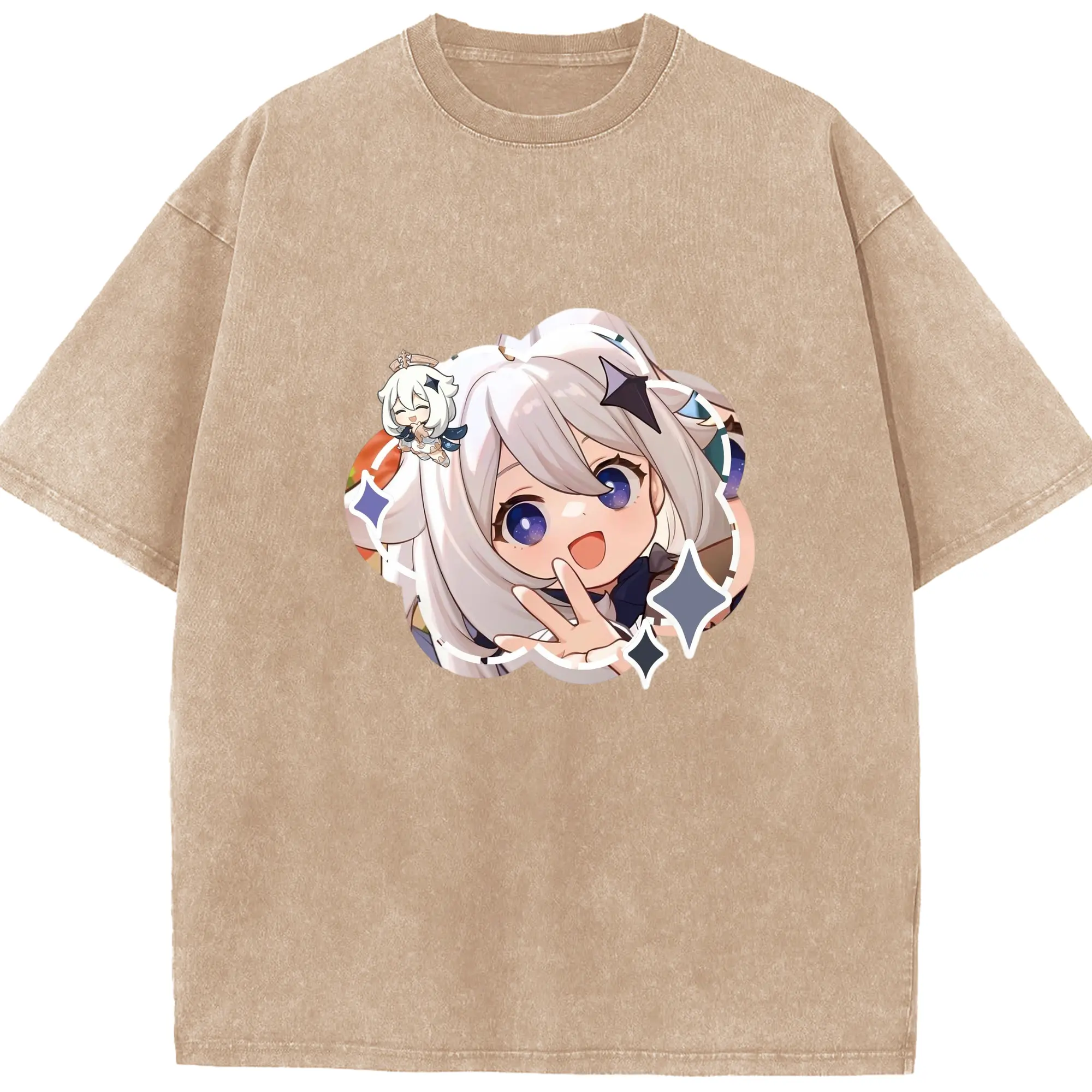 Genshin パイモン - 綿100% ヴィンテージ風 半袖Tシャツ ・ フロントプリント ・ 柔らか肌触り ・ 通気性 快適 ・ スポーツ カジュアル 外出用