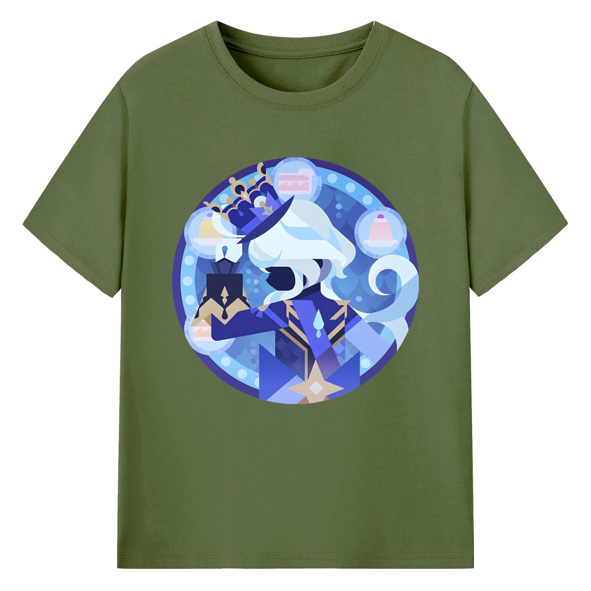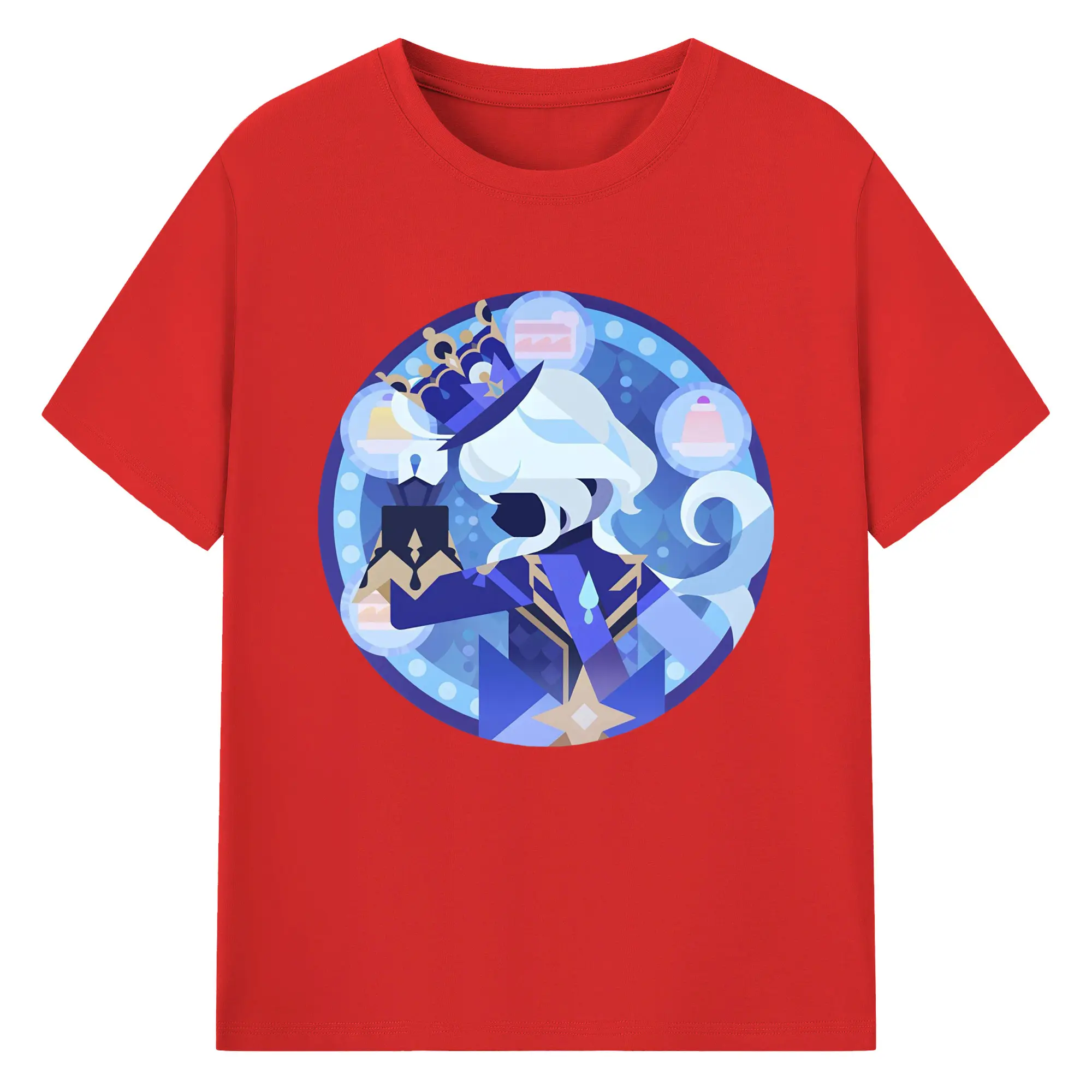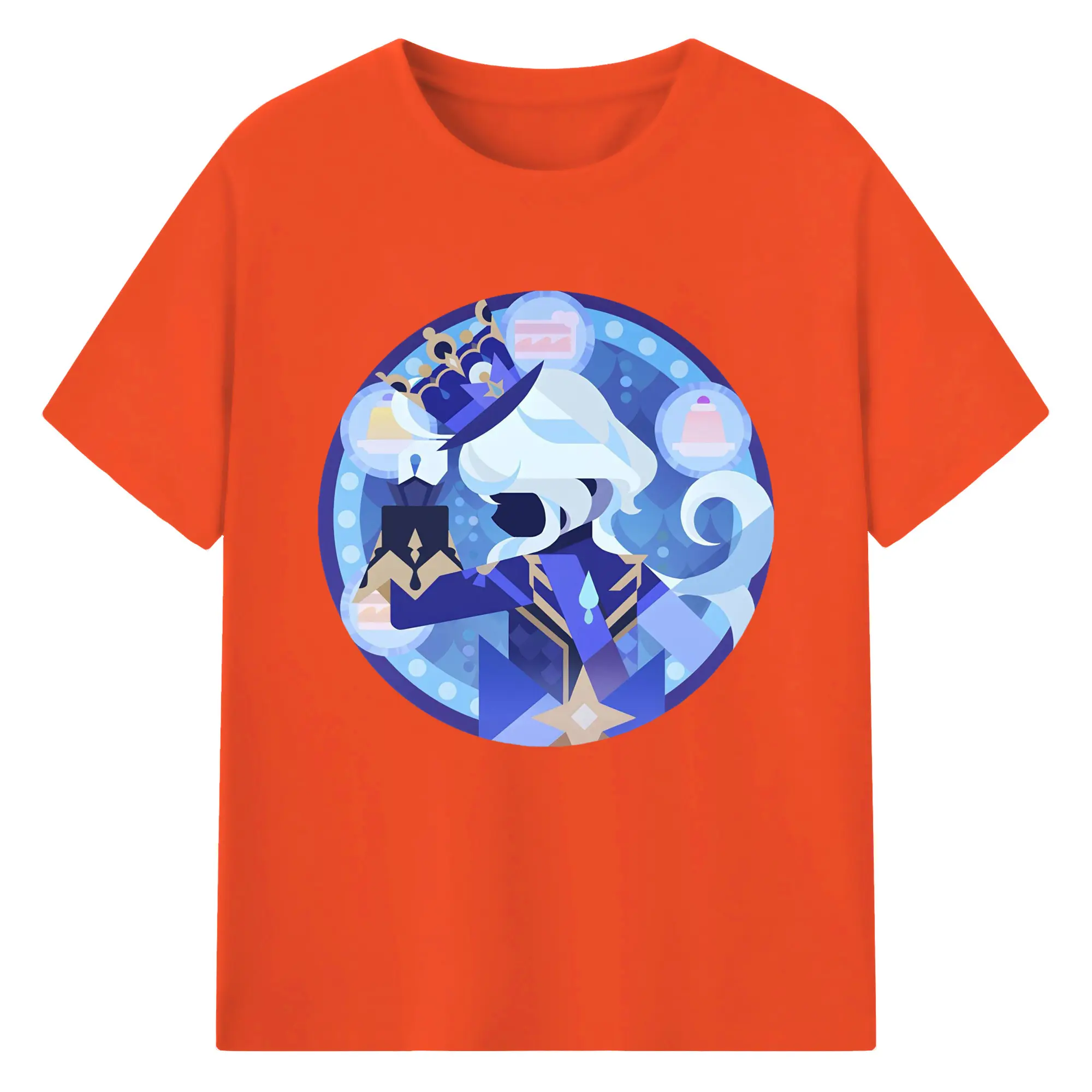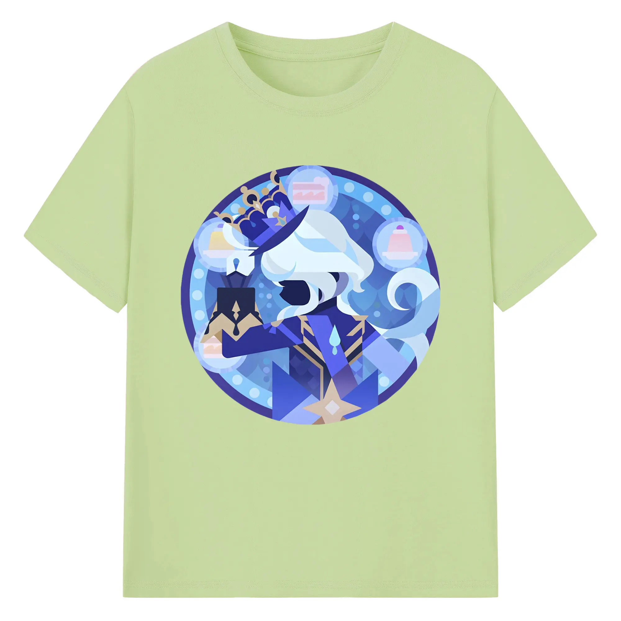 Genshin フォンテーヌ 水神すいじんフォカロルス フリーナ - 綿100% 半袖Tシャツ ・ フロントプリント ・ 快適 通気性 ・ 日常使い 散歩 スポーツ用