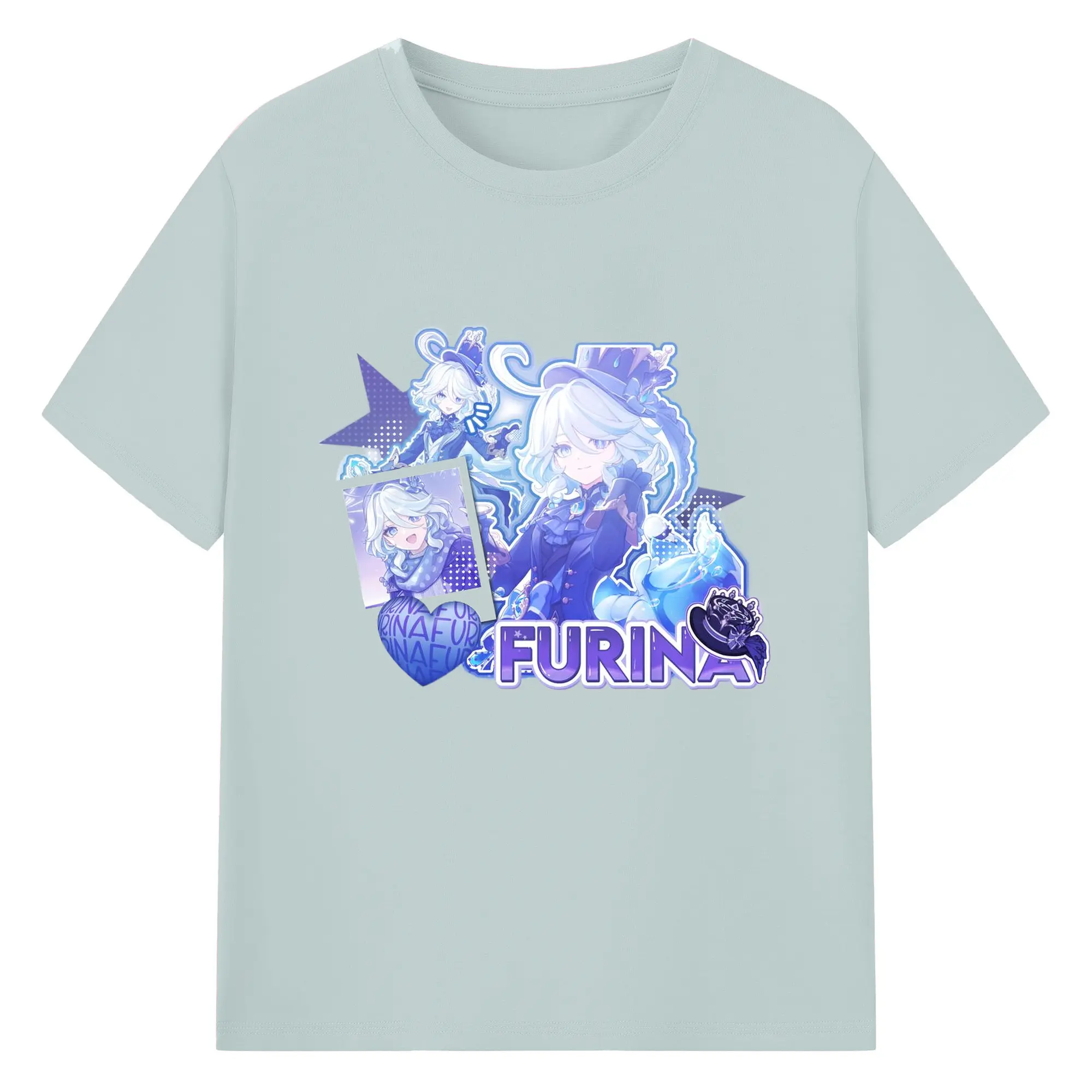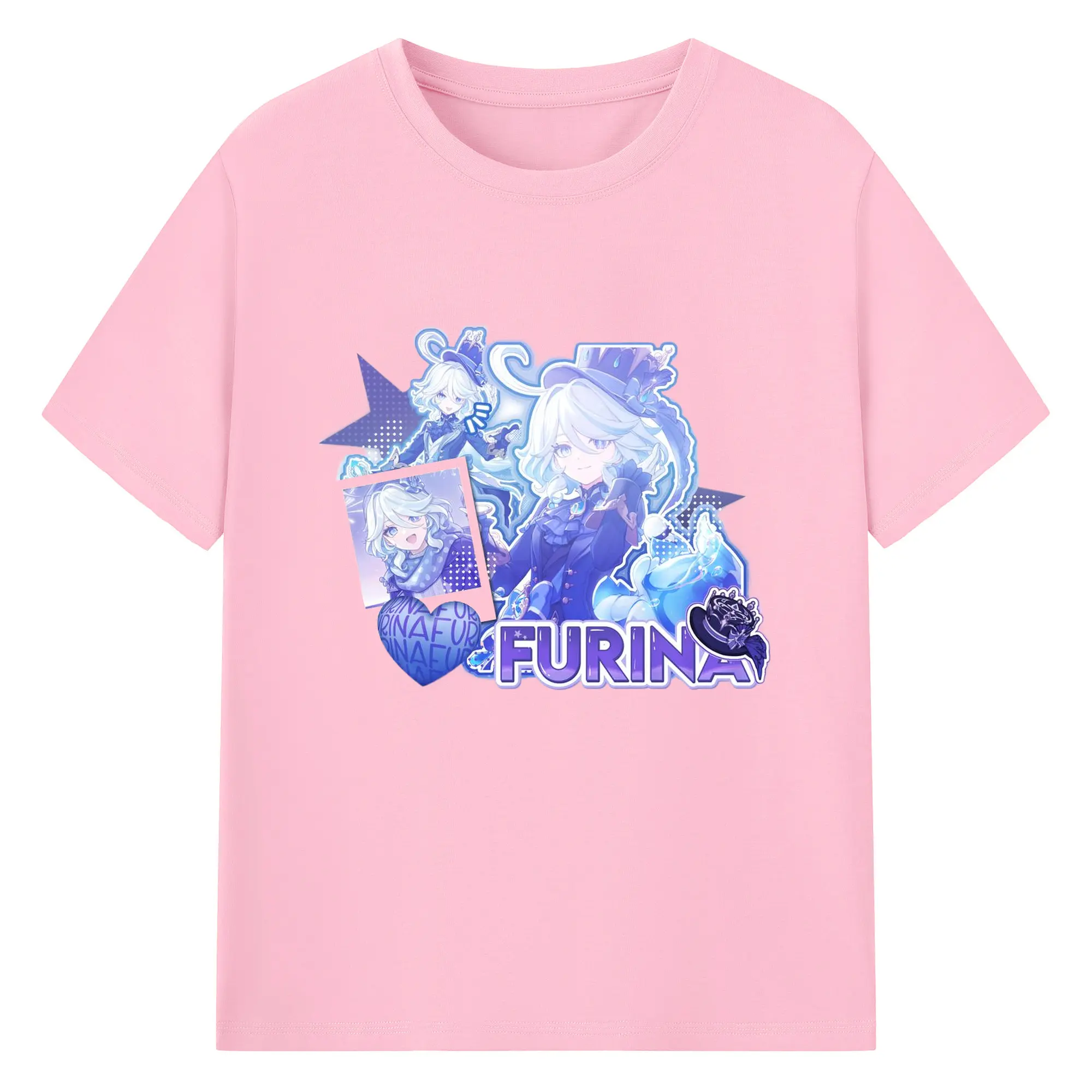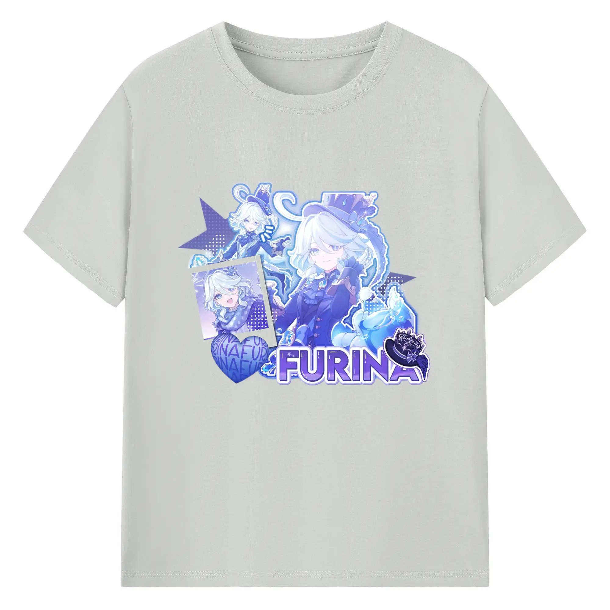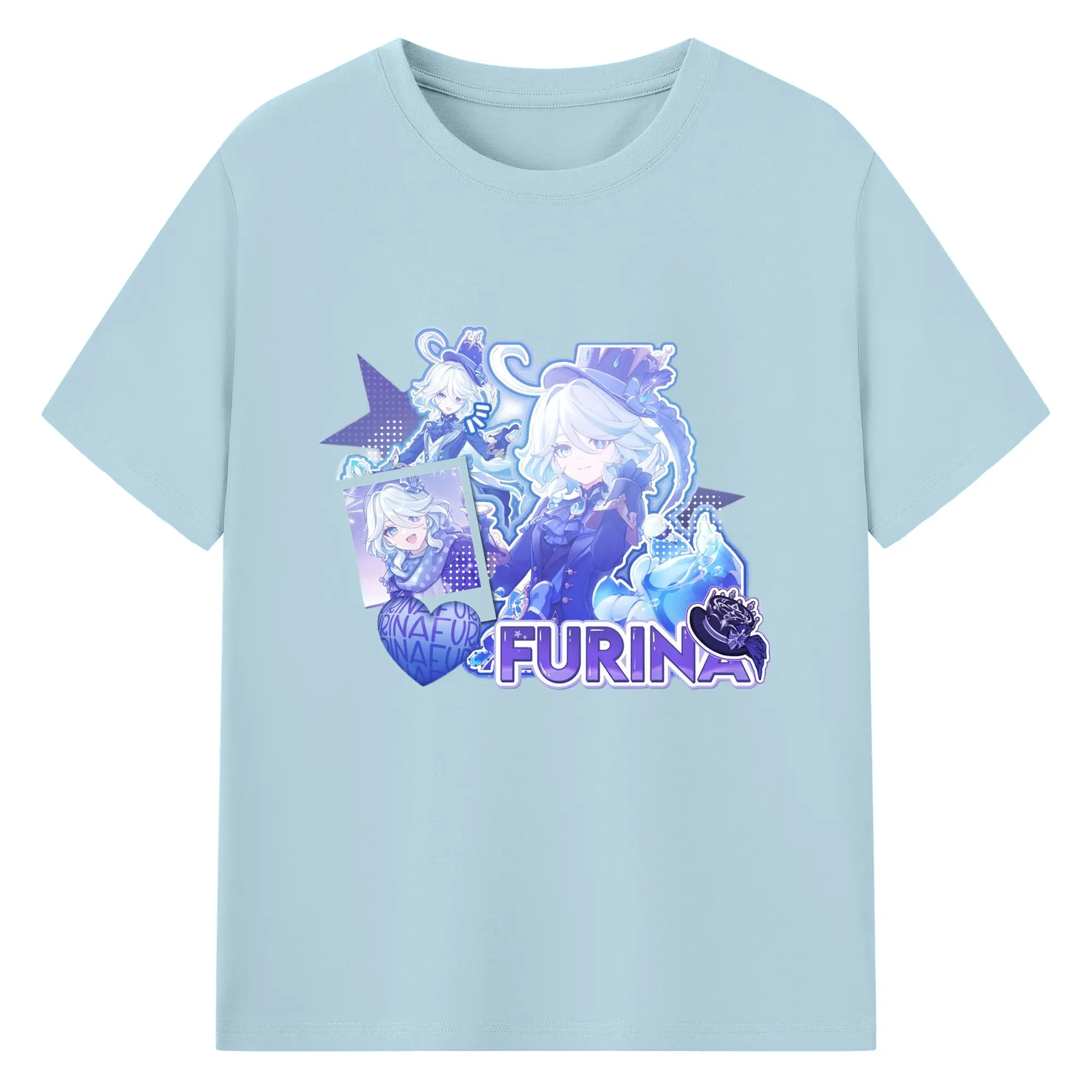 Genshin フォンテーヌ 水神すいじんフォカロルス フリーナ - 綿100% 半袖Tシャツ ・ フロントプリント ・ 快適 通気性 ・ 日常使い 散歩 スポーツ用