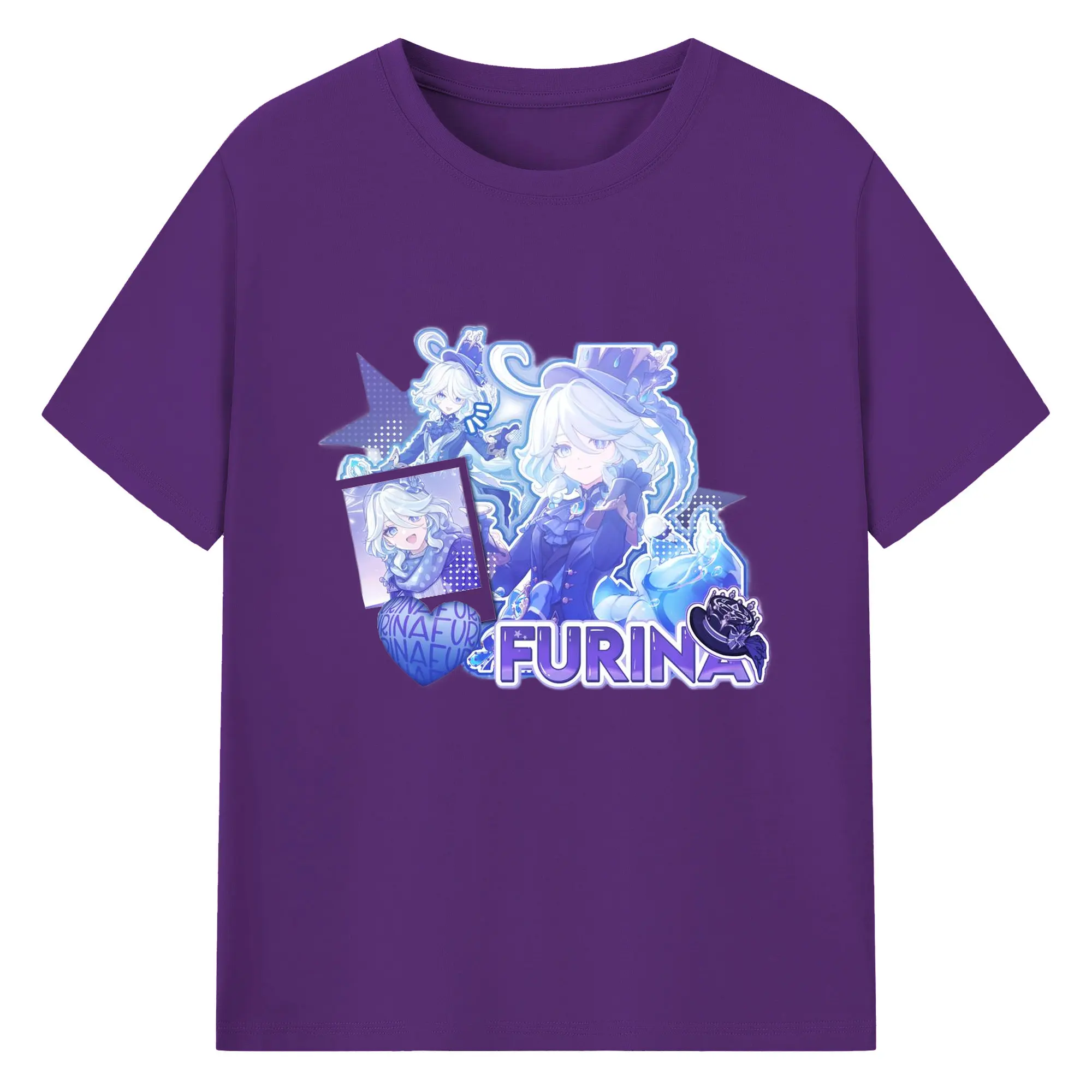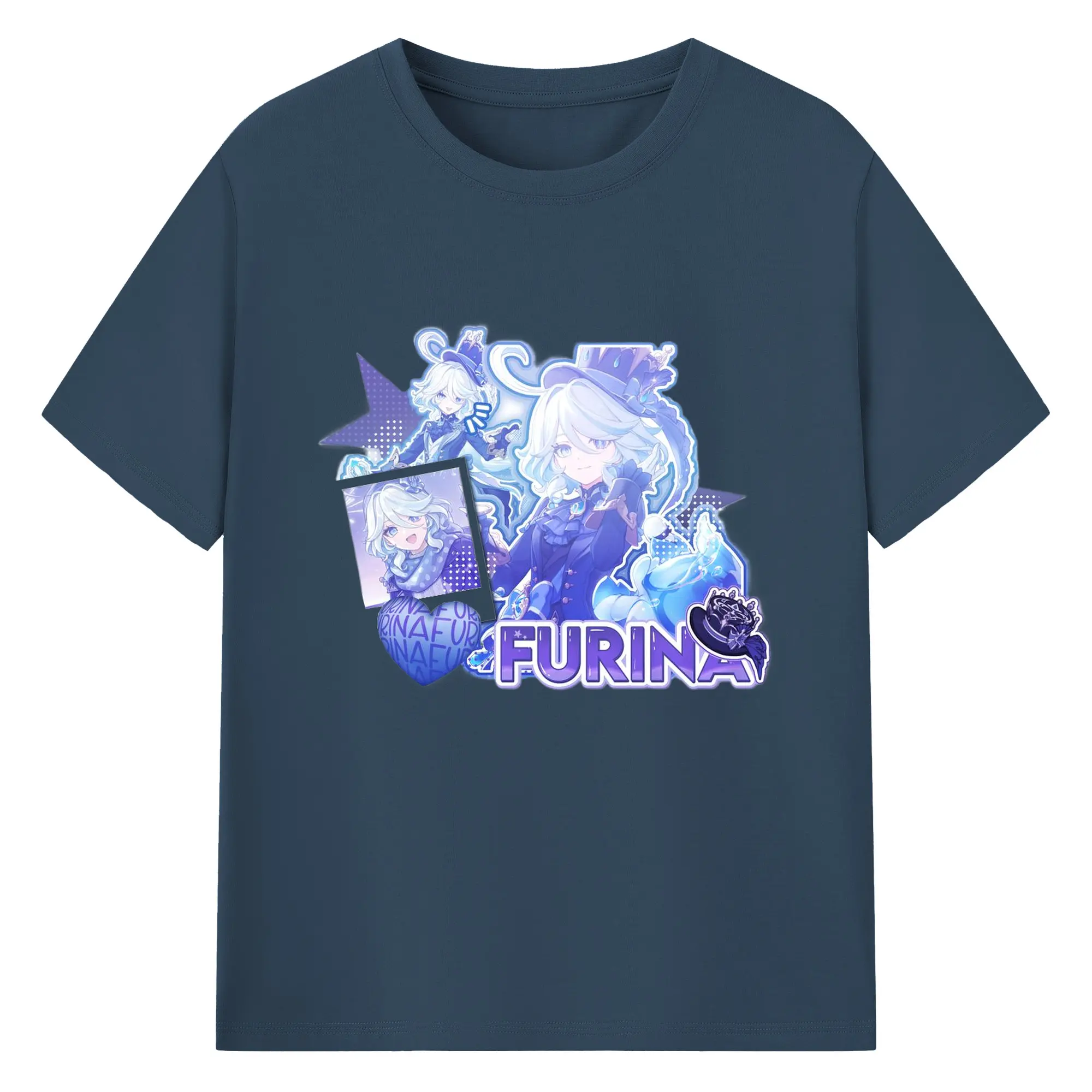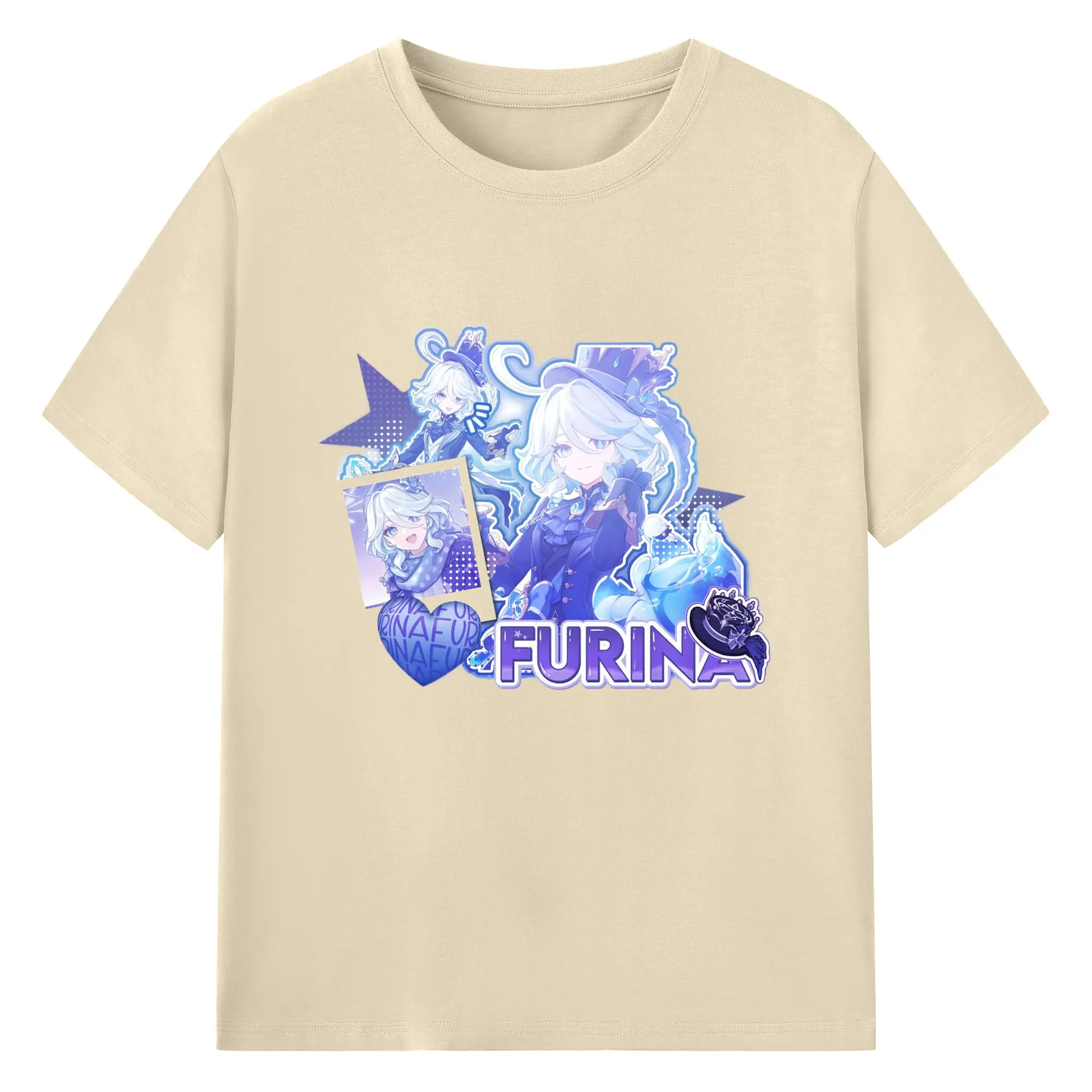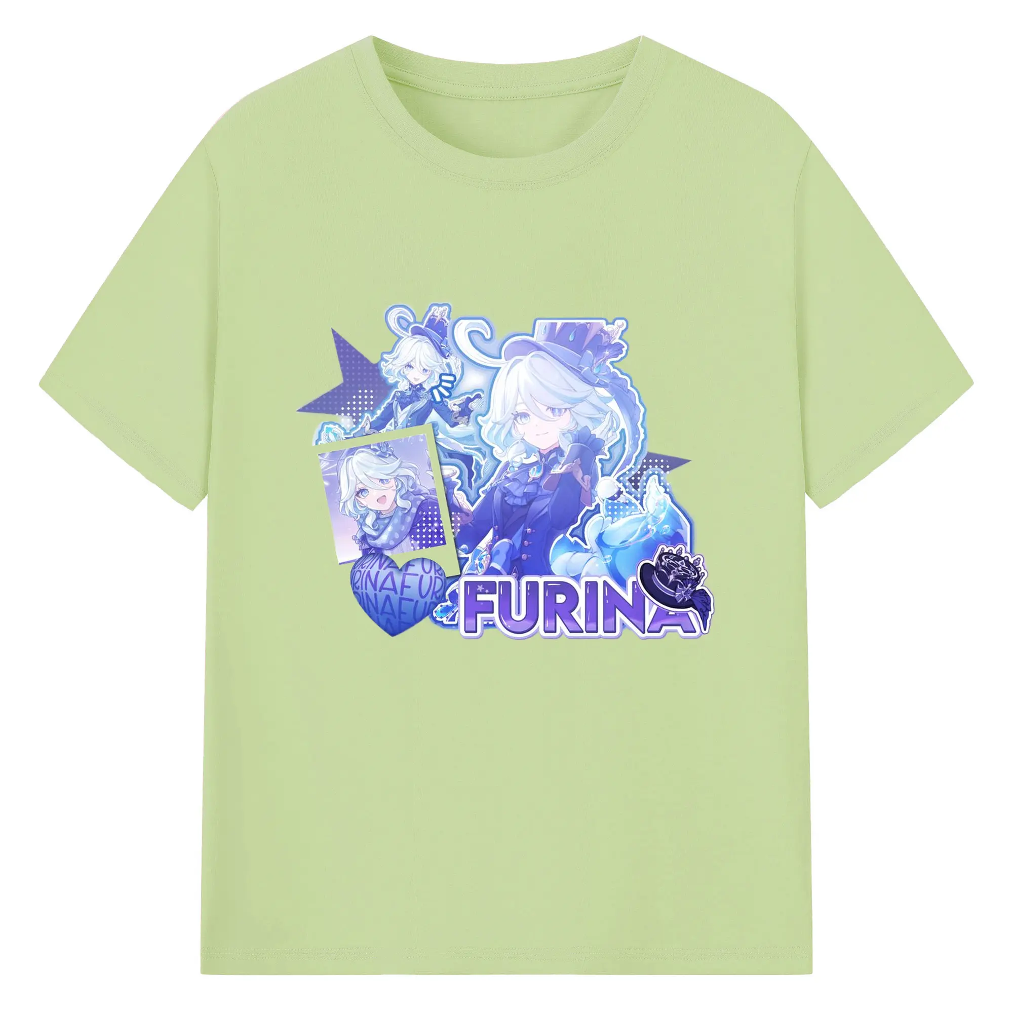 Genshin フォンテーヌ 水神すいじんフォカロルス フリーナ - 綿100% 半袖Tシャツ ・ フロントプリント ・ 快適 通気性 ・ 日常使い 散歩 スポーツ用