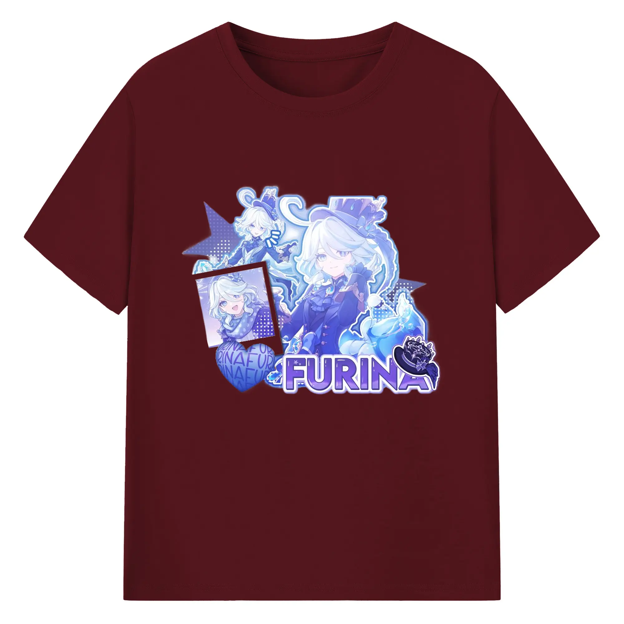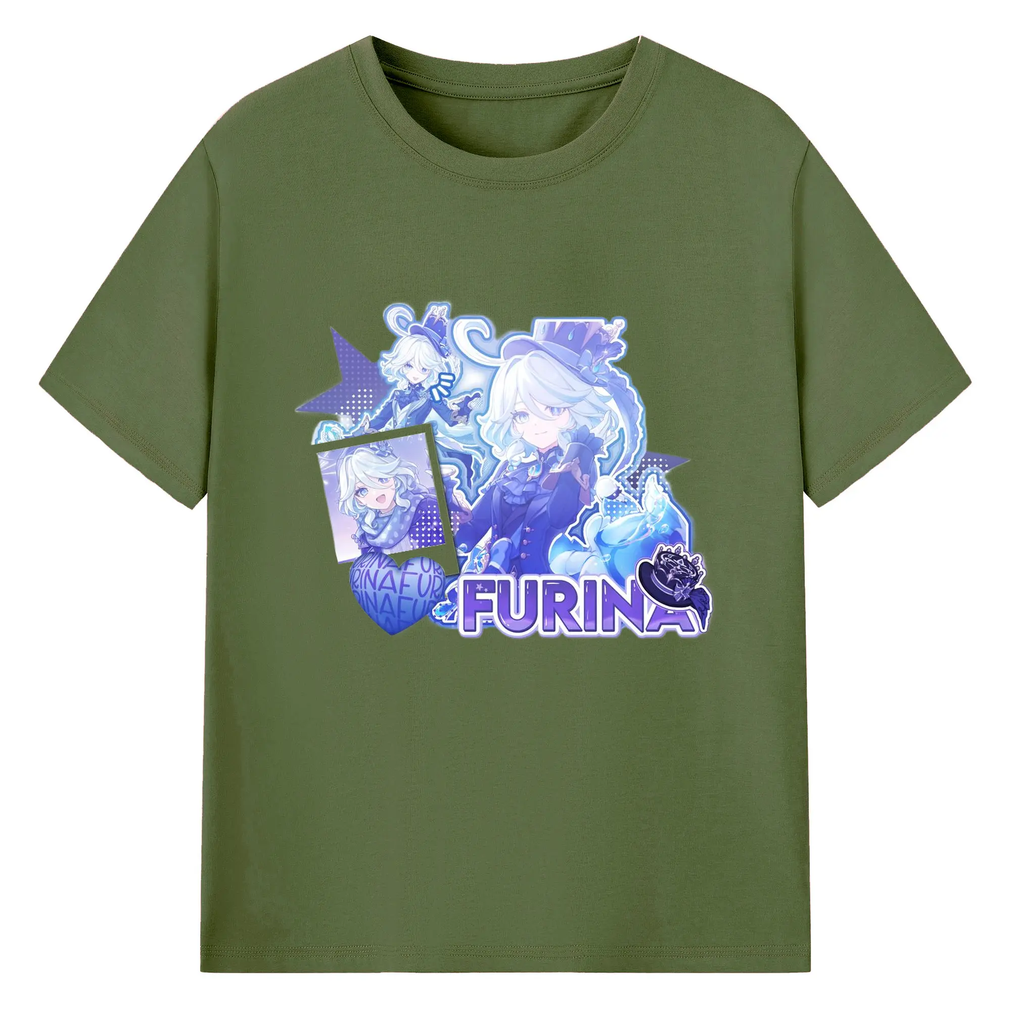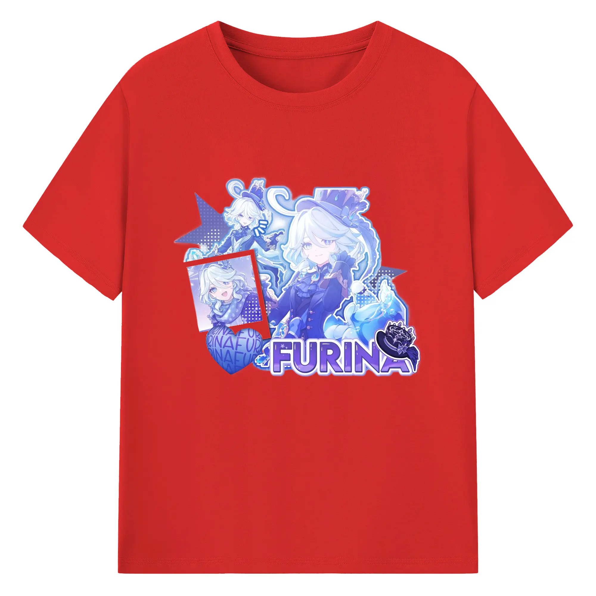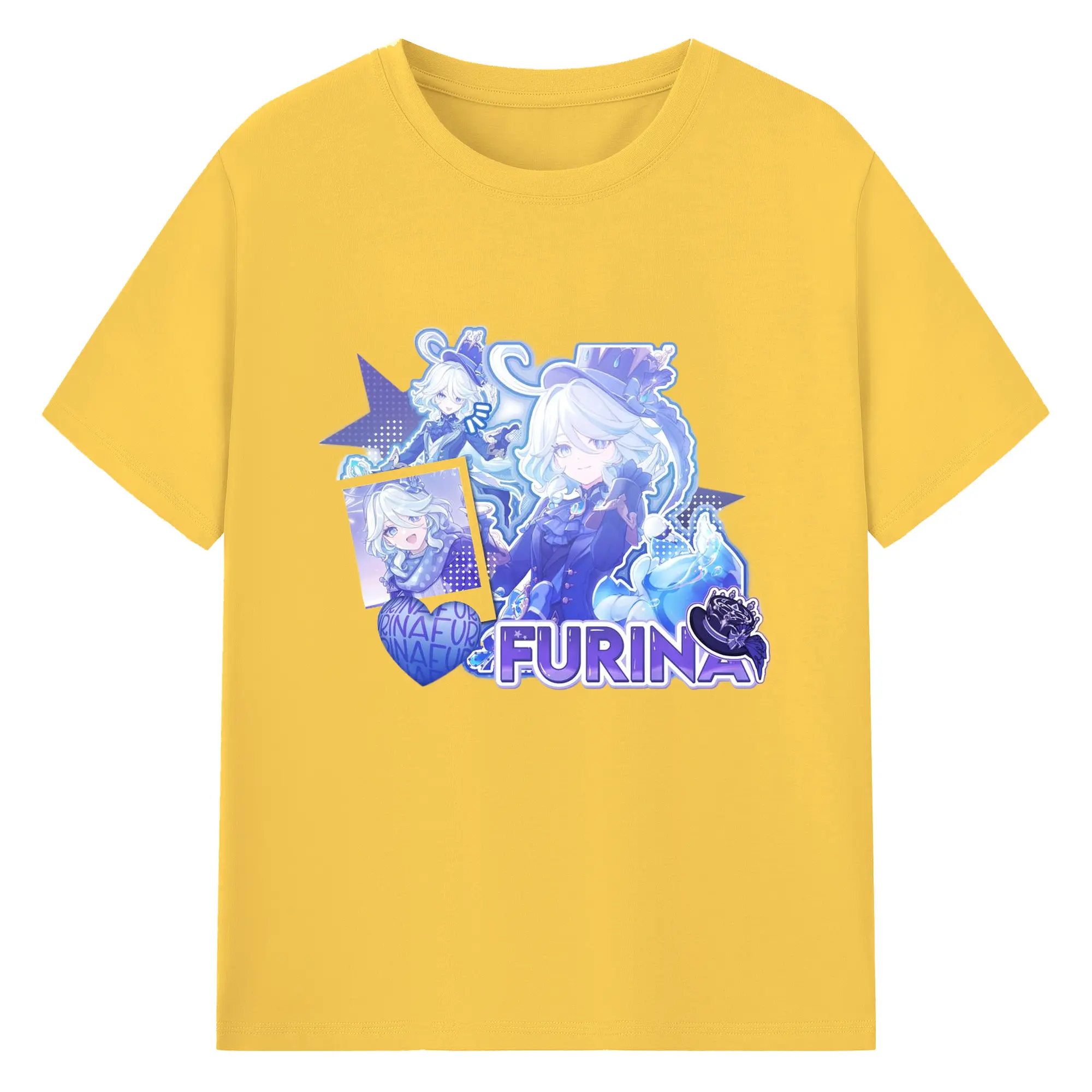 Genshin フォンテーヌ 水神すいじんフォカロルス フリーナ - 綿100% 半袖Tシャツ ・ フロントプリント ・ 快適 通気性 ・ 日常使い 散歩 スポーツ用