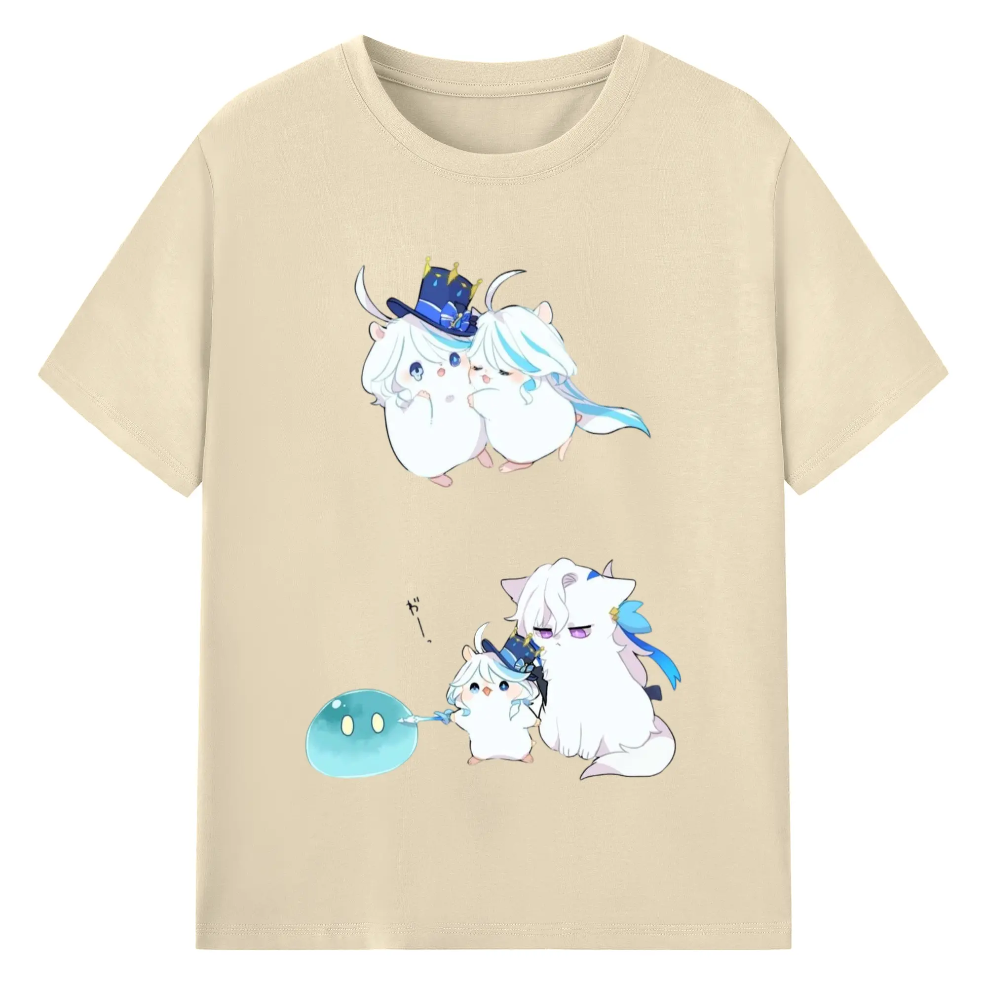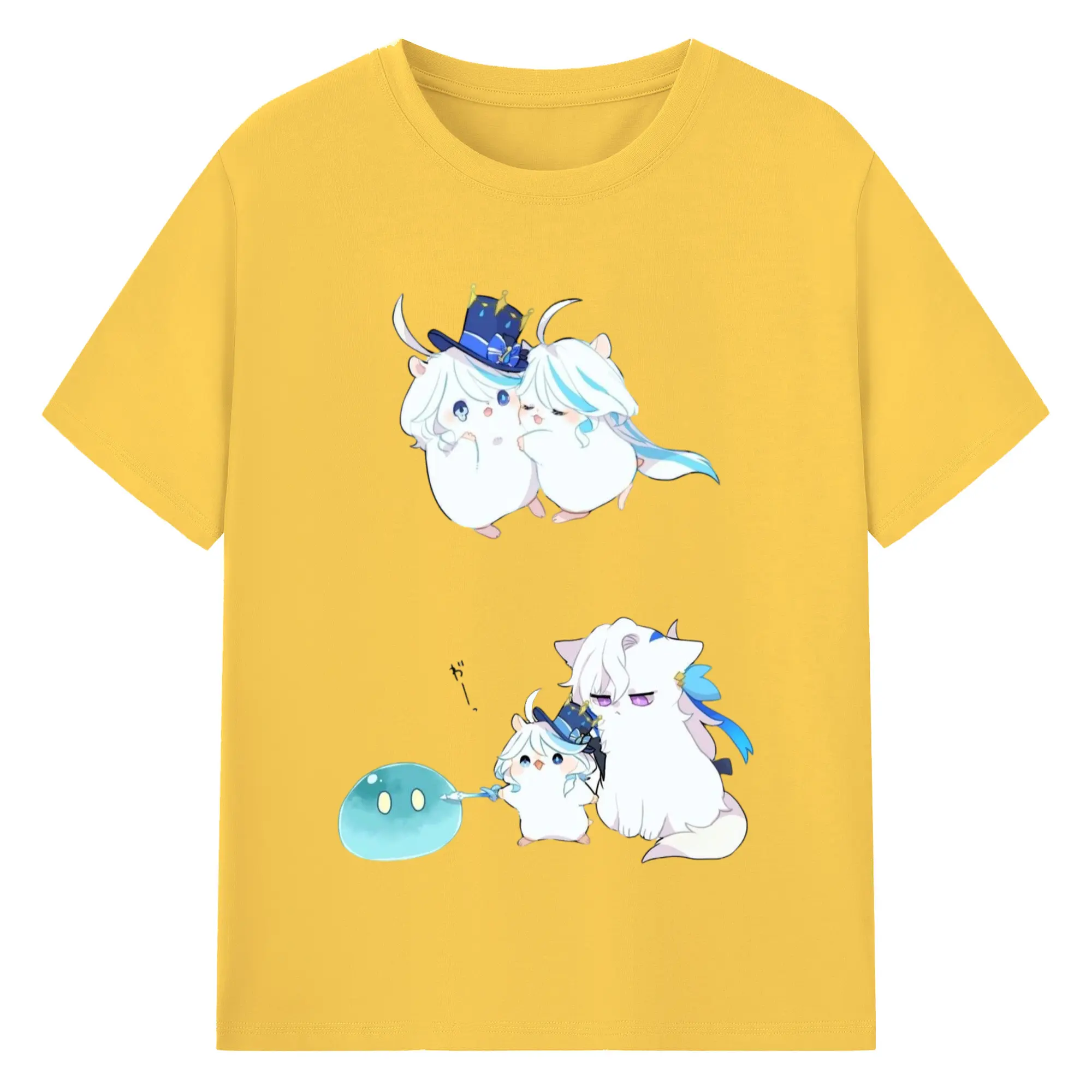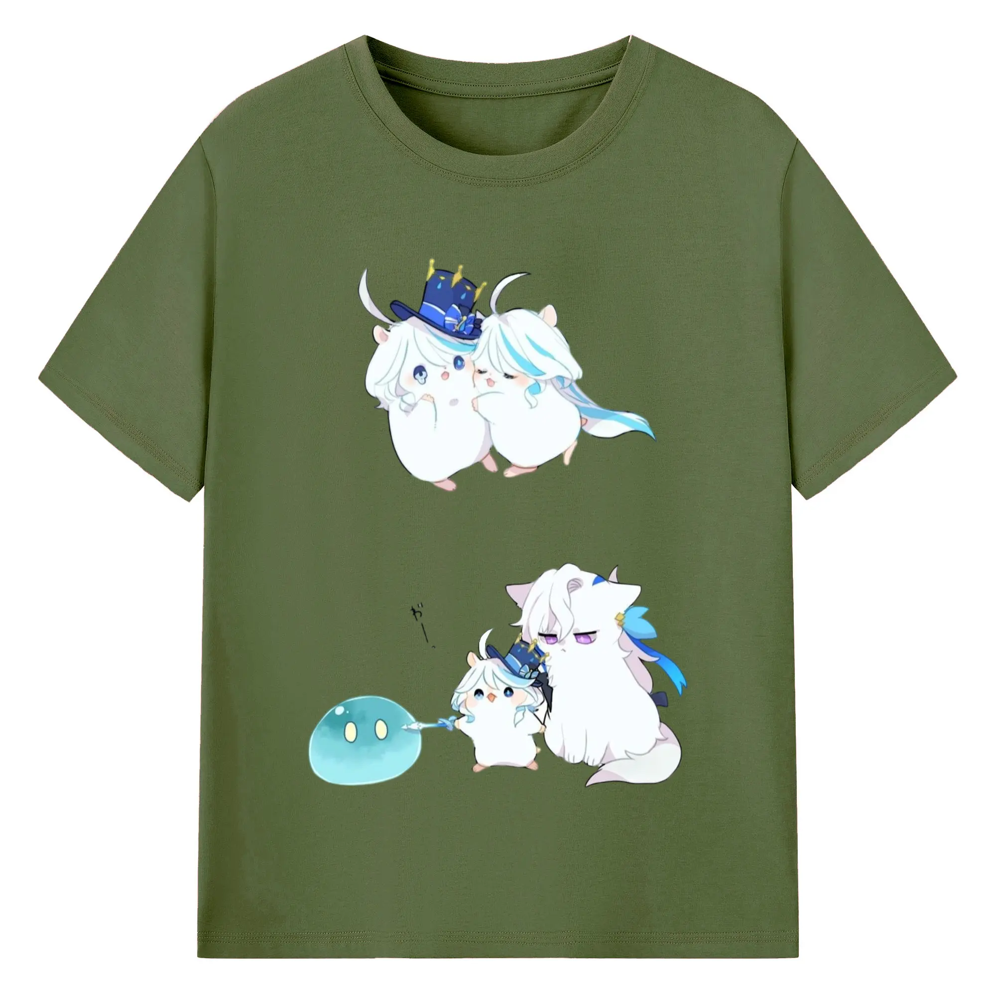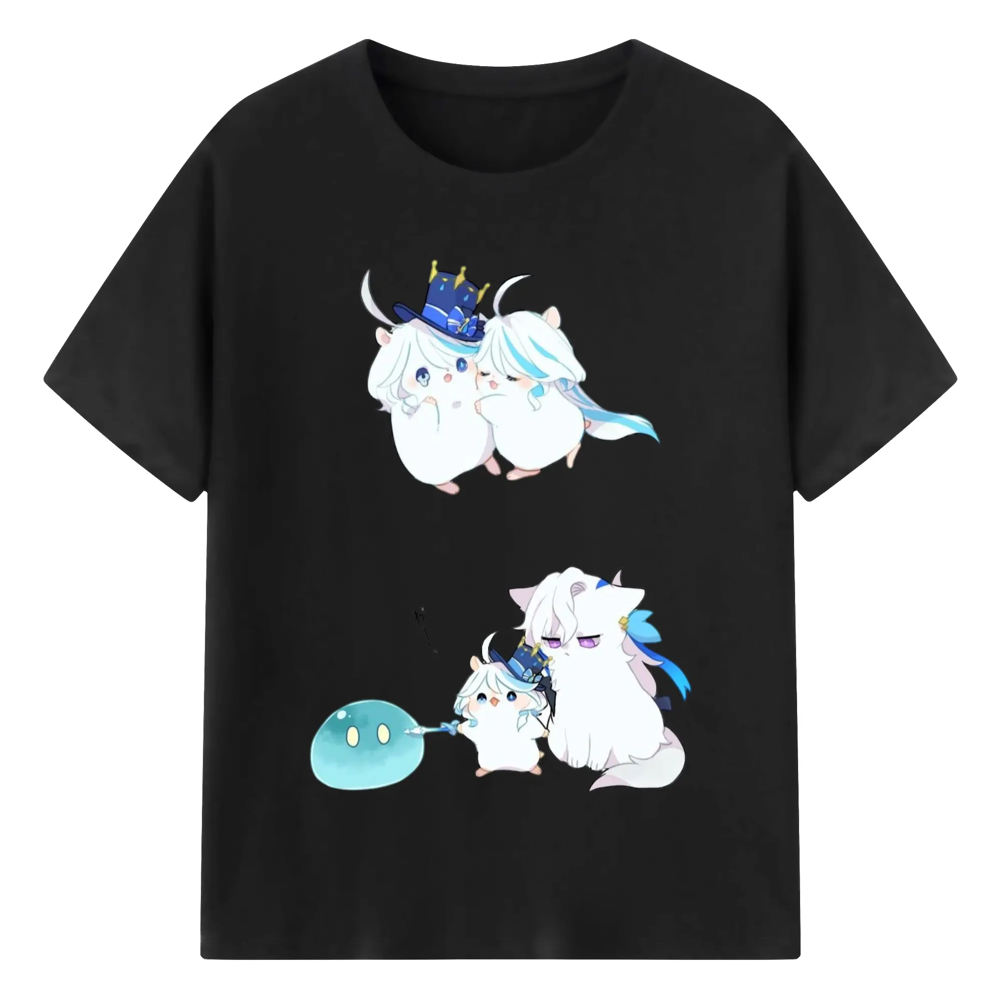Genshin フォンテーヌ 水神すいじんフォカロルス フリーナ ヌヴィレット - 綿100% 半袖Tシャツ ・ フロントプリント ・ 快適 通気性 ・ 日常使い 散歩 スポーツ用