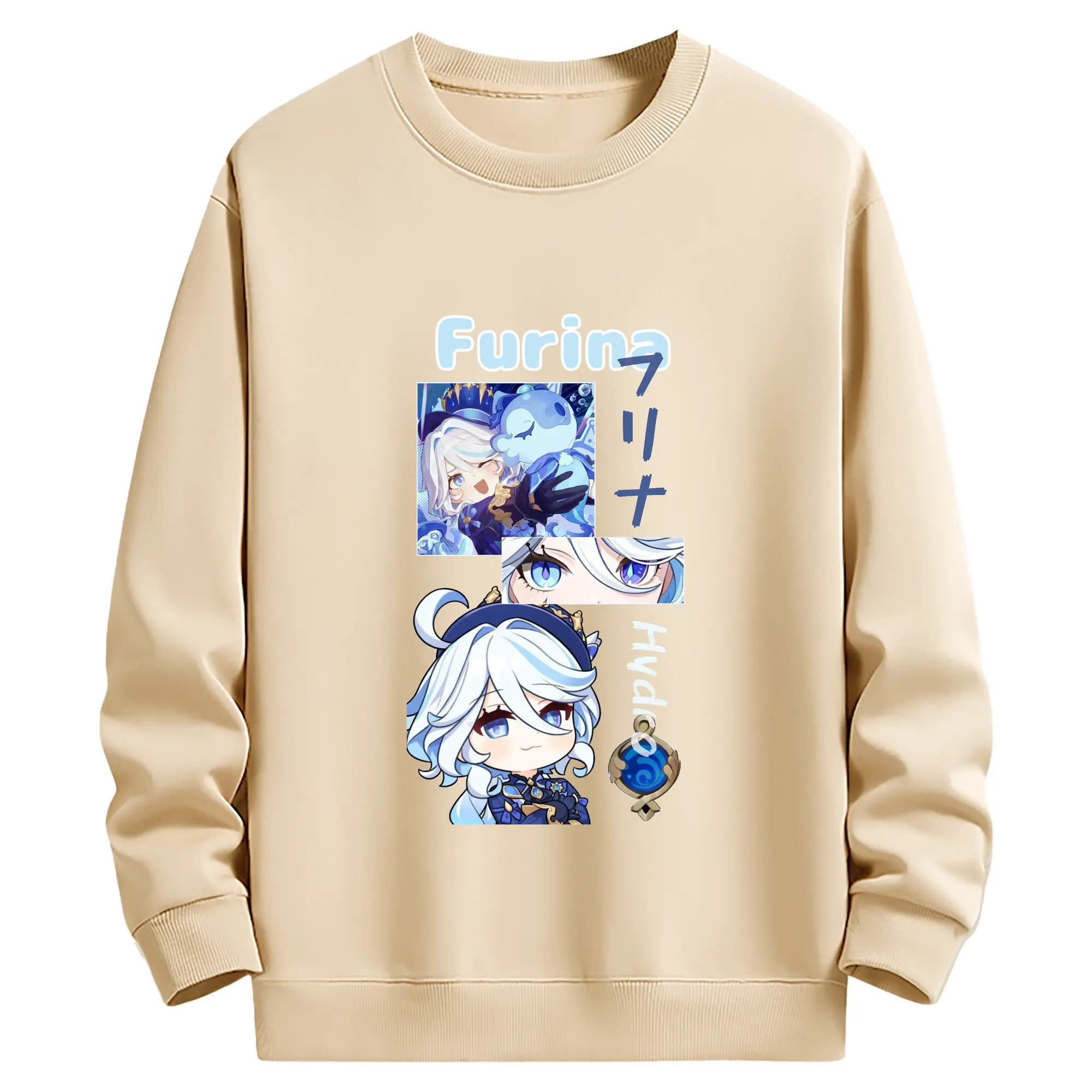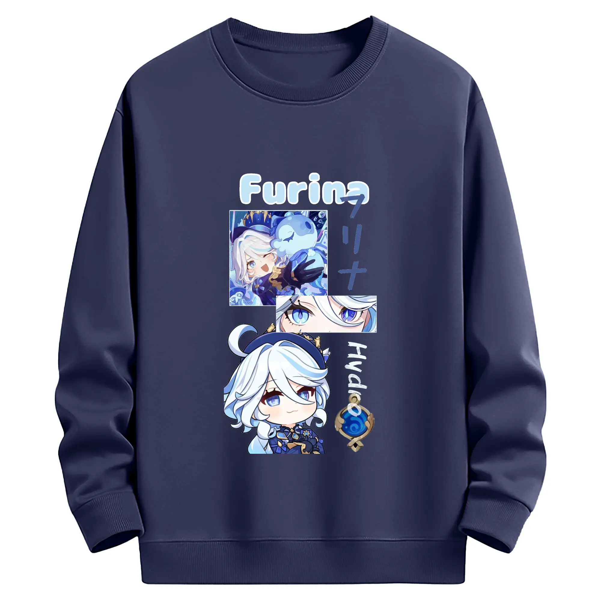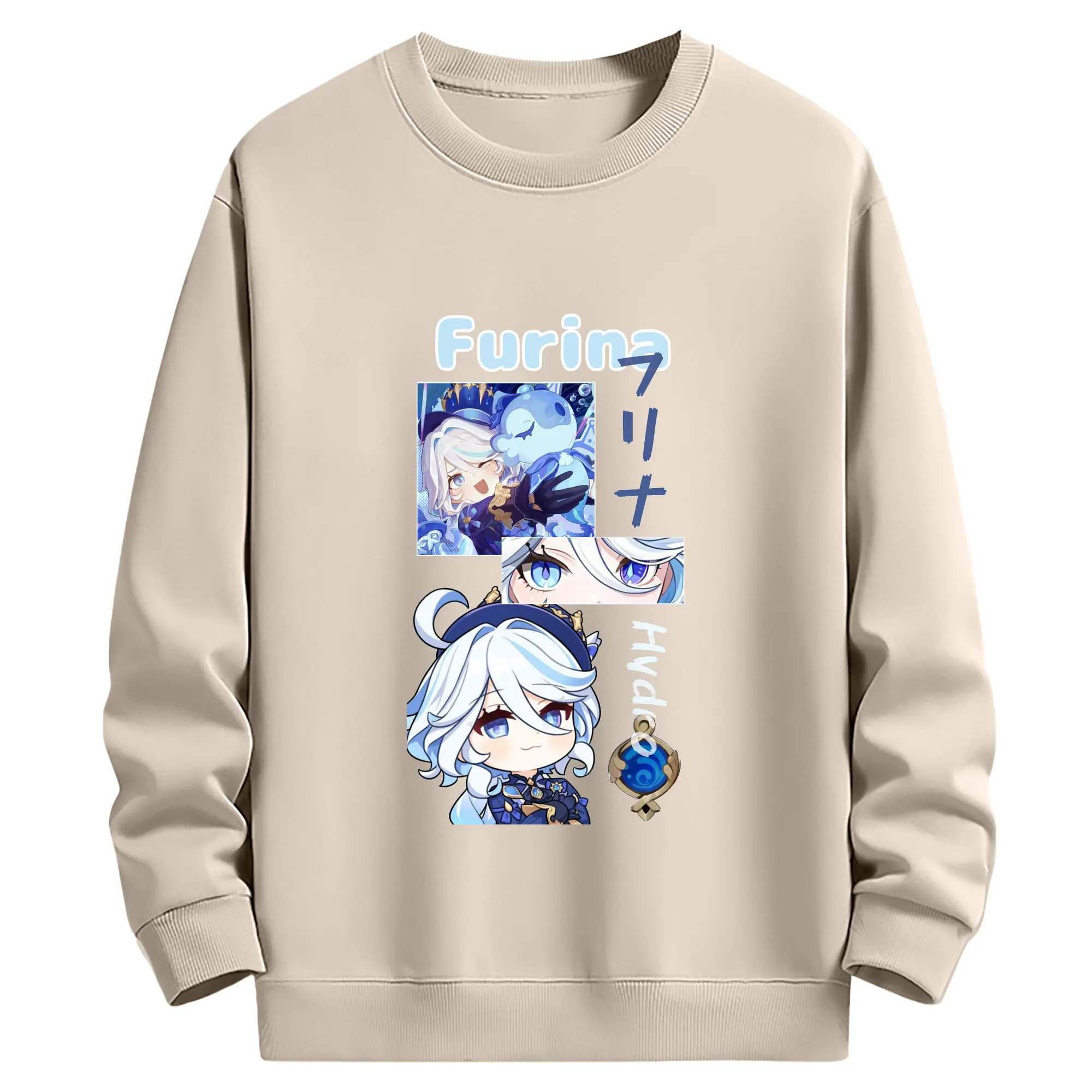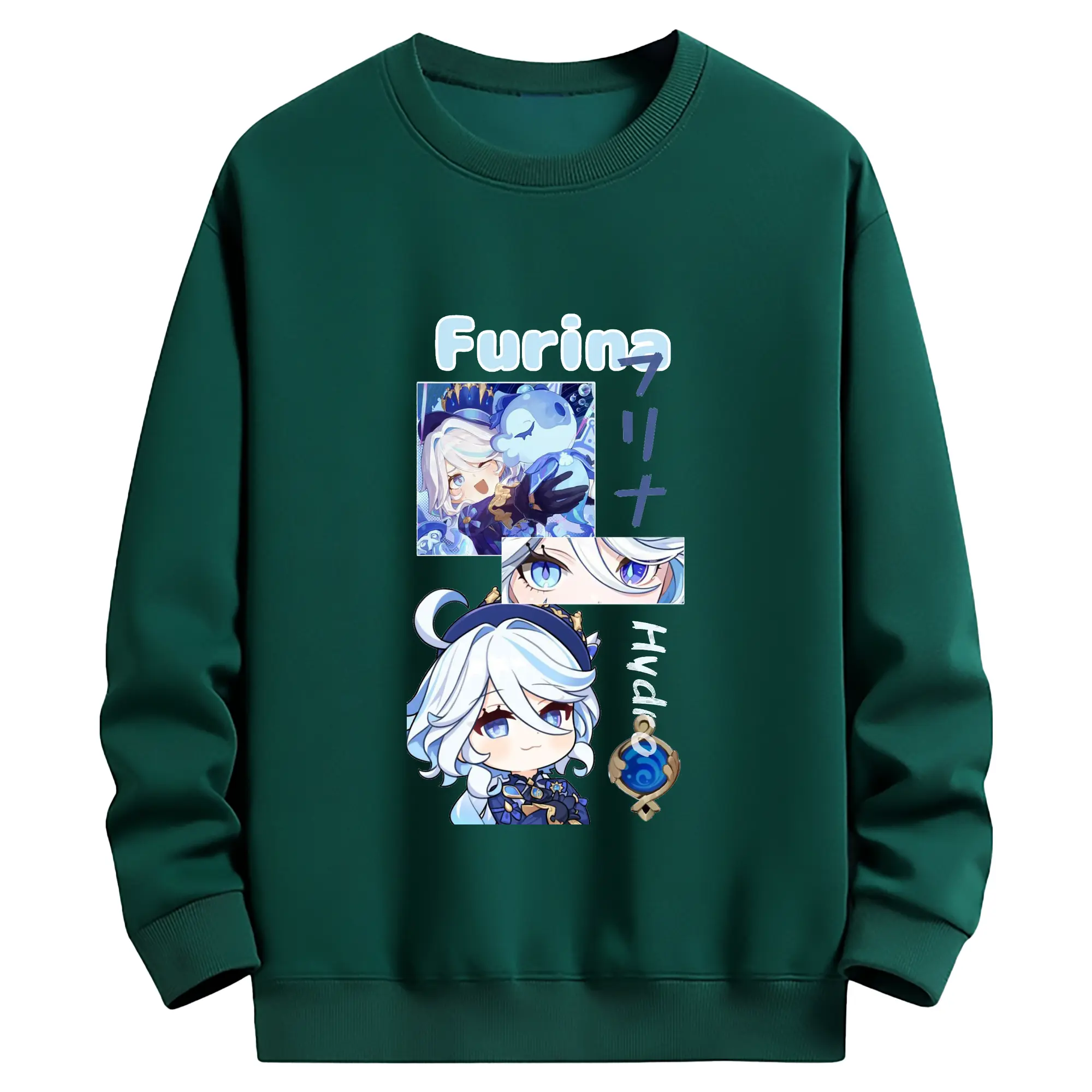 Genshin フォンテーヌ エスコフィエ - 高品質 クルーネック スウェット ・ コットン59% ポリエステル41% ・ ユニセックス 長袖 トレーナー ・ カジュアル デイリー スポーツ 散歩用