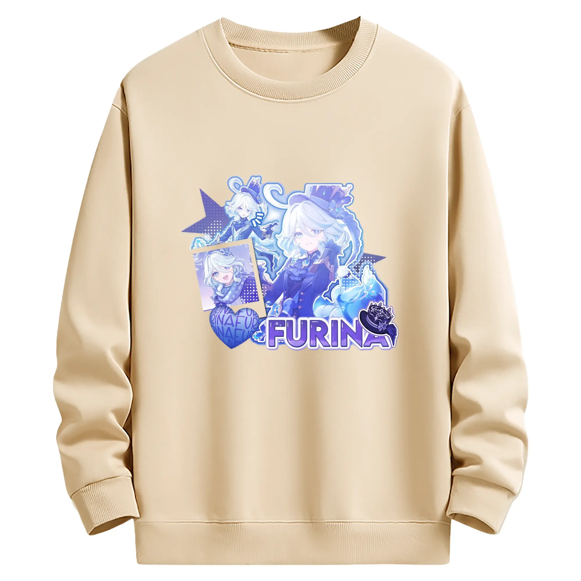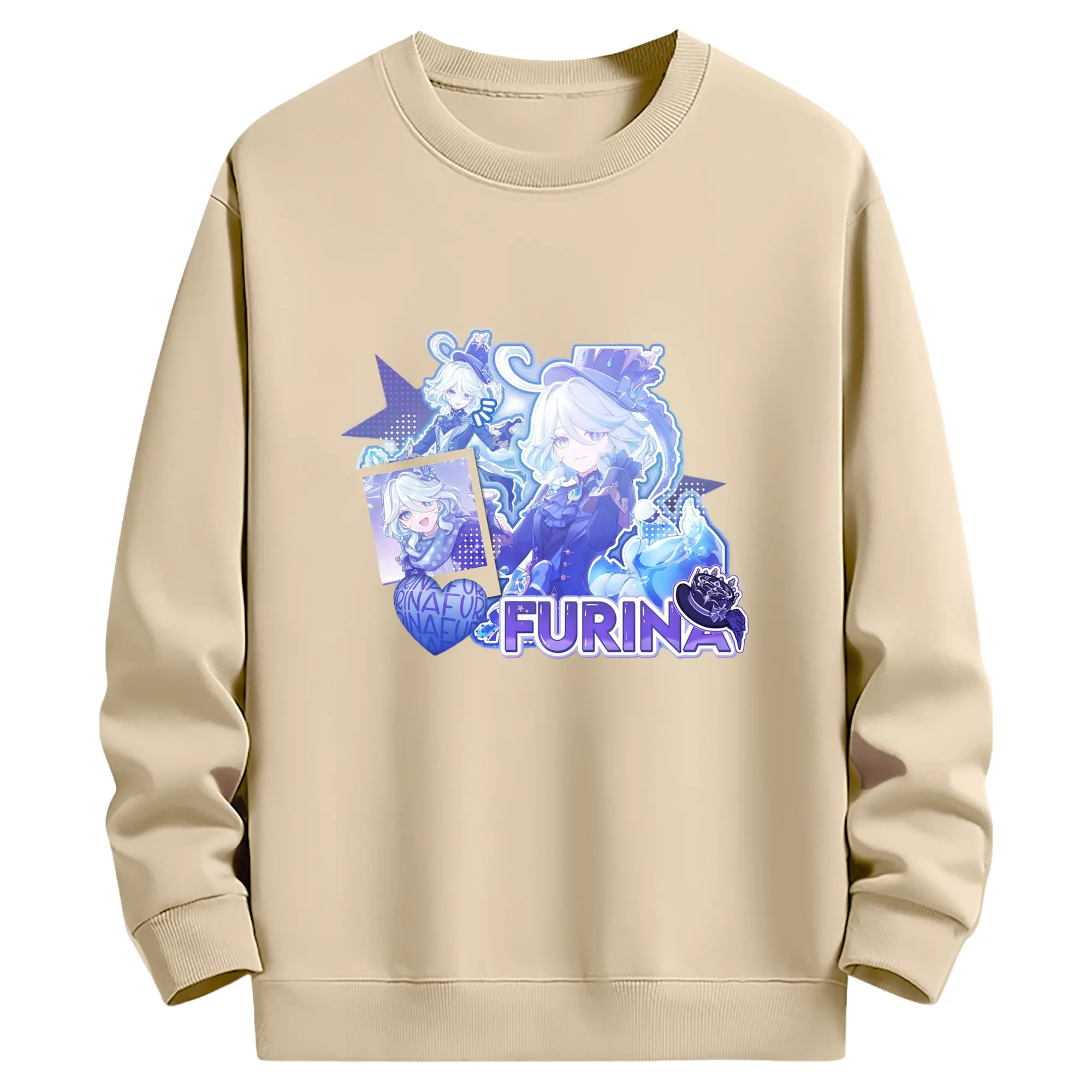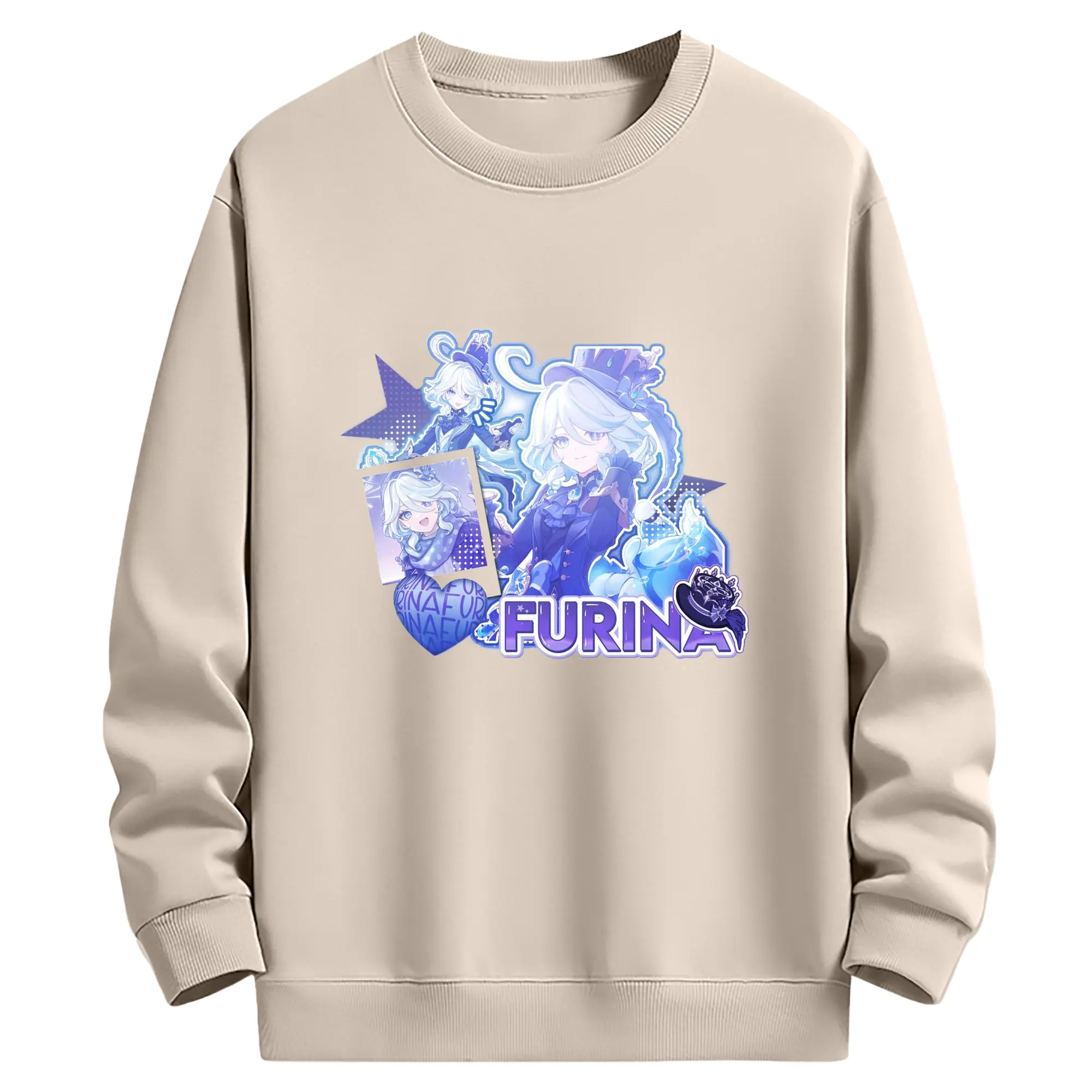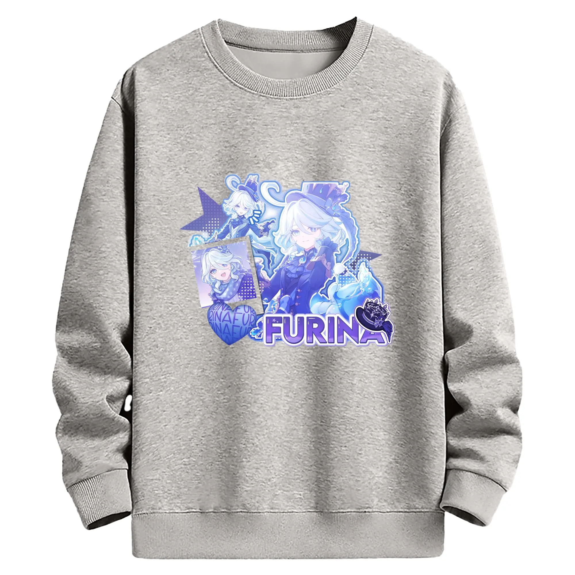 Genshin パイモン - 高品質 クルーネック スウェット ・ コットン59% ポリエステル41% ・ ユニセックス 長袖 トレーナー ・ カジュアル デイリー スポーツ 散歩用