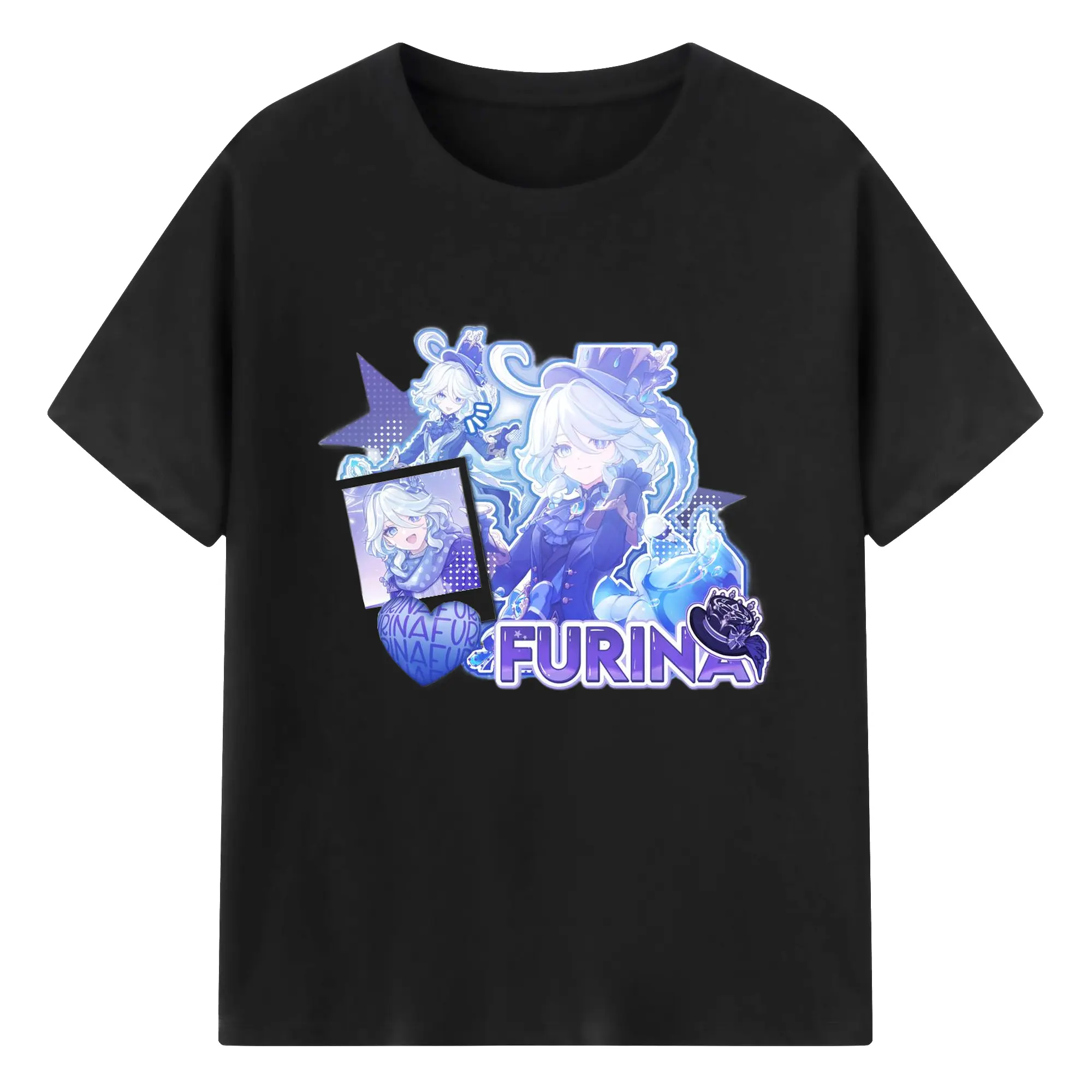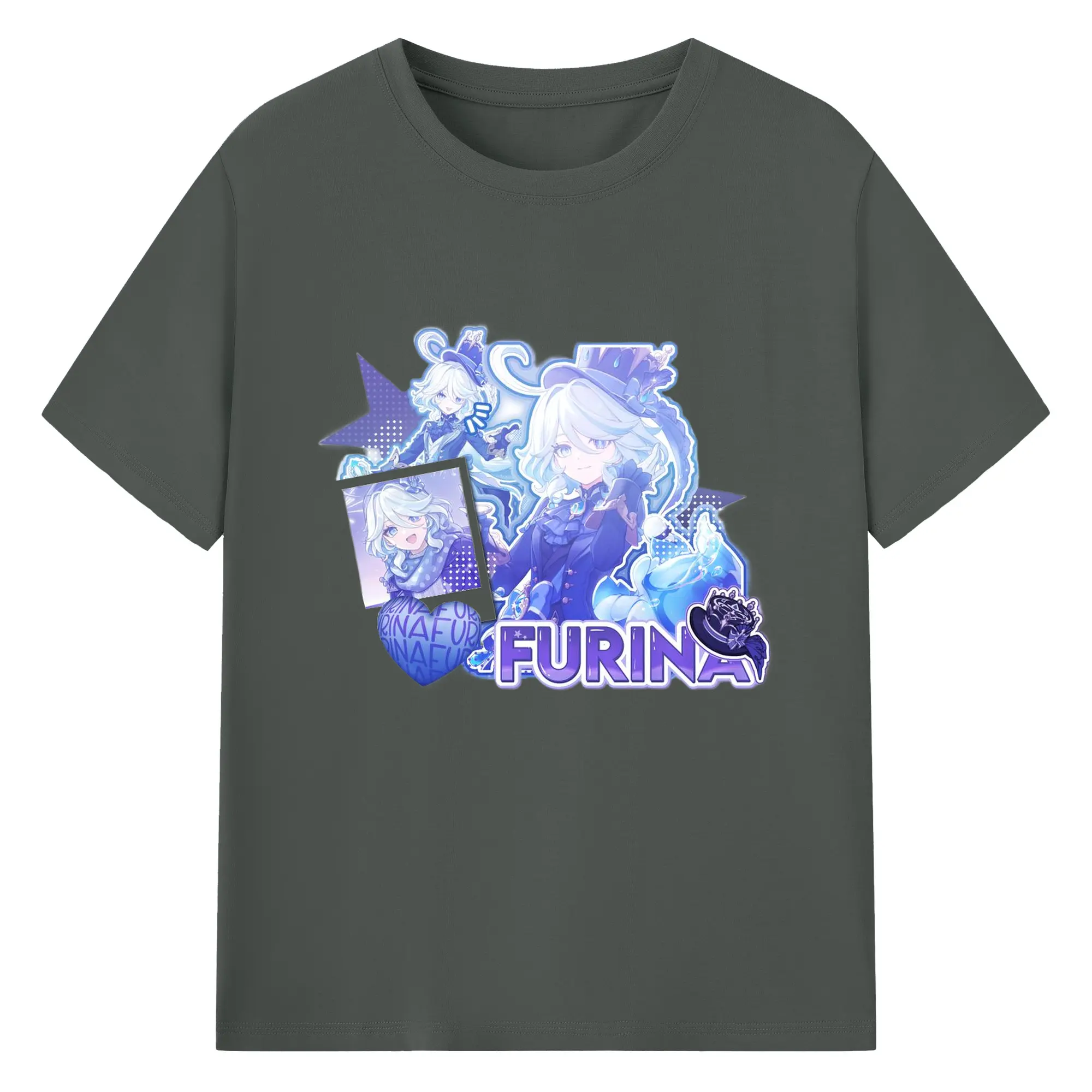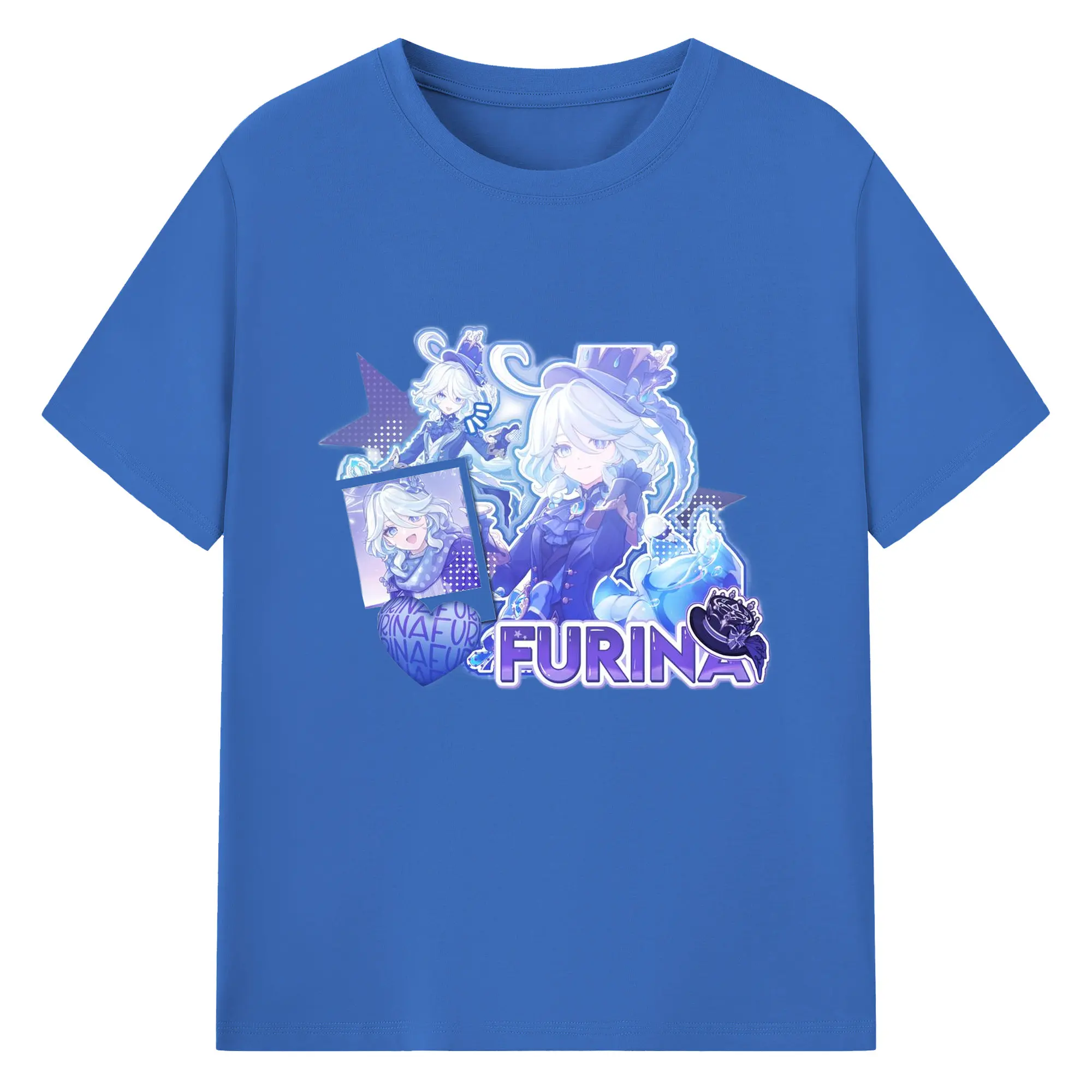 Genshin フォンテーヌ 水神すいじんフォカロルス フリーナ - 綿100% 半袖Tシャツ ・ フロントプリント ・ 快適 通気性 ・ 日常使い 散歩 スポーツ用
