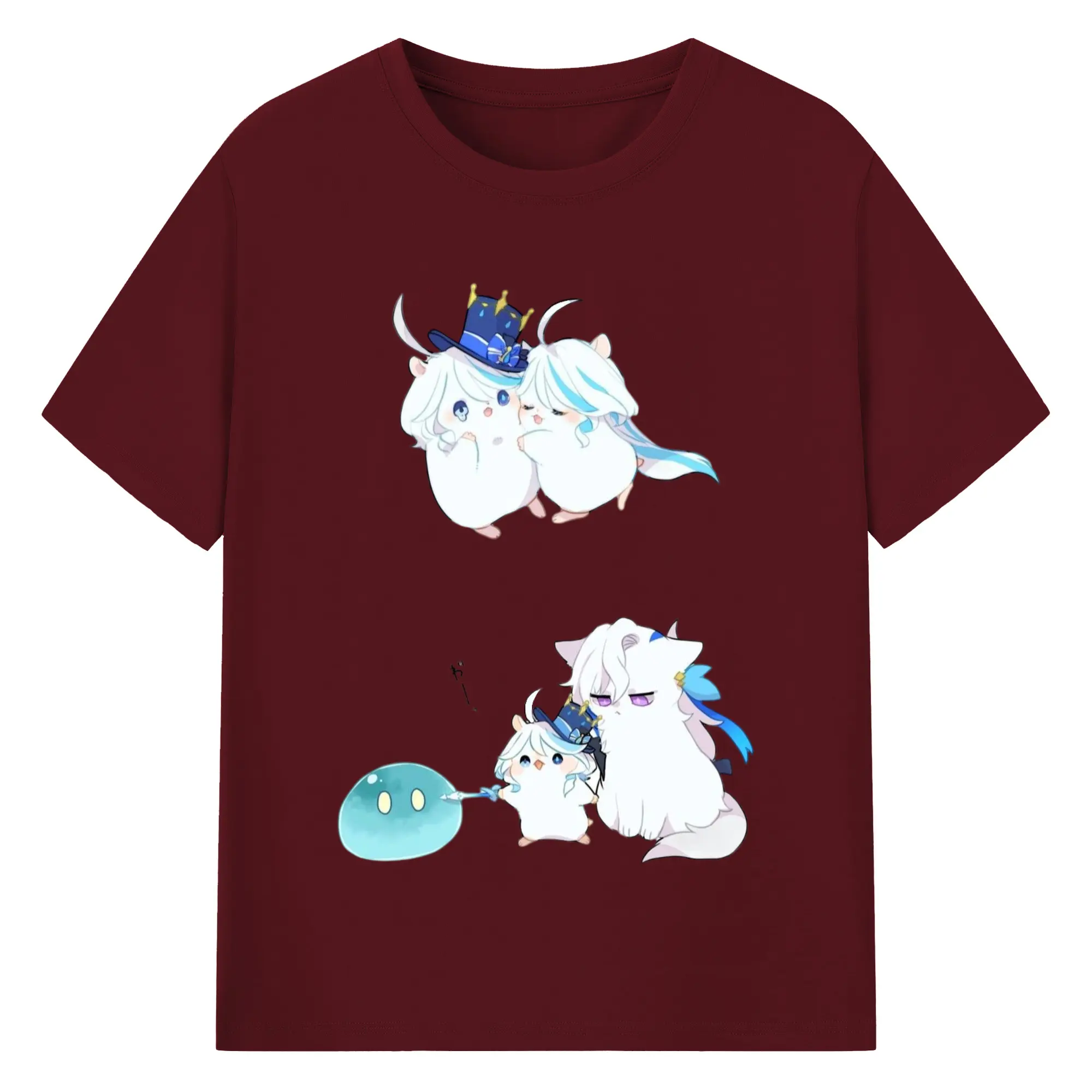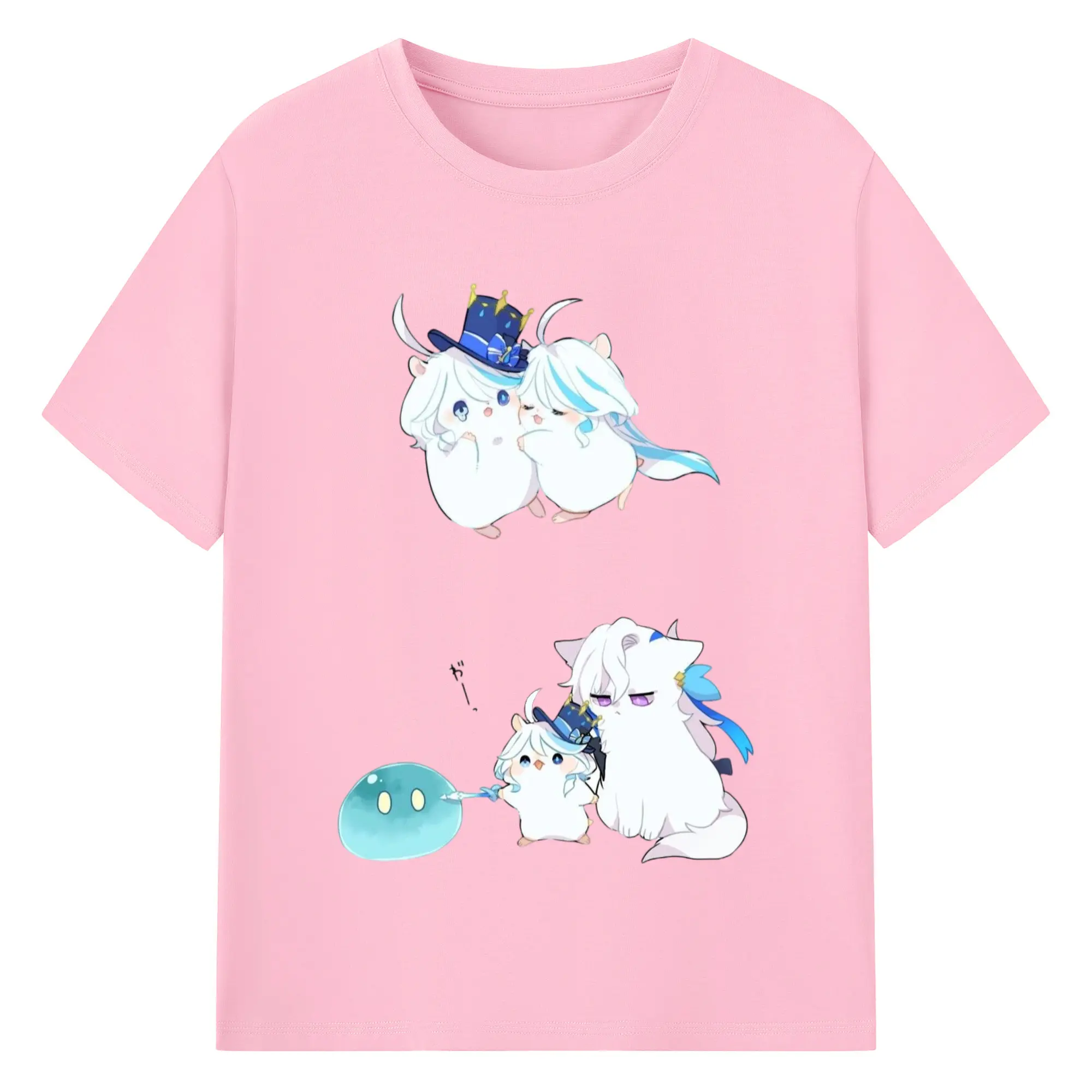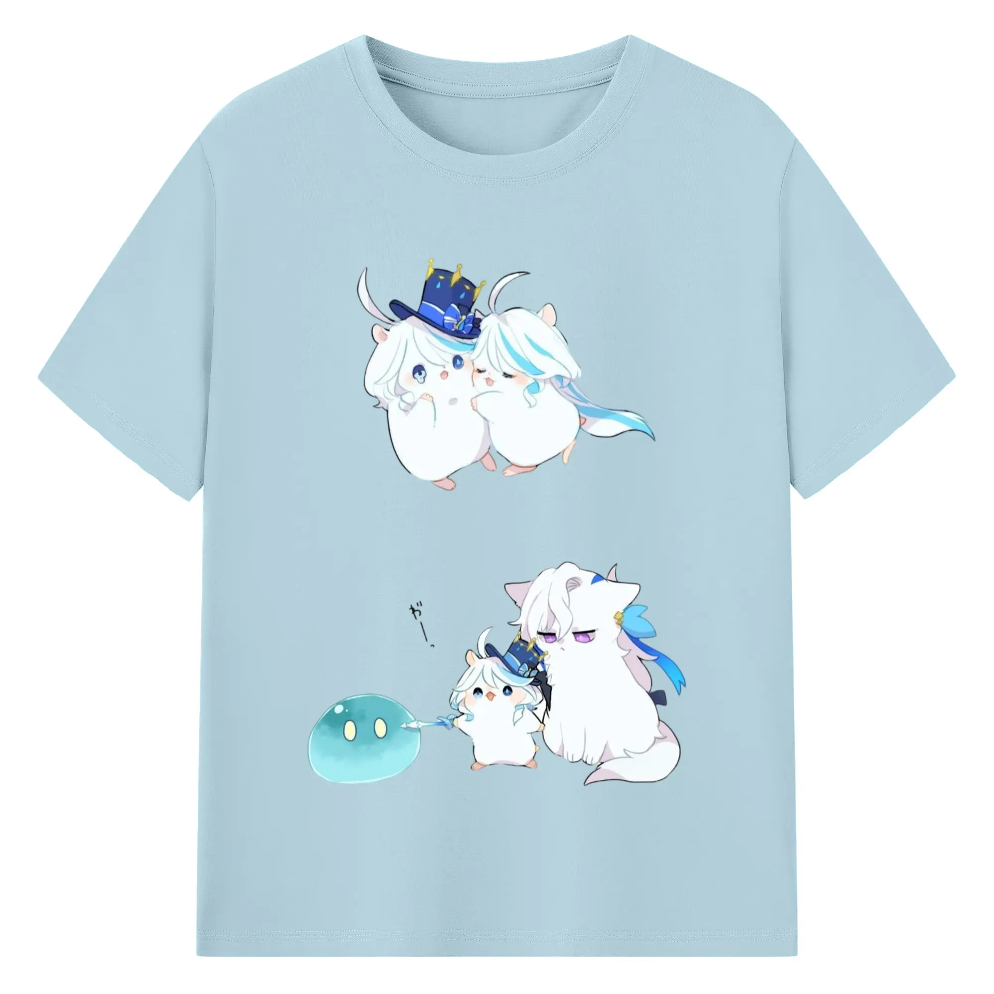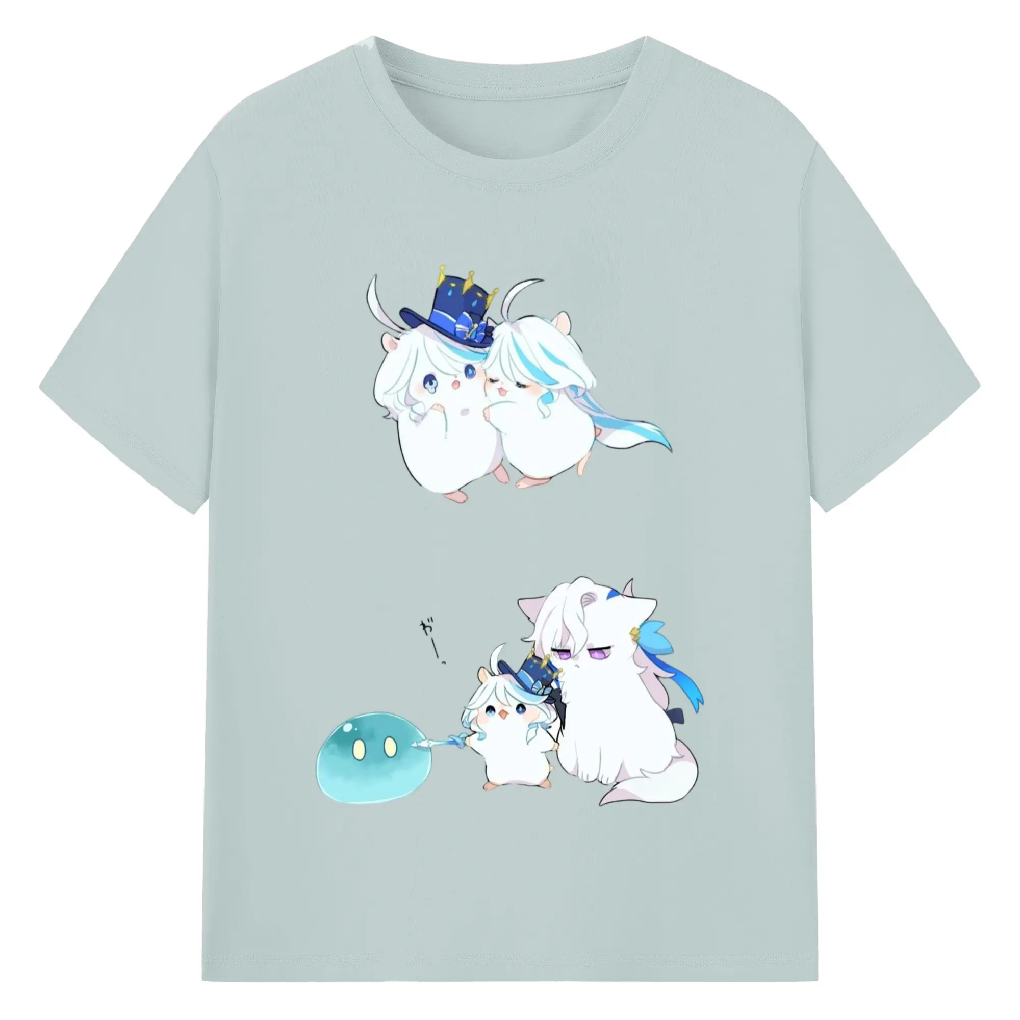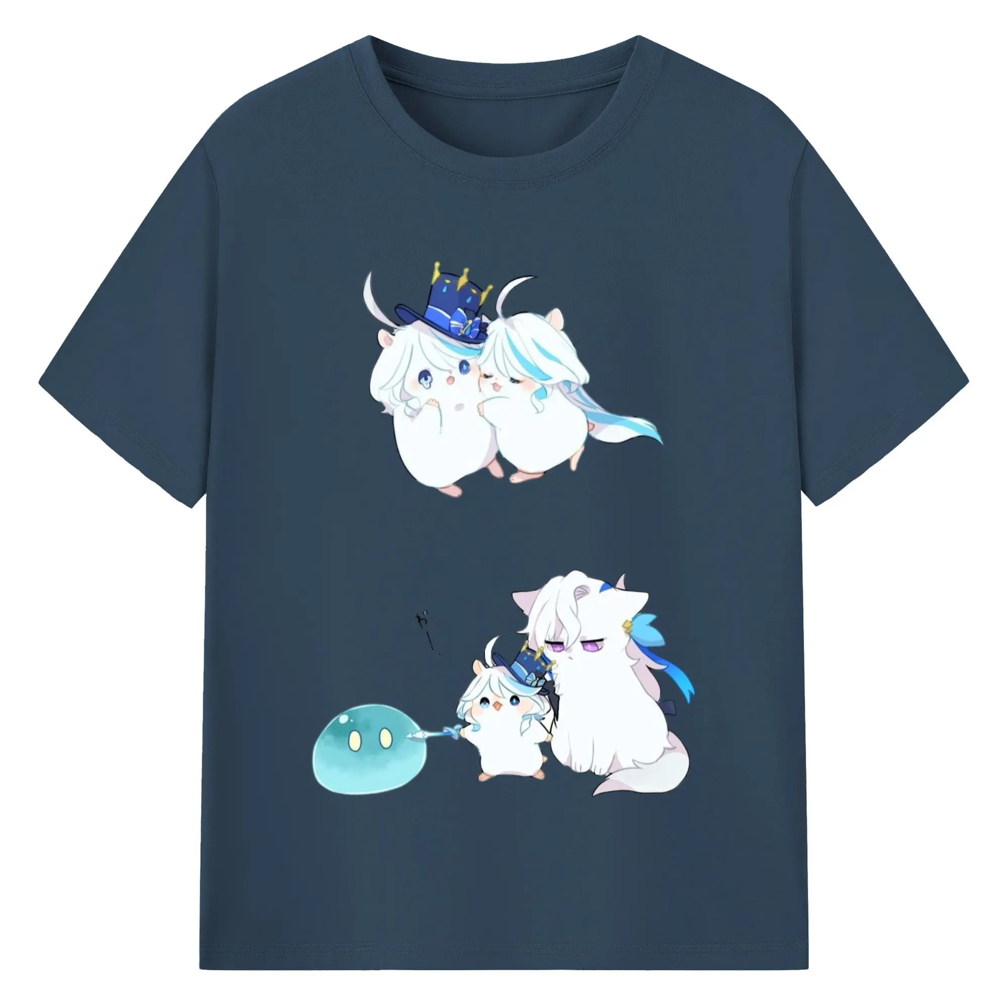 Genshin フォンテーヌ 水神すいじんフォカロルス フリーナ - 綿100% 半袖Tシャツ ・ フロントプリント ・ 快適 通気性 ・ 日常使い 散歩 スポーツ用